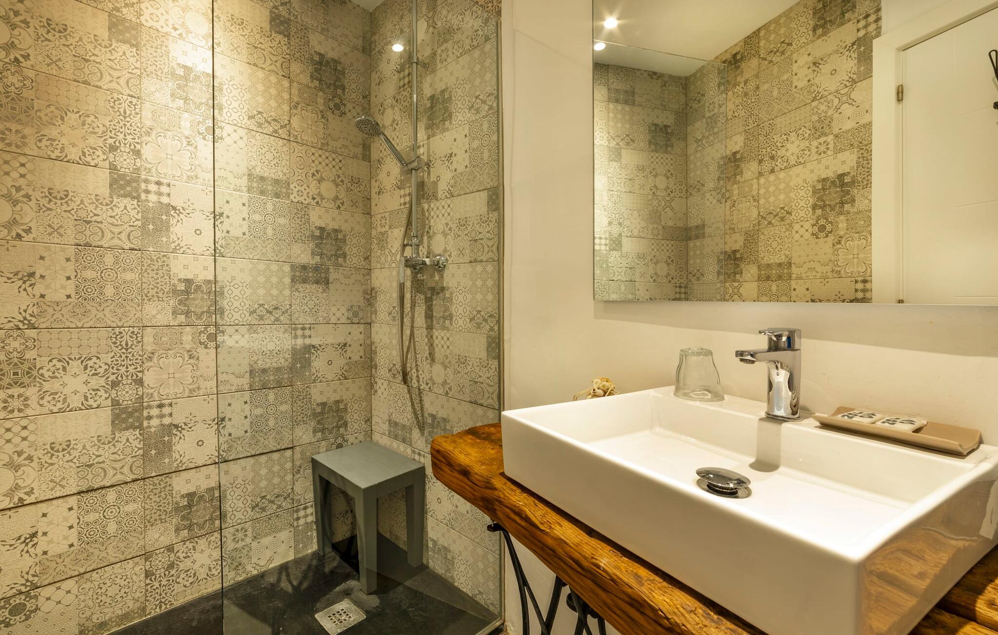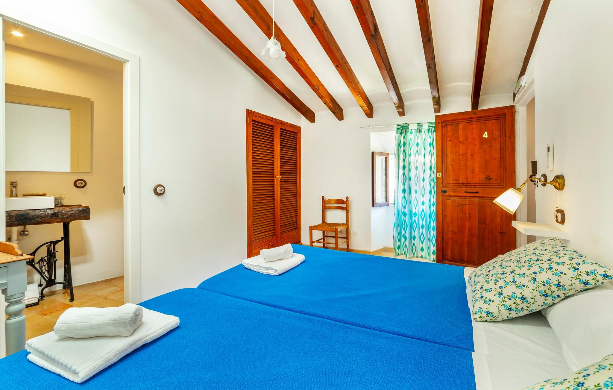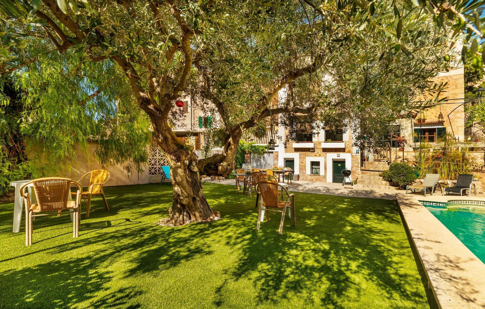 Elsker I at lære landet og dets folk at kende, mens I er på ferie og fordyber jer i deres kultur? Elsker I at være tæt på naturen, nyde stilfuldt liv og værdsætte komfort? Så er rækkehuset “Can Pera de Fornalutx”, fordelt på fire etager, nok den helt rigtige bolig for jer. Det smukke naturstenshus med grønne skodder er bygget på en vidunderlig sydvendt skråning i den maleriske, romantiske landsby Fornalutx. Selvom det ligger midt i en af byens typiske villagader med få direkte naboer, inviterer en velholdt lille have med brolagt terrasse, græsplæne, gamle knudrede træer og en privat pool til at slappe af og nyde privatlivets fred. Mens I sidder fortabt i tankerne i solen på en af de indbydende havestole og nyder en lækker drink, kan I nyde en fantastisk udsigt over de imponerende grønne bjerge, der omgiver jer. Rustikke stengulve, hvælvede lofter, mørkebrune bjælker, talrige gamle træmøbler og smukt dekorerede fliser overalt, der perfekt understreger husets landlige karakter: "Can Pera de Fornalutx" er et autentisk mallorcansk, smagfuldt, rustikt opholdsrum. Værelserne er fordelt på kælder, stueetage og to øverste etager. I stueetagen, på have- og terrasseniveau, finder I det hyggelige køkken med bord til morgenmad eller små snacks samt opholds- og spiseafdeling. På køligere aftener kan I sætte fødderne op i den stilfulde sofa og nyde den varmende ild, mens kun to trin adskiller jer fra en behageligt oplyst hvælving med et loft lavet af groft udhuggede natursten. Murstensbænke med behagelige hynder og flere rustikke træborde lavet af gamle tønder inviterer jer til at mødes, spise sammen, spille brætspil eller have en privat vinsmagning. I stueetagen er der et soveværelse med dobbeltseng med eget badeværelse, mens de yderligere soveværelser, som også har originale og moderne en-suite badeværelser, der matcher husets stil, er placeret på de to øverste etager. Fornalutx betragtes som en af de bedst bevarede traditionelle landsbyer i hele Spanien - og det med rette! Gå en tur gennem de smalle gader i den 600 indbyggere landsby, gå langs de gamle brostensbelagte gader og beundre de smukke, velbevarede facader på husene. Kig forbi en af de mange caféer, prøv de regionale delikatesser i en af de lokale restauranter eller i det veletablerede landsbybageri. Byens særlige flair vil hurtigt fange jer. Derudover er Fornalutx også et ideelt udgangspunkt for vandre- og cykelture gennem Tramuntana-bjergene. jeres sommerhus ligger lige ved foden af den populære Puig Major cykelrute. I krydser Puig Major i 818 meters højde. Ruten er 13,7 km lang og er særdeles velegnet til erfarne og erfarne cyklister. Vil I tilbringe en dag ved havet, bør I køre ad den 9 km lange vej, som er hørbar fra ejendommen, til Playa de Port Soller. Den bevogtede strand ligger i en idyllisk bugt og har en rigtig god infrastruktur, lige fra parasoludlejning, brusere og toiletter til en livlig strandpromenade med barer og restauranter. Et rækkehus tæt på naturen: "Can Pera de Fornalutx", bygget på en sydvendt bjergskråning i landsbyen Fornalutx, tilbyder netop denne vidunderlige feriekombination. Her er I højt oppe i Tramuntana-bjergene – og Fornalutx, ofte omtalt som "den smukkeste landsby i Spanien", byder på en storslået udsigt over Sollér-dalen. Butikker og restauranter er inden for nem gåafstand fra jeres hjem. I haven kan I tage en dukkert i poolen og slappe af under de gamle træer. Stranden Playa de Port de Sollé ligger kun 9 km derfra.