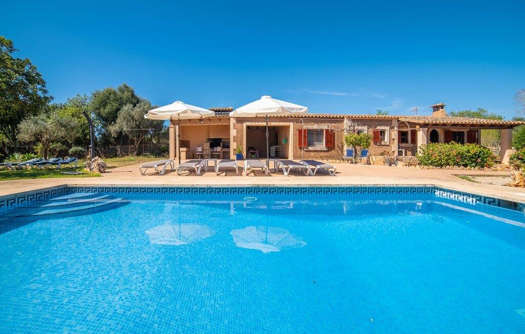 En bred vifte af middelhavsvegetation og forskellige åbne og overdækkede opholdsområder inviterer jer til at tilbringe afslappende timer under middelhavshimlen på det 3.500 m² store areal på denne Mallorca-gård. Den pæne spiseplads er bekvemt placeret lige ved indgangen til huset, og lige ved siden af er der en hyggelig siddeplads, for eksempel til en eftermiddagskaffe. I kan nyde aftengrill i det overdækkede udekøkken med en muret grill. Børn kan lege på græsplænerne, gynge og selvfølgelig plaske rundt i den behageligt lavvandede swimmingpool. En bruser med varmt vand fuldender den udendørs komfort, og det samme gør de komfortable liggestole til omfattende solbadning. Boligarealerne, der strækker sig over ét plan, udstråler en hyggelig, ret utraditionel flair. Den åbne stue-alrum med sofa, tv og spisebord er perfekt til afslapning indendørs. Det fuldt udstyrede, åbne, integrerede køkken med disk som gennemløb giver gode forudsætninger for selvforsynende selvforsørgelse. Tre individuelt indrettede dobbeltværelser med aircondition er tilgængelige til afslappende ferienætter. To bruserum, hvoraf det ene har eget bad, runder pladsen af i denne familievenlige bondegård på Mallorca. Dette charmerende landsted er beliggende nær S'Horta i en førsteklasses beliggenhed i den sydøstlige del af Mallorca. Stedet, der er skånet for masseturisme, byder på gode indkøbsmuligheder. Det er kun omkring 5 minutter i bil til havet. Der finder I drømmebugter som Cala Sa Nau (3,3 km) eller Cala d'Or (ca. 5 km).