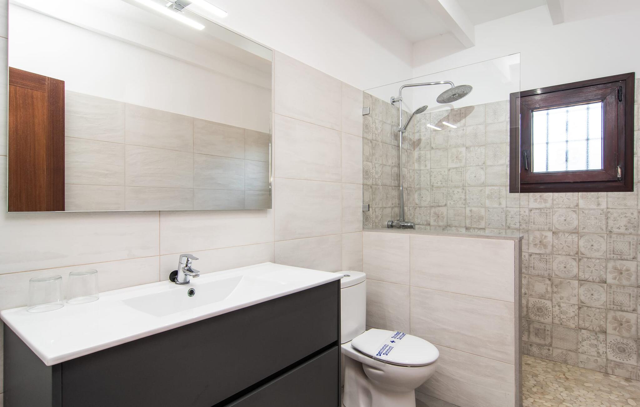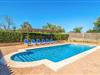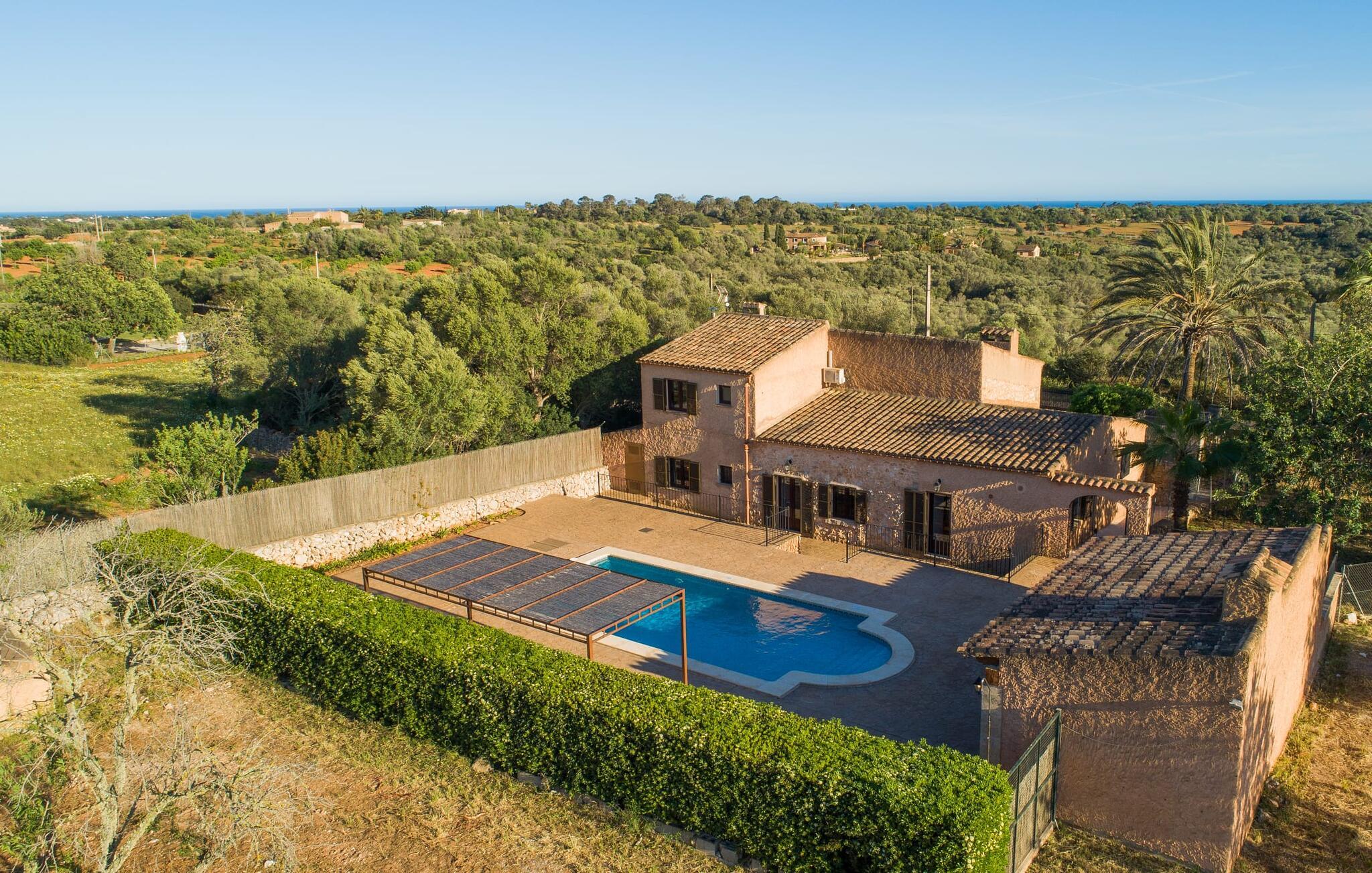 Vidunderligt beskyttet mod udsigt og omgivet af hække, mure og masser af træer, er denne finca på det sydlige Mallorca en sand juvel. Hovedattraktionen ved den typiske middelhavsejendom er det rummelige poolområde, hvor der i midten er en 10 meter lang pool med smukke blå mosaikfliser, som nemt kan nås via en romersk trappe. På den omkringliggende solterrasse finder I indbydende steder under åben himmel eller under et lætag - så snup jeres badelagen, en bog og en lækker kold drink og god fornøjelse! Når I falder i søvn på en af de komfortable liggestole, har I måske allerede en idé eller to til aftensmaden. Og så ender I uundgåeligt ved det smukke udekøkken, som er installeret under tag foran poolen og udover grillen byder på en fantastisk spiseplads til aftenens grillsessioner. Flairen i det rummelige interiør, der strækker sig over stueetagen og første sal, er også typisk mallorcansk. Lyse vægge, synlige bjælkelofter og store gulvfliser skaber stilfulde rammer om de solide møbler, der sikrer en behagelig bolig. Stue, spiseplads og køkken smelter sammen i en halvåben planløsning - en arkitektur, der skaber en behagelig rumfølelse. Køkkenet byder på god plads og har ligesom spisepladsen direkte udgang til terrassen. Der er også et soveværelse og et badeværelse på denne stueplan. De andre to soveværelser og to badeværelser en suite er placeret ovenpå. Fincaen "Can Pere Xina" byder ikke kun på en stor portion komfort, men også plads, der giver mulighed for maksimalt privatliv. Stuehuset "Can Pere Xina" er smukt sydvendt i trekanten med Santanyi og S'Alqueria Blanca i den sydlige del af øen. Vejen, som af og til kan høres afhængigt af vindretningen, giver jer mulighed for hurtigt at nå forskellige destinationer. Der findes supermarkeder, bagerier og restauranter i de nærliggende landsbyer, hver kun 2,5 til 6 km væk. Strandene i Santanyi, Figuera og den berømte Es Trenc ligger kun 15 til 30 minutter væk i bil. Sørg for at besøge naturreservatet Mondragó, kun 2 km væk.