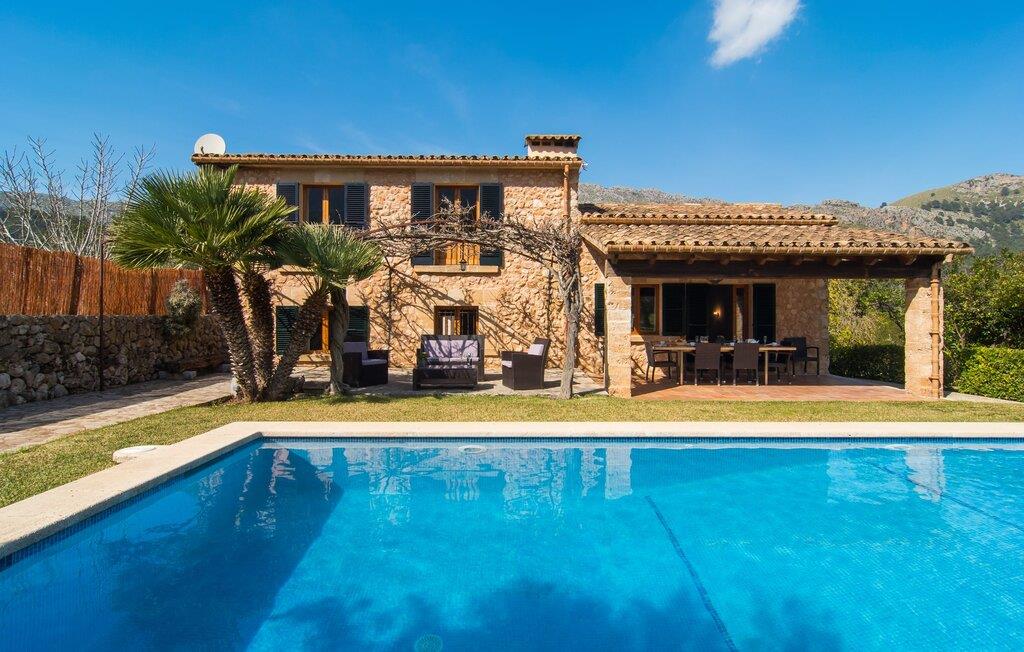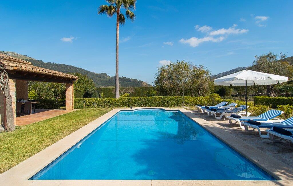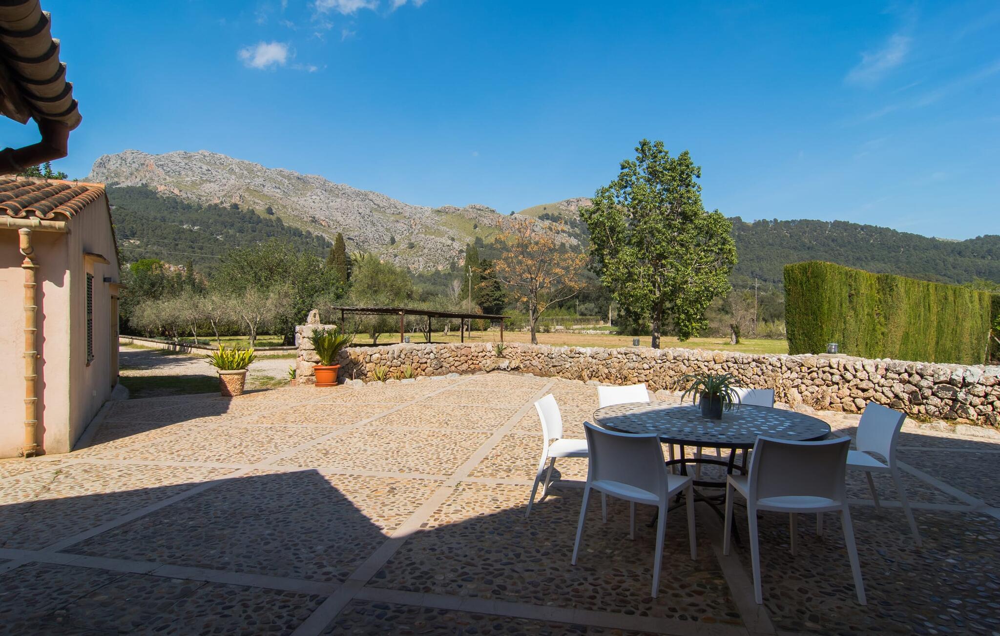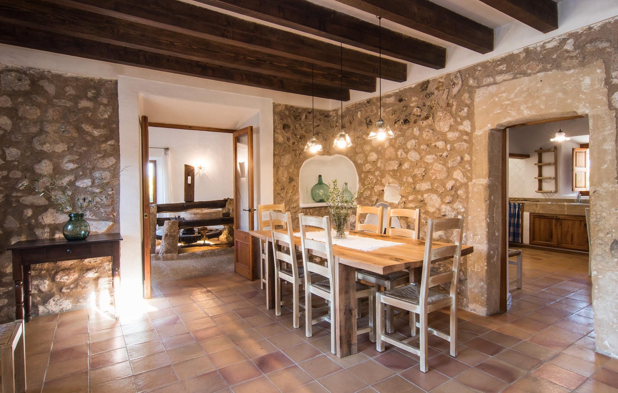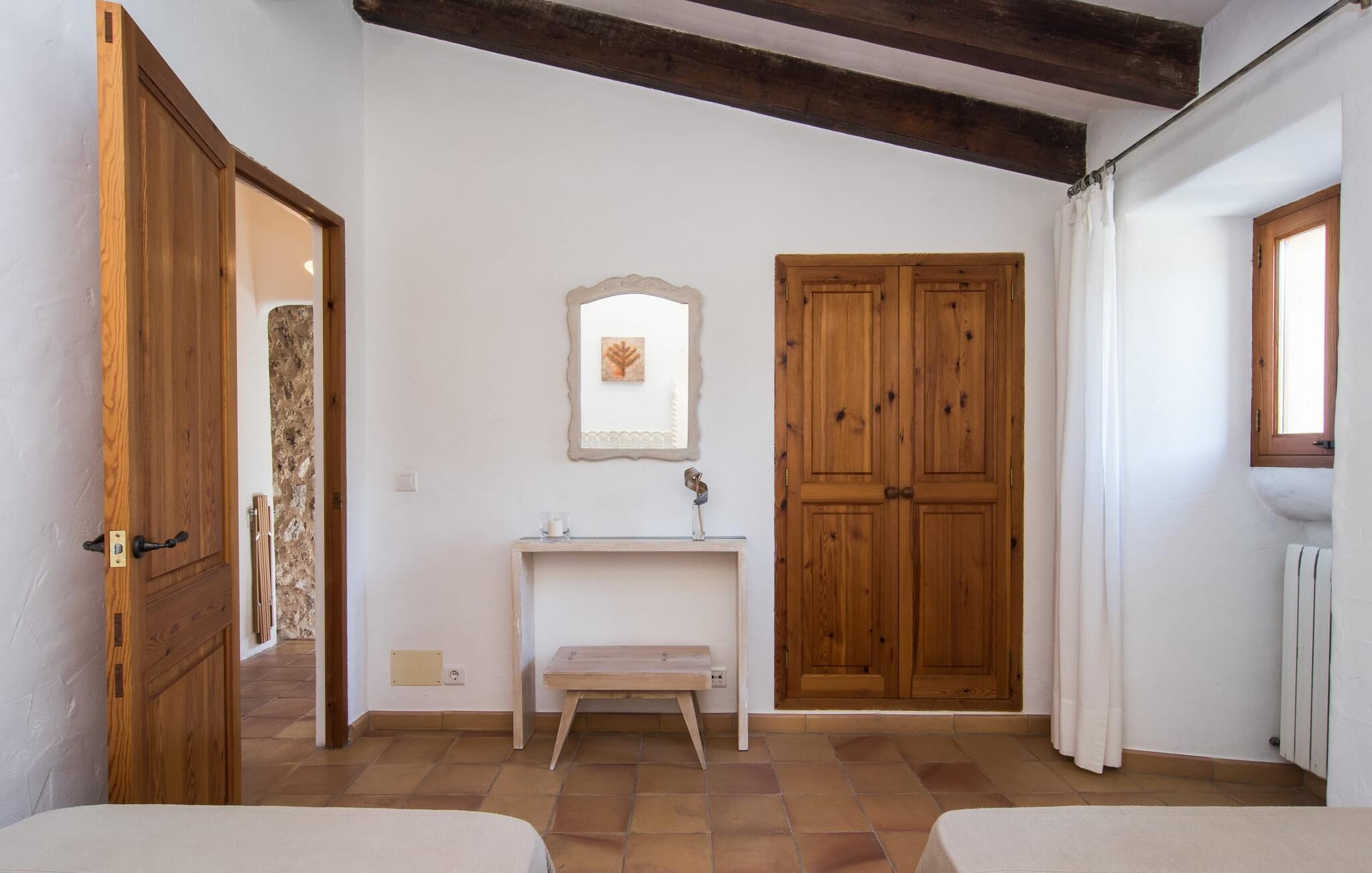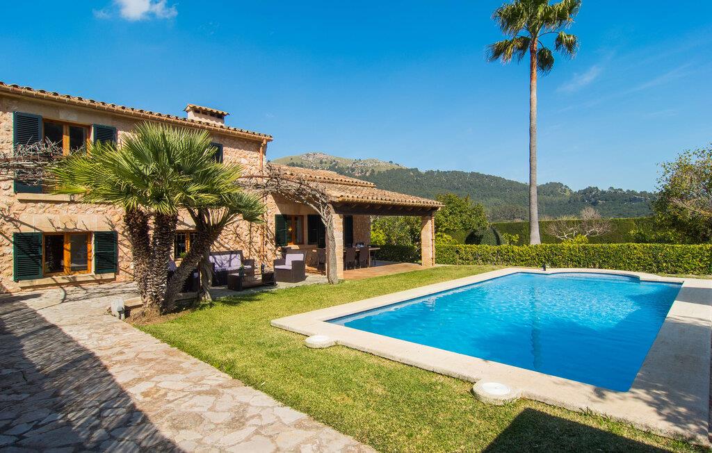 Denne bondegård i den nordlige del af Mallorca er en sand perle og venter på op til otte feriegæster, der ønsker at tilbringe en dejlig tid i en rolig atmosfære. Omgivelserne kunne næsten ikke være mere maleriske: i det fjerne de imponerende Tramuntana-bjerge, omkring ejendommen er der en grøn slette med enge, marker og mange gamle træer - ren idyl! Dette fortsætter harmonisk på fincaens egen ejendom, som er dekorativt omsluttet af stengærder og hække: Her veksler græsplæner og terrassearealer, og middelhavsplanter liver med held helhedsbilledet op. Behageligt tæt på huset indbyder poolen, som nemt kan nås via romerske trappetrin, til at køle af, plaske rundt og svømme og selvfølgelig er der en praktisk udendørs bruser. Komfortable liggestole er tilgængelige til solbadning - og til at sidde er der den overdækkede terrasse med et loungeområde og spisebord med udsigt over poolområdet, haven og bjerget i baggrunden. På den modsatte side af huset giver et andet stort terrasseområde mulighed for at sidde al fresco eller bruge de vidunderlige udendørs køkken muligheder til at forberede og nyde jeres ferie delikatesser al fresco. En velholdt, indbydende lys landstedsstemning præger interiøret i "Can Peric". Lige ved siden af terrassen er der en hyggelig, delvist muret opholdsstue med komfortable sofaer, et fjernsyn og en hyggelig pejs. Et par trin fører til det traditionelt anlagte gulv med natursten omkring den gamle, oprindeligt oplyste møllesten, som er et vidne om husets historie og et enestående blikfang. I kan spise indendørs ved det tilstødende spisebord i den rustikke atmosfære af naturstensvæggene. Det fuldt udstyrede køkken er bekvemt lige rundt om hjørnet. På denne stueplan er der også et soveværelse med dobbeltseng og et badeværelse. På øverste etage er der to dobbeltværelser med dobbeltsenge, et soveværelse med to enkeltsenge og to badeværelser. Alle soveværelser skaber en meget hyggelig atmosfære med lyse farver og masser af træ - den bedste forudsætning for at tilbringe hyggelige nætter i dette rolige område. Dette skønne feriehus på Mallorca, som ligger ca. 8 km vest for den maleriske by Pollenca, scorer ikke kun point med sin vidunderligt smukke, rolige beliggenhed. I kan gøre jeres daglige indkøb i landsbyen. Den indbydende strand Platja de Port de Pollença ligger omkring 11 km væk, og den populære by Alcúdia kan nås på lidt over 20 minutter med udlejningsbil.