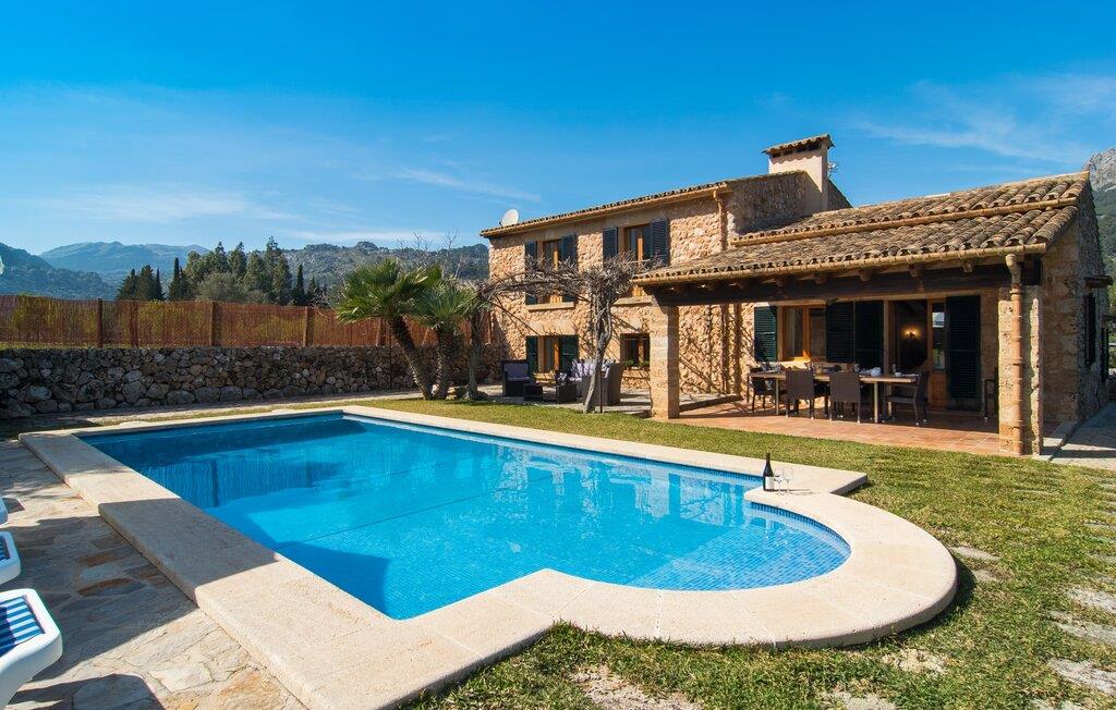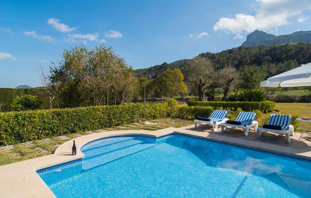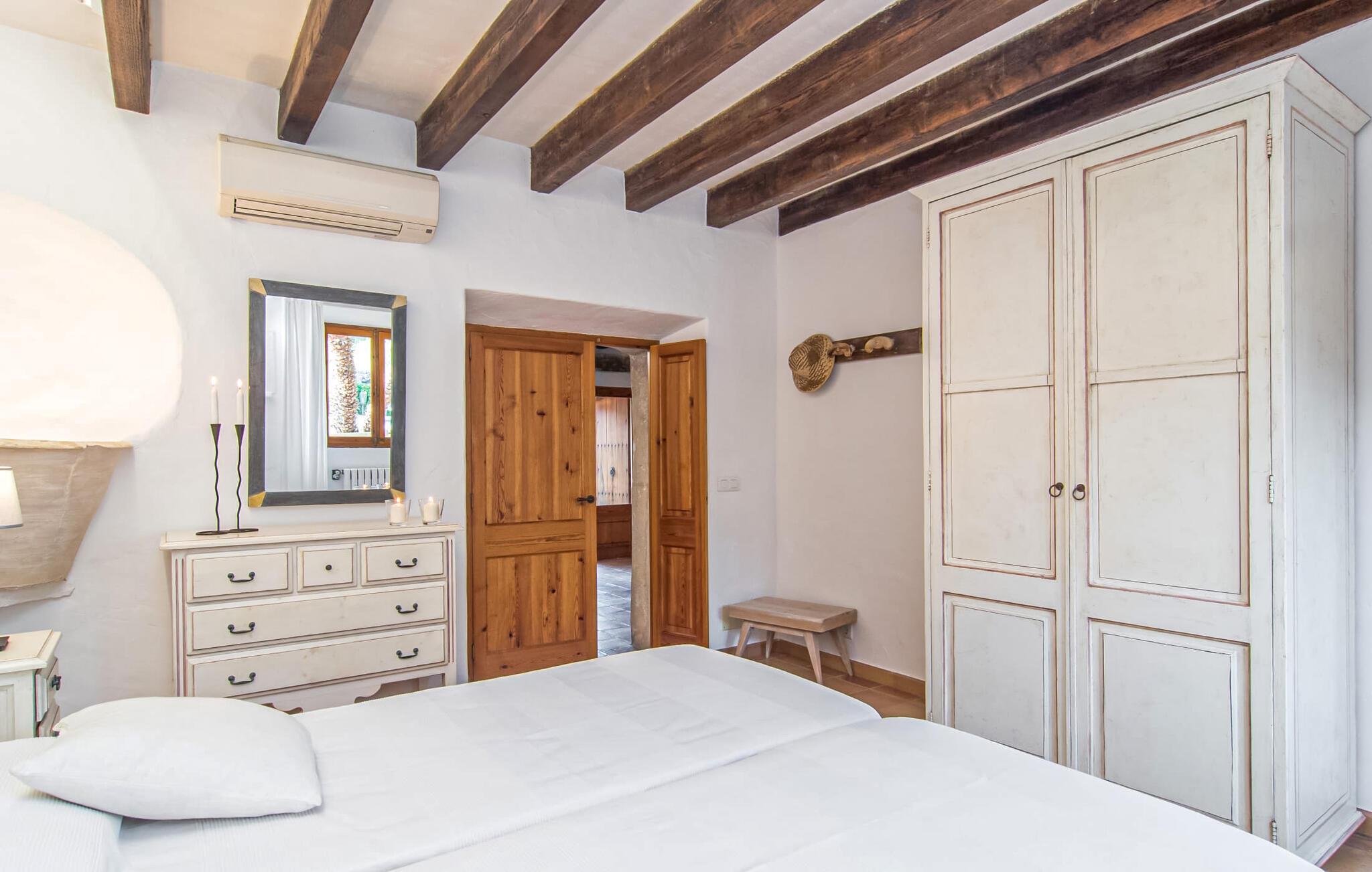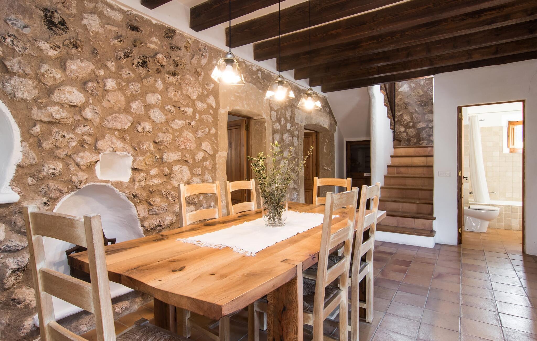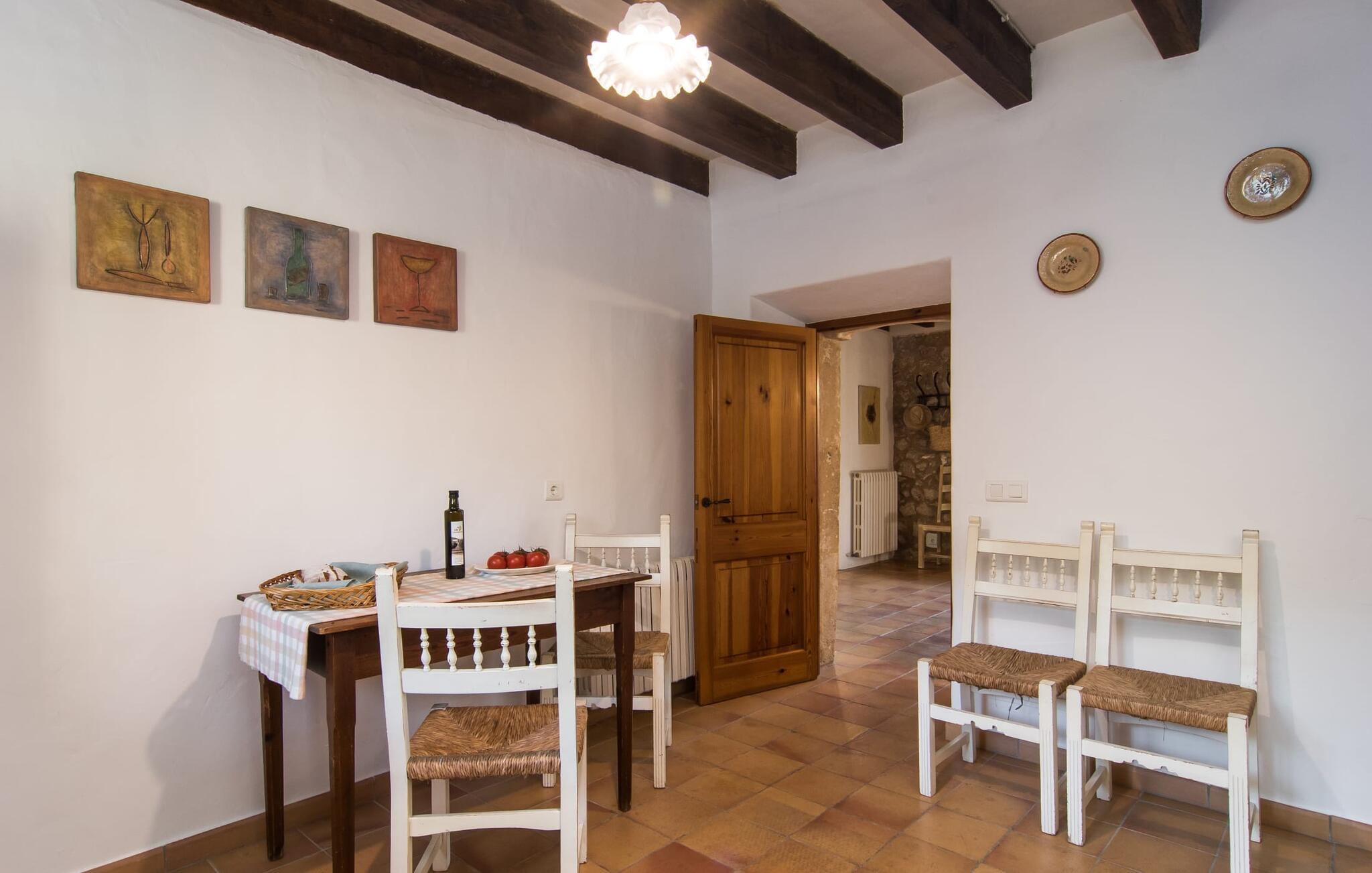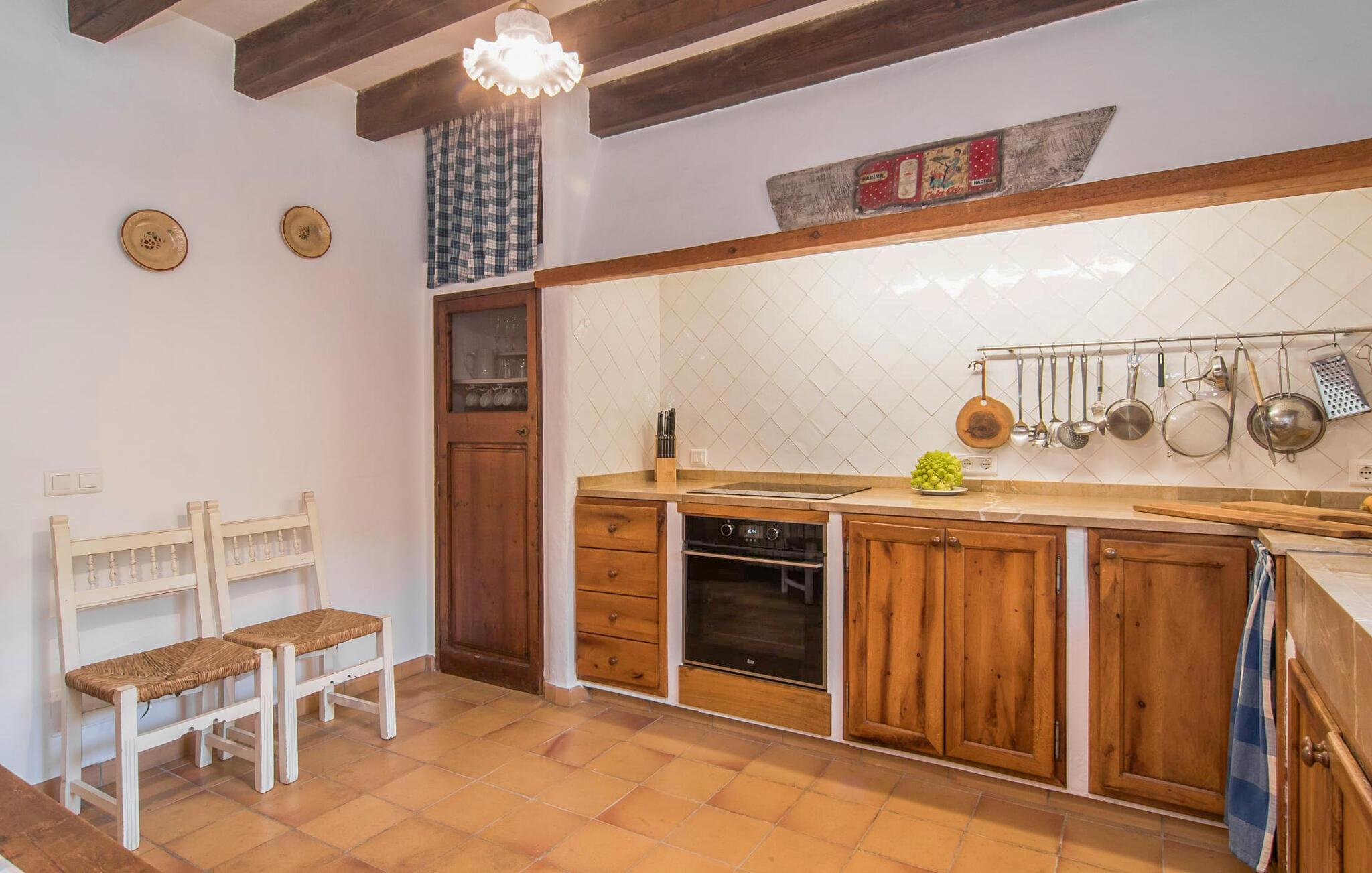 Denne bondegård i den nordlige del af Mallorca er en sand perle og venter på op til otte feriegæster, der ønsker at tilbringe en dejlig tid i en rolig atmosfære. Omgivelserne kunne næsten ikke være mere maleriske: i det fjerne de imponerende Tramuntana-bjerge, omkring ejendommen er der en grøn slette med enge, marker og mange gamle træer - ren idyl! Dette fortsætter harmonisk på fincaens egen ejendom, som er dekorativt omsluttet af stengærder og hække: Her veksler græsplæner og terrassearealer, og middelhavsplanter liver med held helhedsbilledet op. Behageligt tæt på huset indbyder poolen, som nemt kan nås via romerske trappetrin, til at køle af, plaske rundt og svømme og selvfølgelig er der en praktisk udendørs bruser. Komfortable liggestole er tilgængelige til solbadning - og til at sidde er der den overdækkede terrasse med et loungeområde og spisebord med udsigt over poolområdet, haven og bjerget i baggrunden. På den modsatte side af huset giver et andet stort terrasseområde mulighed for at sidde al fresco eller bruge de vidunderlige udendørs køkken muligheder til at forberede og nyde jeres ferie delikatesser al fresco. En velholdt, indbydende lys landstedsstemning præger interiøret i "Can Peric". Lige ved siden af terrassen er der en hyggelig, delvist muret opholdsstue med komfortable sofaer, et fjernsyn og en hyggelig pejs. Et par trin fører til det traditionelt anlagte gulv med natursten omkring den gamle, oprindeligt oplyste møllesten, som er et vidne om husets historie og et enestående blikfang. I kan spise indendørs ved det tilstødende spisebord i den rustikke atmosfære af naturstensvæggene. Det fuldt udstyrede køkken er bekvemt lige rundt om hjørnet. På denne stueplan er der også et soveværelse med dobbeltseng og et badeværelse. På øverste etage er der to dobbeltværelser med dobbeltsenge, et soveværelse med to enkeltsenge og to badeværelser. Alle soveværelser skaber en meget hyggelig atmosfære med lyse farver og masser af træ - den bedste forudsætning for at tilbringe hyggelige nætter i dette rolige område. Dette skønne feriehus på Mallorca, som ligger ca. 8 km vest for den maleriske by Pollenca, scorer ikke kun point med sin vidunderligt smukke, rolige beliggenhed. I kan gøre jeres daglige indkøb i landsbyen. Den indbydende strand Platja de Port de Pollença ligger omkring 11 km væk, og den populære by Alcúdia kan nås på lidt over 20 minutter med udlejningsbil.