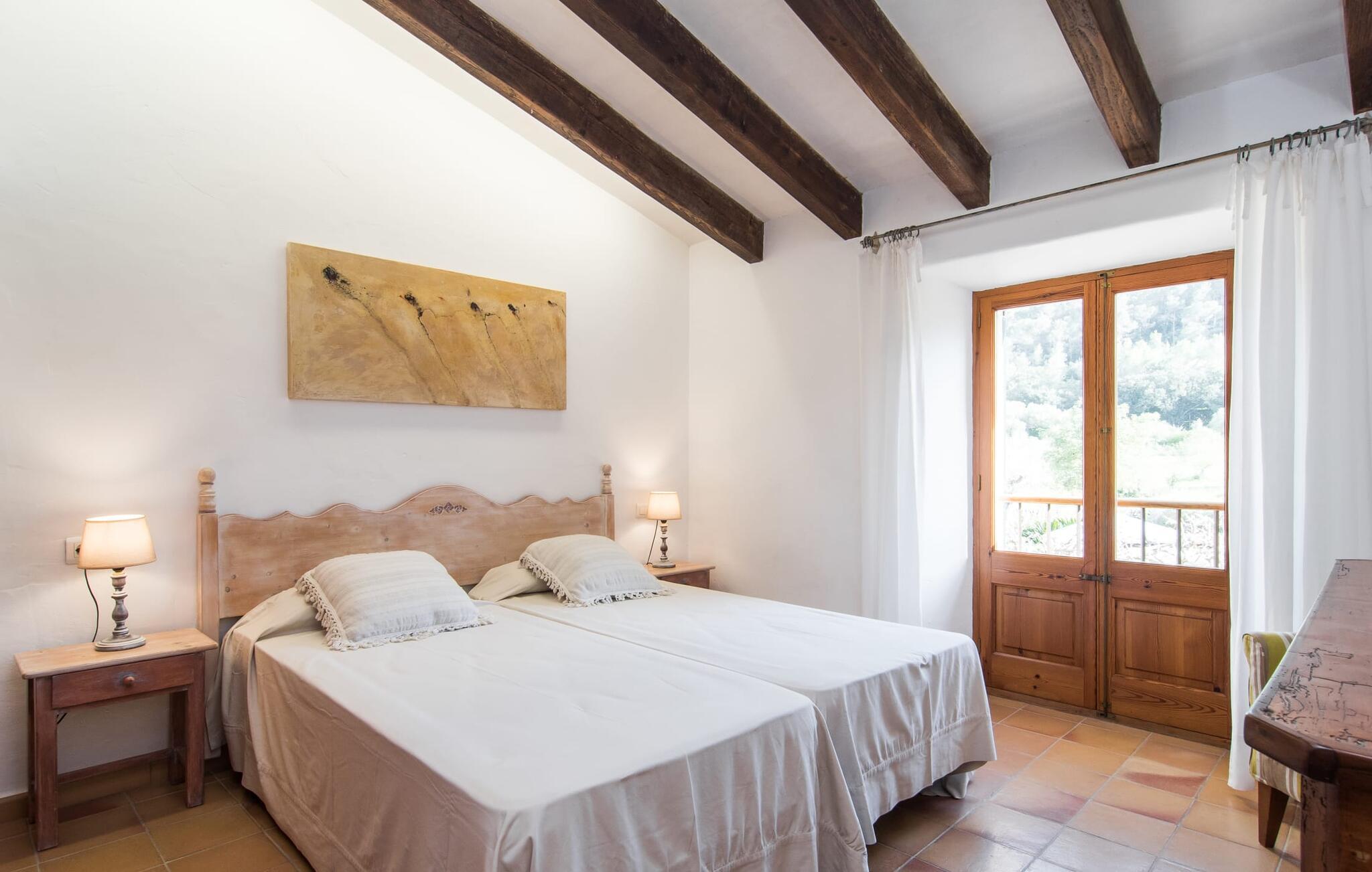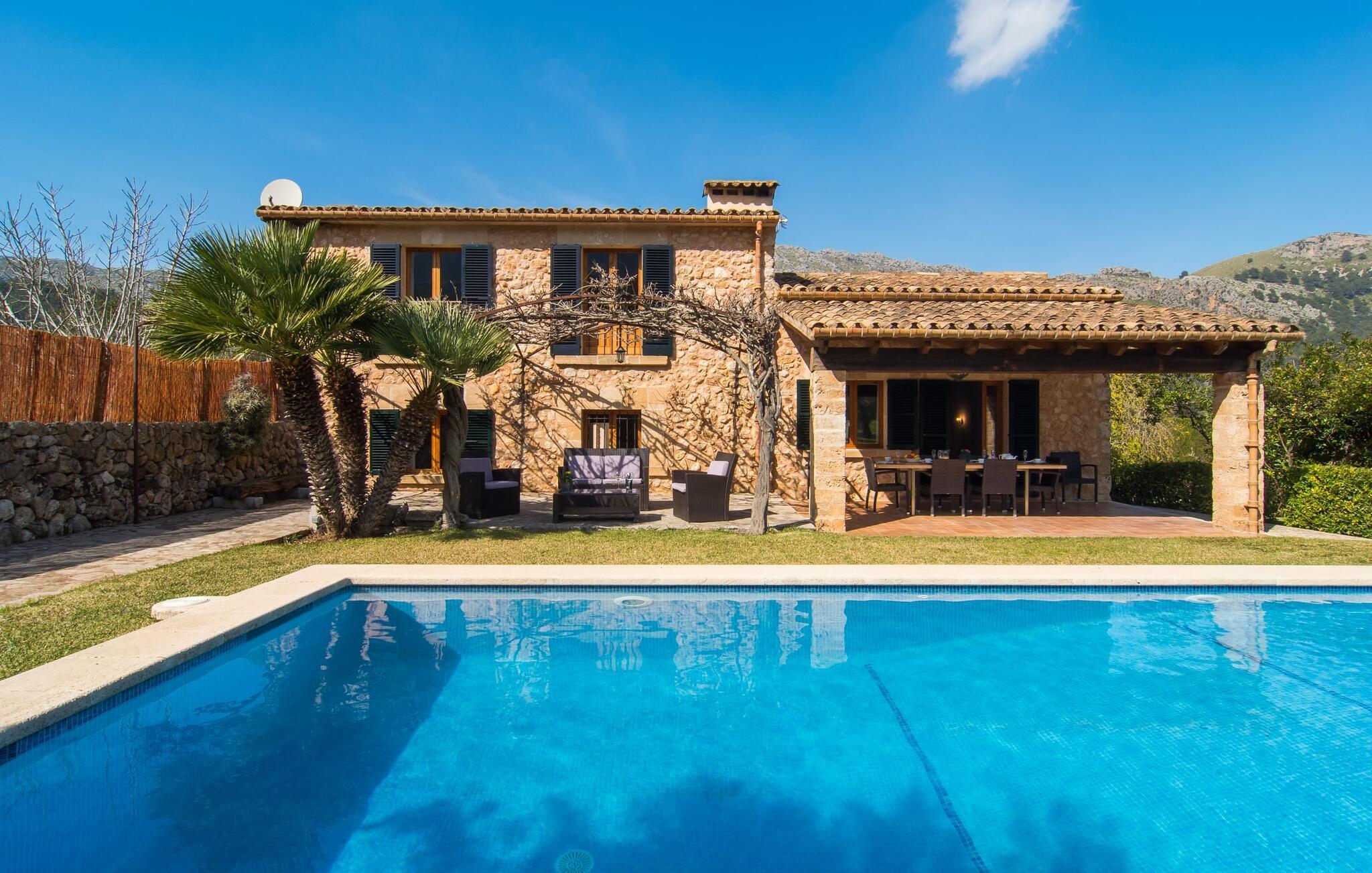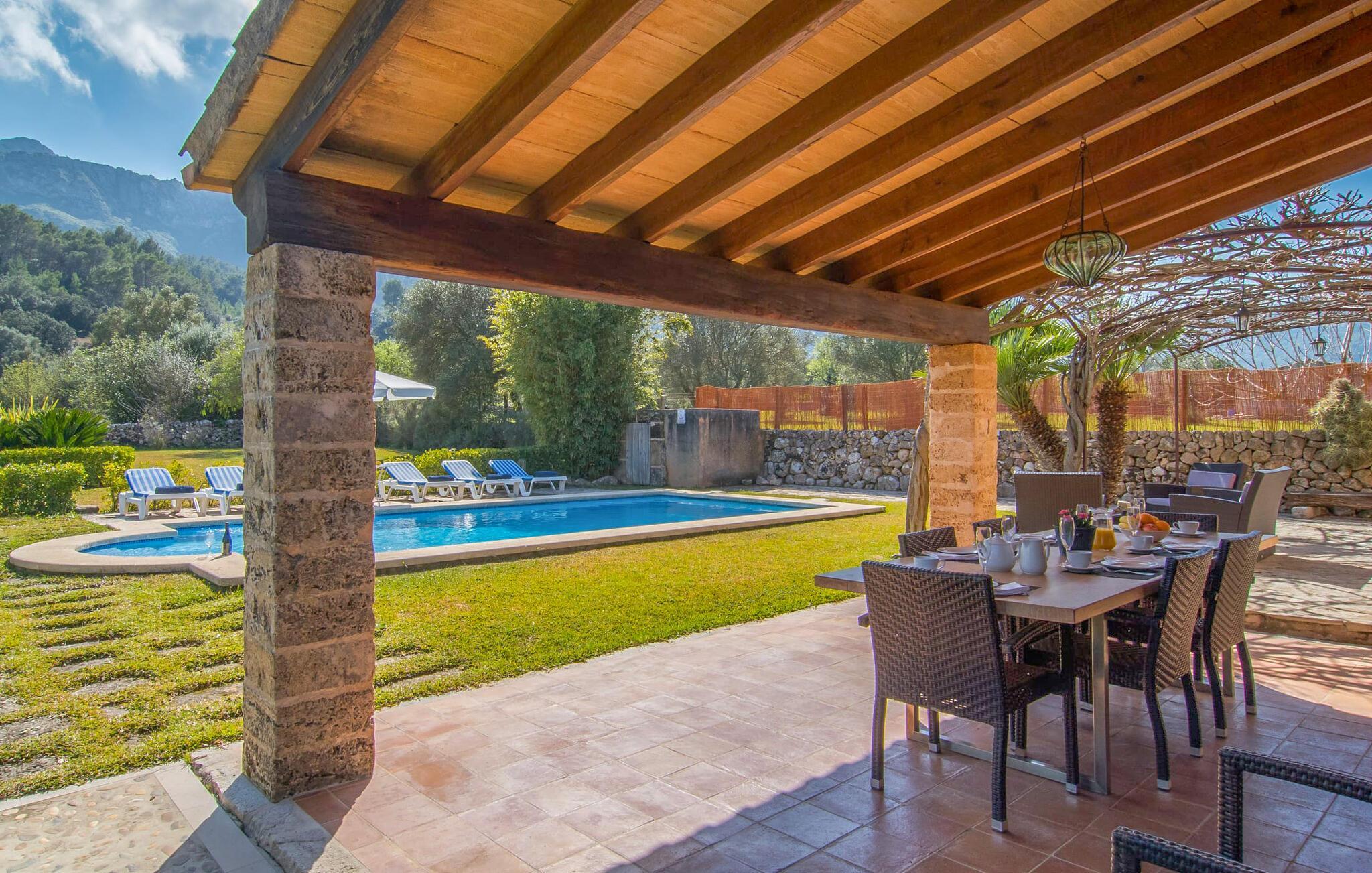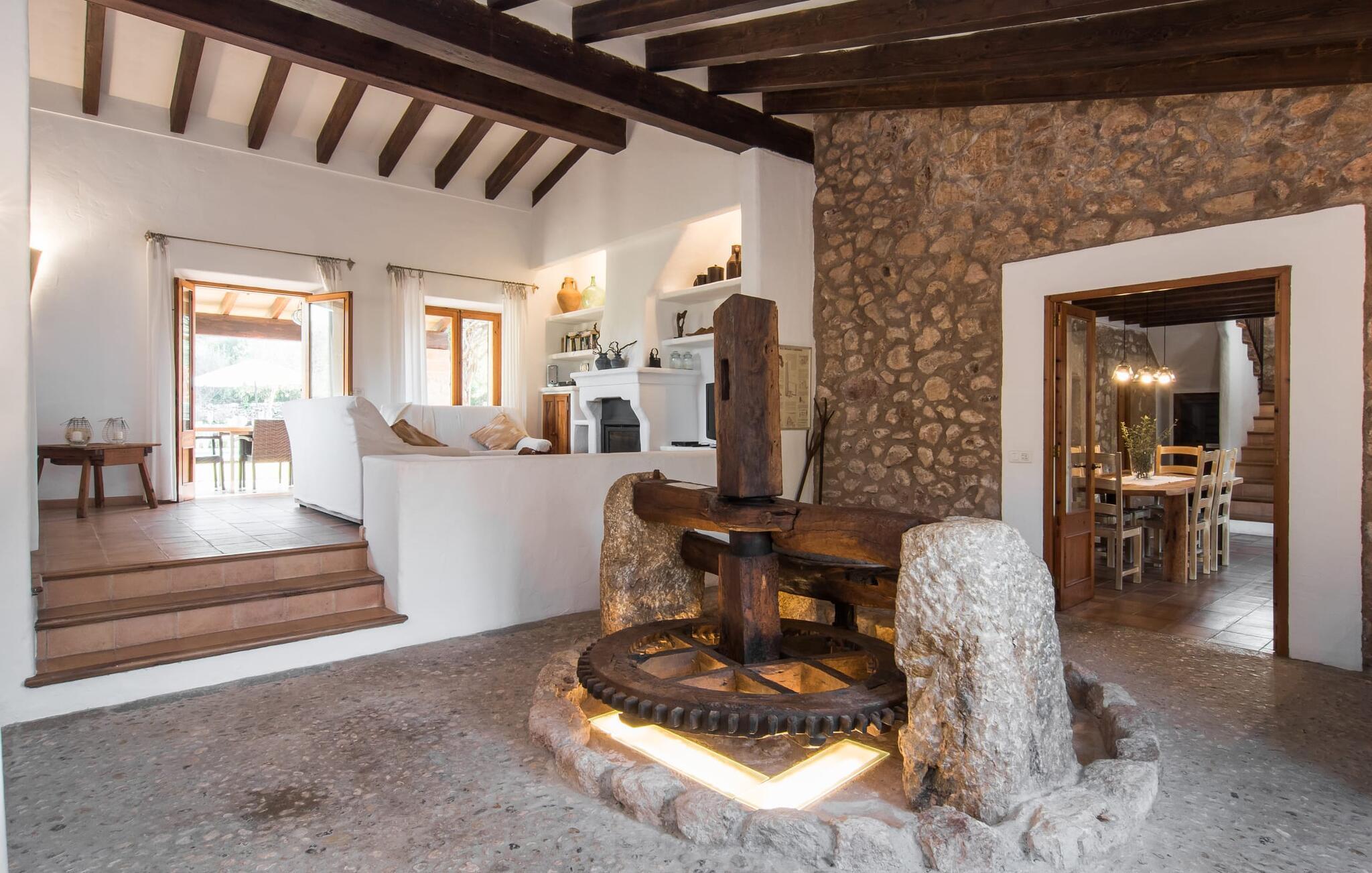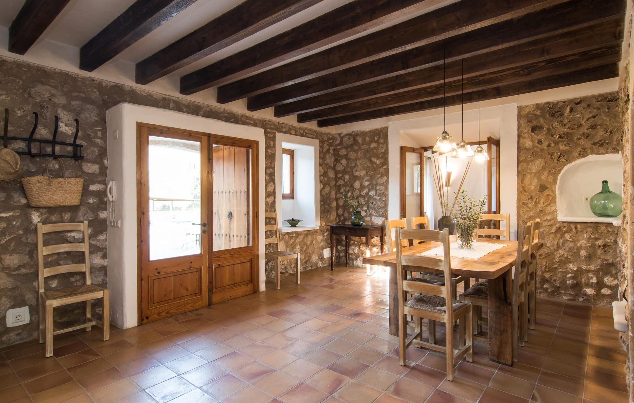 Denne bondegård i den nordlige del af Mallorca er en sand perle og venter på op til otte feriegæster, der ønsker at tilbringe en dejlig tid i en rolig atmosfære. Omgivelserne kunne næsten ikke være mere maleriske: i det fjerne de imponerende Tramuntana-bjerge, omkring ejendommen er der en grøn slette med enge, marker og mange gamle træer - ren idyl! Dette fortsætter harmonisk på fincaens egen ejendom, som er dekorativt omsluttet af stengærder og hække: Her veksler græsplæner og terrassearealer, og middelhavsplanter liver med held helhedsbilledet op. Behageligt tæt på huset indbyder poolen, som nemt kan nås via romerske trappetrin, til at køle af, plaske rundt og svømme og selvfølgelig er der en praktisk udendørs bruser. Komfortable liggestole er tilgængelige til solbadning - og til at sidde er der den overdækkede terrasse med et loungeområde og spisebord med udsigt over poolområdet, haven og bjerget i baggrunden. På den modsatte side af huset giver et andet stort terrasseområde mulighed for at sidde al fresco eller bruge de vidunderlige udendørs køkken muligheder til at forberede og nyde dine ferie delikatesser al fresco. En velholdt, indbydende lys landstedsstemning præger interiøret i "Can Peric". Lige ved siden af terrassen er der en hyggelig, delvist muret opholdsstue med komfortable sofaer, et fjernsyn og en hyggelig pejs. Et par trin fører til det traditionelt anlagte gulv med natursten omkring den gamle, oprindeligt oplyste møllesten, som er et vidne om husets historie og et enestående blikfang. Du kan spise indendørs ved det tilstødende spisebord i den rustikke atmosfære af naturstensvæggene. Det fuldt udstyrede køkken er bekvemt lige rundt om hjørnet. På denne stueplan er der også et soveværelse med dobbeltseng og et badeværelse. På øverste etage er der to dobbeltværelser med dobbeltsenge, et soveværelse med to enkeltsenge og to badeværelser. Alle soveværelser skaber en meget hyggelig atmosfære med lyse farver og masser af træ - den bedste forudsætning for at tilbringe hyggelige nætter i dette rolige område. Dette skønne feriehus på Mallorca, som ligger ca. 8 km vest for den maleriske by Pollenca, scorer ikke kun point med sin vidunderligt smukke, rolige beliggenhed. Du kan gøre dine daglige indkøb i landsbyen. Den indbydende strand Platja de Port de Pollença ligger omkring 11 km væk, og den populære by Alcúdia kan nås på lidt over 20 minutter med udlejningsbil. Dette er et Fincallorca feriehus.