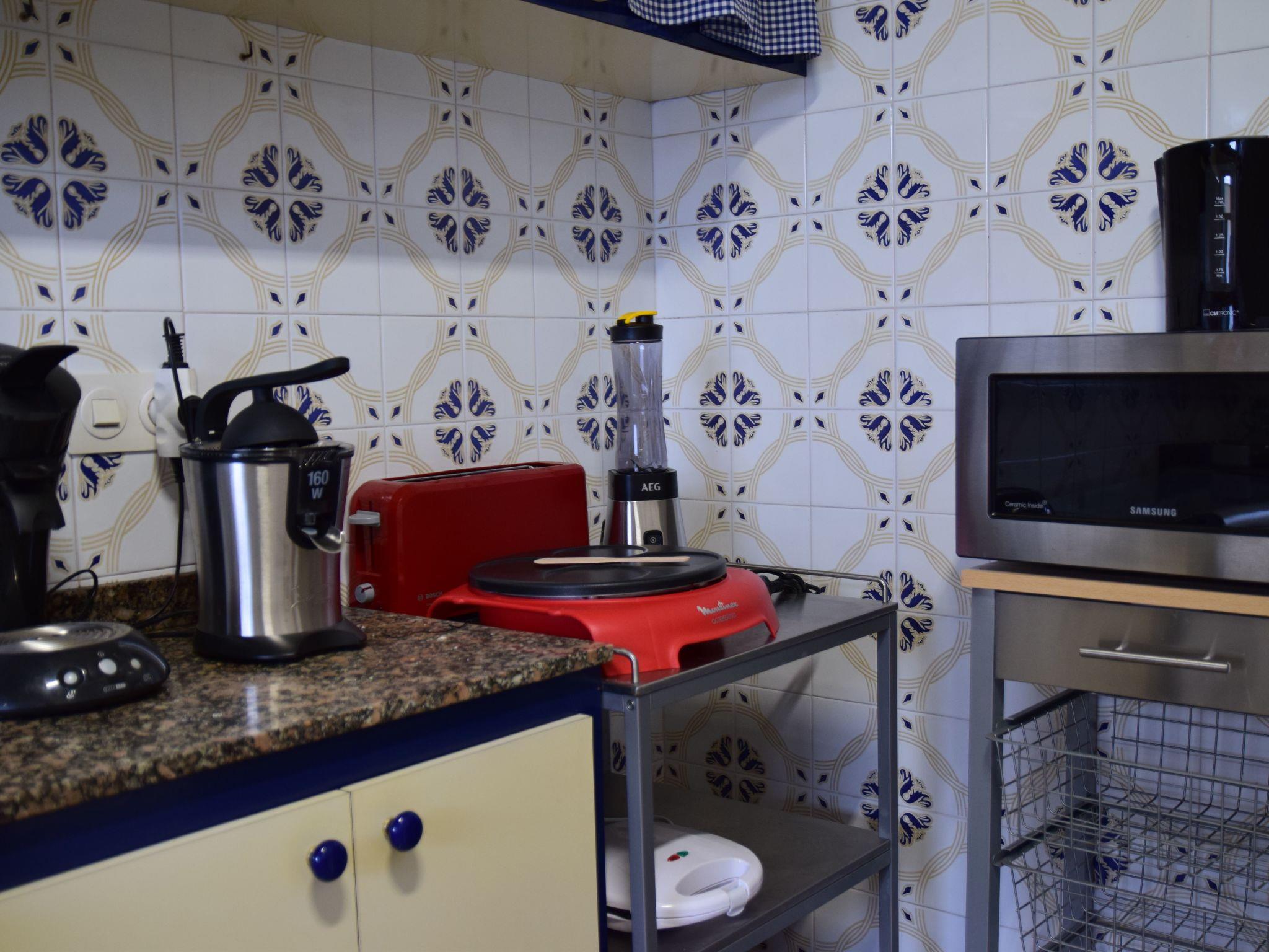 It is a spacious and cosy semi-detached house of about 175 m2, very bright, well ventilated, with wifi internet connection, eclectically decorated with Majorcan details and consisting of two floors. On the ground floor there are 3 bedrooms with air conditioning and heat pump in each one of them, with a capacity for 6 people; 2 bathrooms, one with shower and the other one with bathtub and shower; the kitchen which, apart from the corresponding kitchenware, crockery and cutlery, has a very complete equipment (microwave, fridge with freezer, butane gas hob and oven, toaster, coffee maker, kettle, sandwich maker, mixer, juicer, blender....); dishwasher; washing machine; laundry room with iron and ironing board; large living-dining room with air conditioning and heat pump and fireplace; indoor fixed and portable barbecue and a large outdoor terrace with side planters. On the upper floor, there is an auxiliary room for leisure, reading or work with air conditioning and heat pump, with a terrace-solarium next to it.