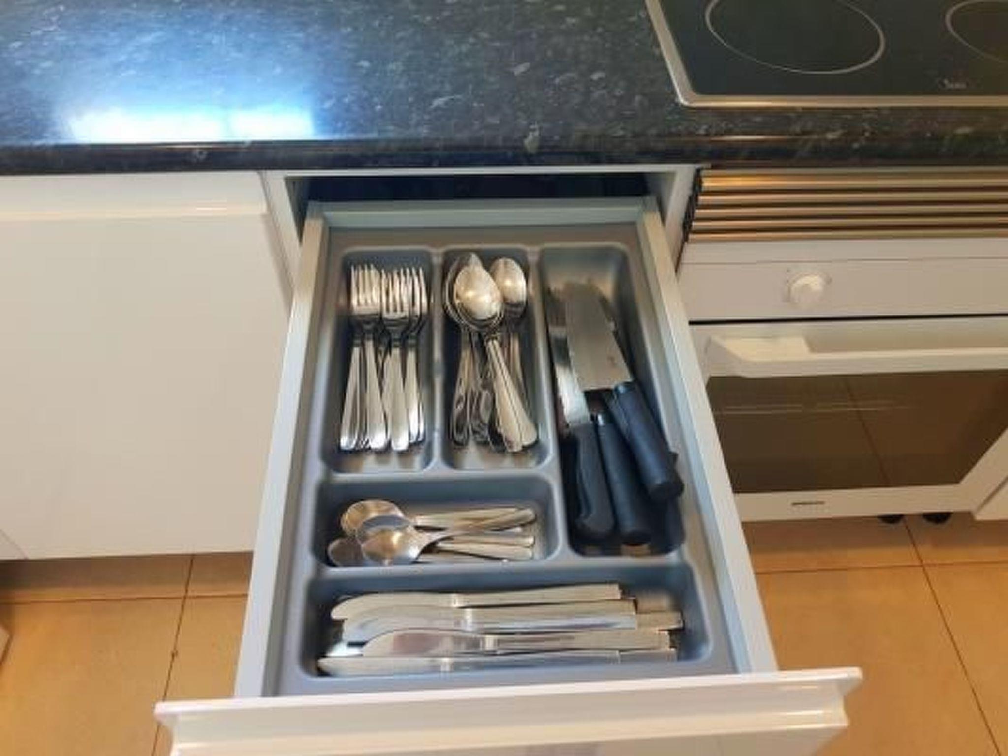 Well furnished, 4 bedrooms, 4 bathrooms, small kitchen: fridge, oven, toaster, coffee maker, kettle, etc., living room: WiFi, flat screen TV (German), sofa, floor-to-ceiling windows, table, chairs. Air conditioning everywhere, so each of the 4 rooms and the living area can be controlled separately.