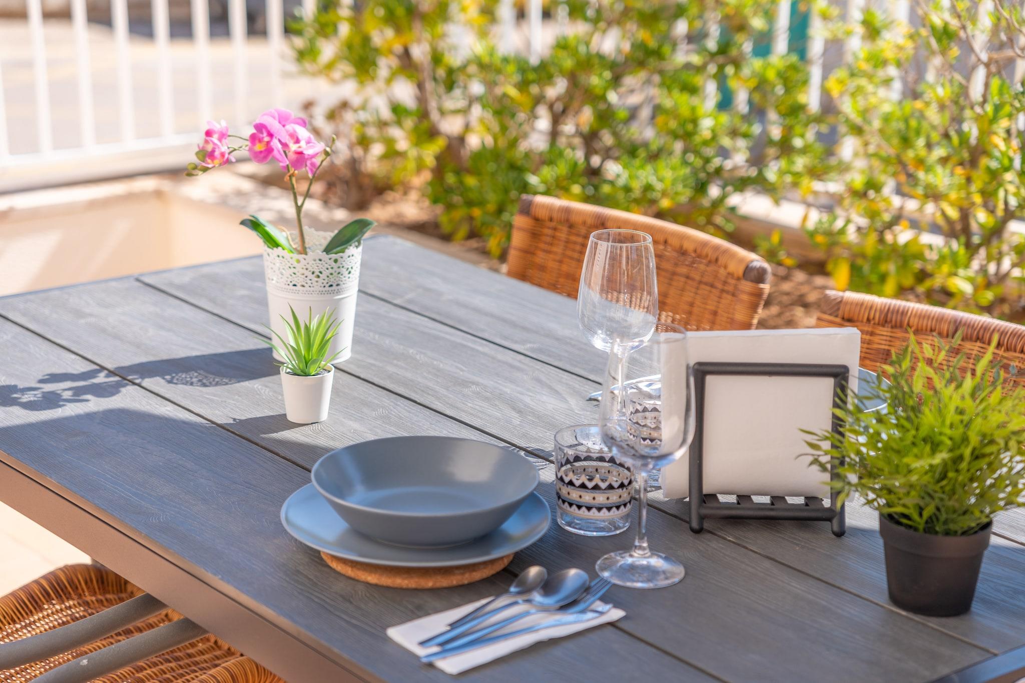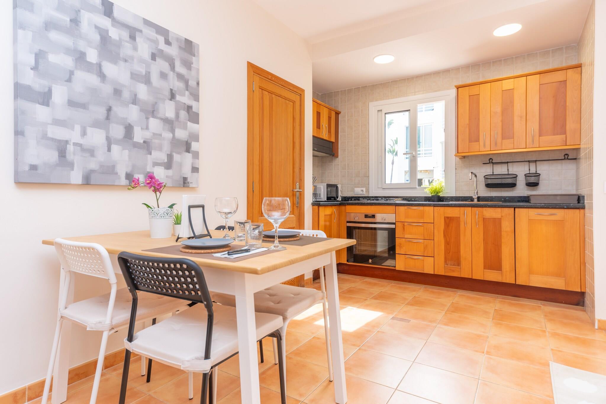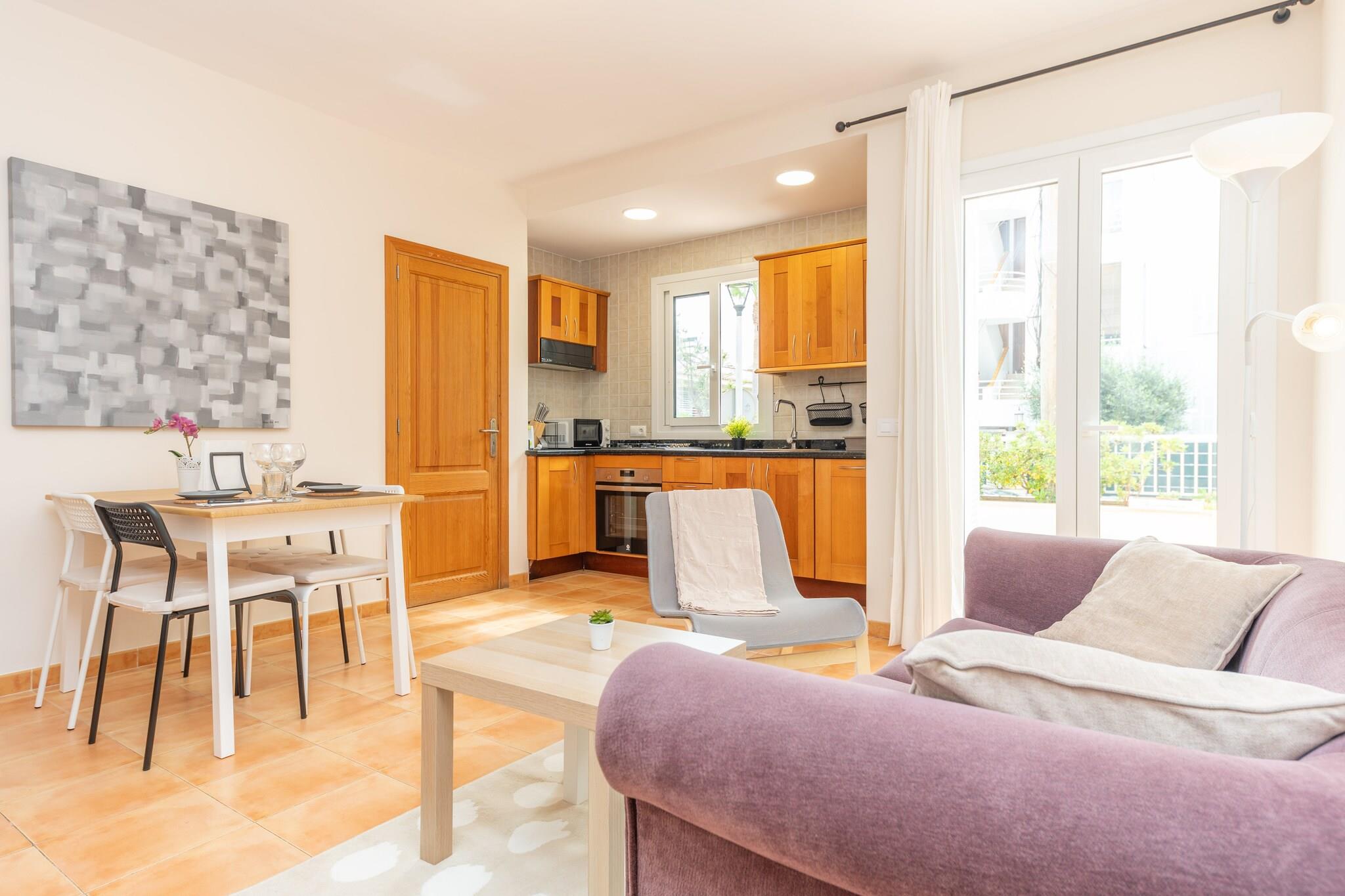 Indbydende kystflugt Begynd dine morgener på terrassen med morgenmad og solskin, planlæg dagen med dine kære. Det nærliggende gyldne sand i Ca'n Picafort er kun en kort gåtur væk, perfekt til en forfriskende dukkert eller en fredelig gåtur ved kysten. Uanset om du foretrækker at starte langsomt med en bog udendørs eller tidligt ud på eventyr, sætter hjemmets beroligende atmosfære den rigtige tone. Komfortabel moderne livsstil Renoveret i 2024, lejligheden kombinerer frisk indretning med gennemtænkt design. Den åbne planløsning og spisestue, afkølet med aircondition, er ideel til at samles efter strandudflugter. Køkkenet med gaskomfur gør det nemt at tilberede måltider, mens et vaskerum med vaskemaskine og strygefaciliteter tilføjer bekvemmelighed. To soveværelser med dobbeltsenge sikrer afslappende nætter, og familier vil sætte pris på barnesengen, højstolen og radiatoren. Badeværelset med badekar fuldender opsætningen til et afslappet ophold. Livlige landsbyomgivelser Ca'n Picafort tilbyder en indbydende blanding af lokalt liv og energi ved havet. Inden for få minutter finder du caféer, isbarer, butikker og supermarkeder til hverdagens behov. Restauranterne ved havet er kendt for friske fisk og skaldyr og middelhavssmag, som bedst nydes efter solnedgang gåture langs promenaden. Golfentusiaster kan tage til Alcanadas naturskønne bane kun 14 km væk, mens Alcúdias havn og historiske steder er en kort køretur. Med alt lige ved hånden gør dette kysttilflugtssted det nemt at udforske Mallorca.