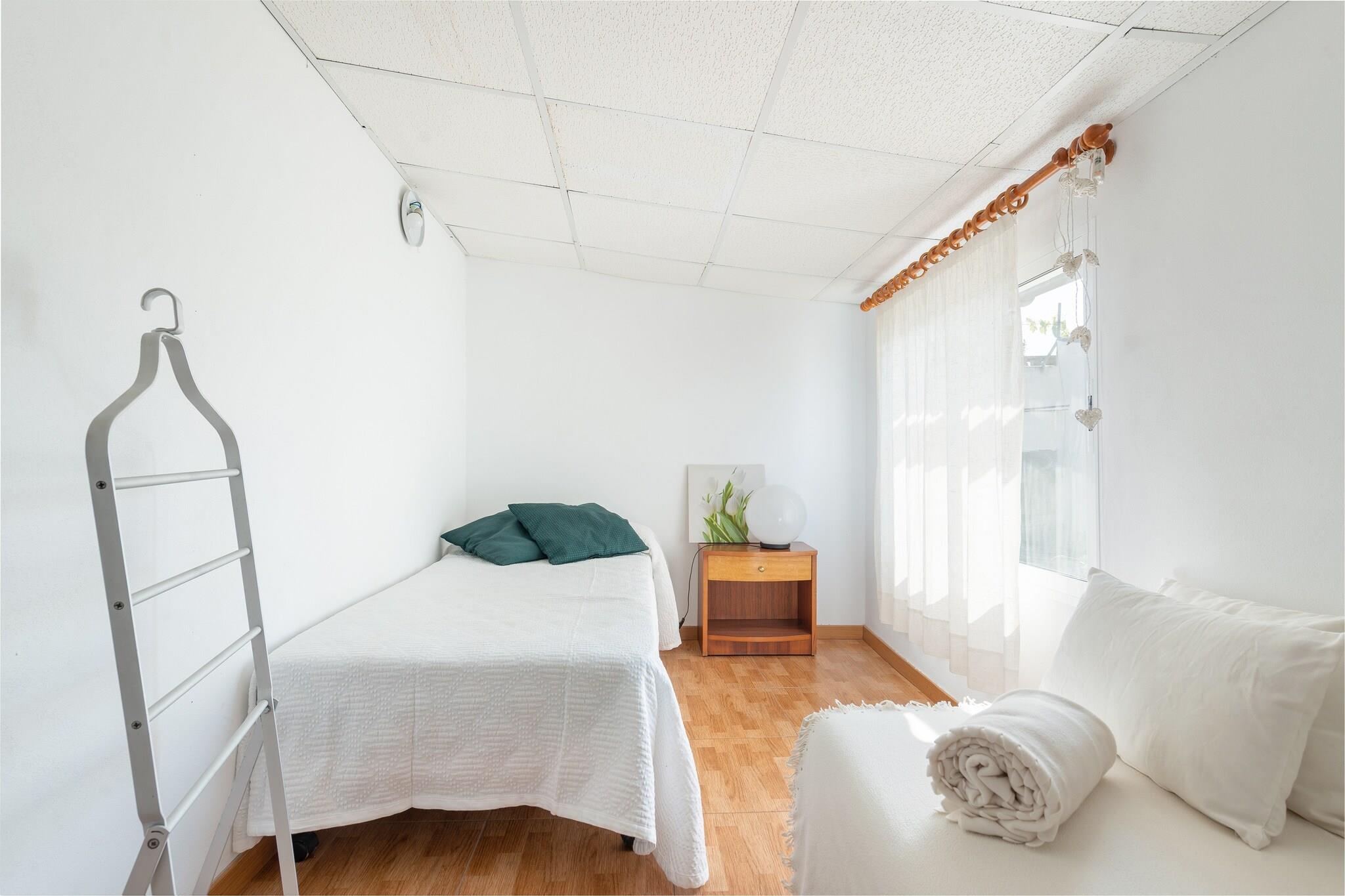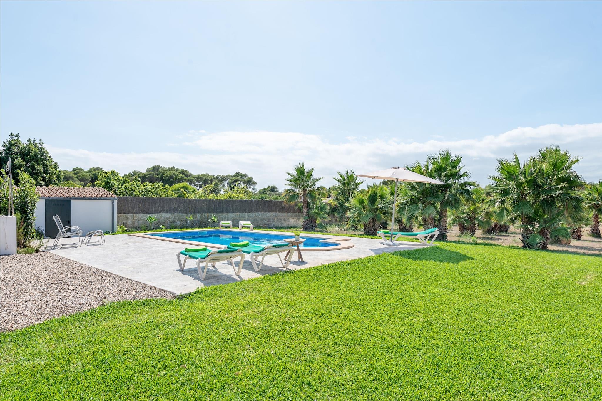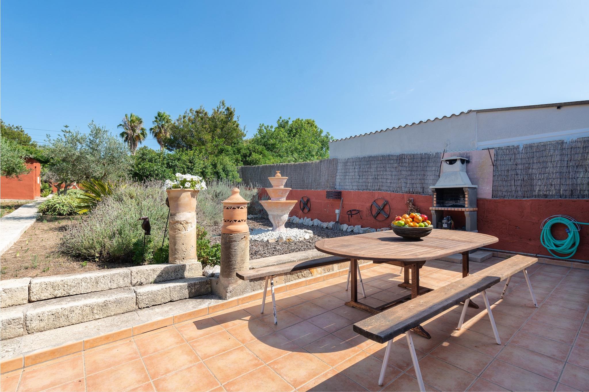 Nyd en fredelig flugt i denne charmerende villa beliggende kun 900 meter fra den smukke strand i Can Picafort. Den private saltvandspool (8x4m, dybde 1,4–1,9m) er omgivet af seks liggestole og en parasol, perfekt til at slikke solen. Spis al fresco på den rummelige terrasse eller nyd en grill i den møblerede veranda, komplet med et udendørs badeværelse for ekstra bekvemmelighed. Børn vil elske den naturlige have med frugttræer, og gæsterne kan endda bruge friske æg fra stedets hønsegård. Indenfor byder et-etagershuset på en hyggelig stue med satellit-tv, en rustik spiseplads med pejs og et andet tv, og et fuldt udstyret køkken med el-komfur, ovn, køleskab og mikroovn. De to soveværelser har hver en dobbeltseng, AC og et skab - det ene med direkte adgang til haven. Et brusebadeværelse, vaskerum med vaskemaskine og strygejern og faciliteter til babyer fuldender interiøret. Beliggende i et roligt, men centralt område, er du tæt på butikker, restauranter og fantastiske dagsture som Alcudia, Pollensa og S'Albufera. Kæledyr og arrangementer er ikke tilladt. Der er udvendig parkering til 3 biler. Ecotasa (turistskat) gælder.