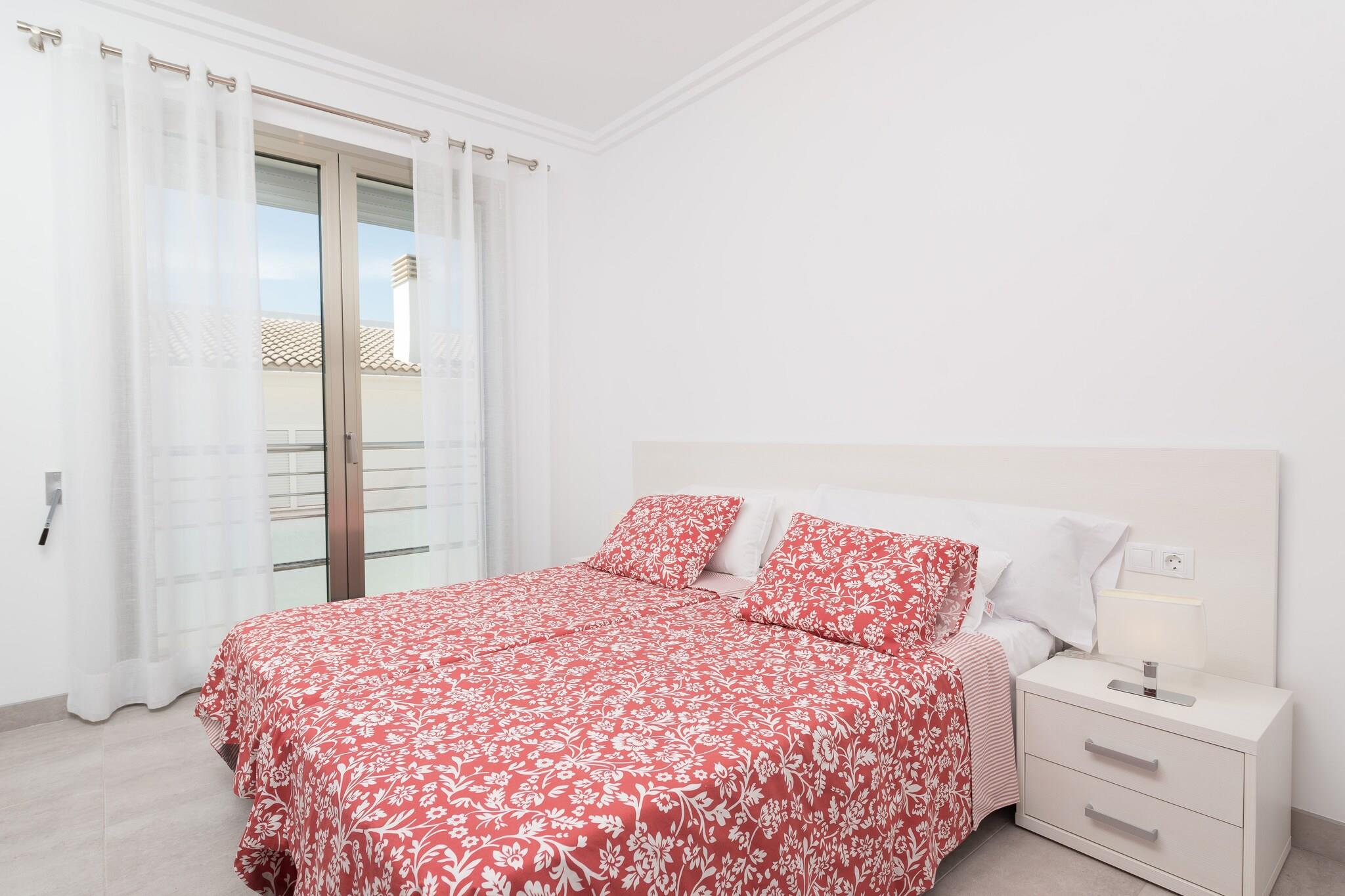 Nyd det bedste fra begge verdener i dette dejlige moderne hjem i middelhavsstil, beliggende i et roligt område i Can Picafort. Med to terrasser - foran og bagved - er bagterrassen perfekt til middage under åben himmel eller morgenmad under en stor parasol. En mobil grill er tilgængelig for grillede lækkerier. Den indhegnede ejendom tilbyder privatliv med naboer i nærheden. Huset er bygget i 2017 og har lyst, farverigt interiør med stentøjsgulve og smagfuld indretning. Den rummelige stue åbner til en spiseplads til seks og forbinder til den bageste terrasse, hvilket gør udendørs spisning bekvemt. Køkkenet er udstyret med en keramisk kogeplade, mikroovn og det nødvendige til enkel tilberedning af måltider. Ovenpå omfatter tre solrige soveværelser to tvillinger (en en-suite) og en dobbeltseng. Der er tre badeværelser - det ene med badekar. Aircondition med kanaler (kun koldt), 2 barnesenge og 2 høje stole fuldender faciliteterne. Kun 0,5 km fra Playa de Muros fine sandstrand med barer, restauranter og butikker, og tæt på golf ved Alcanada. Ingen kæledyr eller arrangementer tilladt.