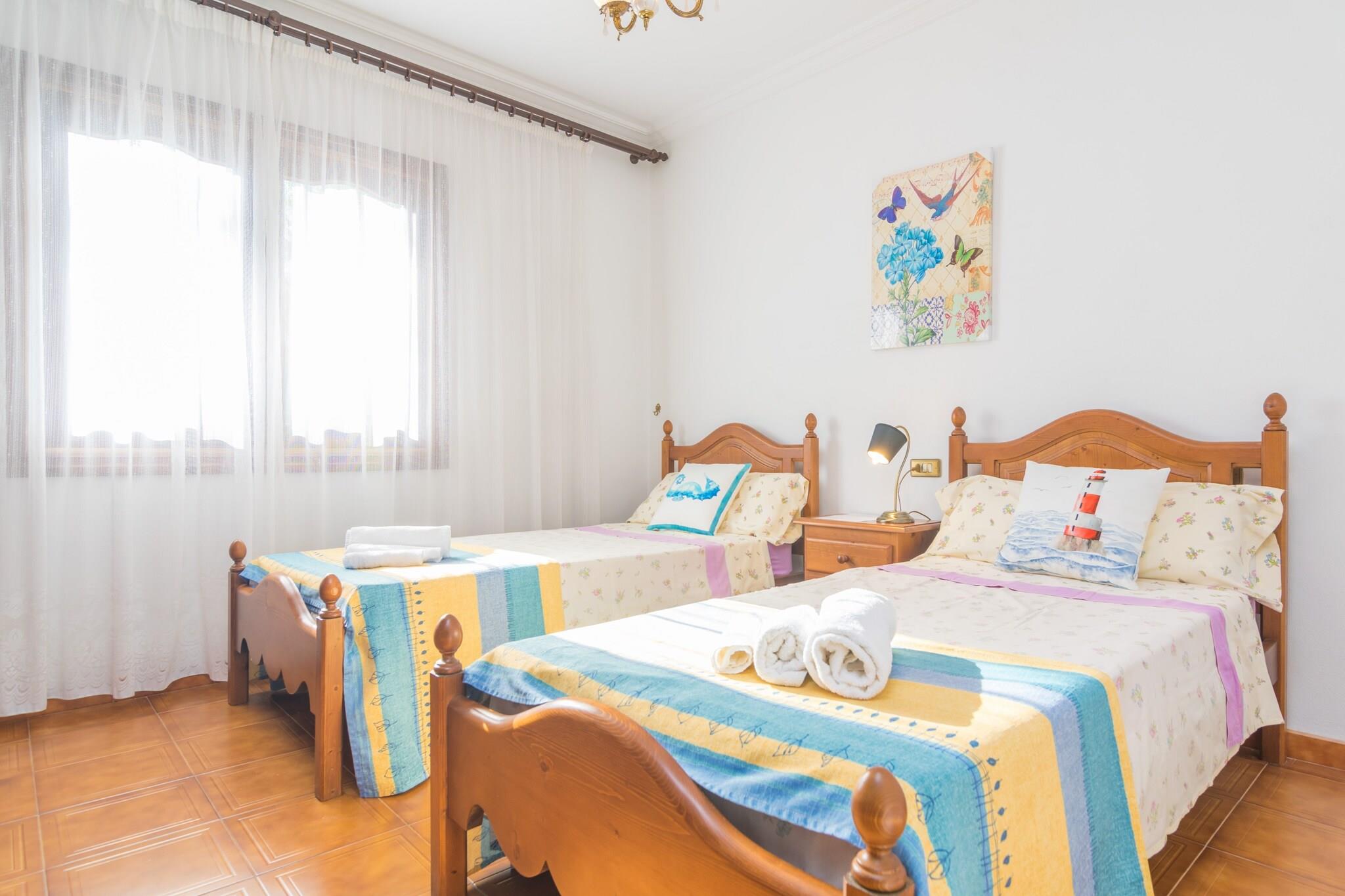 En storslået terrasse venter på dig på forsiden af dette kystnære urbaniseringshus, hvor du kan nyde en god kaffe, appelsinjuice eller en lækker skål korn, inden du begiver dig ud på din dag på stranden. Når du vender tilbage, kan du nyde et velsmagende måltid under paraplyen eller en udendørs middag i den blide havbrise. Indenfor finder du en stor stue-spisestue, traditionel stil, men meget komfortabel, med to komfortable sofaer til at se satellit-tv eller chatte sammen. Bemærk venligst, at pejsen er dekorativ. Så er der et stort køkken, udstyret med gaskomfur, ovn, mikroovn, opvaskemaskine, lange bordplader og bord og stole, hvis du synes, det er mere bekvemt at spise her. Bag køkkendøren er vaskerum med vaskemaskine, strygejern og strygebræt samt trappe til overetagen. Til hvile er der fem soveværelser, fire af dem med garderobeskabe. Nedenunder er der to af dem med to enkeltsenge og ventilator, samt badeværelse med badekar, der betjener gulvet. Ovenpå er resten af soveværelserne, to med en dobbeltseng og et med en enkeltseng, samt to badeværelser, et med badekar og et med bruser, og en anden stue med aircondition. Omgivelserne er meget velkendte, da området Can Picafort er karakteriseret ved at være et roligt, men meget livligt sted på grund af dets store udvalg af butikker, restauranter, isbarer ved havet og dens lange promenade ud til stranden, som kun er 350 m væk. Dets kilometervis af fint sand og det rolige, krystalklare vand inviterer dig til at tage en dukkert og nyde vandsport som windsurfing, kitesurfing og jetski. Og hvis du kan lide golf, er den nærmeste golfbane kun 14 km væk, Alcanada golfklub. Turistlicens: ETV/5530 Som reaktion på Coronavirus (COVID-19) er yderligere sikkerheds- og sanitære foranstaltninger i kraft på denne ejendom.
