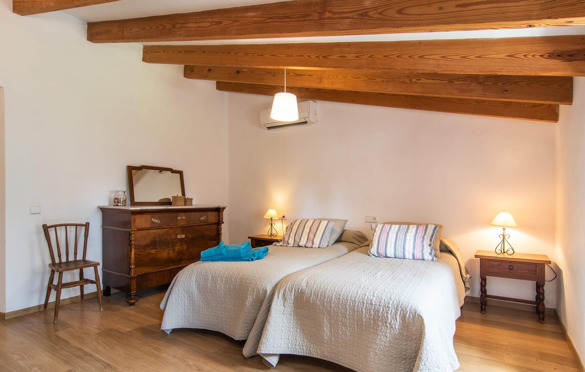 Den smukke villa "Can Pintad" er perfekt indlejret i den vidunderlige landlige idyl i udkanten af Ruberts, en virkelig malerisk bygd i centrum af øen. Det første, som dette feriehus udstråler, er absolut komfort. Isolationen her betyder, at du straks kan nyde følelsen af fuldstændig privatliv, hvilket fremmer en langsigtet følelse af regenerering. Der er ingen gadestøj i villaen. Afhængigt af vinden kan flystøj være hørbar. Den maleriske have er præget af frodig middelhavsgrønt. Smukke naturstensfliser, nicher og hjørner samt trapper og vægge løsner behageligt op for billedet. Midt i dette smukke, rustikke udeområde finder vi forskellige attraktive siddepladser, der indbyder til at blive hængende. Ved de to borde kan du nyde dine måltider udendørs og fordybe dig i den landlige atmosfære. Da der er naturlig skygge på ethvert tidspunkt af dagen, vil du altid finde et behageligt sted. En særlig fornøjelse er en aftengrill i mildt vejr. Du kan bruge grillen til at tilberede regionale delikatesser til dit hjertes lyst. En smukt designet, børnesikker indhegnet pool med naturstensmur og terrasse inviterer dig til en lang svømmetur. I en længde på otte meter kan du svømme længder og forfriske dig på varme dage. I poolen, der er opdelt i forskellige niveauer og flisebelagt med dekorative grønne mosaiksten, glitrer vandet i en smuk turkis. Du kan slappe af af hjertens lyst på de medfølgende liggestole og måske endda slappe af. Dette er et Fincallorca feriehus. En moderne og velholdt stemning præger villaens indretning. Smukke gulvfliser, træbjælkelofter og hvide vægge indrammer den smagfulde indretning, som er smart indrettet i de rummelige værelser. I stuen er der rig mulighed for en række forskellige afslapningsaktiviteter, det være sig at læse, se tv eller simpelthen ikke lave noget. På kolde aftener kan du sidde behageligt og varmt foran bålet. Et andet lysbelyst opholdsområde med lænestole giver mulighed for at trække sig tilbage alene eller i mindre grupper efter behov. Spillelokalet i dette område er bestemt attraktivt. Køkkenrummet er meget rummeligt og er praktisk forbundet med spisepladsen i et åbent design. Det halvcirkelformede vindue, moderne indretning og overdådige plads vil inspirere dig til at tilberede måltider sammen her. Ideelt set er den fuldt udstyret med alt, hvad du har brug for til dine daglige behov, inklusive en filterkaffemaskine og en kedel. Ved det smukke spisebord kan I nyde et velsmagende indendørs måltid sammen i en hyggelig atmosfære. Der er også en pejs her, som helt sikkert vil tjene dig godt på de sjældne kølige aftener. En attraktiv entre og trapper fører dig ovenpå. I de tre stilfuldt designede soveværelser finder du afslappende fred og afslapning fra dagen. Du finder ingen unødvendige klokker og fløjter her. I stedet dominerer klarhed og en munter, men diskret farvekombination her på en behagelig måde. Der er to senge, der måler 0,9 x 2 m til rådighed. Tre badeværelser, hvoraf det ene er ensuite, byder på naturligt lys og fremragende, moderne faciliteter. Et alarmsystem er også installeret i villaen for fuld sikkerhed. Ruberts blev erklæret et kulturarv i 2010. Kors langs vejkanten, en lille kirke og resterne af en talayotisk kultur fanger øjet her. Alt er fremragende bevaret og er blevet skånet for masseturisme. Strandene i Can Picafort og Son Serra de Marina ligger henholdsvis 30 og 40 minutter væk i bil. I Son Serra er der fint hvidt sand og skånsom adgang til vandet. Villaen "Can Pintad" fremstår i en absolut vellykket kombination af modernitet og romantik. Det er skjult i udkanten af den meget lille, landlige by Ruberts i centrum af øen. Lloret de Vista Alegre ligger kun 5 minutter væk i bil. Sineu og Algaida er også i nærheden (henholdsvis 7,5 og 12 km). Køreturen fra villaen til Mallorcas lufthavn tager 30 minutter.