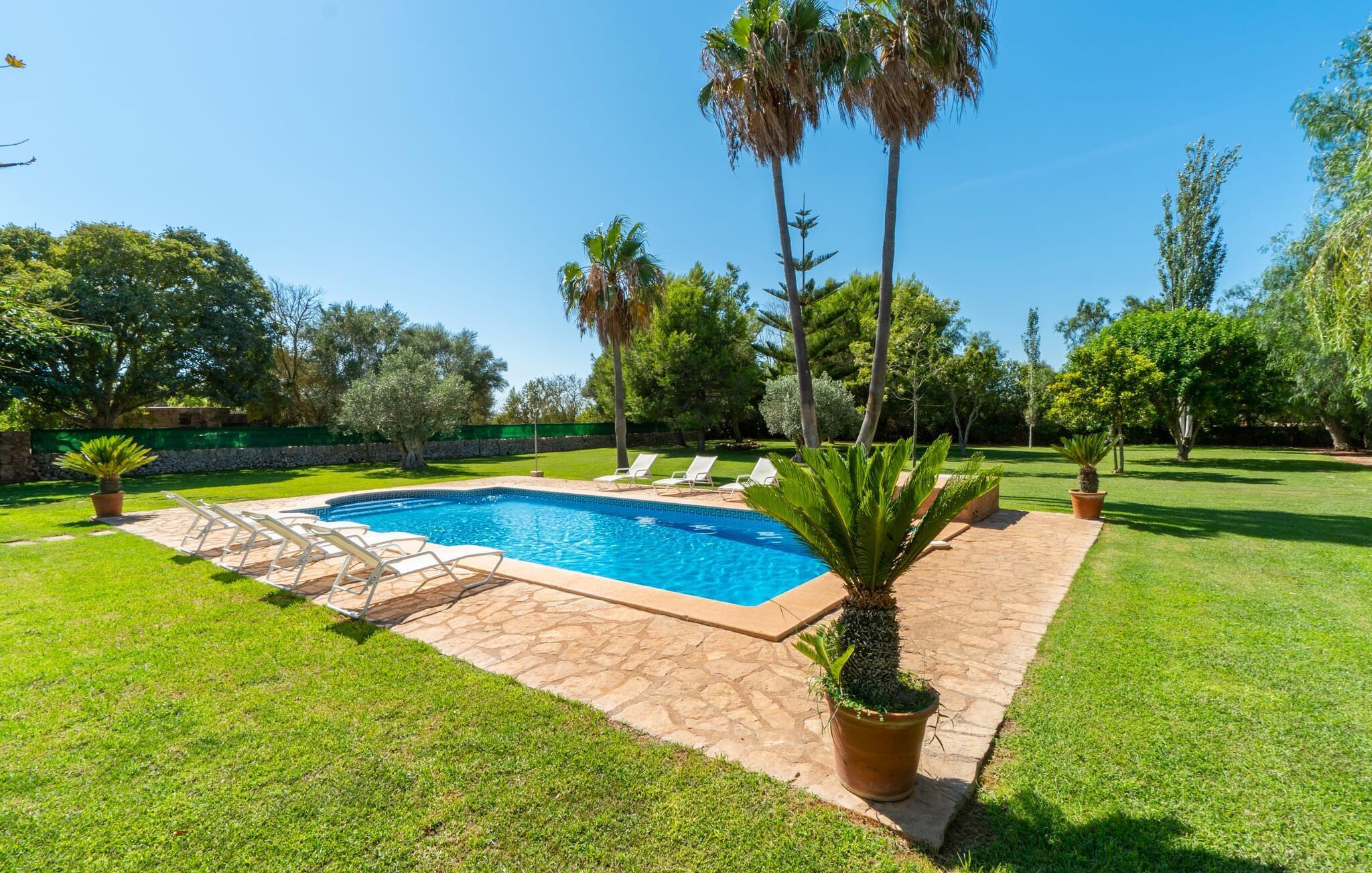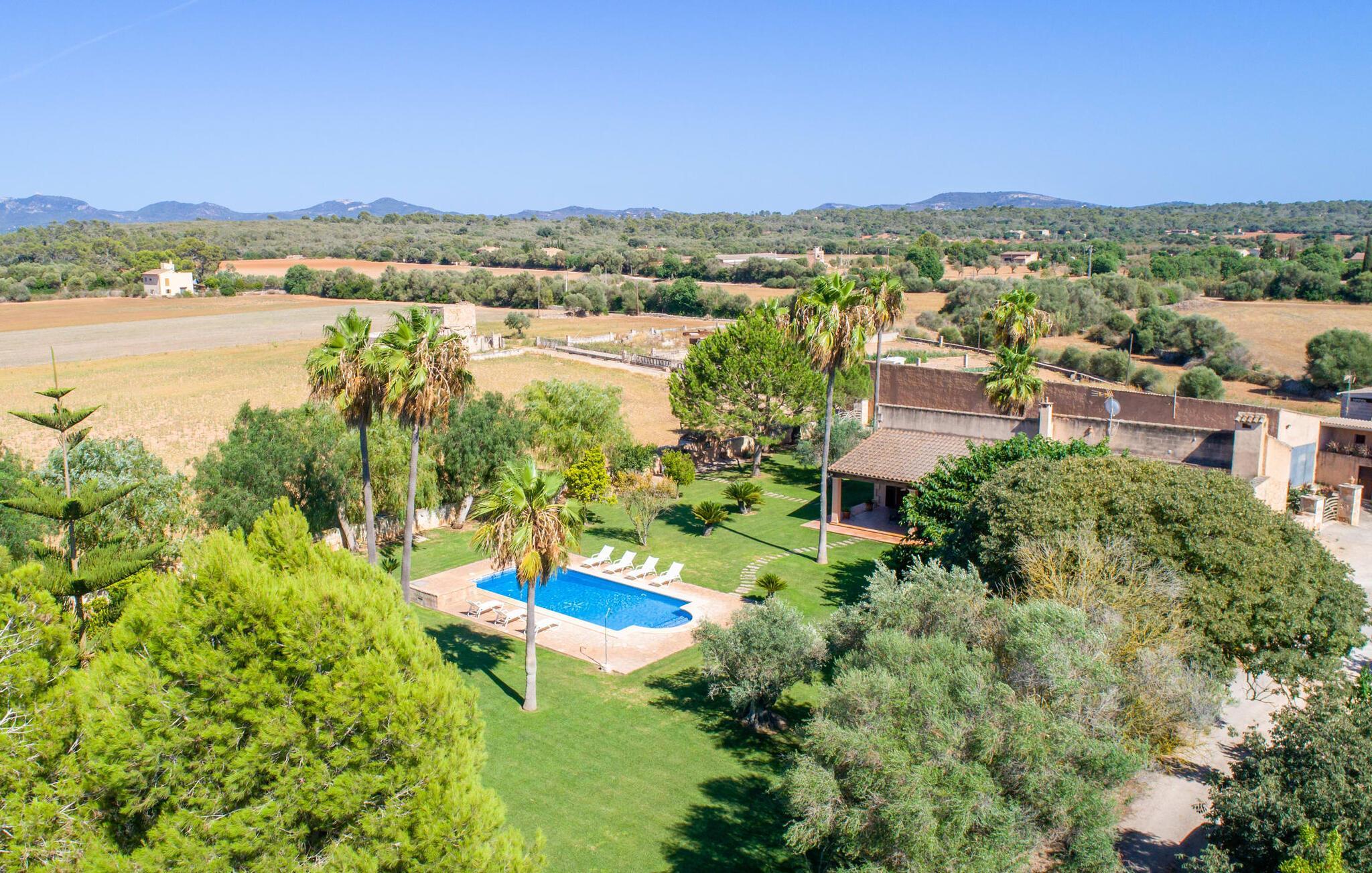 Din ferieejendom “Can Rei” har en stor have med naturplæne og indhegnet pool samt solterrasser, palmer og generelt smukke planter, fast grillplads og stor overdækket terrasse. Husets hjerte er den store og hyggelige stue-spisestue. Gennem en bred dobbeltdør kommer du ind i det rummelige køkken med pejs og endnu et spisebord. Fire soveværelser og to badeværelser kan nås via en entre. Tre af soveværelserne er udstyret med en dobbeltseng (180x200, 210x200, 135x200), et med to enkeltsenge (2 x 110x200) og et kontorhjørne. Stuehuset er komfortabelt udstyret, inklusive internet og fladskærms-tv. Det smukke bondehus "Can Rei" ligger kun ca. 6 km sydøst for Campos på den sydlige del af øen. I den lille by er der barer, restauranter og butikker til dine daglige behov; Et særligt højdepunkt er markedet med mange lækkerier lørdag. Godt 15 minutters kørsel væk byder Santanyi på en smuk gågade og flere kunstgallerier. Den velkendte Es Trenc strand, omkring 17 km fra stuehuset, er let at nå selv med små børn takket være dens lave skråning. Bemærk venligst, at denne ejendom ikke accepterer ungdomsgrupper eller polterabender. En ungdomsgruppe på denne ejendom består af personer under 30 år. Book ikke denne ejendom, hvis du er en ungdomsgruppe eller polterabend, da din reservation vil blive afvist, når den er booket, hvilket også kan være tilfældet ved ankomst til ejendommen eller under dit ophold, og du vil ikke modtage en refusion. Dette er et Fincallorca feriehus.