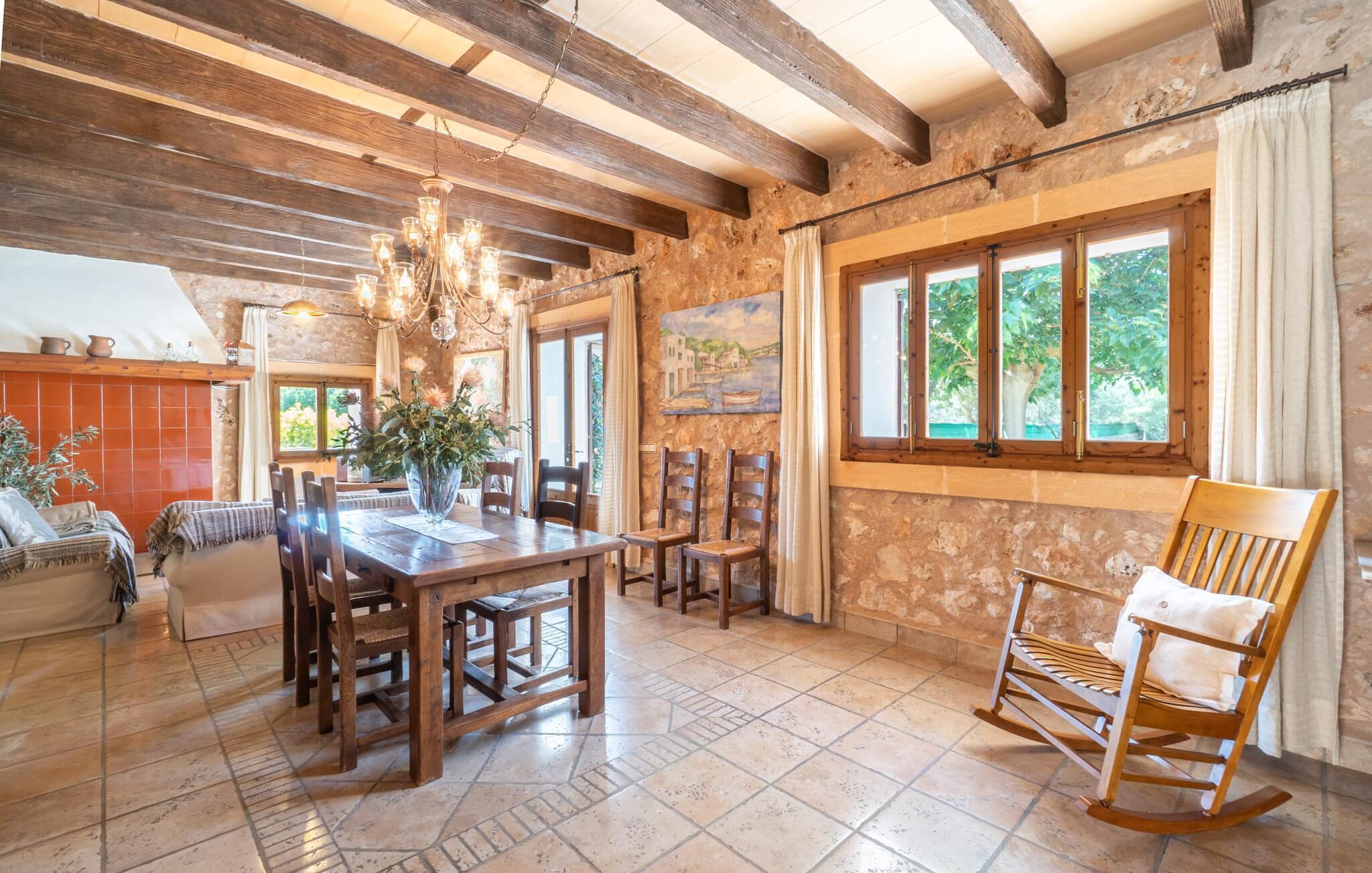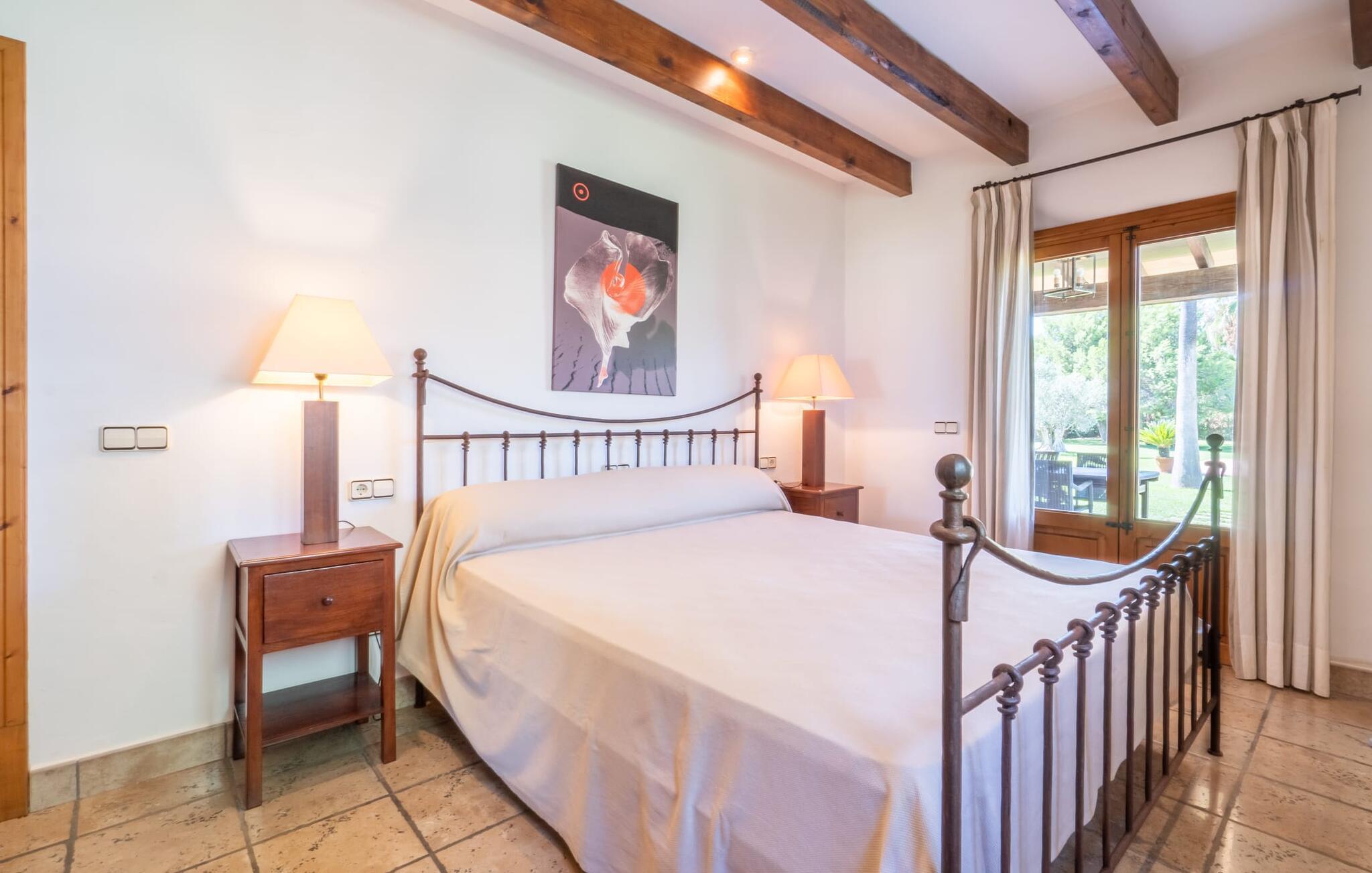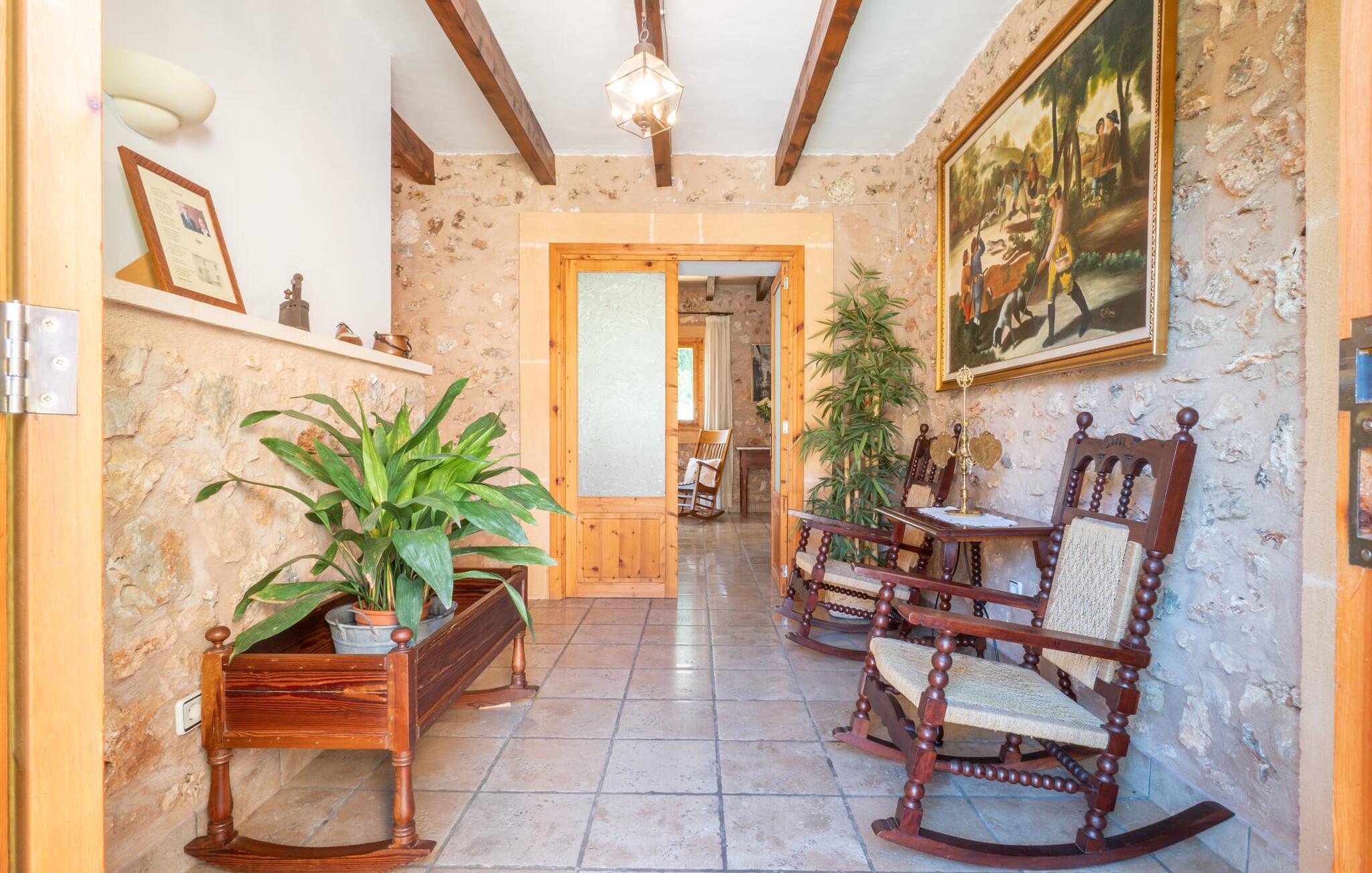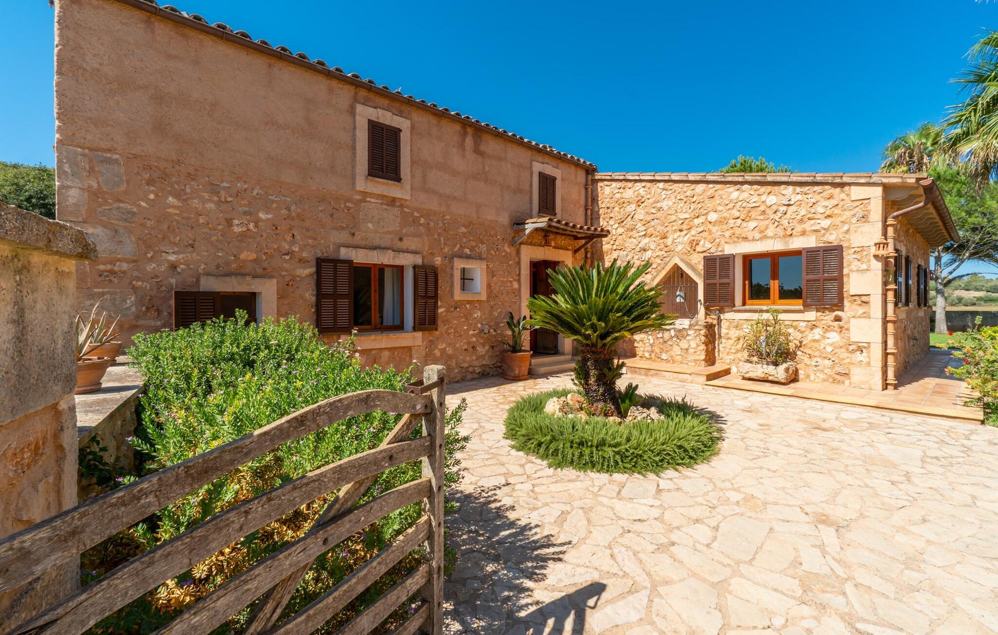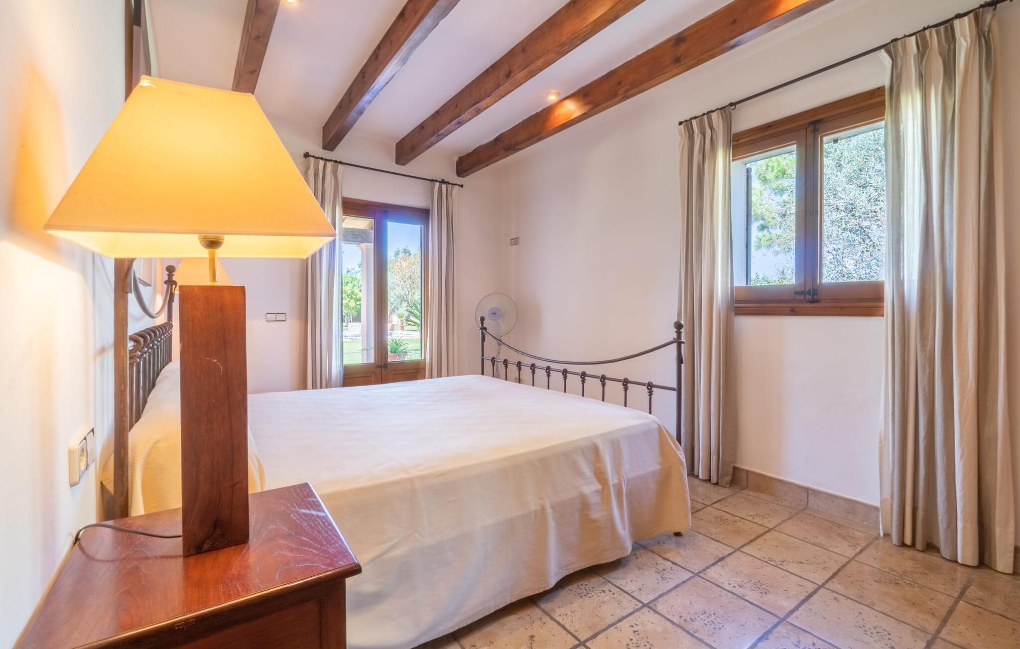 Din ferieejendom “Can Rei” har en stor have med naturplæne og indhegnet pool samt solterrasser, palmer og generelt smukke planter, fast grillplads og stor overdækket terrasse. Husets hjerte er den store og hyggelige stue-spisestue. Gennem en bred dobbeltdør kommer I ind i det rummelige køkken med pejs og endnu et spisebord. Fire soveværelser og to badeværelser kan nås via en entre. Tre af soveværelserne er udstyret med en dobbeltseng (180x200, 210x200, 135x200), et med to enkeltsenge (2 x 110x200) og et kontorhjørne. Stuehuset er komfortabelt udstyret, inklusive internet og fladskærms-tv. Det smukke bondehus "Can Rei" ligger kun ca. 6 km sydøst for Campos på den sydlige del af øen. I den lille by er der barer, restauranter og butikker til jeres daglige behov; Et særligt højdepunkt er markedet med mange lækkerier lørdag. Godt 15 minutters kørsel væk byder Santanyi på en smuk gågade og flere kunstgallerier. Den velkendte Es Trenc strand, omkring 17 km fra stuehuset, er let at nå selv med små børn takket være dens lave skråning. Bemærk venligst, at denne ejendom ikke accepterer ungdomsgrupper eller polterabender. En ungdomsgruppe på denne ejendom består af personer under 30 år. Book ikke denne ejendom, hvis I er en ungdomsgruppe eller polterabend, da jeres reservation vil blive afvist, når den er booket, hvilket også kan være tilfældet ved ankomst til ejendommen eller under jeres ophold, og I vil ikke modtage en refusion.