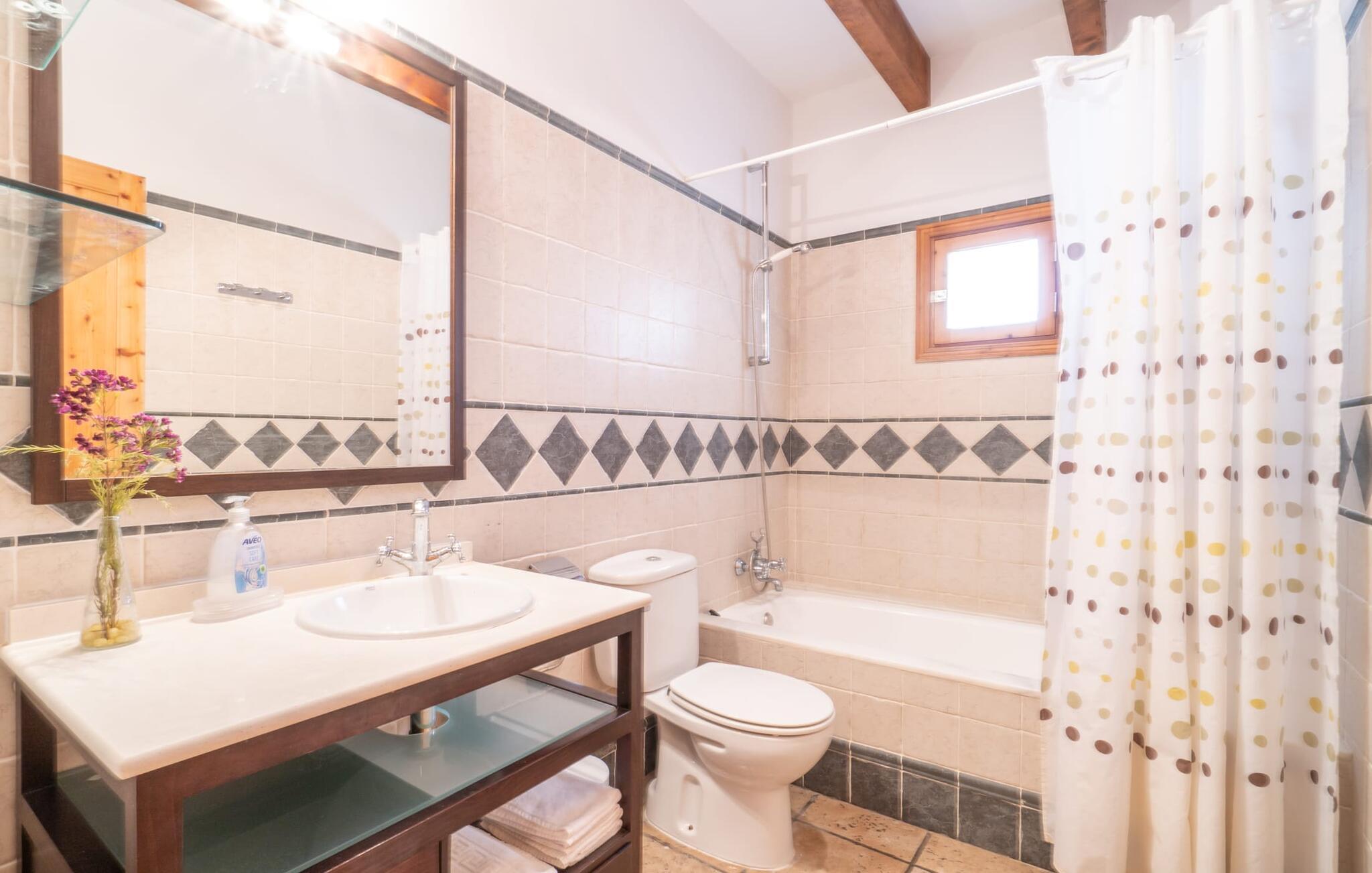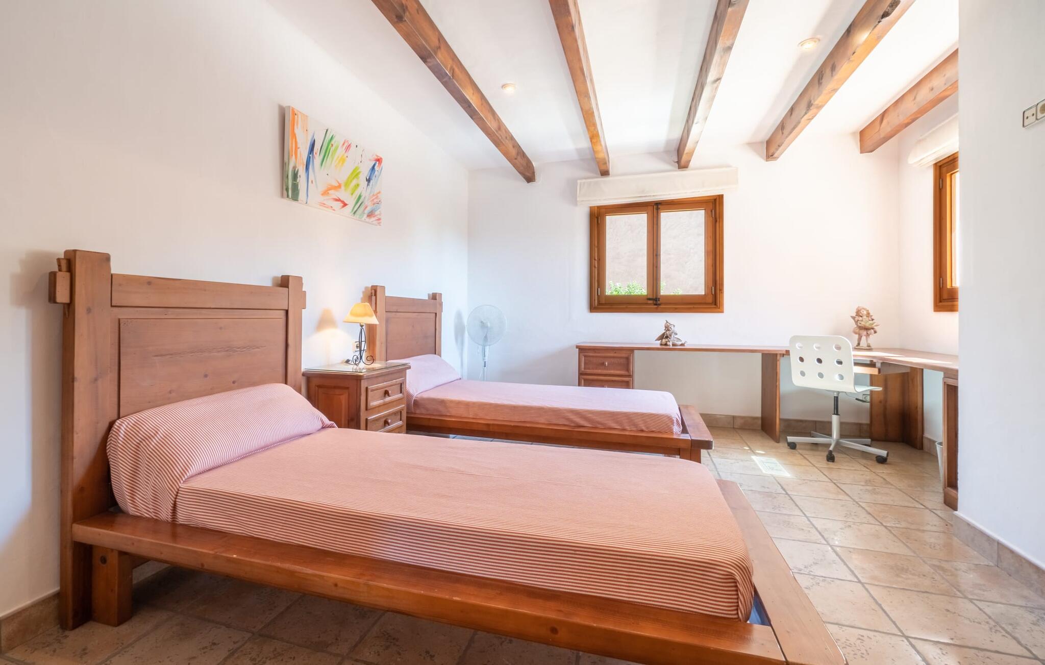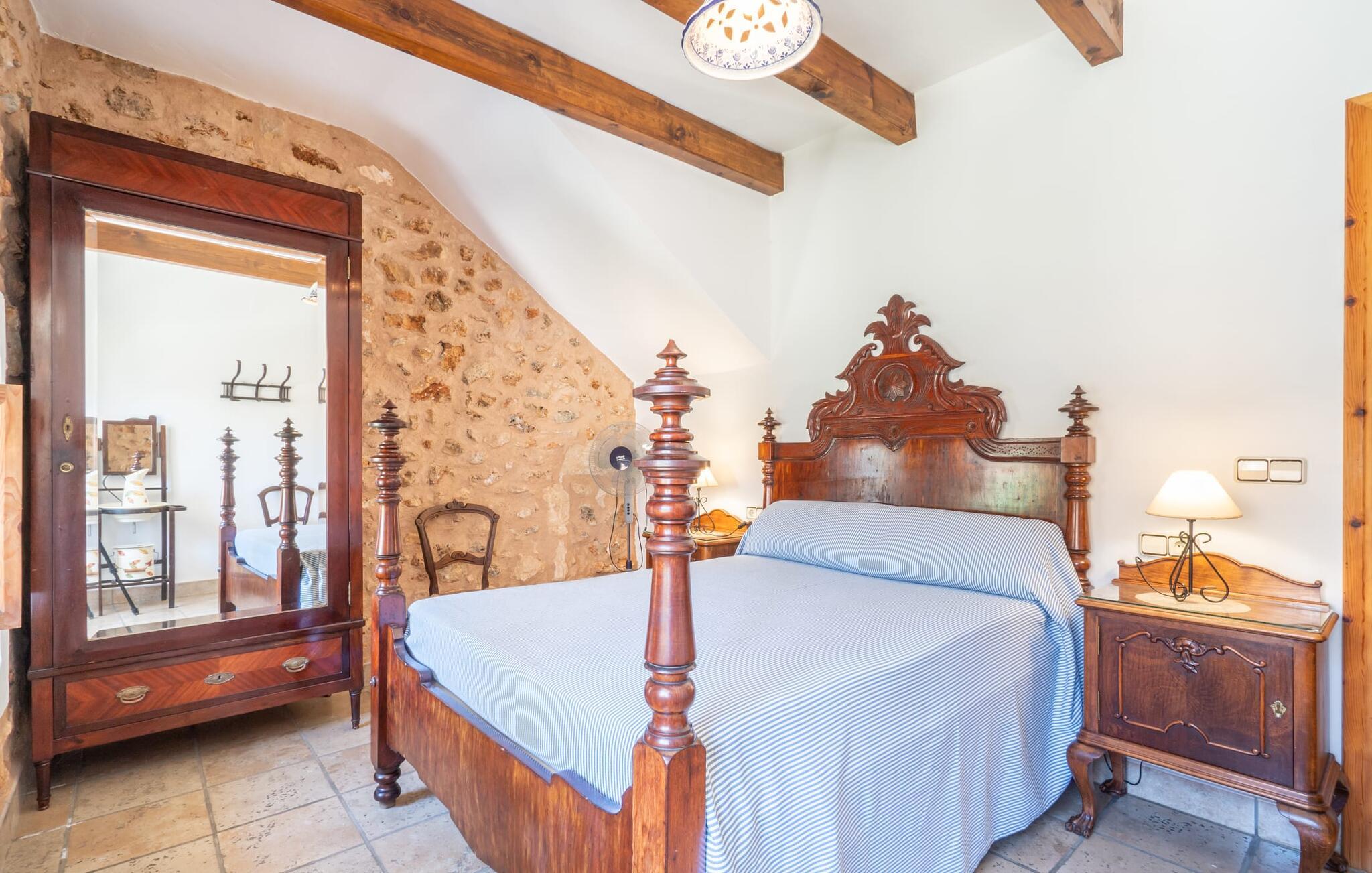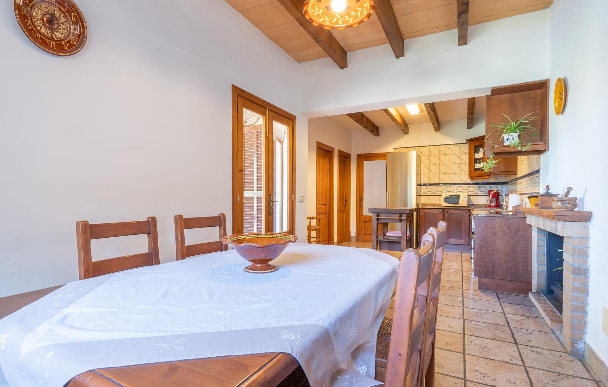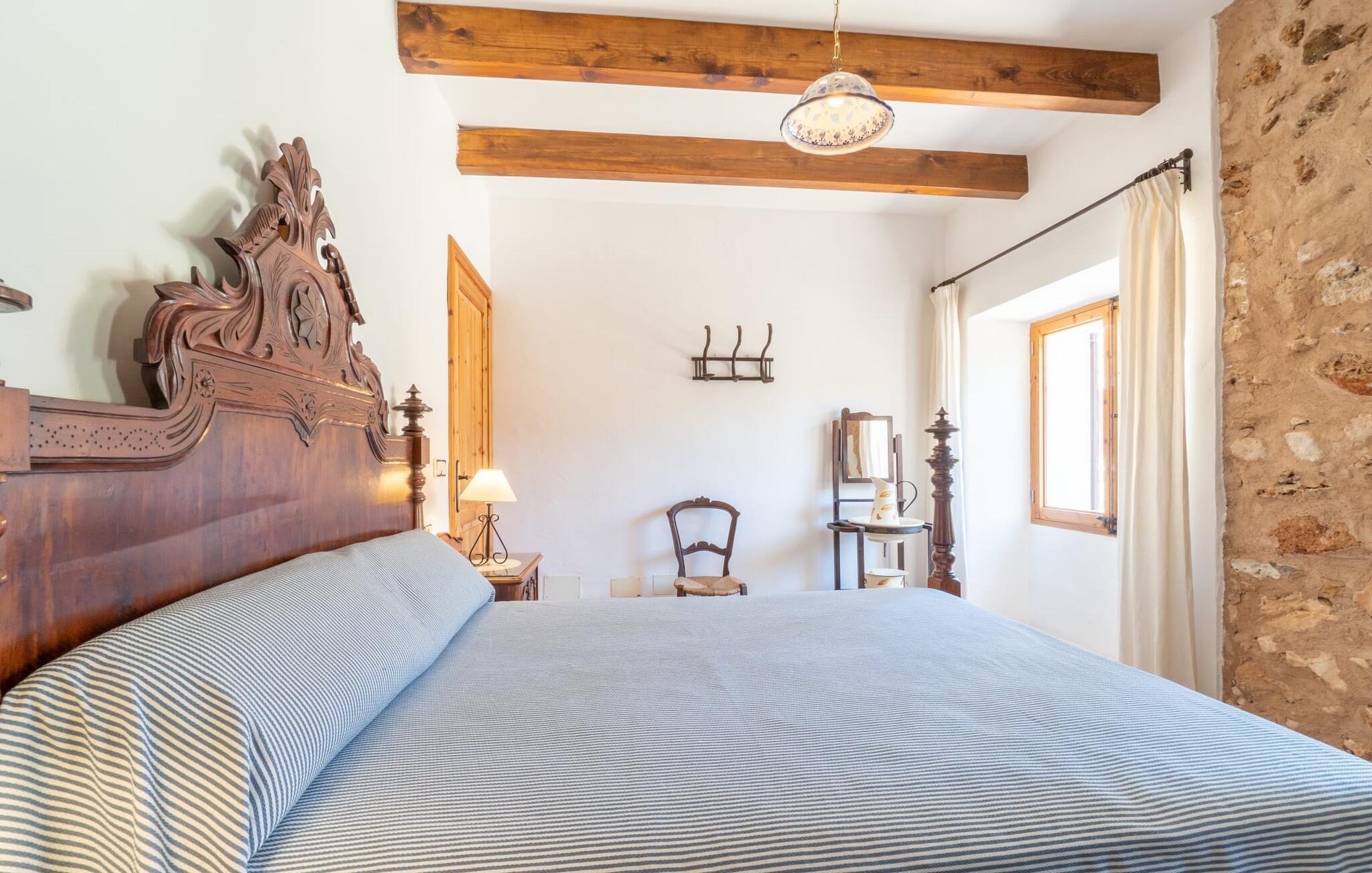 Din ferieejendom “Can Rei” har en stor have med naturplæne og indhegnet pool samt solterrasser, palmer og generelt smukke planter, fast grillplads og stor overdækket terrasse. Husets hjerte er den store og hyggelige stue-spisestue. Gennem en bred dobbeltdør kommer I ind i det rummelige køkken med pejs og endnu et spisebord. Fire soveværelser og to badeværelser kan nås via en entre. Tre af soveværelserne er udstyret med en dobbeltseng (180x200, 210x200, 135x200), et med to enkeltsenge (2 x 110x200) og et kontorhjørne. Stuehuset er komfortabelt udstyret, inklusive internet og fladskærms-tv. Det smukke bondehus "Can Rei" ligger kun ca. 6 km sydøst for Campos på den sydlige del af øen. I den lille by er der barer, restauranter og butikker til jeres daglige behov; Et særligt højdepunkt er markedet med mange lækkerier lørdag. Godt 15 minutters kørsel væk byder Santanyi på en smuk gågade og flere kunstgallerier. Den velkendte Es Trenc strand, omkring 17 km fra stuehuset, er let at nå selv med små børn takket være dens lave skråning. Bemærk venligst, at denne ejendom ikke accepterer ungdomsgrupper eller polterabender. En ungdomsgruppe på denne ejendom består af personer under 30 år. Book ikke denne ejendom, hvis I er en ungdomsgruppe eller polterabend, da jeres reservation vil blive afvist, når den er booket, hvilket også kan være tilfældet ved ankomst til ejendommen eller under jeres ophold, og I vil ikke modtage en refusion.