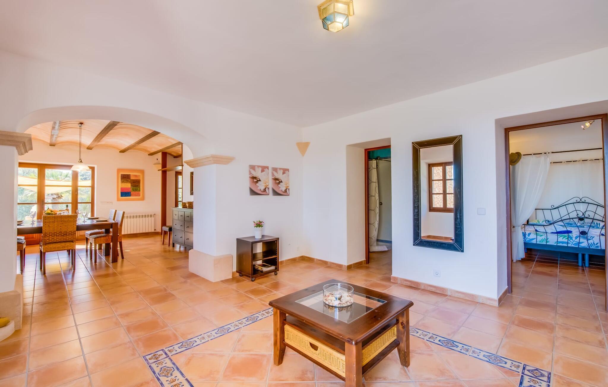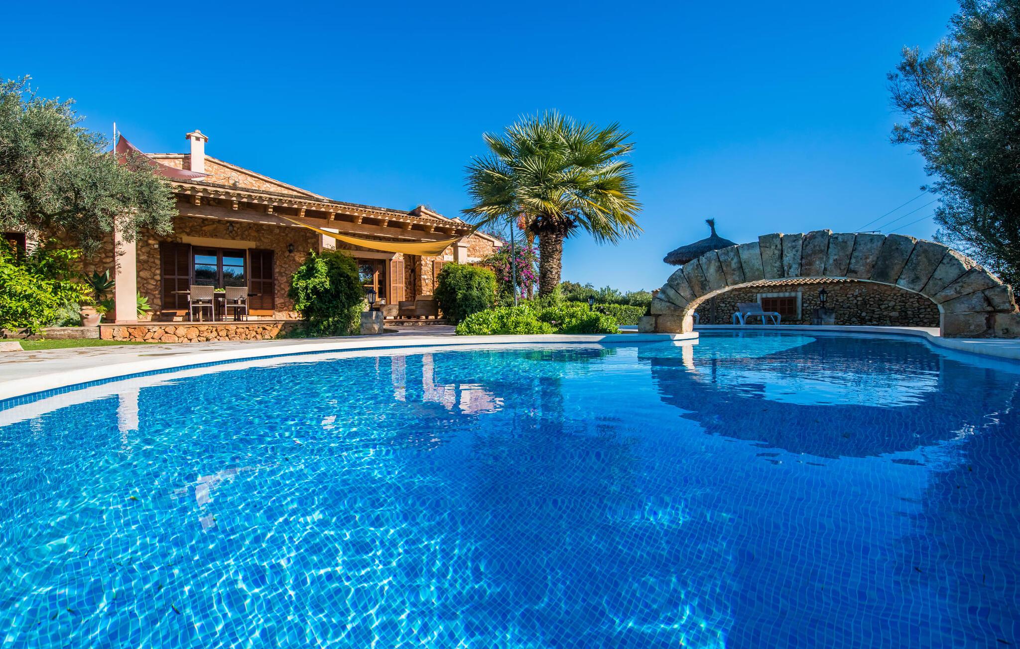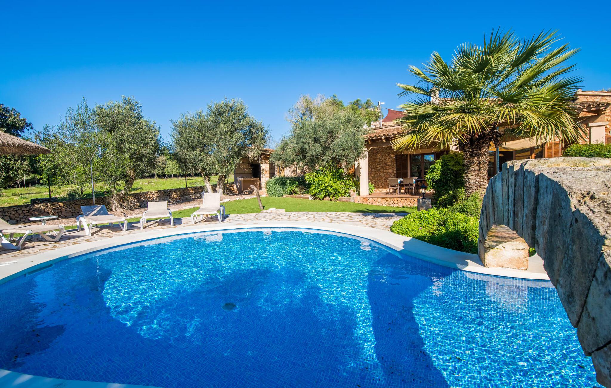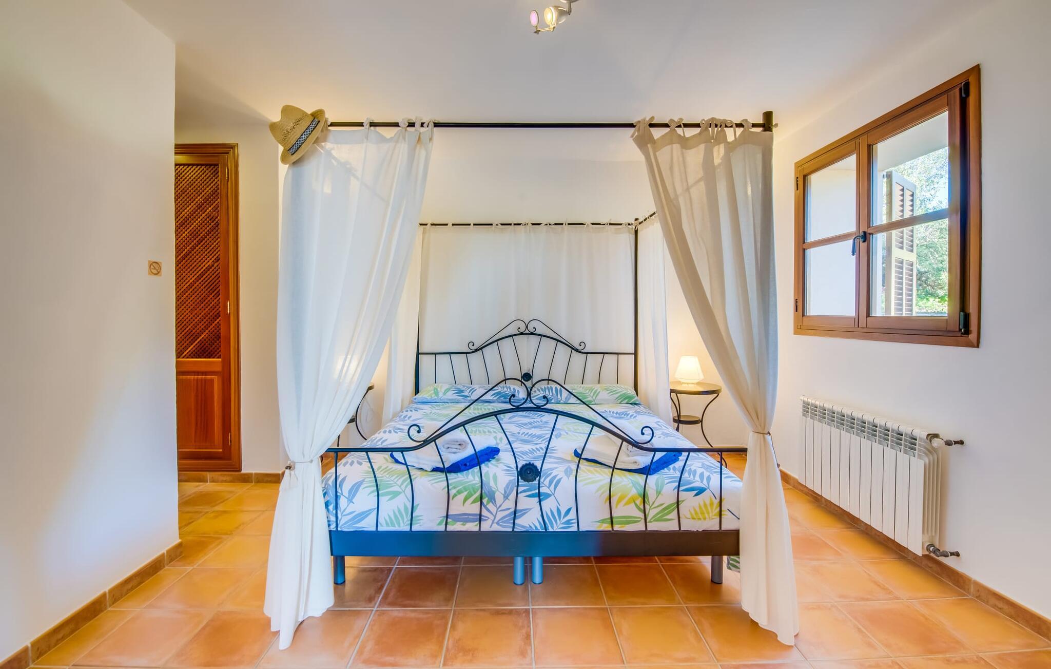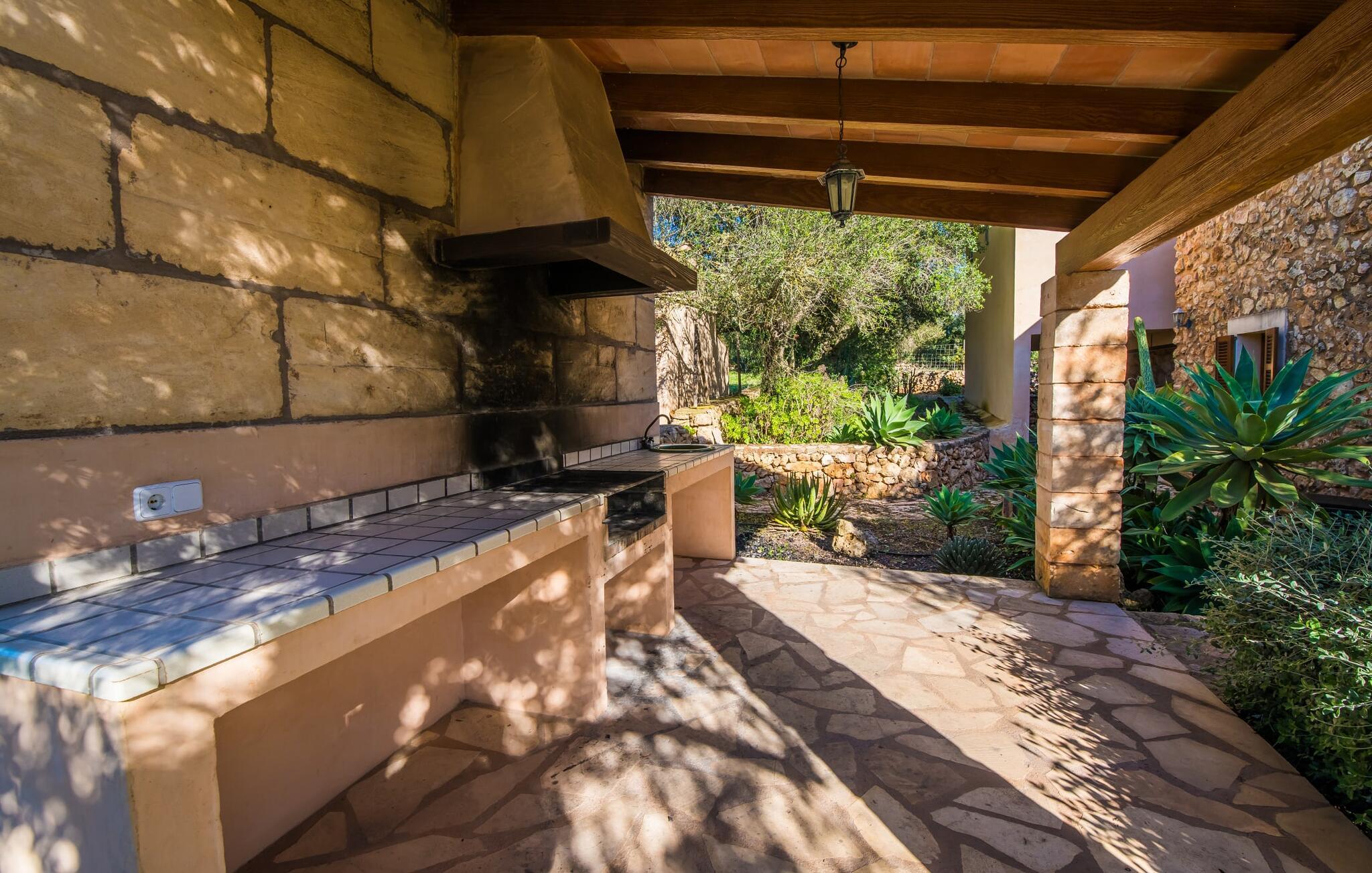 Fincaen "Can Revell" byder på en unik ferieoplevelse med sin attraktive have med en stenbro i romersk stil over poolen, som danner et visuelt imponerende omdrejningspunkt. Udendørsområdet omfatter et overdækket køkken, der er velegnet til større grill, og forteltet giver ekstra skygge for komfort. Inde i villaen er lys og luftig, med store vinduespartier. Stuen med pejs og spisebord er forbundet med et veludstyret køkken. I stueetagen er der et lille badeværelse og et soveværelse med en himmelseng og et en-suite spabadeværelse. Ovenpå er der tre soveværelser med dobbeltsenge (to med to enkeltsenge) og to en-suite badeværelser. To af disse rum har desuden udgang til rummelig altan med markise. Samlet set er "Can Revell" et roligt naturparadis, perfekt til en afslappende kort ferie. Naturstensvillaen "Can Revell" tilbyder de bedste betingelser for en typisk mallorcansk ferie. I nærheden af Son Carrió, cirka 2,5 km væk, vil I finde en række muligheder for at udforske øens forskelligartede østkyst. For shopping tilbyder nærliggende byer som Manacor og Artà unikke oplevelser. De smukke strande på sydøstkysten er nemme at nå, og sportsentusiaster kan drage fordel af de nærliggende golfbaner i S'Era de Pula eller Canyamel. Aircondition i ejendommen er inkluderet i prisen, men dets brug er begrænset mellem kl. 21.00 og 07.00. Derefter fyldes der op kontant på stedet. Mellem 5. november og 7. april er valgfri brug af opvarmning inkluderet fra kl. 07.00 til kl. 9.30 og kl. 18.30 til midnat. Brug uden for disse tider vil blive faktureret kontant på stedet.