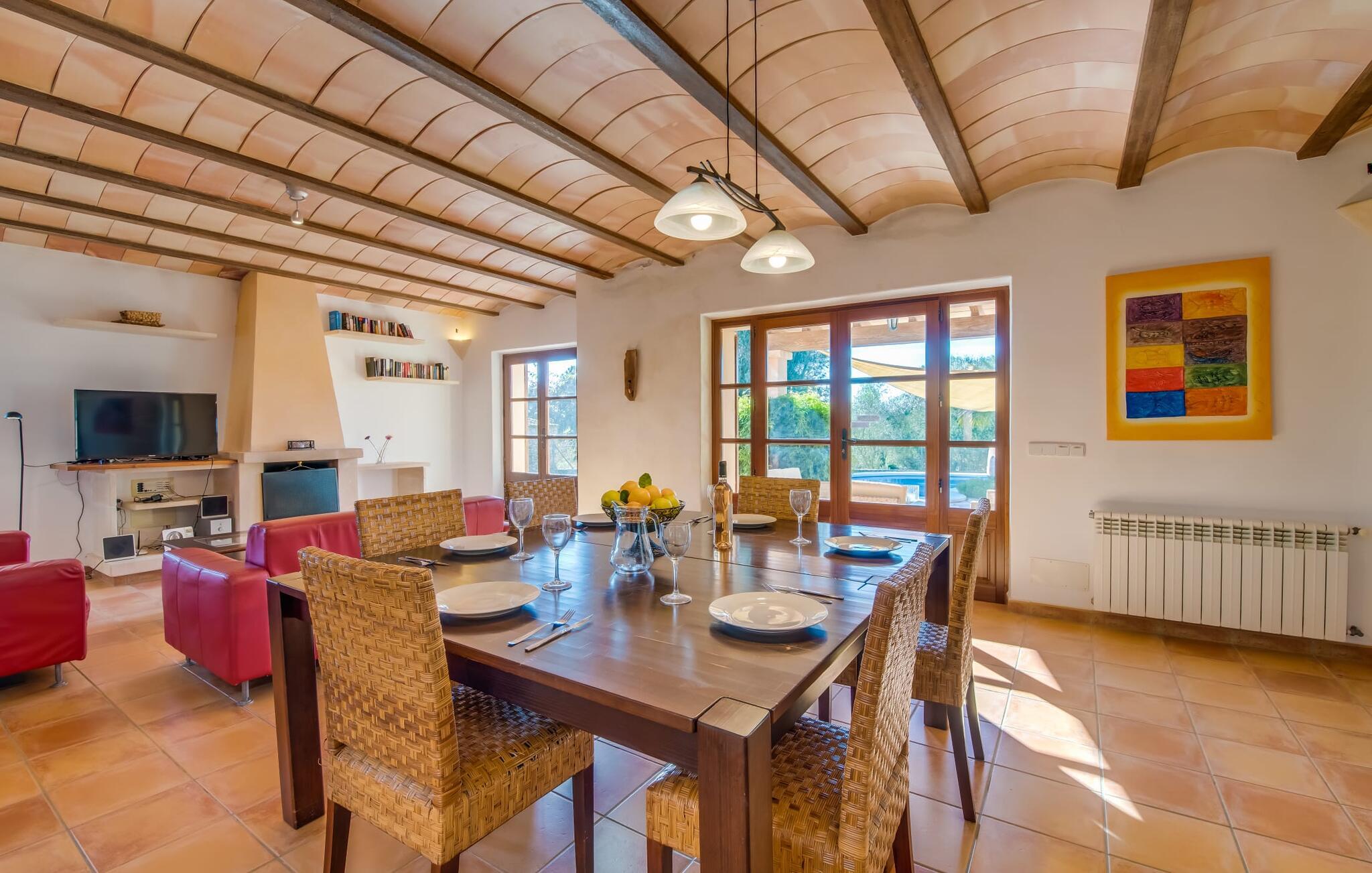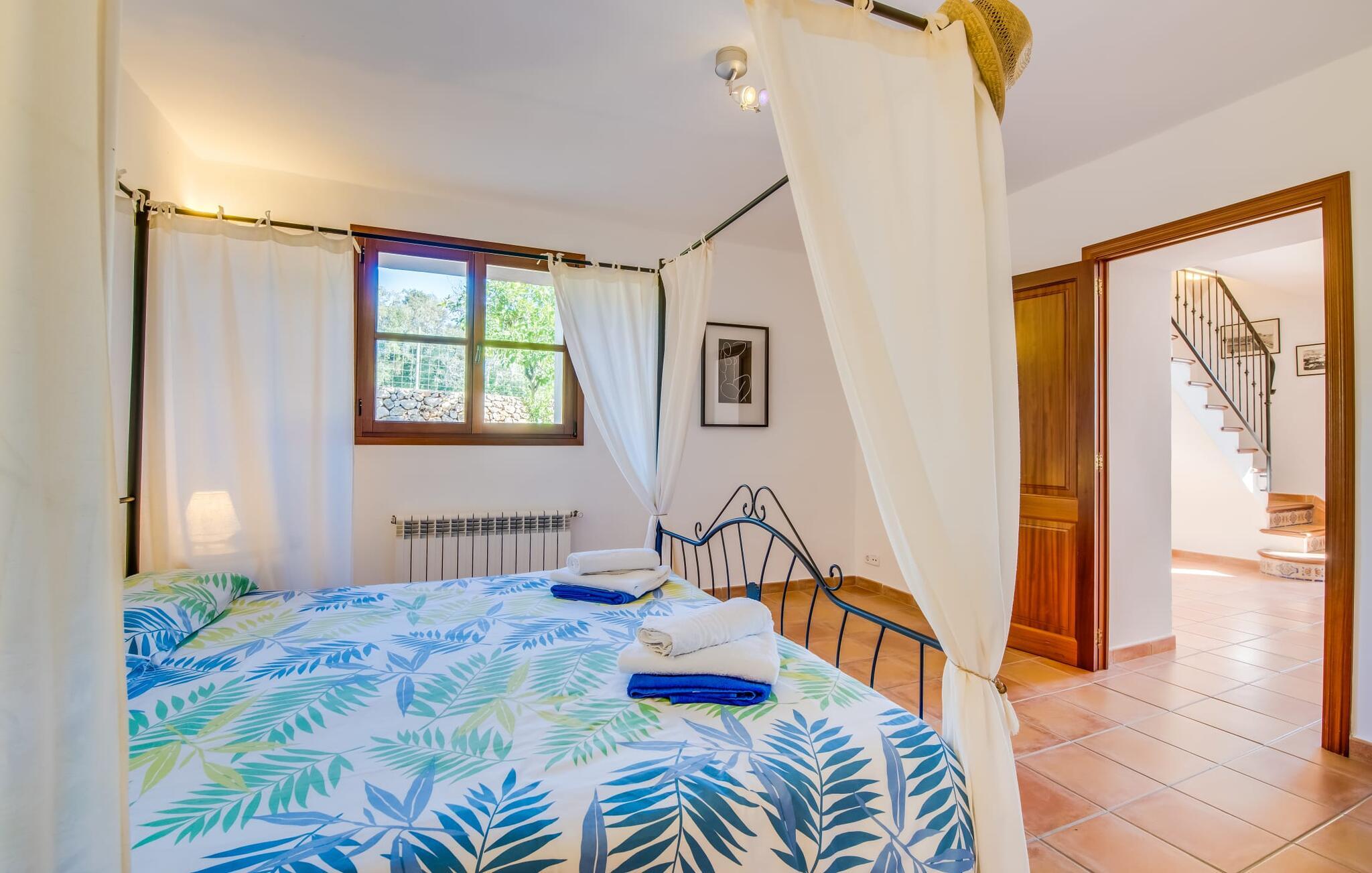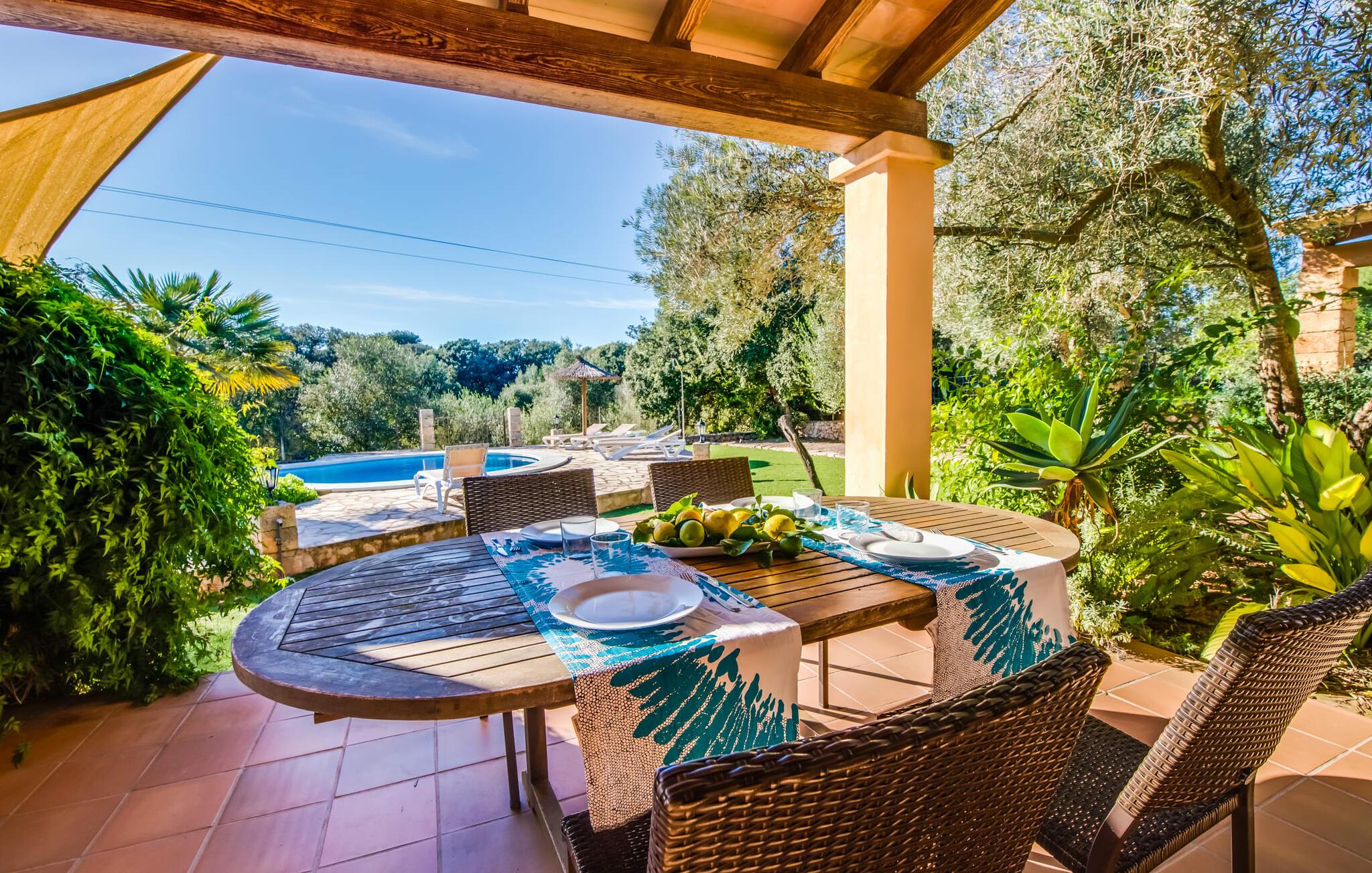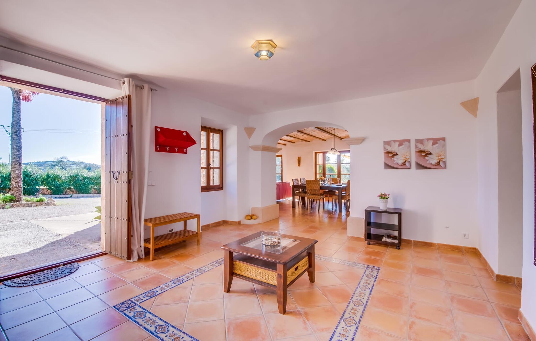 Fincaen "Can Revell" byder på en unik ferieoplevelse med sin attraktive have med en stenbro i romersk stil over poolen, som danner et visuelt imponerende omdrejningspunkt. Udendørsområdet omfatter et overdækket køkken, der er velegnet til større grill, og forteltet giver ekstra skygge for komfort. Inde i villaen er lys og luftig, med store vinduespartier. Stuen med pejs og spisebord er forbundet med et veludstyret køkken. I stueetagen er der et lille badeværelse og et soveværelse med en himmelseng og et en-suite spabadeværelse. Ovenpå er der tre soveværelser med dobbeltsenge (to med to enkeltsenge) og to en-suite badeværelser. To af disse rum har desuden udgang til rummelig altan med markise. Samlet set er "Can Revell" et roligt naturparadis, perfekt til en afslappende kort ferie. Naturstensvillaen "Can Revell" tilbyder de bedste betingelser for en typisk mallorcansk ferie. I nærheden af Son Carrió, cirka 2,5 km væk, vil I finde en række muligheder for at udforske øens forskelligartede østkyst. For shopping tilbyder nærliggende byer som Manacor og Artà unikke oplevelser. De smukke strande på sydøstkysten er nemme at nå, og sportsentusiaster kan drage fordel af de nærliggende golfbaner i S'Era de Pula eller Canyamel. Aircondition i ejendommen er inkluderet i prisen, men dets brug er begrænset mellem kl. 21.00 og 07.00. Derefter fyldes der op kontant på stedet. Mellem 5. november og 7. april er valgfri brug af opvarmning inkluderet fra kl. 07.00 til kl. 9.30 og kl. 18.30 til midnat. Brug uden for disse tider vil blive faktureret kontant på stedet.
