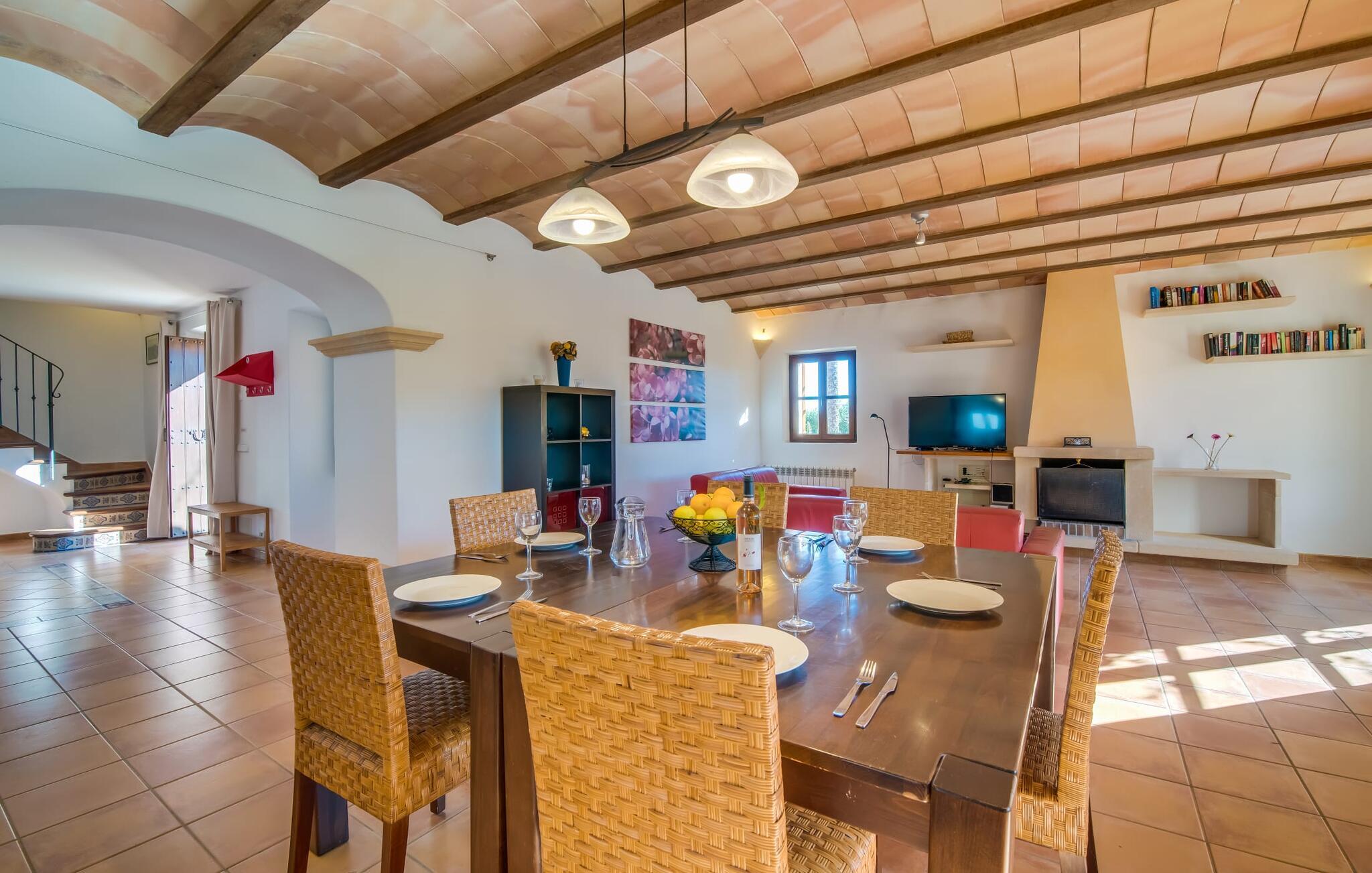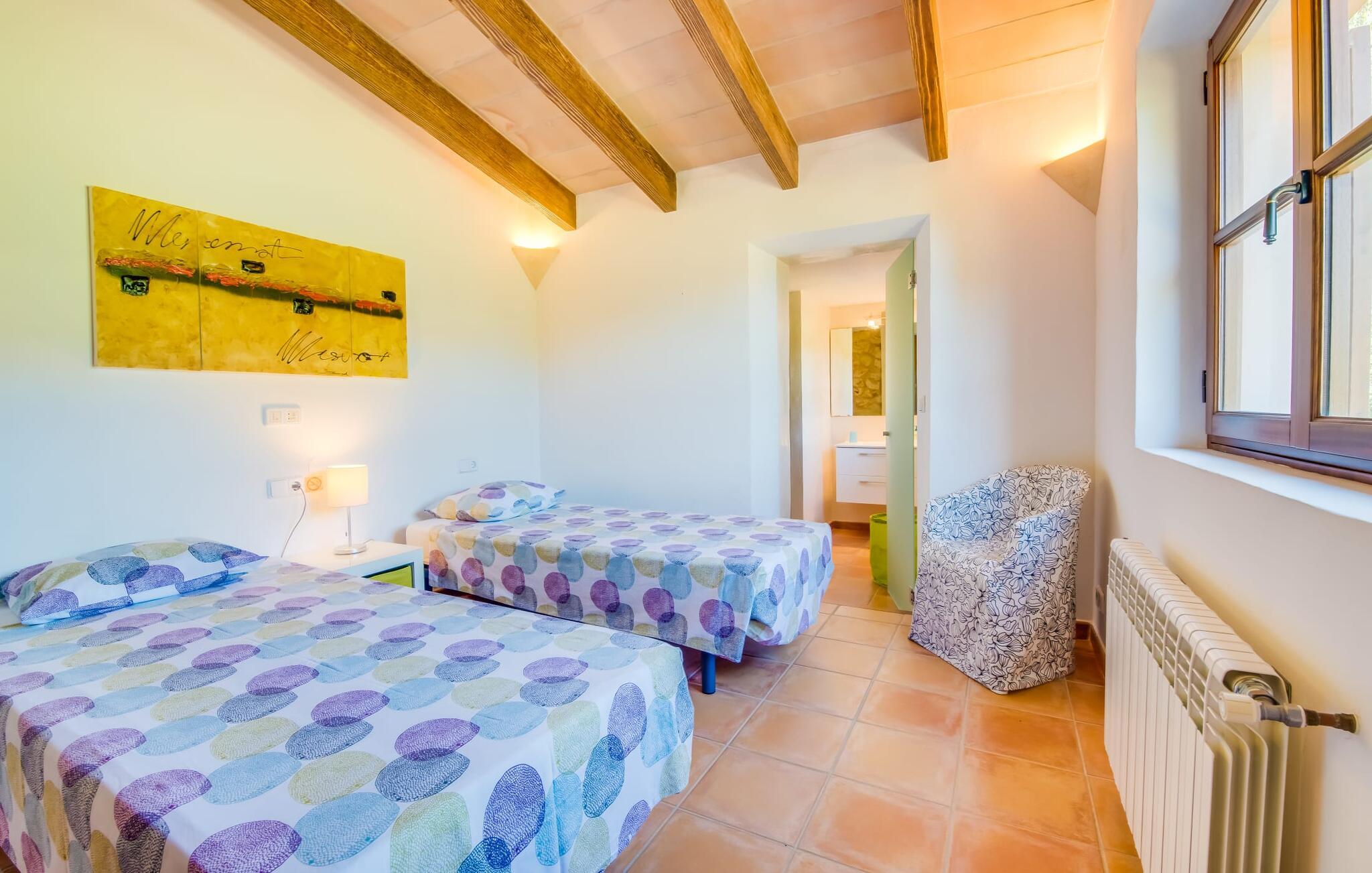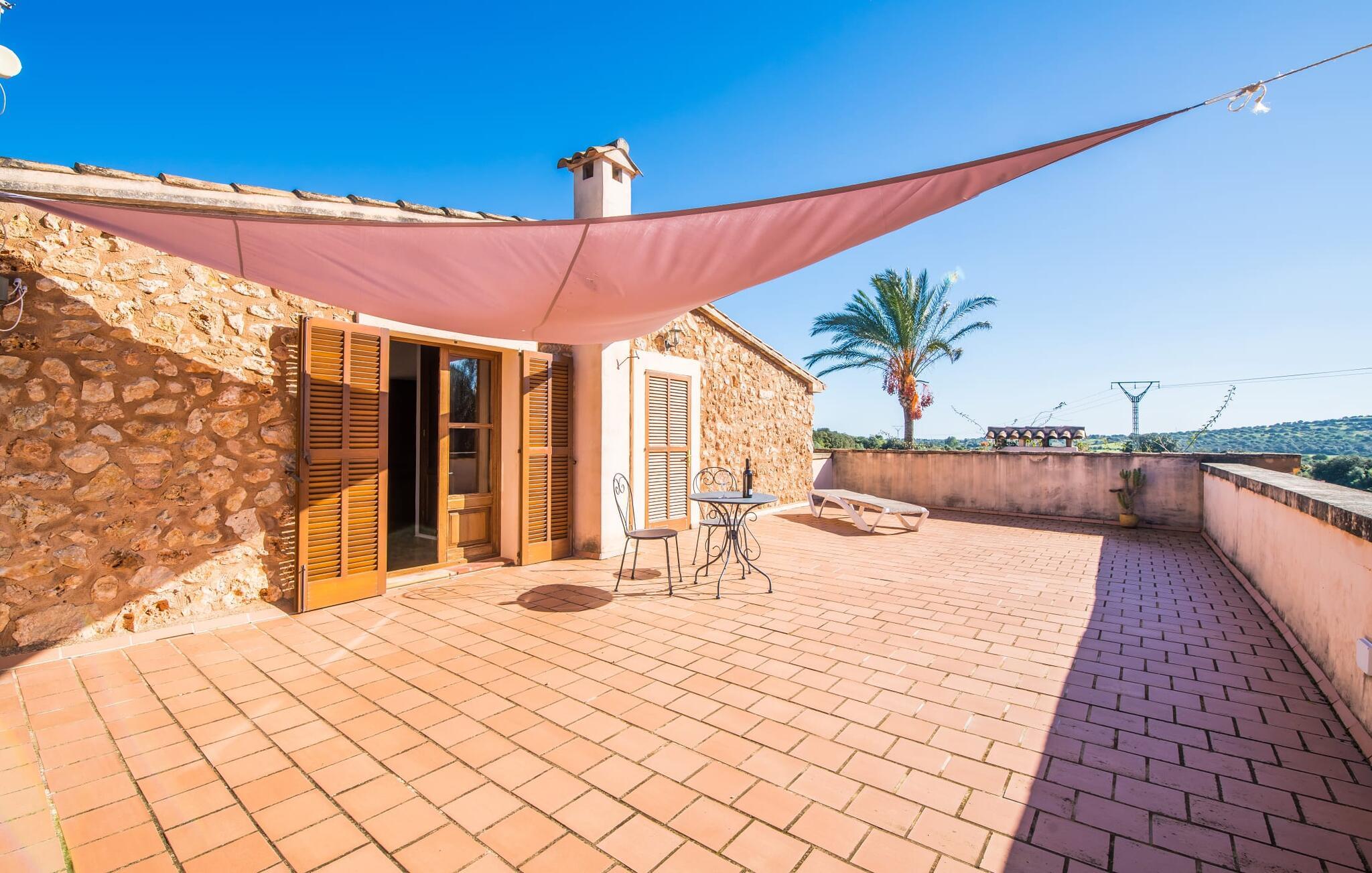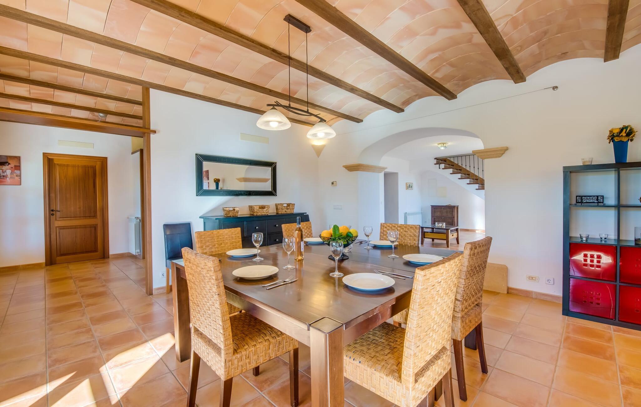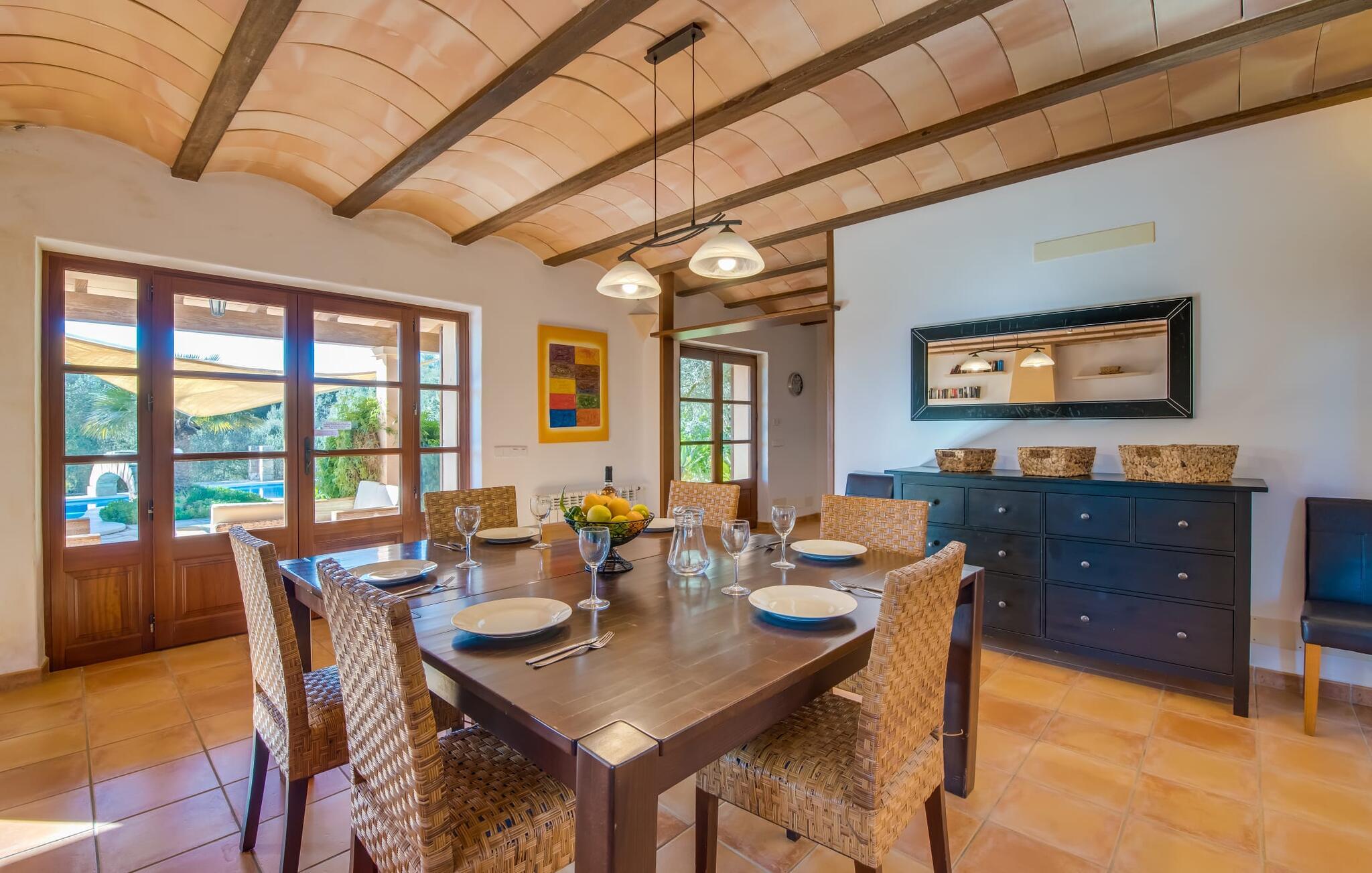 Fincaen "Can Revell" byder på en unik ferieoplevelse med sin attraktive have med en stenbro i romersk stil over poolen, som danner et visuelt imponerende omdrejningspunkt. Udendørsområdet omfatter et overdækket køkken, der er velegnet til større grill, og forteltet giver ekstra skygge for komfort. Inde i villaen er lys og luftig, med store vinduespartier. Stuen med pejs og spisebord er forbundet med et veludstyret køkken. I stueetagen er der et lille badeværelse og et soveværelse med en himmelseng og et en-suite spabadeværelse. Ovenpå er der tre soveværelser med dobbeltsenge (to med to enkeltsenge) og to en-suite badeværelser. To af disse rum har desuden udgang til rummelig altan med markise. Samlet set er "Can Revell" et roligt naturparadis, perfekt til en afslappende kort ferie. Naturstensvillaen "Can Revell" tilbyder de bedste betingelser for en typisk mallorcansk ferie. I nærheden af Son Carrió, cirka 2,5 km væk, vil I finde en række muligheder for at udforske øens forskelligartede østkyst. For shopping tilbyder nærliggende byer som Manacor og Artà unikke oplevelser. De smukke strande på sydøstkysten er nemme at nå, og sportsentusiaster kan drage fordel af de nærliggende golfbaner i S'Era de Pula eller Canyamel. Aircondition i ejendommen er inkluderet i prisen, men dets brug er begrænset mellem kl. 21.00 og 07.00. Derefter fyldes der op kontant på stedet. Mellem 5. november og 7. april er valgfri brug af opvarmning inkluderet fra kl. 07.00 til kl. 9.30 og kl. 18.30 til midnat. Brug uden for disse tider vil blive faktureret kontant på stedet.