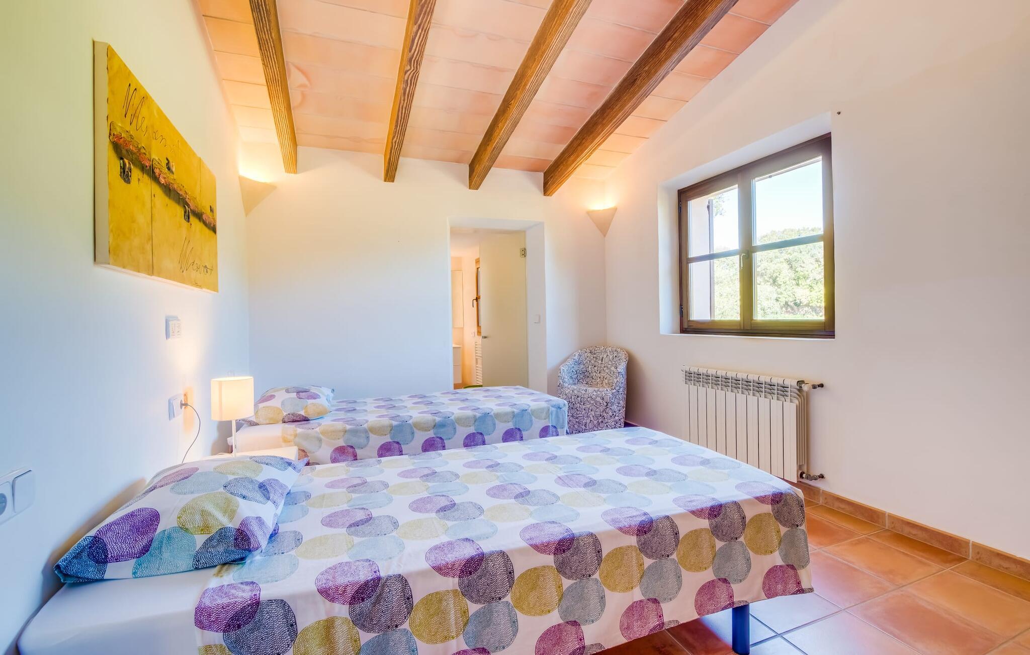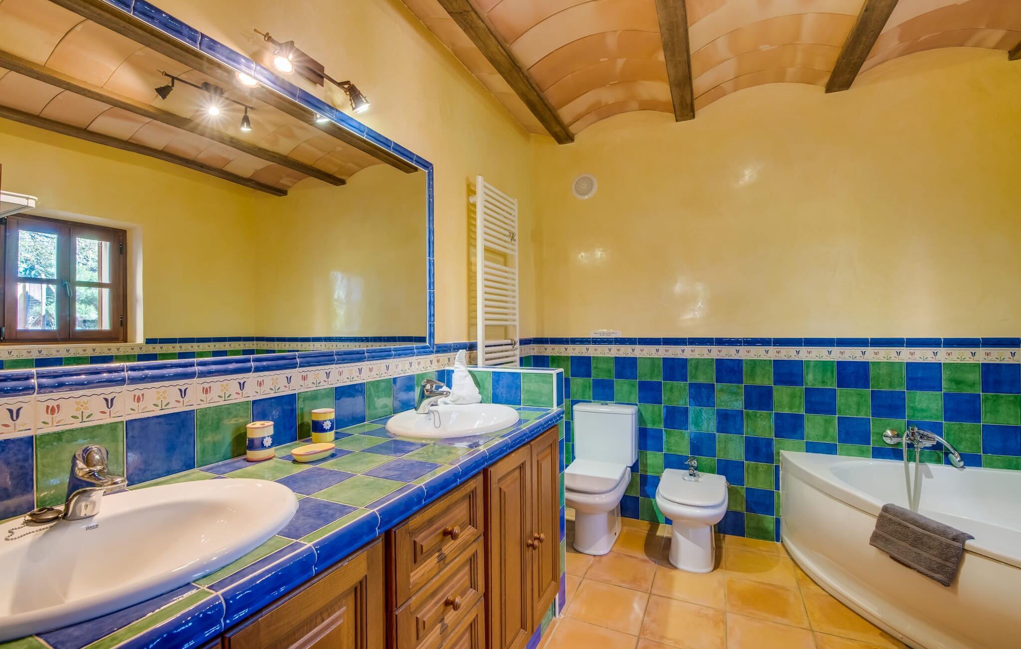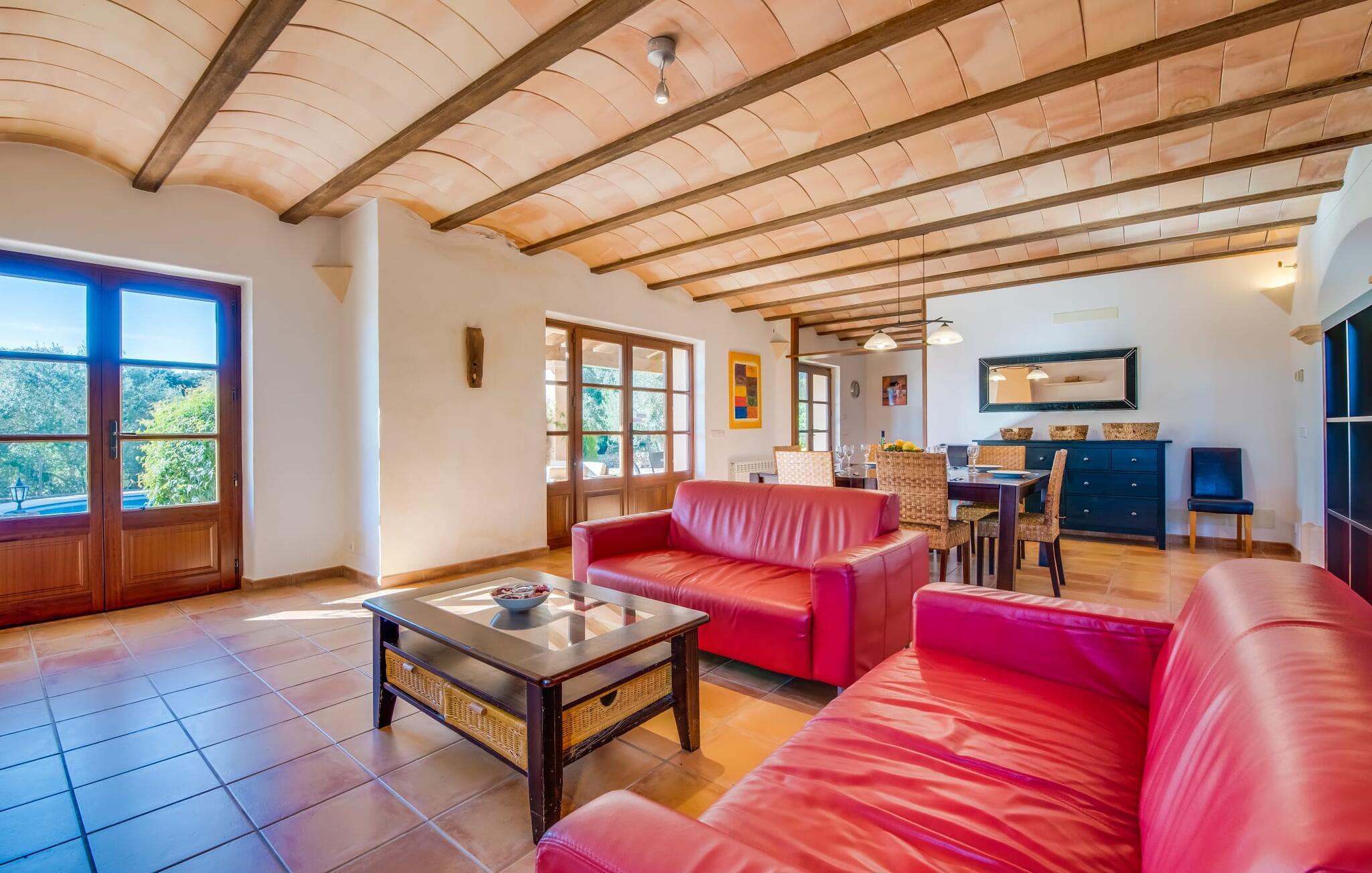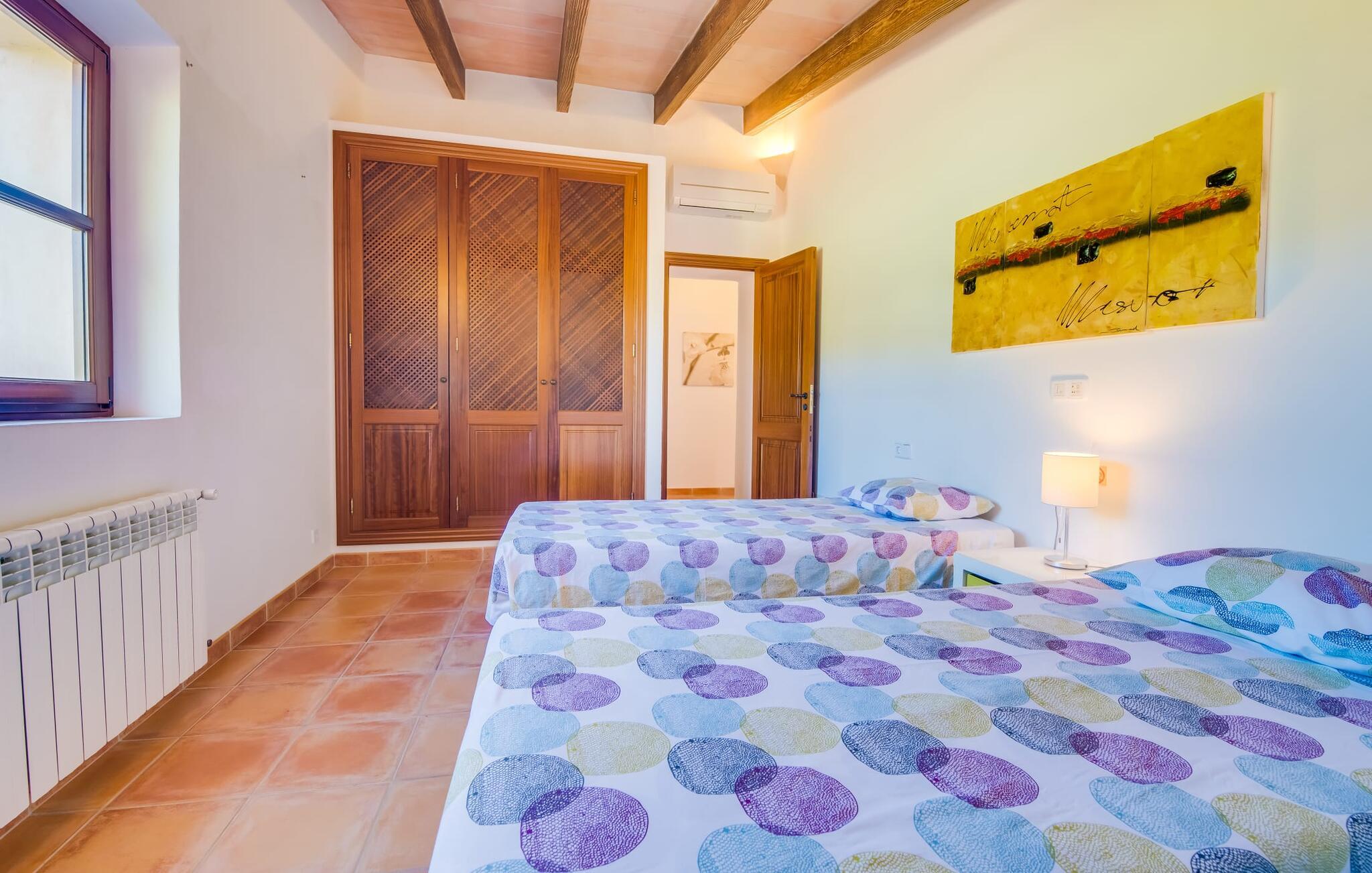 Fincaen "Can Revell" byder på en unik ferieoplevelse med sin attraktive have med en stenbro i romersk stil over poolen, som danner et visuelt imponerende omdrejningspunkt. Udendørsområdet omfatter et overdækket køkken, der er velegnet til større grill, og forteltet giver ekstra skygge for komfort. Inde i villaen er lys og luftig, med store vinduespartier. Stuen med pejs og spisebord er forbundet med et veludstyret køkken. I stueetagen er der et lille badeværelse og et soveværelse med en himmelseng og et en-suite spabadeværelse. Ovenpå er der tre soveværelser med dobbeltsenge (to med to enkeltsenge) og to en-suite badeværelser. To af disse rum har desuden udgang til rummelig altan med markise. Samlet set er "Can Revell" et roligt naturparadis, perfekt til en afslappende kort ferie. Naturstensvillaen "Can Revell" tilbyder de bedste betingelser for en typisk mallorcansk ferie. I nærheden af Son Carrió, cirka 2,5 km væk, vil I finde en række muligheder for at udforske øens forskelligartede østkyst. For shopping tilbyder nærliggende byer som Manacor og Artà unikke oplevelser. De smukke strande på sydøstkysten er nemme at nå, og sportsentusiaster kan drage fordel af de nærliggende golfbaner i S'Era de Pula eller Canyamel. Aircondition i ejendommen er inkluderet i prisen, men dets brug er begrænset mellem kl. 21.00 og 07.00. Derefter fyldes der op kontant på stedet. Mellem 5. november og 7. april er valgfri brug af opvarmning inkluderet fra kl. 07.00 til kl. 9.30 og kl. 18.30 til midnat. Brug uden for disse tider vil blive faktureret kontant på stedet.