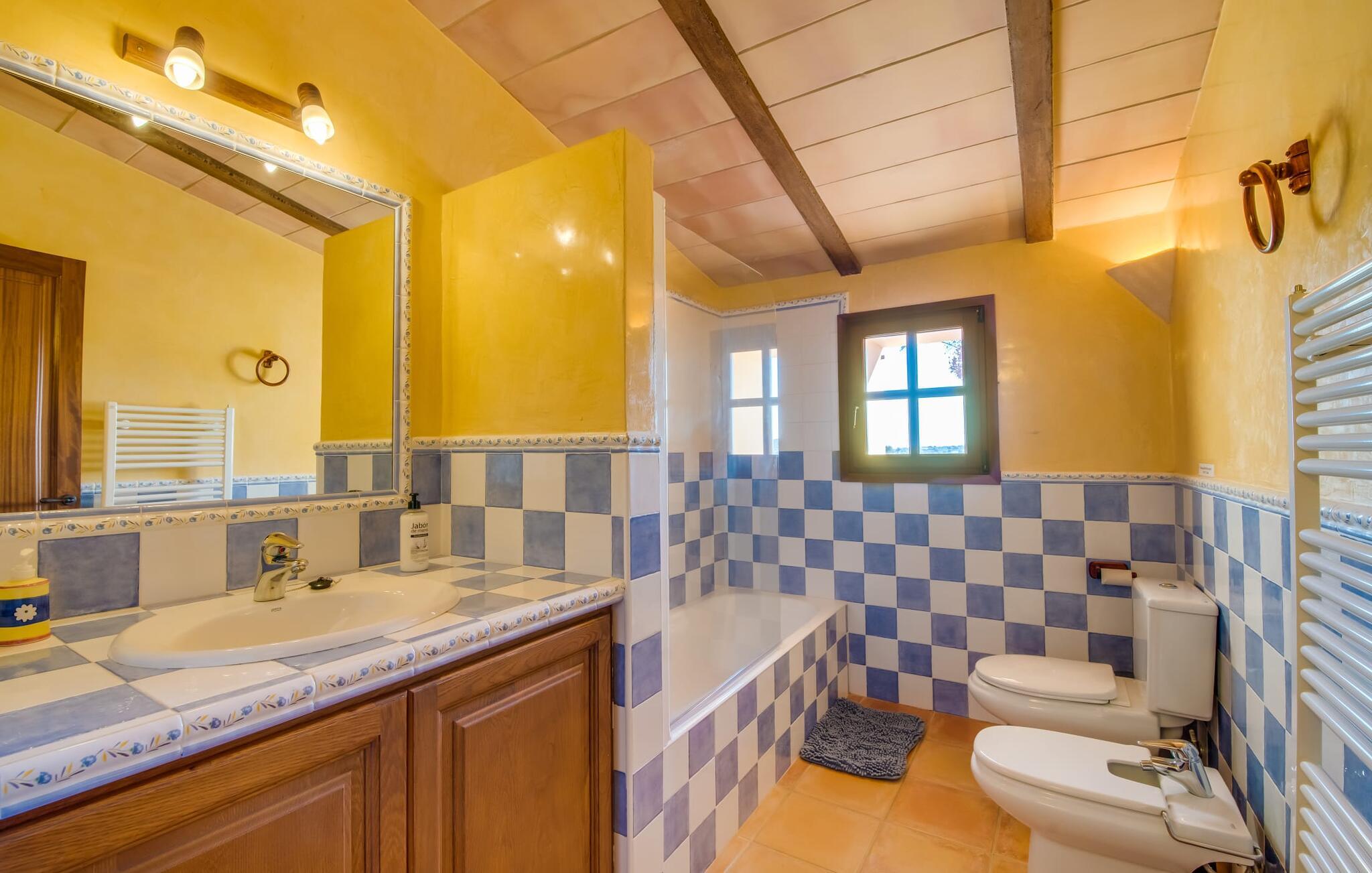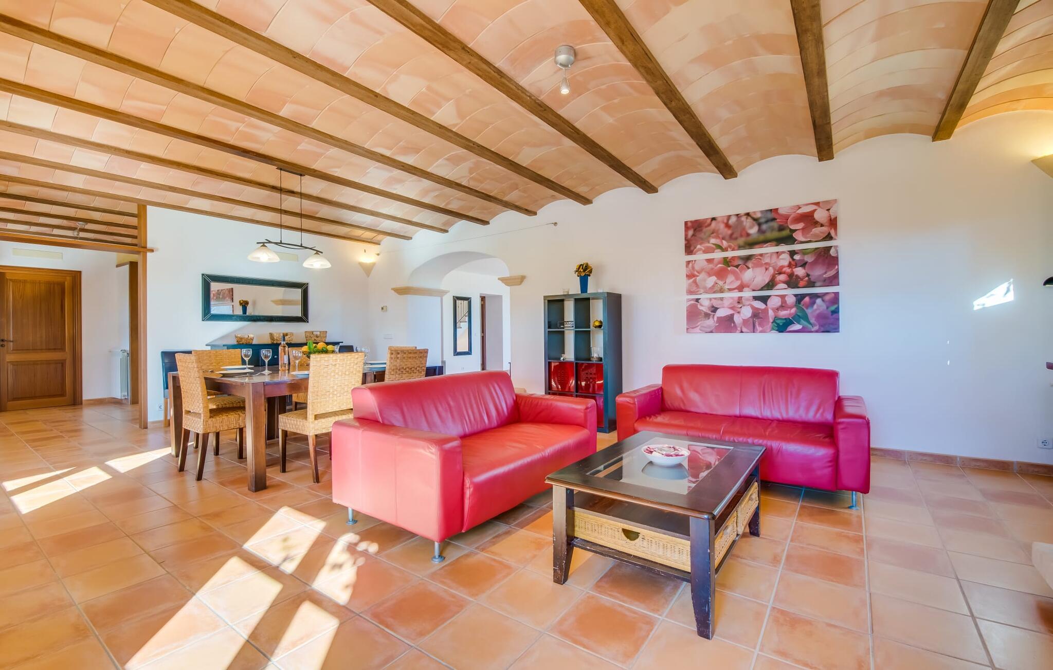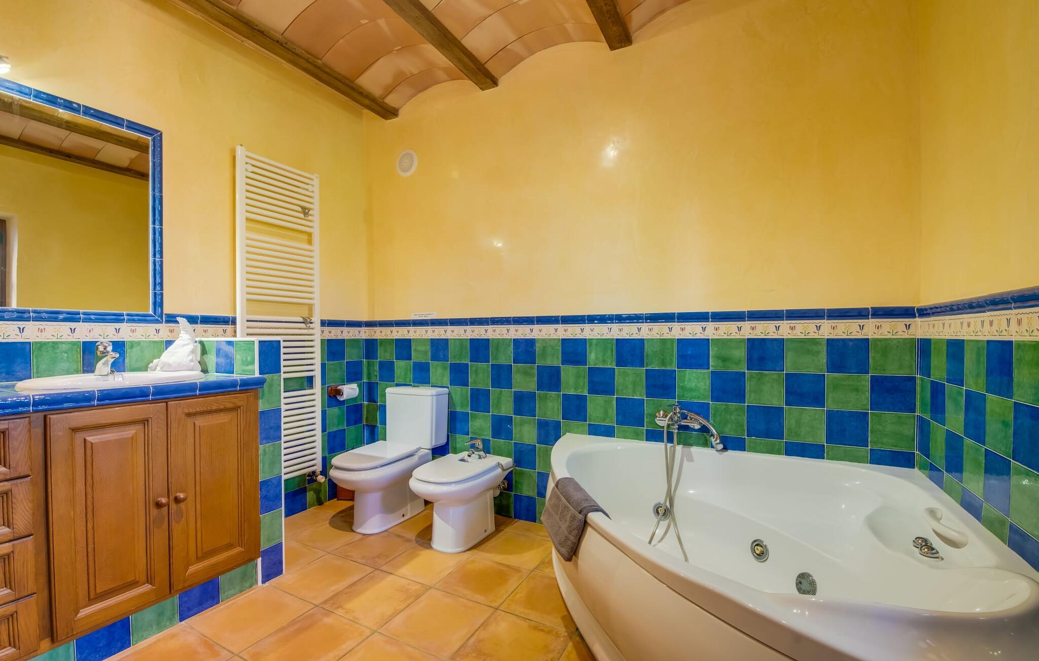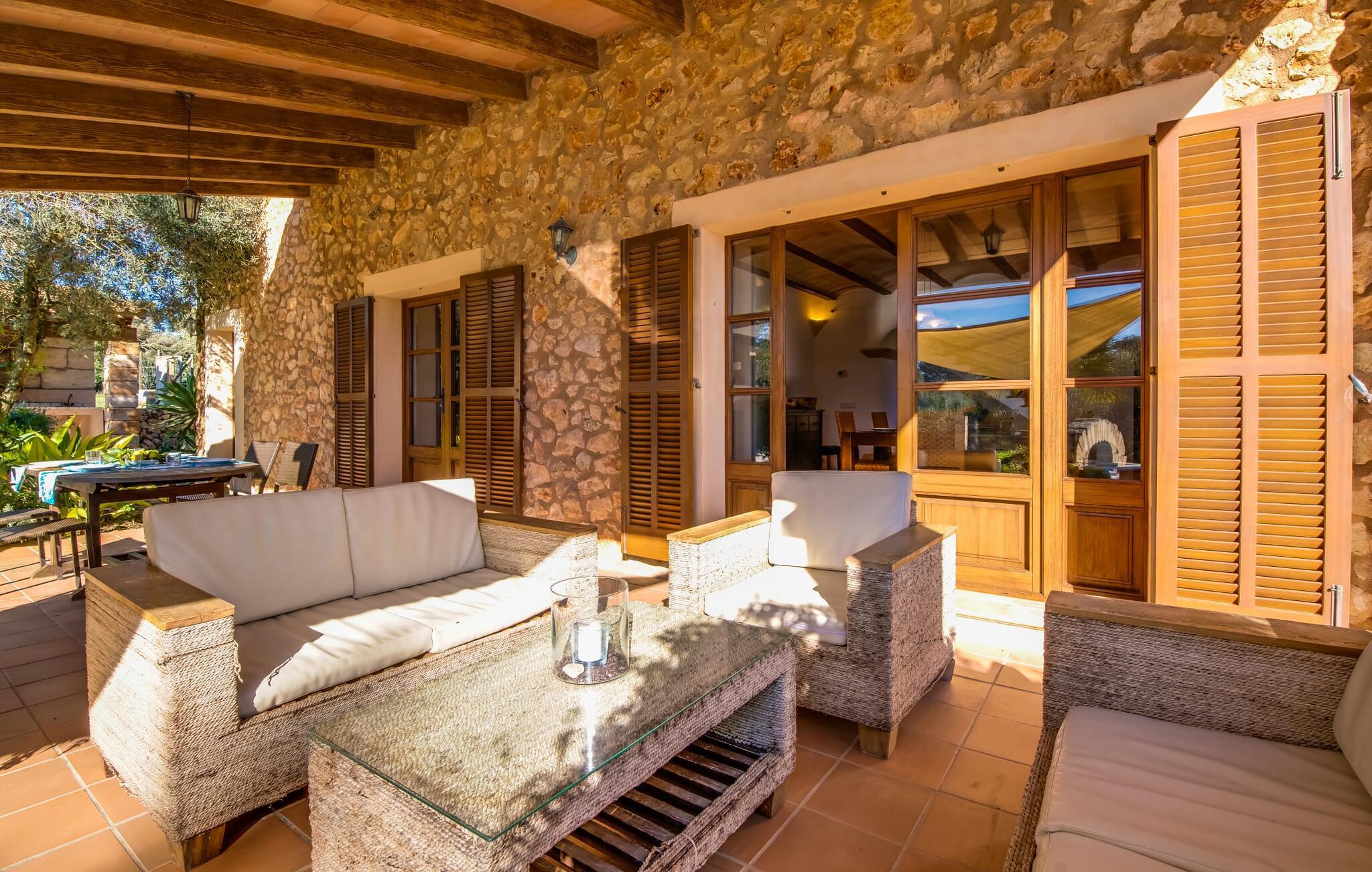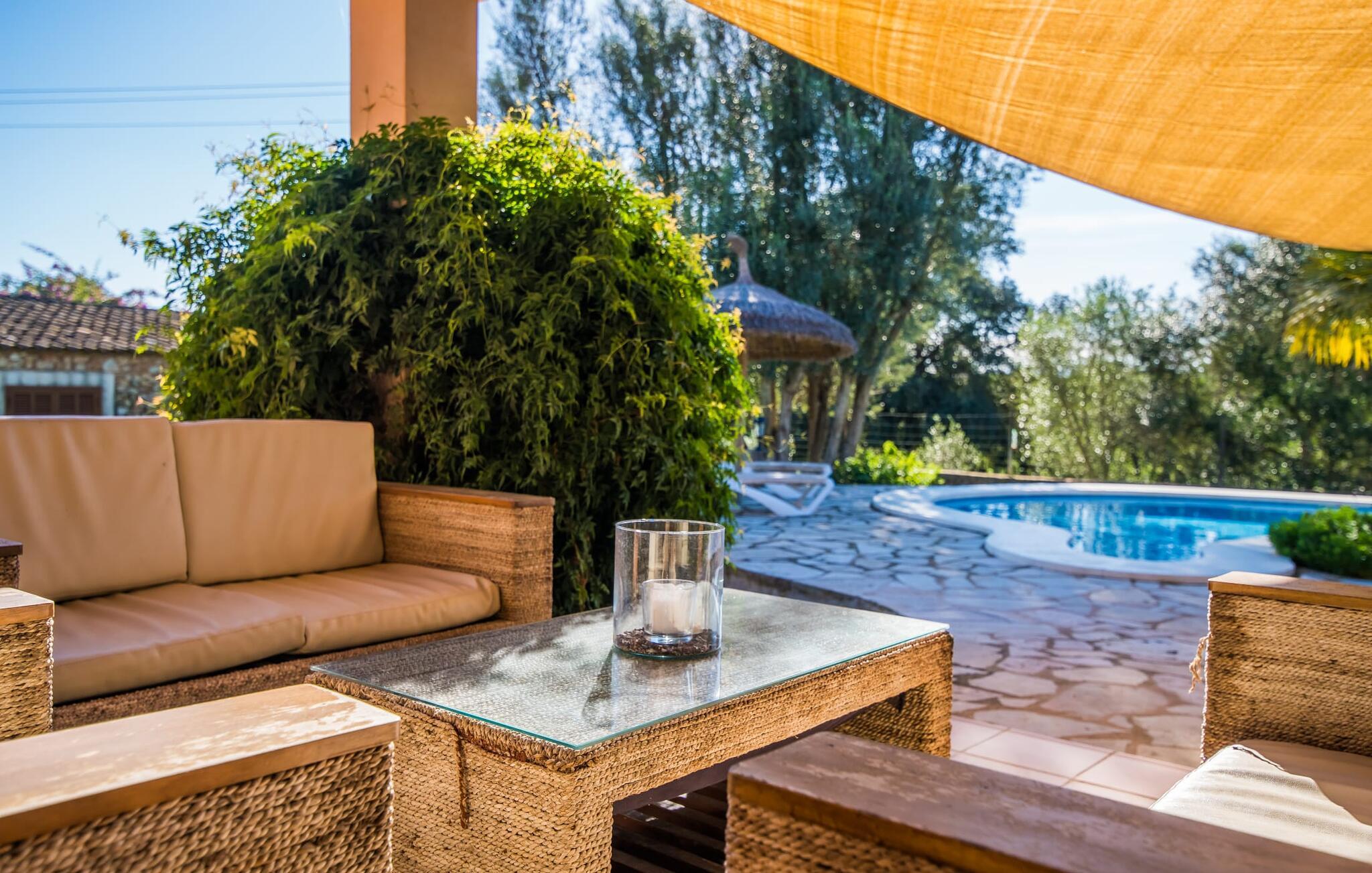 Fincaen "Can Revell" byder på en unik ferieoplevelse med sin attraktive have med en stenbro i romersk stil over poolen, som danner et visuelt imponerende omdrejningspunkt. Udendørsområdet omfatter et overdækket køkken, der er velegnet til større grill, og forteltet giver ekstra skygge for komfort. Inde i villaen er lys og luftig, med store vinduespartier. Stuen med pejs og spisebord er forbundet med et veludstyret køkken. I stueetagen er der et lille badeværelse og et soveværelse med en himmelseng og et en-suite spabadeværelse. Ovenpå er der tre soveværelser med dobbeltsenge (to med to enkeltsenge) og to en-suite badeværelser. To af disse rum har desuden udgang til rummelig altan med markise. Samlet set er "Can Revell" et roligt naturparadis, perfekt til en afslappende kort ferie. Naturstensvillaen "Can Revell" tilbyder de bedste betingelser for en typisk mallorcansk ferie. I nærheden af Son Carrió, cirka 2,5 km væk, vil I finde en række muligheder for at udforske øens forskelligartede østkyst. For shopping tilbyder nærliggende byer som Manacor og Artà unikke oplevelser. De smukke strande på sydøstkysten er nemme at nå, og sportsentusiaster kan drage fordel af de nærliggende golfbaner i S'Era de Pula eller Canyamel. Aircondition i ejendommen er inkluderet i prisen, men dets brug er begrænset mellem kl. 21.00 og 07.00. Derefter fyldes der op kontant på stedet. Mellem 5. november og 7. april er valgfri brug af opvarmning inkluderet fra kl. 07.00 til kl. 9.30 og kl. 18.30 til midnat. Brug uden for disse tider vil blive faktureret kontant på stedet.