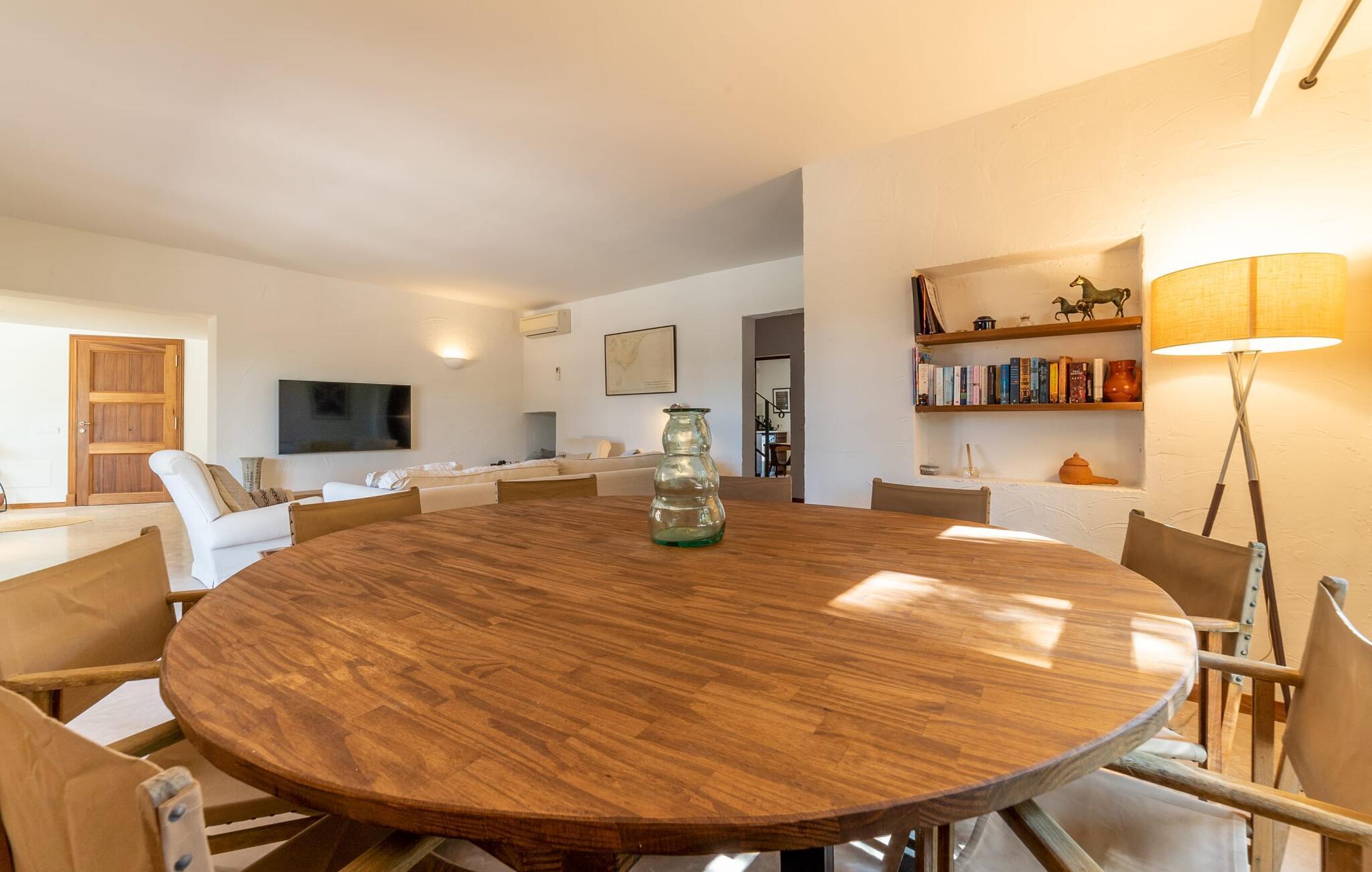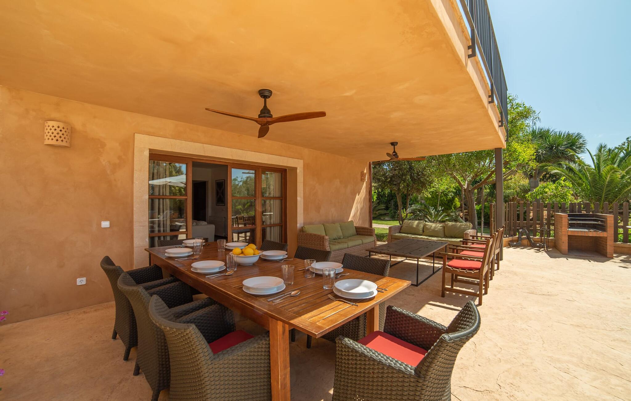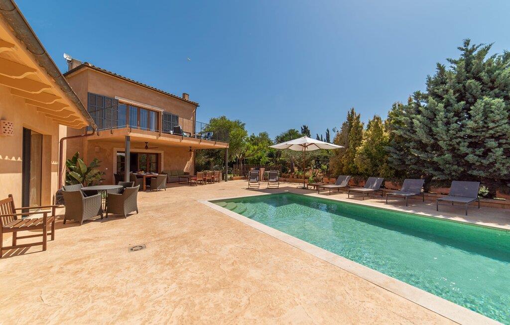 Denne vintage finca er blevet fuldstændig renoveret, mens den har bevaret den originale charme fra et mallorcansk landsted. Fincaen "Can Riera d'Es Trenc" imponerer sine gæster med en harmonisk stemning bestående af en naturstensfacade og glatte pudsede overflader, som kombineres med moderne møbler og ekstraudstyr i udendørsområdet. Beliggende i en beskyttende mur af cypres-, oliven- og frugttræer, er alt koncentreret i hjertet af ejendommen: det luksuriøse poolområde med den omkringliggende terrasse. Poolen er flisebelagt med turkisgrøn mosaik og tilbyder en praktisk hjørneindgang og lav dybde. Den støder op til en terrasse med adskillige yderst attraktive liggestole i træ og er ergonomisk designet. De ekstra sæder er frit indrettet og kan efter ønske placeres i skygge eller i solen. Den sydvendte ejendom består af to dele: Hovedhuset med to etager og en overdækket terrasse, som rummer både spisestue og en hyggelig overdækket veranda, og "poolhuset" med to soveværelser. Annekset byder også på en stor terrasse, bordtennis og bordfodbold. Så intet står i vejen for en afslappet grillaften med en sjov faktor. Uanset om I rejser med to eller tre familier eller vennepar - fincaen "Can Riera d'Es Trenc" er simpelthen perfekt for op til tolv personer, især fordi boligen er i hovedhuset og poolhuset. Fire dobbeltværelser er i "moderhuset" og de to andre i annekset. Særlig bekvemt er, at 5 af de 6 værelser har eget badeværelse, hvilket sammen med endnu et badeværelse resulterer i i alt 6 komplette håndvaske, så privatlivets fred er vidunderligt bevaret. Badeværelserne, der er renoveret med stor sans for detaljer, imponerer med individuelle fliser, brusere fra gulv til loft, iøjnefaldende håndvaske og generel fashionabel chic. Der er også et ensartet farvekoncept i alle værelser med aircondition (!). Det ser behageligt og sobert ud, tidløst, fordi hvidt med grå og beige accenter skaber en behagelig glans ved siden af træbjælkerne og dørene. Det unægteligt varme materiale træ finder alligevel sit formål - som i den lyse stue med pejs, sofaernes lyse atmosfære og det indirekte lyskoncept for enestående komfort. Spisebordet ser særligt godt ud med sin tykke træplanke. Et rummeligt køkken i rustik og dog minimalistisk stil med træfronter. Et hyggeligt opholdsområde og de bløde farver på væggene fuldender billedet af et progressivt landkøkken med absolut komfort. Begge områder er designet, så gæsten føler sig godt tilpas i den trendy sommerhusstil og føler sig hjemme på ferien. Det er ejeren klart lykkedes med. Men fra tid til anden vil I gerne forlade drømmeejendommen "Can Riera d'Es Trenc" for at udforske og forstå den smukke sydlige del af øen på nemme og sjove udflugter, der kan tage jer til at besøge en polobane eller stranden. I den stille sydlige del af øen kan I opleve livet i det mallorcanske landskab, hvor der stadig udvindes salt i dag, hvilket også er derfra stednavnet “Ses Salines”. Det er ikke kun værd at besøge Campos, Ses Salines eller Santanyí på markedsdage. Der kan I opdage mallorcinsk arkitekturs storhedstid, når I går gennem husene lavet af gylden, grå og hvid sandsten. Fincaen ligger mellem landsbyen og stranden. For naturelskere er fincaen et godt udgangspunkt for udflugter til fods eller på cykel og for at observere flamingoer og trækfugle, når det er tid til at vandre fra Campos saltsletter. Derfor er placeringen af fincaen ideel til at starte ruter, der tager jer til smukke kystlandsbyer og drømmestrande som den naturlige strand med krystalklart vand i Es Trenc. Ren afslapning! Den charmerende villa "Can Riera d'Es Trenc" er beliggende i kvadranten af Campos, Ses Salines, Colonia de Sant Jordi og Es Trenc, i den smukke sydlige region Mallorca, hvor landbrug, olivenlunde og saltproduktion dominerer det samlede billede . Indkøb til daglige behov kan foregå i Campos eller Ses Salines, hvor det ugentlige landmandsmarked også finder sted hver tirsdag eller torsdag. Særligt bemærkelsesværdig er nærheden til de smukke strande på sydkysten, Ses Covetes eller Es Trenc, som kun ligger 6 km væk.