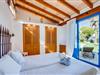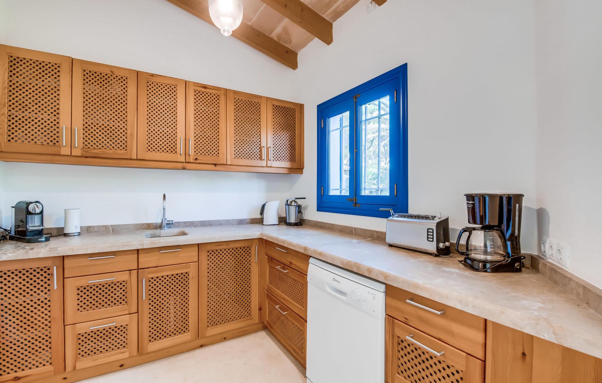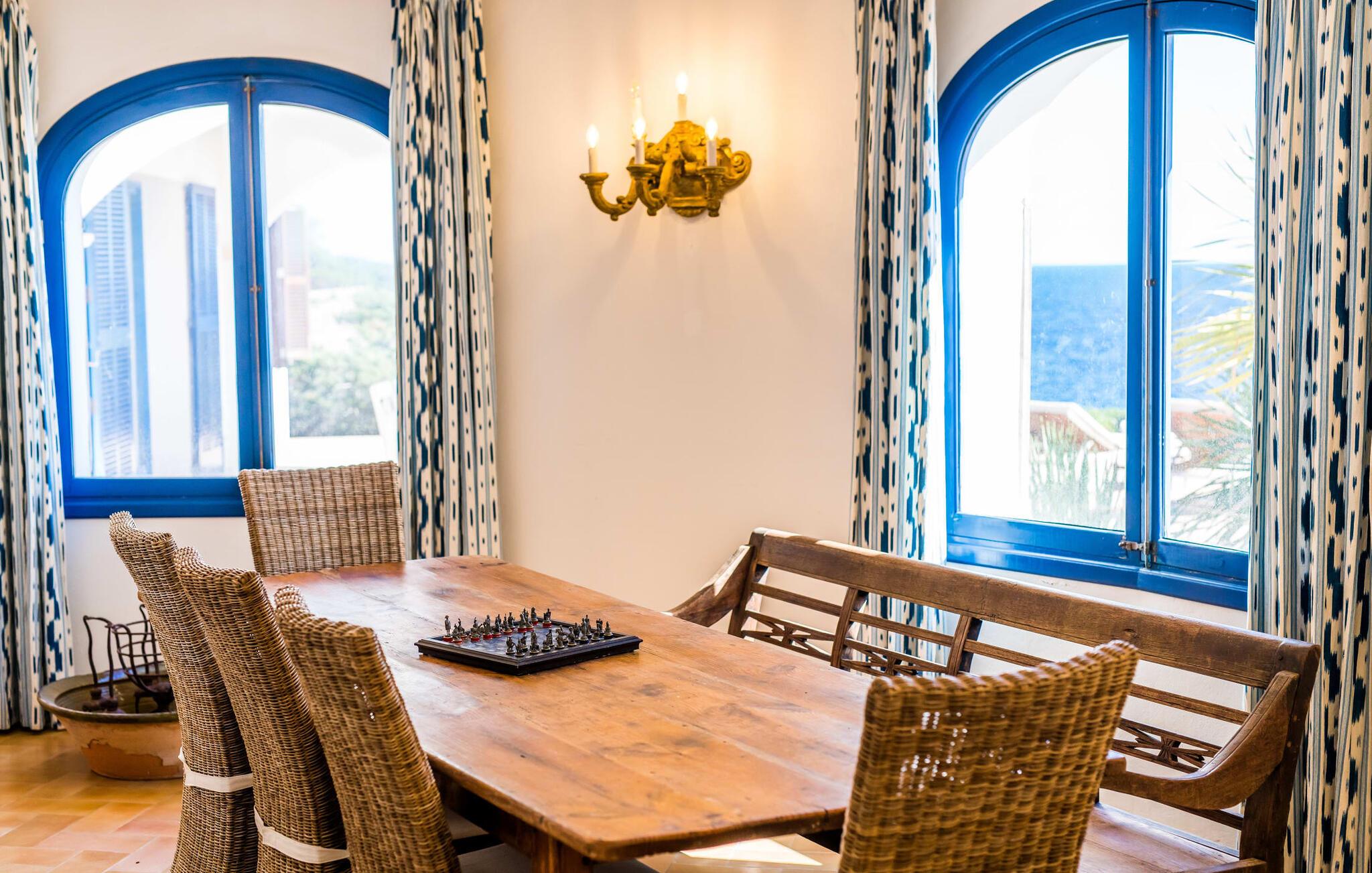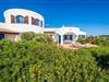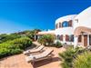 Villaen "Can Roca de Cala d'Or", bygget i Ibiza-stil, imponerer med sin førsteklasses beliggenhed direkte ved havet over Cala d'Ors forrevne kyst. Villaen er beliggende i et roligt boligområde, kun få minutters gang fra Cala Egos strand. Den sydøstvendte terrasse med havudsigt er omgivet af et middelhavsnaturlandskab og byder på betagende solopgange og lange solskinstimer. Slap af på en liggestol, spis morgenmad eller nyd et godt glas vin i den hyggelige lounge. På den anden side af villaen er der vind- og udsigtsbeskyttet have med 12 x 5 m pool. Her kan I placere jeres liggestol under høje palmer på den hyggelige græsplæne. Ved siden af poolområdet er der et bordtennisområde. Under verandaen ved indgangen er endnu en attraktiv udendørs spiseplads med sommerkøkken og indbygget grill. Der er en åben parkeringsplads og den brede villavej byder også på praktiske parkeringsmuligheder. Villaens lyse rum er spredt over to fløje, forbundet med et rundt tårn. Begge fløje har udgang til terrasse med havudsigt. To af de fem dobbeltværelser har direkte adgang til haven, mens det store master bedroom med tilstødende kontor og et enkeltværelse fører direkte ud til terrassen med havudsigt. På tårnets øverste etage er der endnu et dobbeltværelse med himmelseng og sensationel havudsigt. Vinduerne har myggenet og kan mørklægges med rulleskodder. Det rummelige, fuldt udstyrede køkken med to køleskabe er placeret i stueetagen af tårnet. Også på denne etage er den store stue med engelsk satellit-tv og spisestuen, begge med vidunderlig havudsigt. I de køligere måneder sørger flere pejse og gulvvarme (undtagen på øverste etage) for en hyggelig atmosfære. et pool- og terrasselandskab med uhindret havudsigt. Det trendy feriested Cala d'Or tilbyder det perfekte sted for kræsne feriegæster med sine hvide villaer og fremragende infrastruktur. I denne premium urbanisering er miljøet behageligt og kun delvist akustisk forurenet af biler. Der er kun 300 m til den nærmeste sandstrand med en lavvandet indgang til det krystalklare vand. De nærmeste butikker (Eroski) ligger kun 10 minutters gang fra villaen (mellem påske og oktober).