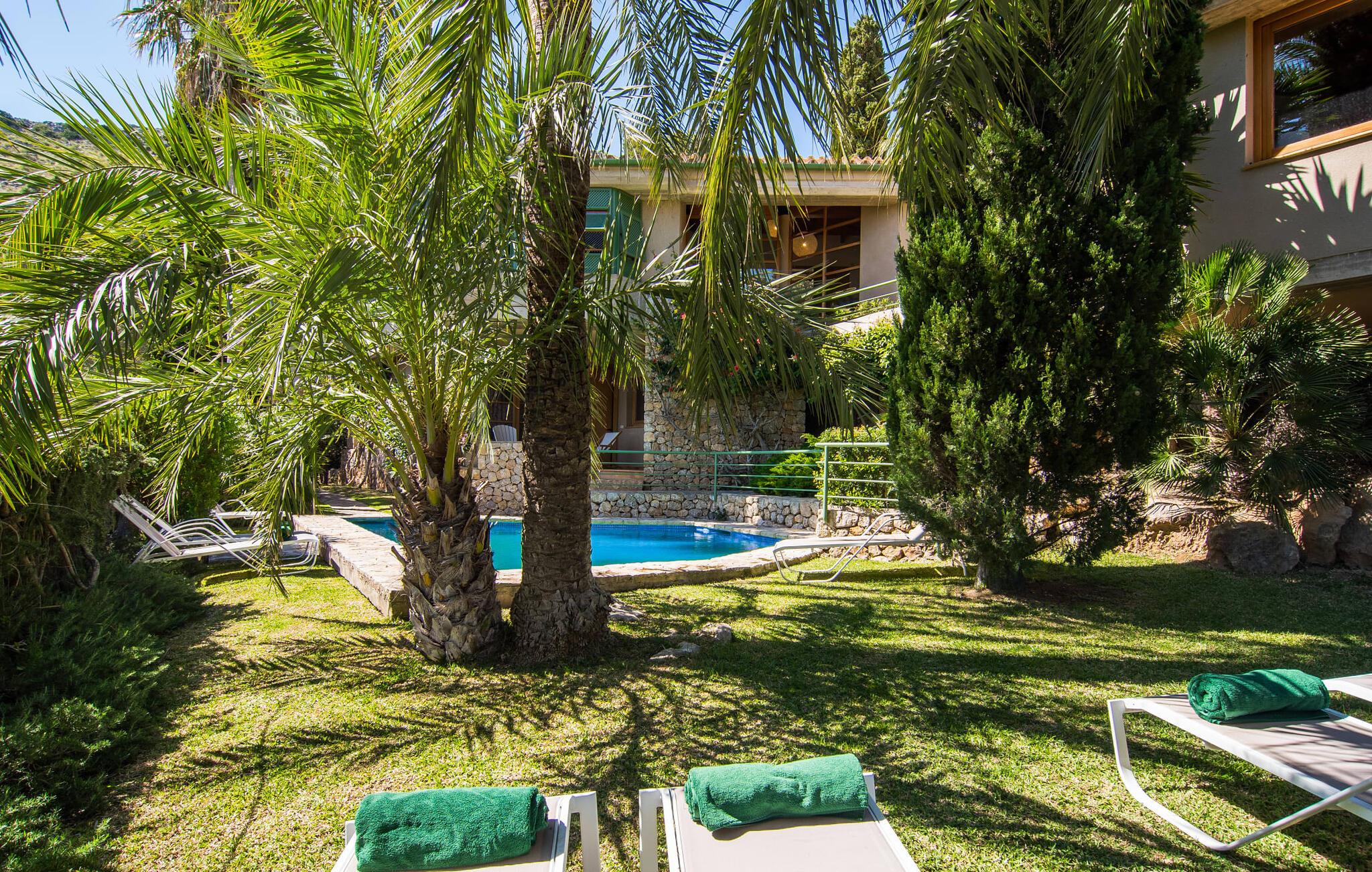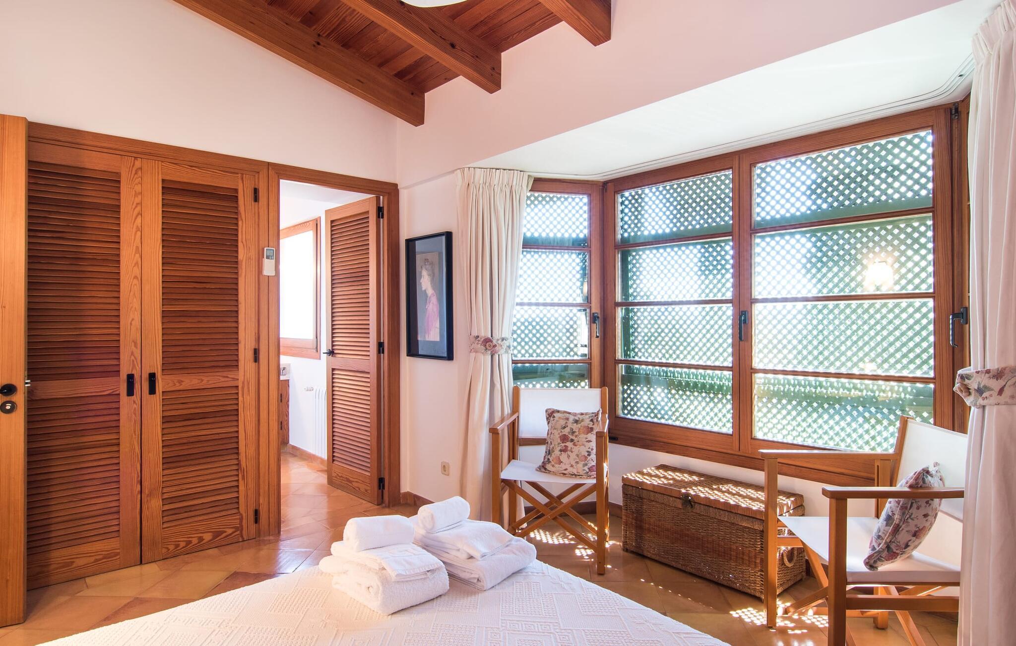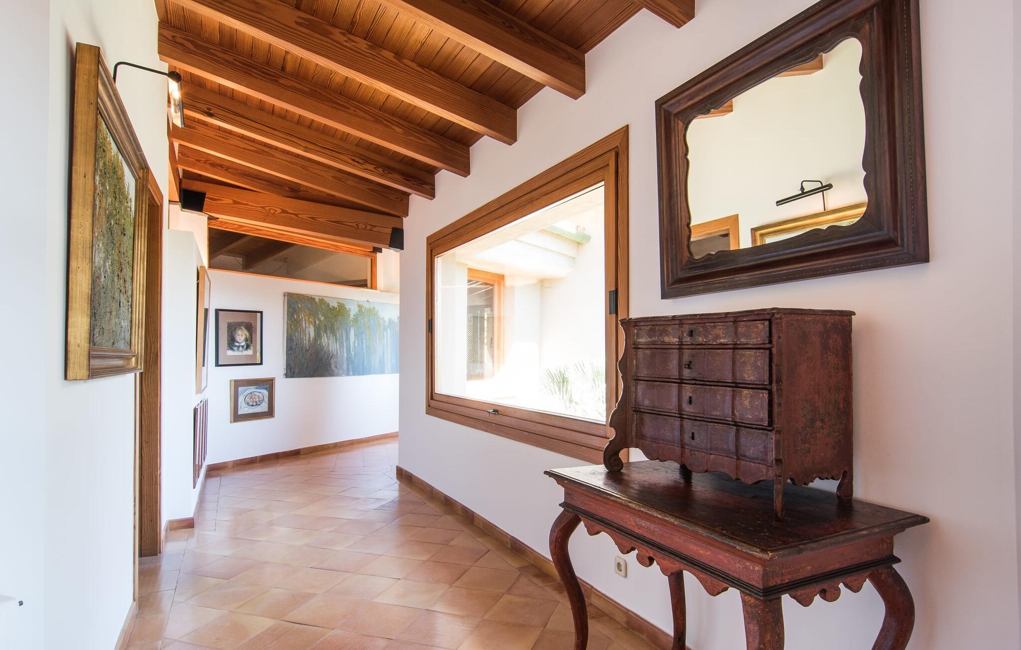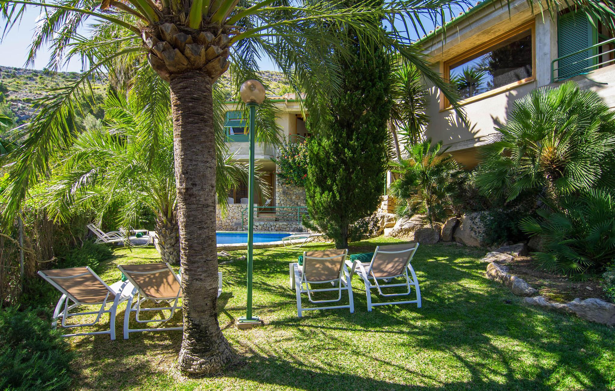 Beliggende på en bakke byder villaen "Can Seixanta" jer velkommen med en slående forhave efterfulgt af en uforglemmelig udsigt over bugten Port de Pollença. I kan nyde dette højdepunkt med en forfriskende drink fra terrassen, som er udstyret med komfortable siddepladser i rattan. Her finder I også en moderne gasgrill, hvormed I kan arrangere en grillfest hver aften. Det lange bord og siddeområdet i massivt træ giver masser af siddepladser. Poolområdet er beskyttet af palmer og andre træer. I kan tage en dukkert i den sekskantede pool efter behag og bruge liggestolene til en afslappende lur på græsplænen. Et af soveværelserne har direkte adgang til poolen og har også luksusen af sin egen lille terrasse. Huset er kendetegnet ved den venlige, lyse trætone i dets tagbjælker og dets vinduer, der lukker masser af lys ind. Stuen har en meget smart indretning, der flytter fokus til pejsen, hvilket skaber en usædvanlig hyggelig atmosfære. Det turkisgrønne siddeområde med to sofaer og en lænestol hviler på et håndvævet tæppe. Når I sætter jer her, vil I bemærke det udsøgte udvalg af kunstværker, herunder portrætter af høj kvalitet og sofistikerede landskabsmalerier. Går I et par trin ned, støder I på en udgang til haven. Bogreoler her og i spisepladsen i stuen sikrer, at selv kultiverede feriegæster hurtigt føler sig hjemme. Det skyldes nok også de antikke møbler, som dygtigt sætter accenter. Fra spisebordet når man det komfortabelt indrettede køkken, som ikke lader noget tilbage at ønske. En af sidevæggene kan åbnes om nødvendigt, så I til enhver tid kan skabe en følelse af plads og åbenhed i dette hus. Et af værelserne er indrettet som studie, her finder I også et skrivebord. To af soveværelserne har luksusen af deres eget badeværelse, ligesom den førnævnte suite, som I kan få adgang til fra poolen. Fra stueplan kan I gå et par trin ned i en anden fløj, som indeholder to soveværelser og et badeværelse. Alle værelser er udstyret med aircondition, så I kan nyde en afslappende søvn ved en behagelig temperatur. At tre af badeværelserne har badekar er en luksus, der giver mange gæster mulighed for at slappe af i badekarret og nyde et boblebad for at koble af dagen. Et vaskerum med vaskemaskine og tørretumbler er også udstyret med et strygebræt, hvis I ønsker at gøre jer klar til en aftenudflugt på en af de udsøgte restauranter. Regionen omkring Pollença er også et must for aktive rejsende: I Tramuntana-bjergene kan I vandre på snoede skovstier, opdage skjulte strande langs kysten eller nyde historiske bycentre væk fra masseturismen - takket være de gode transportforbindelser. Det betyder, at trafikstøj kan være hørbar afhængigt af vindretningen. Villaen er en perfekt base for alle disse aktiviteter. Med Cap de Bou, Platja de Port de Pollença og Cala Sant Vicenç er adskillige strande let tilgængelige. Den lange bugt Alcúdia er ideel til en lang gåtur. Øens flora og fauna gør en tur til vådområderne i L'Albufereta, 8,5 km væk, umagen værd. Villaen "Can Seixanta" forkæler jer med en spektakulær udsigt over bugten Port de Pollença. Den lille by med sin attraktive strandpromenade ligger kun 4 km væk. Bådene sejler regelmæssigt derfra og tager jer til den fine sandstrand Formentor. I kan også tilbringe en dag med at svømme i Cala St. Vincente, kun 6 km væk. De vildt romantiske Tramuntana-bjerge med utallige vandrehøjdepunkter kan også hurtigt nås - perfekt for alle naturelskere.