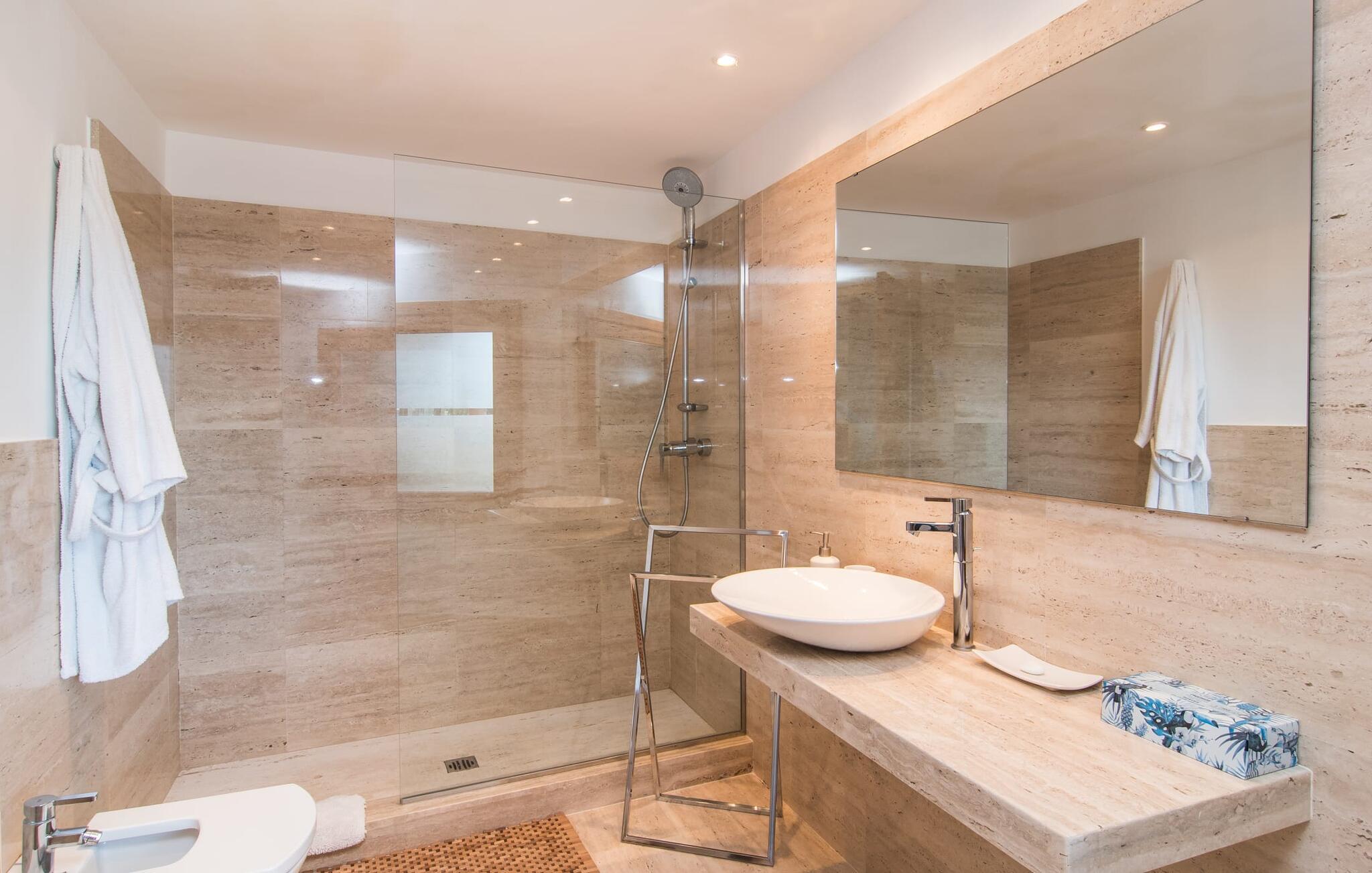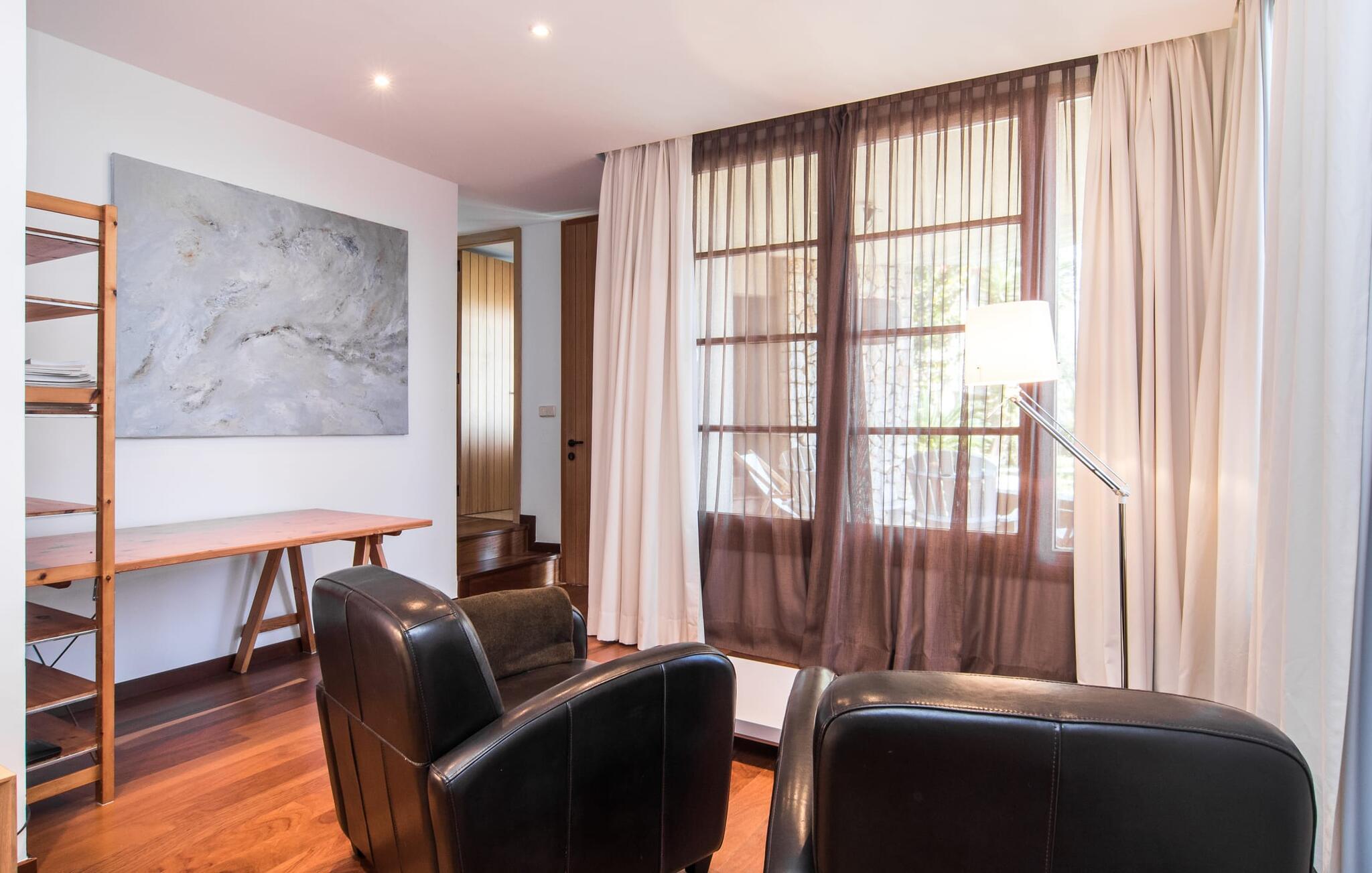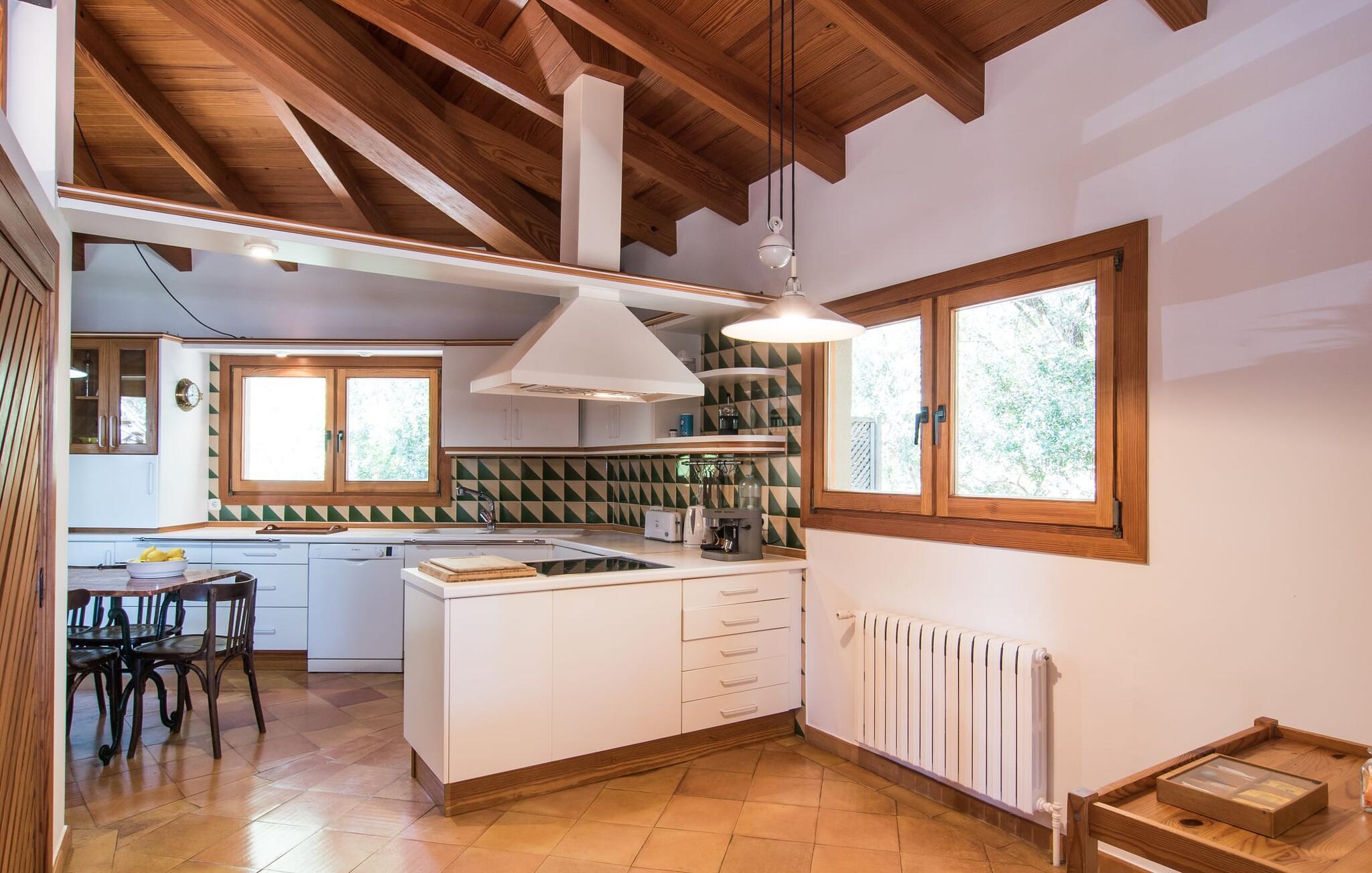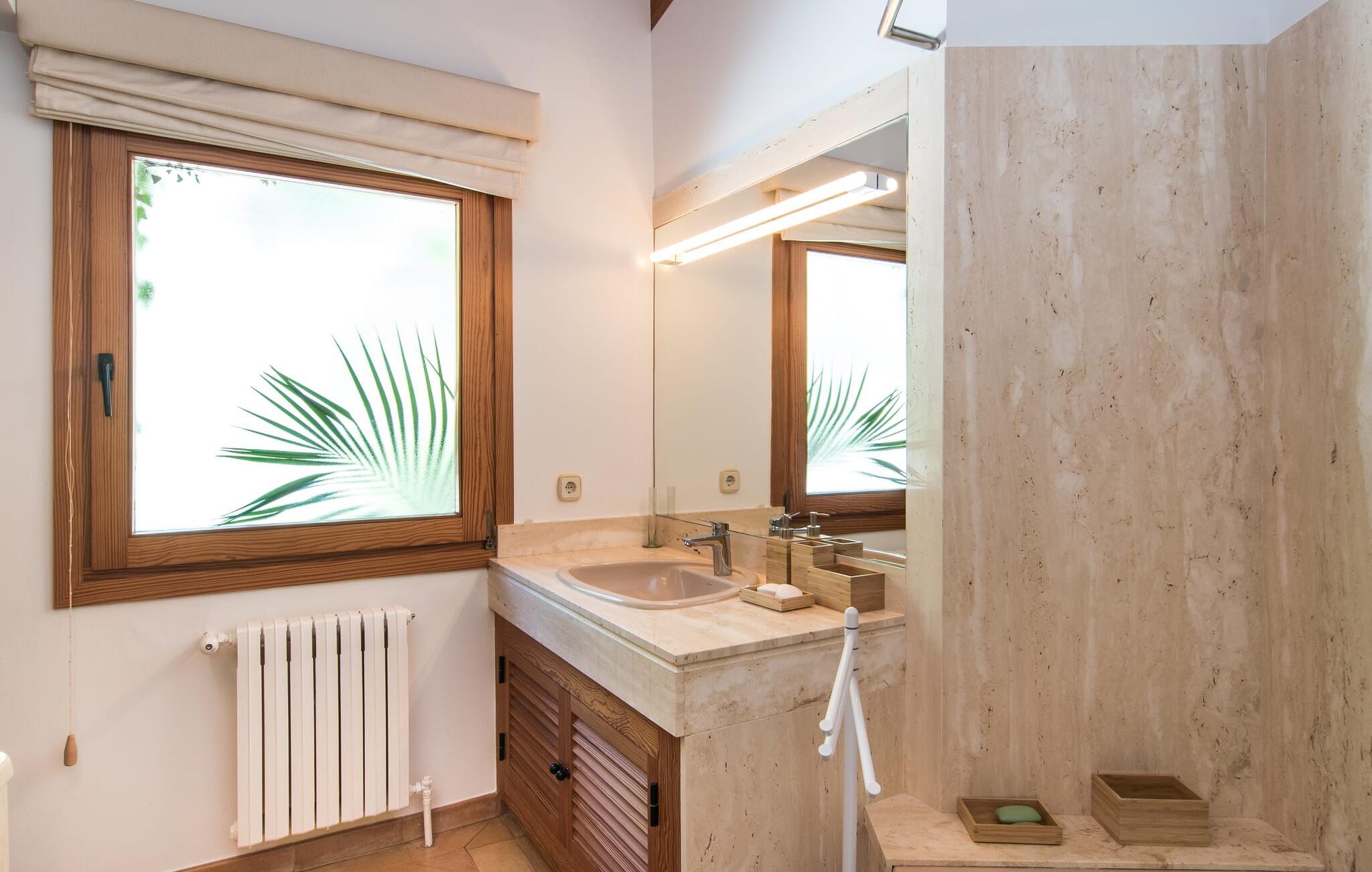 Beliggende på en bakke byder villaen "Can Seixanta" jer velkommen med en slående forhave efterfulgt af en uforglemmelig udsigt over bugten Port de Pollença. I kan nyde dette højdepunkt med en forfriskende drink fra terrassen, som er udstyret med komfortable siddepladser i rattan. Her finder I også en moderne gasgrill, hvormed I kan arrangere en grillfest hver aften. Det lange bord og siddeområdet i massivt træ giver masser af siddepladser. Poolområdet er beskyttet af palmer og andre træer. I kan tage en dukkert i den sekskantede pool efter behag og bruge liggestolene til en afslappende lur på græsplænen. Et af soveværelserne har direkte adgang til poolen og har også luksusen af sin egen lille terrasse. Huset er kendetegnet ved den venlige, lyse trætone i dets tagbjælker og dets vinduer, der lukker masser af lys ind. Stuen har en meget smart indretning, der flytter fokus til pejsen, hvilket skaber en usædvanlig hyggelig atmosfære. Det turkisgrønne siddeområde med to sofaer og en lænestol hviler på et håndvævet tæppe. Når I sætter jer her, vil I bemærke det udsøgte udvalg af kunstværker, herunder portrætter af høj kvalitet og sofistikerede landskabsmalerier. Går I et par trin ned, støder I på en udgang til haven. Bogreoler her og i spisepladsen i stuen sikrer, at selv kultiverede feriegæster hurtigt føler sig hjemme. Det skyldes nok også de antikke møbler, som dygtigt sætter accenter. Fra spisebordet når man det komfortabelt indrettede køkken, som ikke lader noget tilbage at ønske. En af sidevæggene kan åbnes om nødvendigt, så I til enhver tid kan skabe en følelse af plads og åbenhed i dette hus. Et af værelserne er indrettet som studie, her finder I også et skrivebord. To af soveværelserne har luksusen af deres eget badeværelse, ligesom den førnævnte suite, som I kan få adgang til fra poolen. Fra stueplan kan I gå et par trin ned i en anden fløj, som indeholder to soveværelser og et badeværelse. Alle værelser er udstyret med aircondition, så I kan nyde en afslappende søvn ved en behagelig temperatur. At tre af badeværelserne har badekar er en luksus, der giver mange gæster mulighed for at slappe af i badekarret og nyde et boblebad for at koble af dagen. Et vaskerum med vaskemaskine og tørretumbler er også udstyret med et strygebræt, hvis I ønsker at gøre jer klar til en aftenudflugt på en af de udsøgte restauranter. Regionen omkring Pollença er også et must for aktive rejsende: I Tramuntana-bjergene kan I vandre på snoede skovstier, opdage skjulte strande langs kysten eller nyde historiske bycentre væk fra masseturismen - takket være de gode transportforbindelser. Det betyder, at trafikstøj kan være hørbar afhængigt af vindretningen. Villaen er en perfekt base for alle disse aktiviteter. Med Cap de Bou, Platja de Port de Pollença og Cala Sant Vicenç er adskillige strande let tilgængelige. Den lange bugt Alcúdia er ideel til en lang gåtur. Øens flora og fauna gør en tur til vådområderne i L'Albufereta, 8,5 km væk, umagen værd. Villaen "Can Seixanta" forkæler jer med en spektakulær udsigt over bugten Port de Pollença. Den lille by med sin attraktive strandpromenade ligger kun 4 km væk. Bådene sejler regelmæssigt derfra og tager jer til den fine sandstrand Formentor. I kan også tilbringe en dag med at svømme i Cala St. Vincente, kun 6 km væk. De vildt romantiske Tramuntana-bjerge med utallige vandrehøjdepunkter kan også hurtigt nås - perfekt for alle naturelskere.