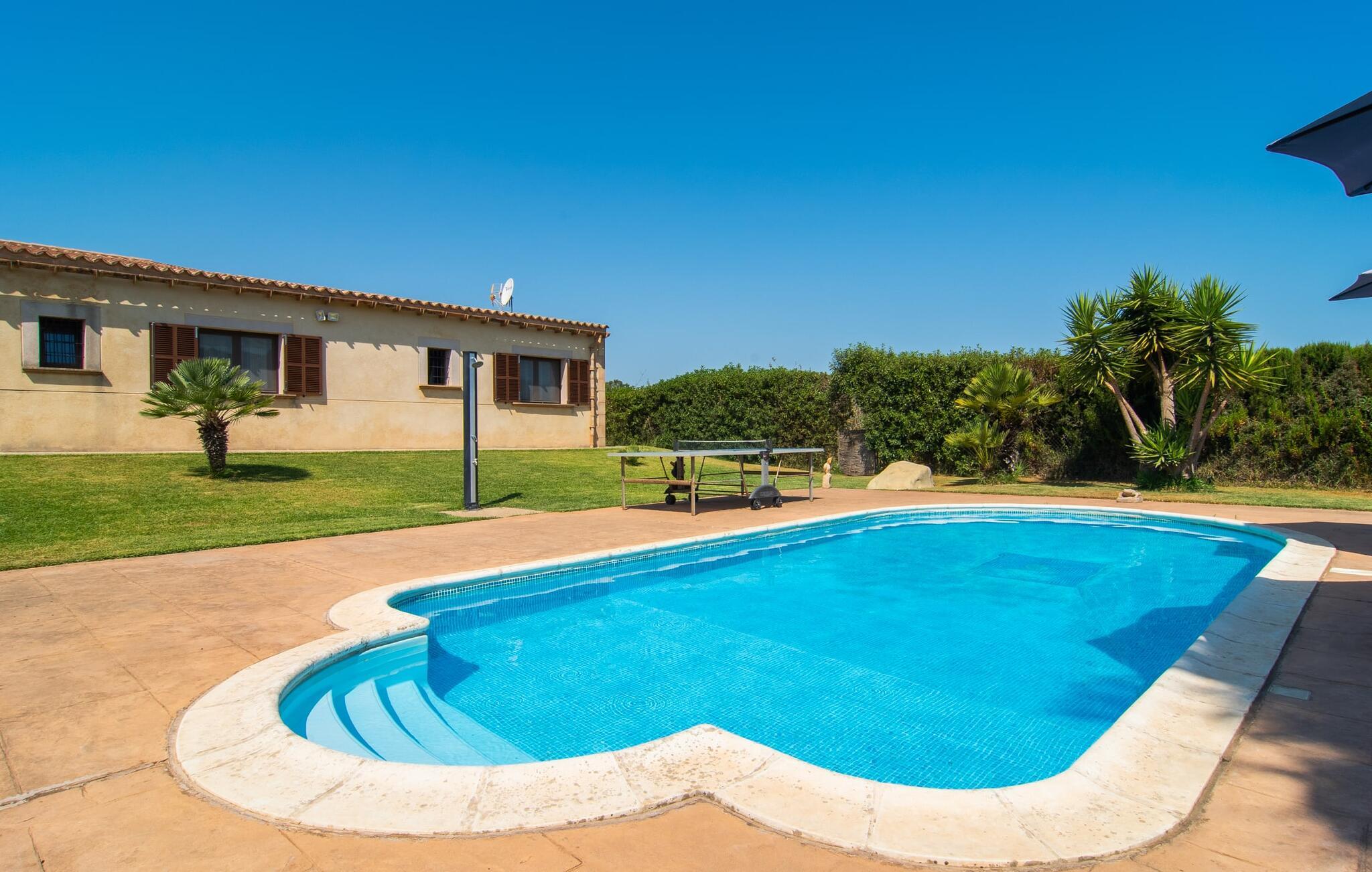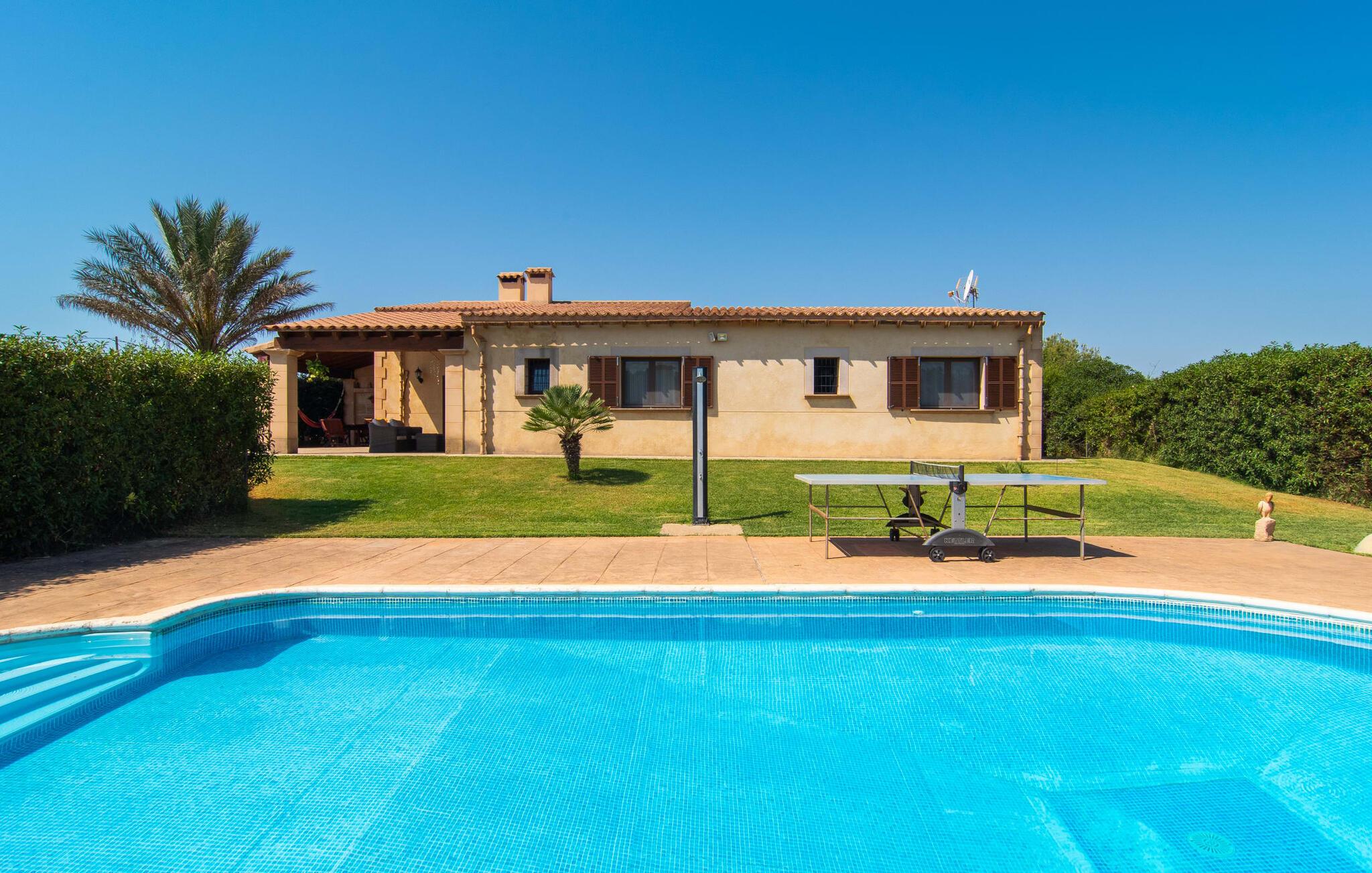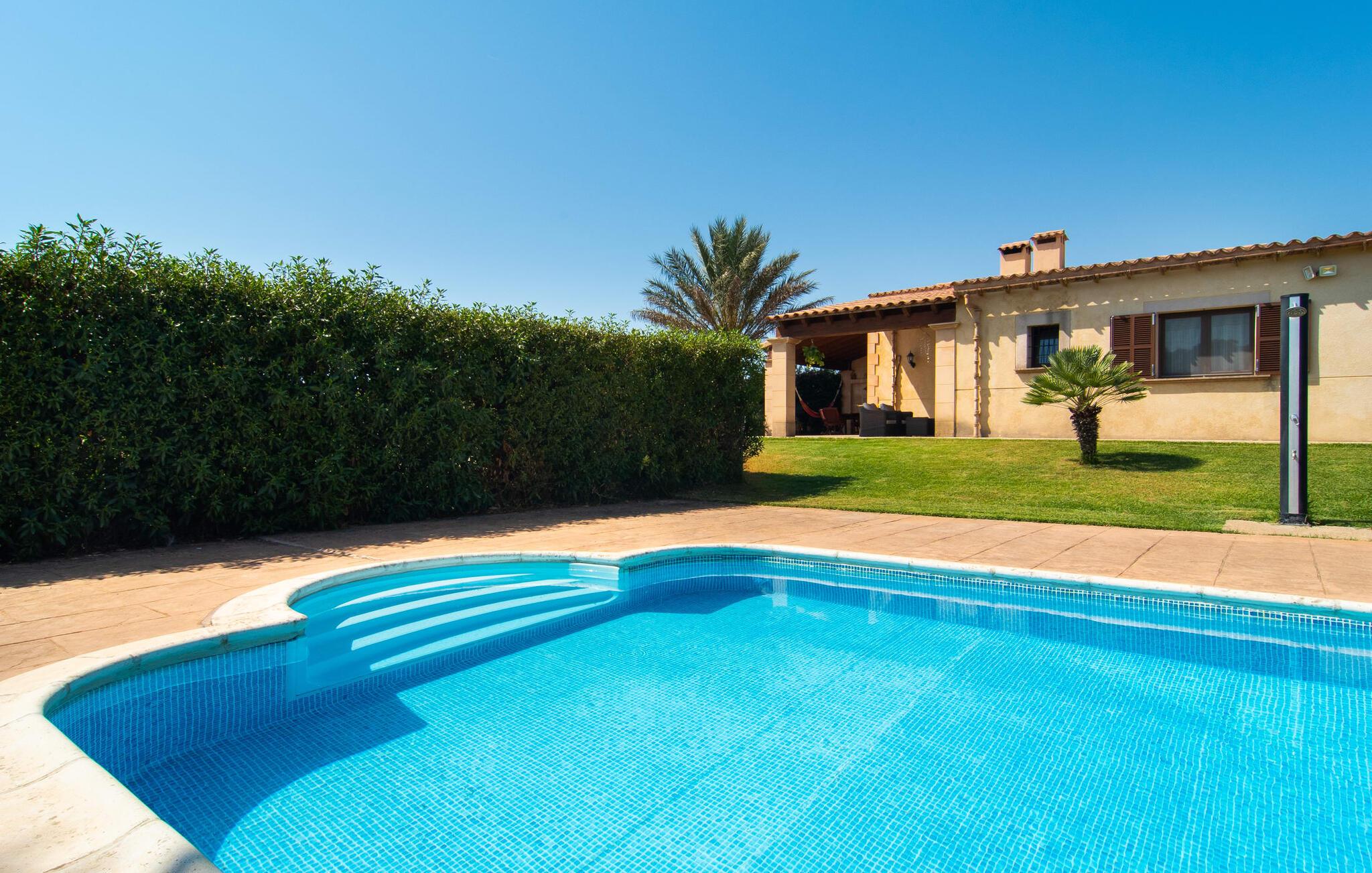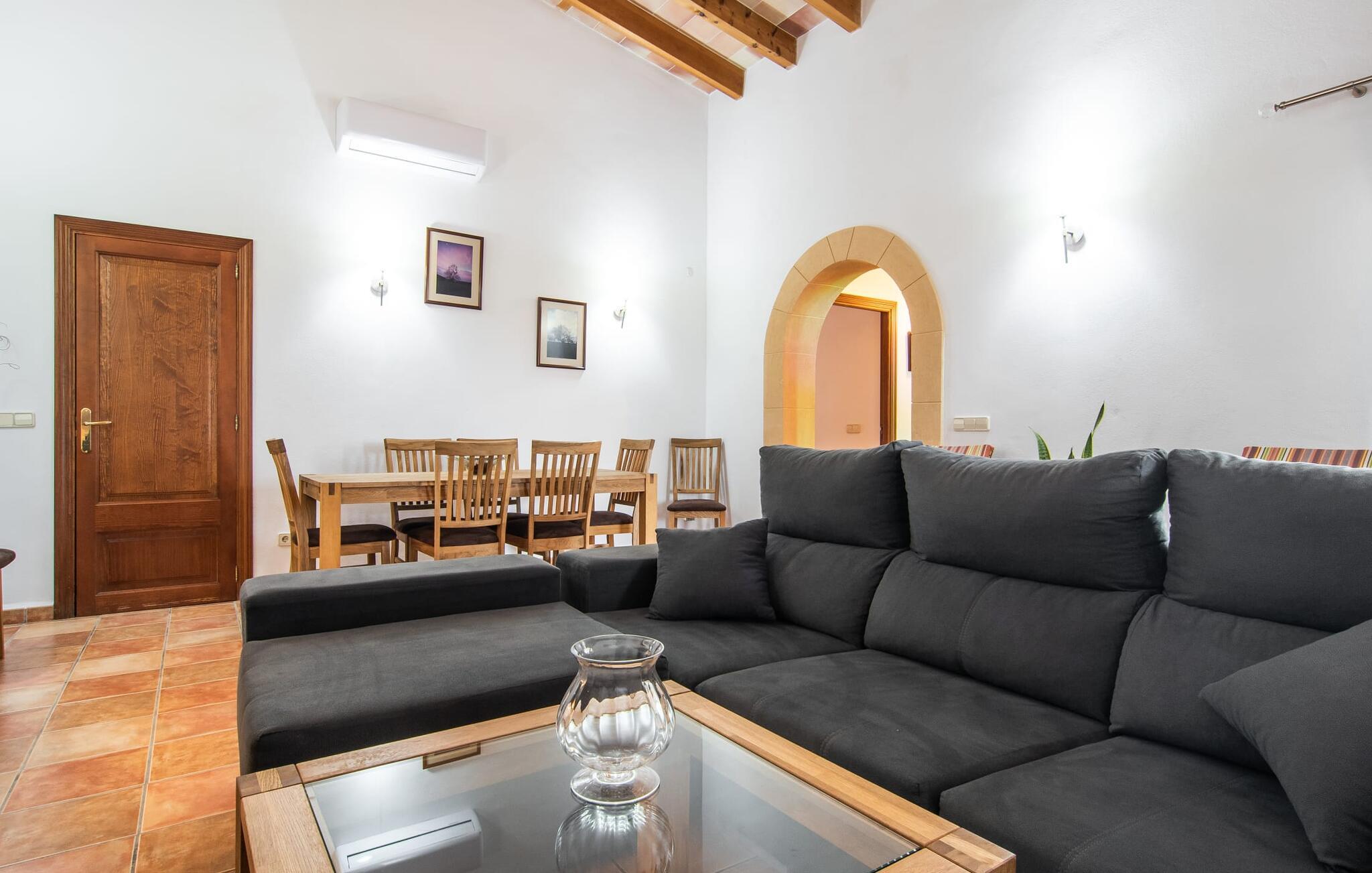 Det familievenlige feriehus "Can Siurell" er ideelt placeret, kun en kort cykeltur fra den charmerende by Artá i det østlige Mallorca. Dette velholdte tilflugtssted tilbyder et indbydende udendørsområde, perfekt til afslappede gåture eller solbadning. To af de tre terrasser er overdækkede, ideelle til at nyde Middelhavets sommeraftener. En terrasse har udsigt over haven, med frodige hække og uberørte græsplæner, der omgiver den let tilgængelige pool. Den anden overdækkede terrasse har en muret grill og en udendørs spiseplads med direkte adgang til køkkenet. Selvom I deler mur med naboejendommen "Kelly", bevares jeres privatliv, jeres indkørsel og jeres eksklusive pooladgang. "Can Siurell" er også perfekt til cykelentusiaster, da den ligger på en naturskøn rute, der snor sig gennem de bakkede landskaber i Serra de Llevant. Indvendigt åbner stueetagen ud i en rummelig stue/spisestue med moderne badeværelse og bruseniche til højre. Til venstre fører en sandstensbue ind i det veludstyrede landkøkken med nem adgang til spiseterrassen. De tre komfortable dobbeltværelser byder på smuk udsigt over haven, og det ene har direkte adgang til en lille terrasse med smuk udsigt over bjergene. Alle værelser er udstyret med myggenet og skodder, hvilket sikrer en fredelig hvile. "Can Siurell" ligger kun 2 km fra portene til Golgata-byen Artà. Ligesom Capdepera byder Artà også på førsteklasses shoppingmuligheder. Byens tirsdagsmarked er en begivenhed i sig selv. Smukke (naturlige) strande som Platja de son Moll eller Cala Agulla er blot et par minutters kørsel væk, og en gåtur fra Ermita de Betlem kan ende ved Platja de Colonia de San Pere.
