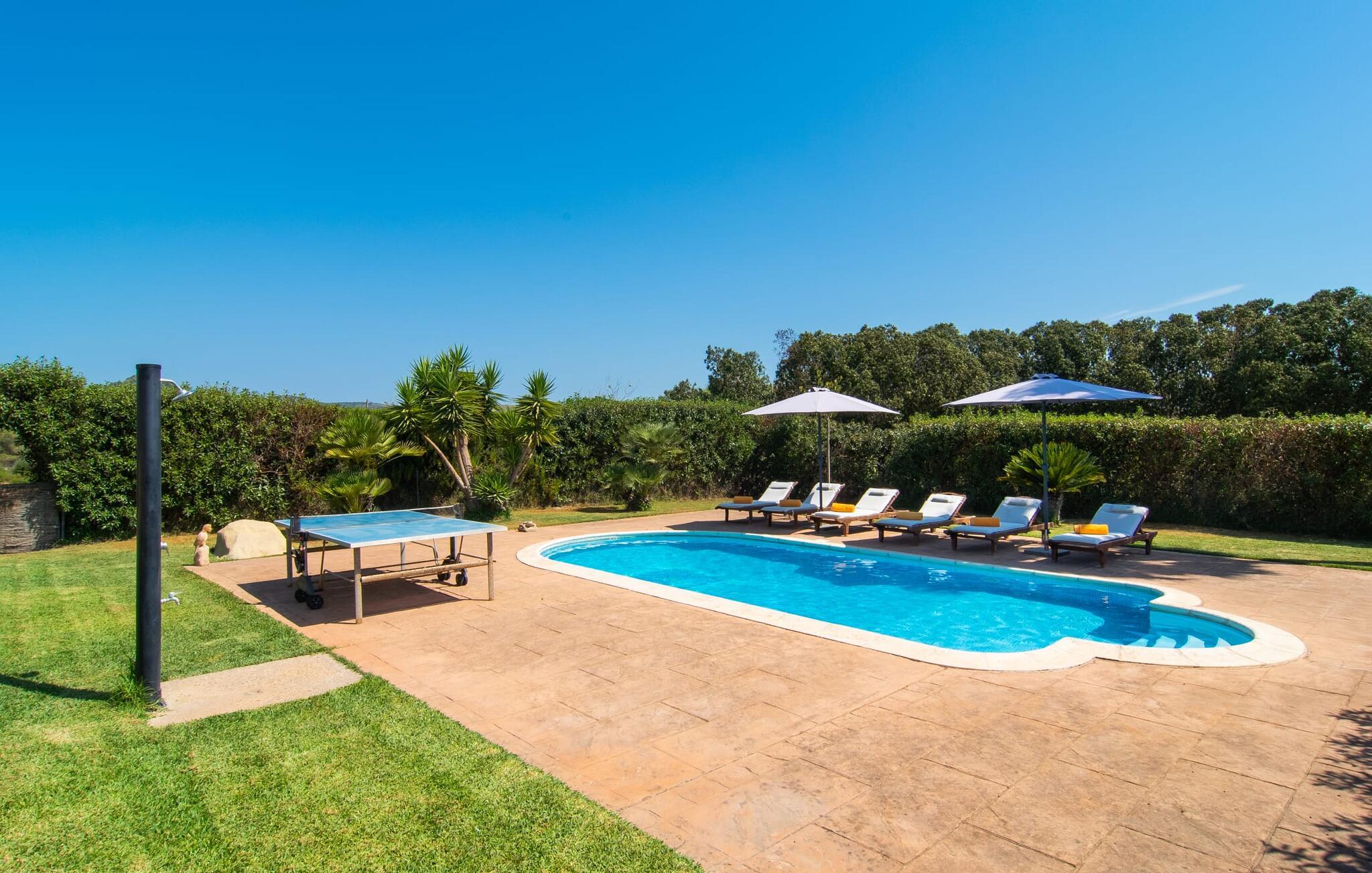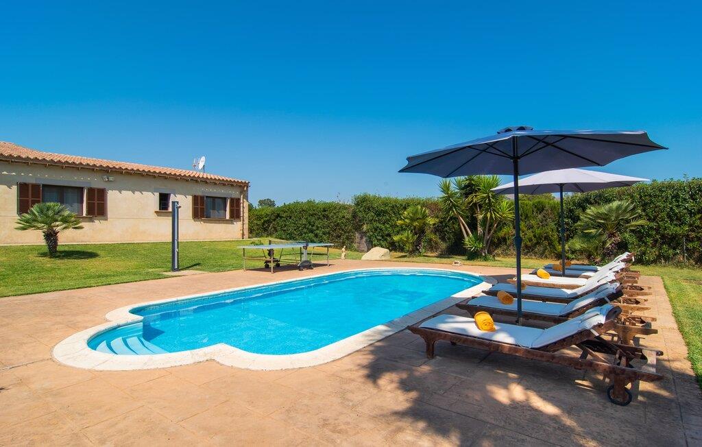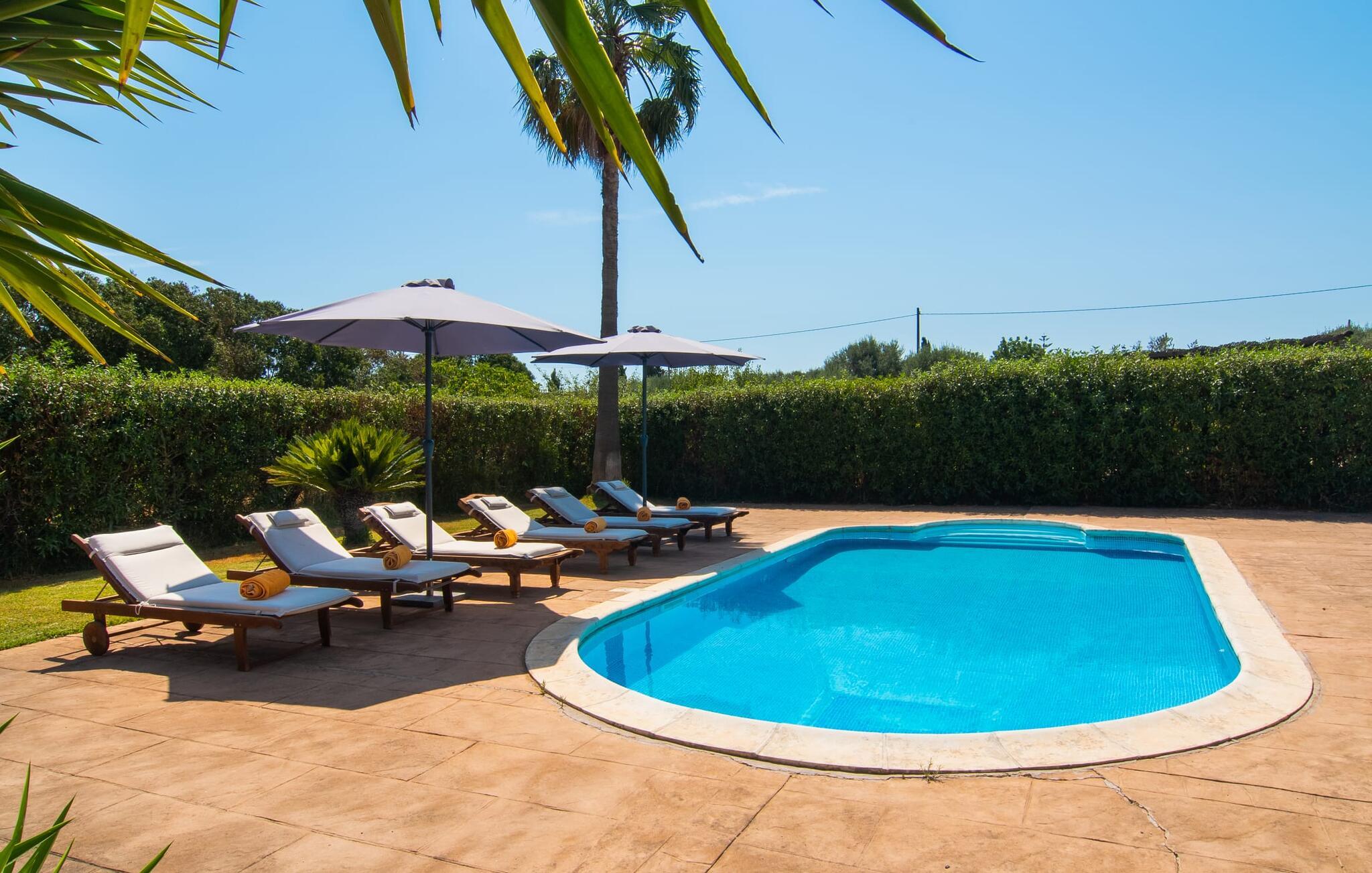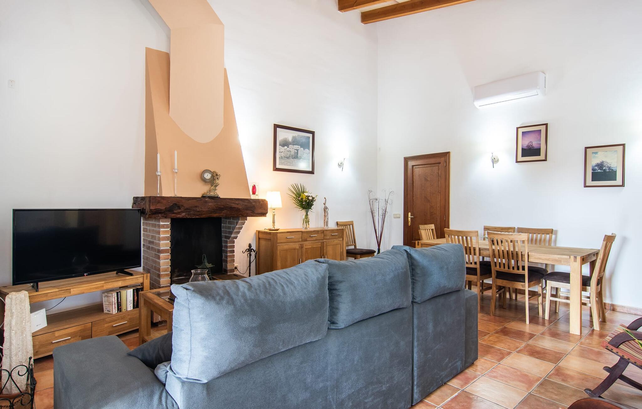 Det familievenlige feriehus "Can Siurell" er ideelt placeret, kun en kort cykeltur fra den charmerende by Artá i det østlige Mallorca. Dette velholdte tilflugtssted tilbyder et indbydende udendørsområde, perfekt til afslappede gåture eller solbadning. To af de tre terrasser er overdækkede, ideelle til at nyde Middelhavets sommeraftener. En terrasse har udsigt over haven, med frodige hække og uberørte græsplæner, der omgiver den let tilgængelige pool. Den anden overdækkede terrasse har en muret grill og en udendørs spiseplads med direkte adgang til køkkenet. Selvom I deler mur med naboejendommen "Kelly", bevares jeres privatliv, jeres indkørsel og jeres eksklusive pooladgang. "Can Siurell" er også perfekt til cykelentusiaster, da den ligger på en naturskøn rute, der snor sig gennem de bakkede landskaber i Serra de Llevant. Indvendigt åbner stueetagen ud i en rummelig stue/spisestue med moderne badeværelse og bruseniche til højre. Til venstre fører en sandstensbue ind i det veludstyrede landkøkken med nem adgang til spiseterrassen. De tre komfortable dobbeltværelser byder på smuk udsigt over haven, og det ene har direkte adgang til en lille terrasse med smuk udsigt over bjergene. Alle værelser er udstyret med myggenet og skodder, hvilket sikrer en fredelig hvile. "Can Siurell" ligger kun 2 km fra portene til Golgata-byen Artà. Ligesom Capdepera byder Artà også på førsteklasses shoppingmuligheder. Byens tirsdagsmarked er en begivenhed i sig selv. Smukke (naturlige) strande som Platja de son Moll eller Cala Agulla er blot et par minutters kørsel væk, og en gåtur fra Ermita de Betlem kan ende ved Platja de Colonia de San Pere.