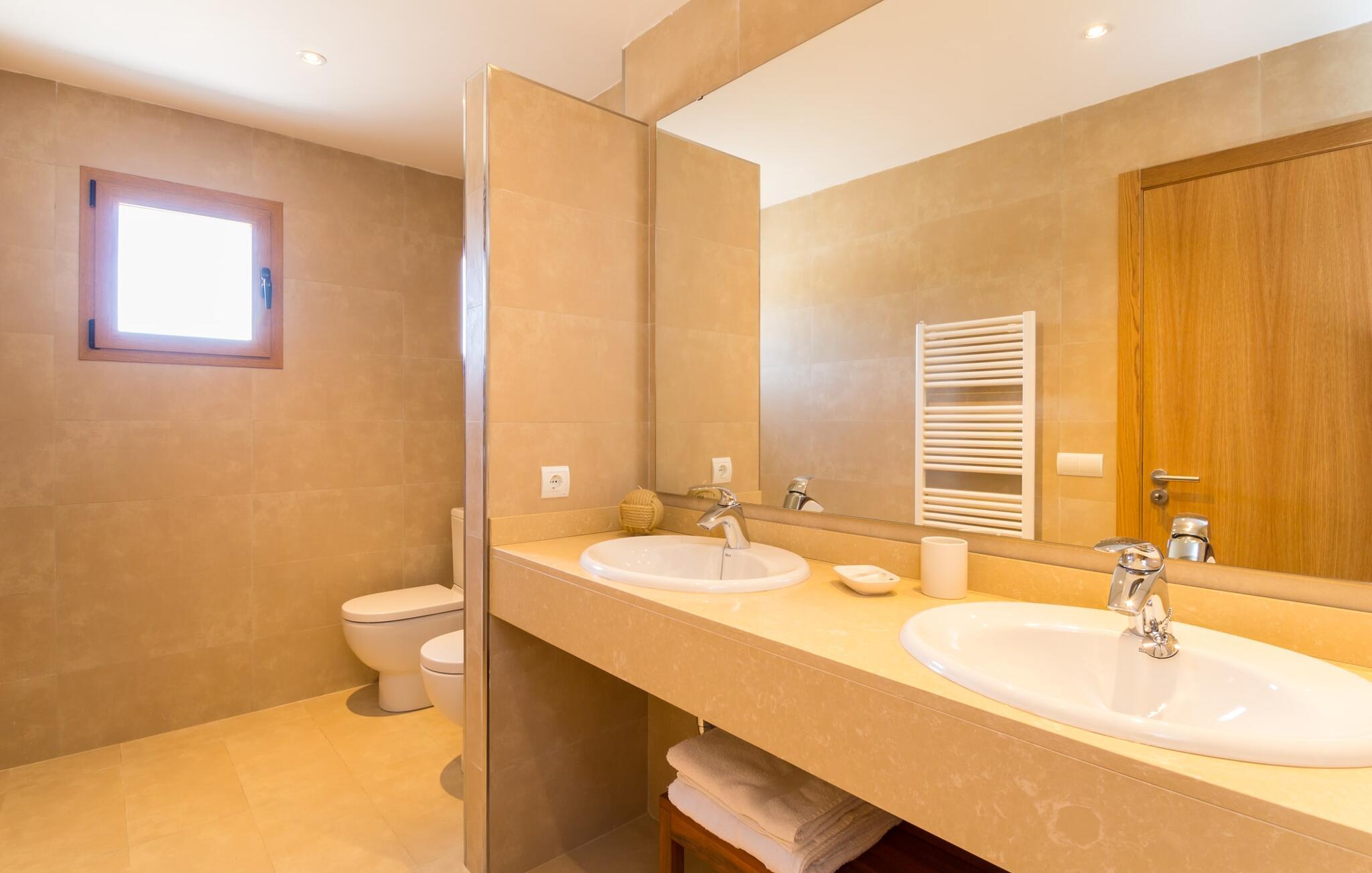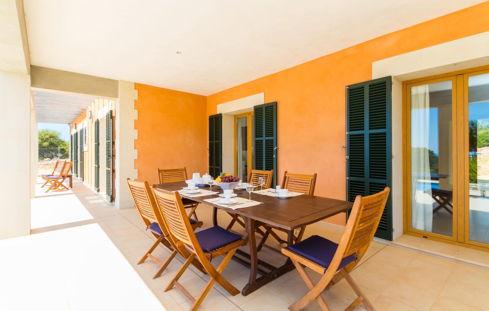 Feriegæster bør være opmærksomme på denne ejendom, hvis de værdsætter et moderne, velholdt feriehus og elsker uhindret havudsigt. Villa "Can Tem" dækker utrolige 355.500 kvadratmeter og skiller sig ud fra landskabet som en lille, storslået ejendom. Grunden i nærheden af huset har græsplæner og terrasseområder og er foret med ung middelhavsvegetation, hvilket giver uhindret udsigt over det omkringliggende landskab og udsigt ud over havet i lang tid. I midten af haven ligger den elegante pool, som har en meget komfortabel trinadgang og en rummelig solterrasse ved siden af. I kan slappe af i solen på de komfortable liggestole og nyde den fantastiske natur i denne ferievilla. Hvis solen er for stærk, er der tre parasoller til beskyttelse. I kan også drage fordel af den luftige skygge på den store veranda, som ligger tre trin over poolen: Med sin gulmalede facade ser den særdeles munter og indbydende ud. Her kan I nyde en hyggelig middag ved det store spisebord, mens I nyder den vidunderlige udsigt eller slappe af med stil i den ultramoderne lounge. Et godt lokale til en elegant start og afslutning på dagen: om aftenen kan I for eksempel arrangere en kulinarisk grill. Udvidelsen af verandaen byder på yderligere delvist skyggefulde steder, hvor I kan samles i små grupper eller bo alene, hvis I ønsker det. I kan også sidde under oliventræerne i nærheden af de to udhuse og måske læse en god bog. Der er mange måder at finde jeres helt eget yndlingssted på. Inde i huset finder I en rummelig stue indrettet med lyse farver og usædvanlige, unikke elementer. På væggene finder I alle mulige bemærkelsesværdige kunsttryk og opdager mange andre detaljer. Den kombinerede stue/spisestue byder på et kæmpe sofahjørne, hvor I kan sidde komfortabelt på de komfortable siddepladser på ethvert tidspunkt af dagen. Fladskærms-tv'et er også bekvemt placeret her. Midt i lokalet er der et stort spisebord med stole i original stil, der kan rumme otte personer. Det rummelige køkken fremstår stilrent og er udstyret med stort køleskab, ovn, keramisk kogeplade, mikroovn, opvaskemaskine, elkedel, Nespresso kaffemaskine og meget mere. Der er også plads nok til et ekstra spisebord, der kan bruges af seks personer. Soveværelset med aircondition inviterer jer til at slappe af. Uden unødvendige dikkedarer overrasker disse værelser med deres lysstyrke og mange nuancer af hvid, kombineret med kontrasterende kunstneriske accenter. For en behagelig hvile har gæsterne i alt en seng, der måler 1,80 x 2,00 m og ti senge, der måler 0,90 x 2,00 m til deres rådighed. I stueetagen er der et soveværelse med en-suite badeværelse og et gæstetoilet, mens der på første sal er fem soveværelser, hvoraf det ene har en-suite badeværelse, og yderligere to separate badeværelser. Soveværelsets smagfulde design kommer også til sin ret på badeværelserne. Disse er kendetegnet ved deres meget komfortable, rummelige og ultramoderne stil. Hvis det kræves, er to babysenge og høje stole til rådighed. Porto Cristo byder på en smuk strand med lavvandet adgang til havet og en smuk promenade. Der finder I også adskillige store supermarkeder, hvoraf nogle også har åbent på søn- og helligdage. Her kan I få alt, hvad I skal bruge til jeres daglige behov. De mange strande omkring havnebyen kan også varmt anbefales. Den ultramoderne og venlige villa "Can Tem" ligger kun få kilometer fra havet på østsiden af øen, ikke langt fra Porto Cristo. Den bekvemme beliggenhed gør den daglige indkøb nemmere. Der er et ugentligt marked i Manacor hver mandag. De smukke strande på østkysten kan nås hurtigt i bil.