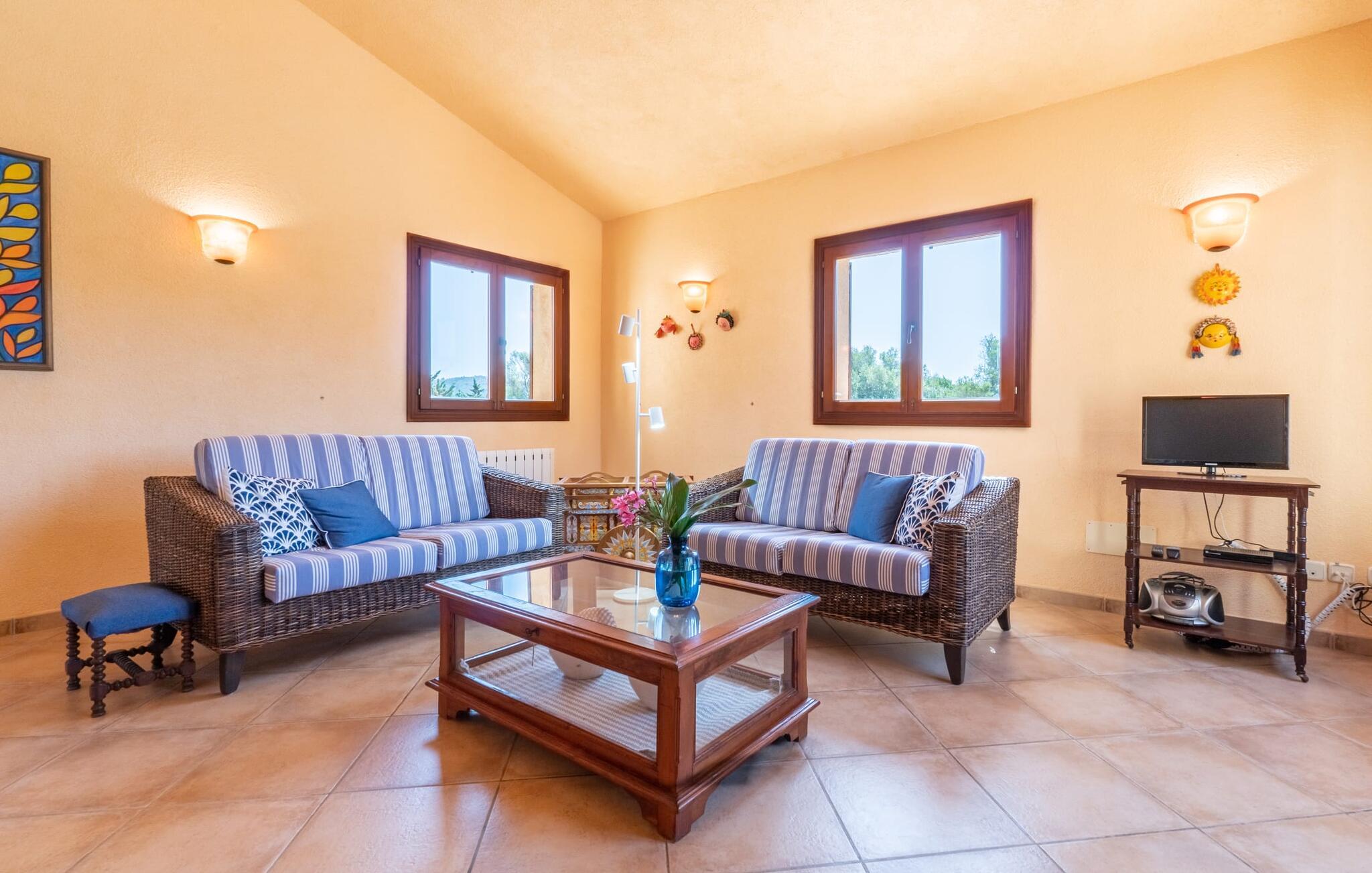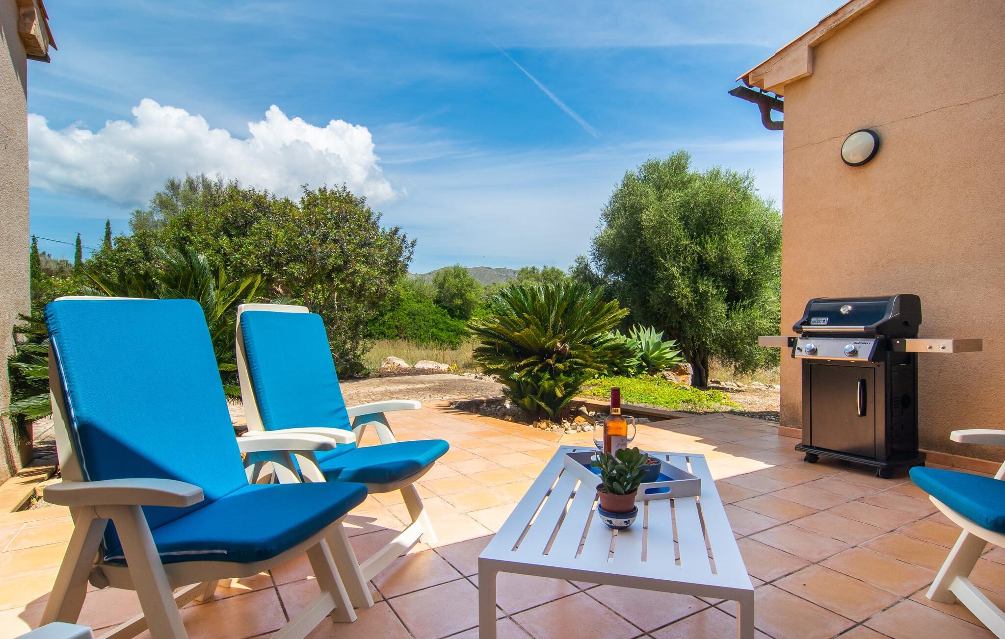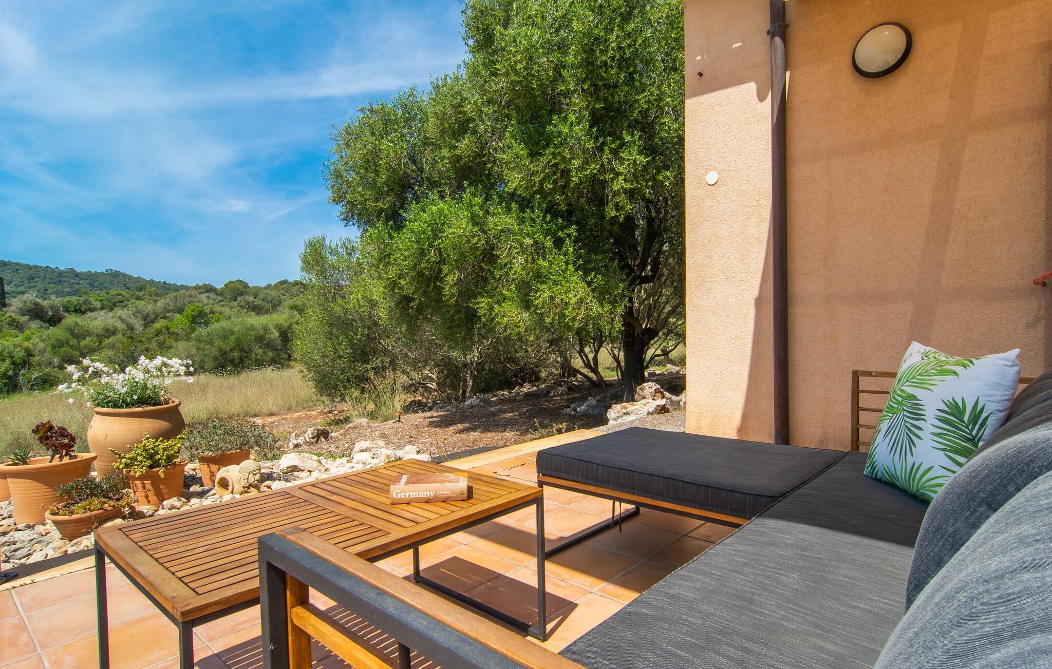 Terrasserne på denne bondegård "Can Terrasa" strækker sig i forskellige retninger og er præget af natursten og middelhavstræer, der skaber en fredelig atmosfære. I finder komfortable siddepladser foran og bag huset og ved poolen er der liggestole nok til alle solsøgende og en praktisk udendørs bruser til en forfriskende afkøling. Sørg for at tage jer tid hver dag til at slappe af udenfor og nyde den smukke udsigt over det omkringliggende landskab. Fra terrassen ud mod poolen fører flere gulv-til-loft vinduer direkte ind i de rummelige spise- og opholdsrum. Den hyggelige atmosfære med pastelfarvede vægge, masser af træ, stilfulde møbler og farverige accenter gør dette et-etagers hjem virkelig indbydende. Lys fylder boligerne, inklusive det fuldt udstyrede køkken, og tilføjer til hjemmets charme. I vil finde tre komfortabelt møblerede soveværelser, suppleret med to badeværelser, hver med bruser. Den smukke, store gang byder velkommen, når I træder ind gennem hovedindgangen og lægger grunden til en skøn ferieoplevelse. Dette charmerende feriehus på Mallorca ligger i en landlig og rolig trekant med landsbyerne Capdepera (ca. 4 km) og Canyamel (ca. 6 km). Capdepera er et godt sted at shoppe, især om onsdagen, når det er markedsdag. Et besøg i Artà, der ligesom Capdepera har bevaret sin oprindelige karakter, bør ikke gå glip af – det er kun godt 10 minutter i bil. Indbydende strande kan også nås hurtigt med lejebil.