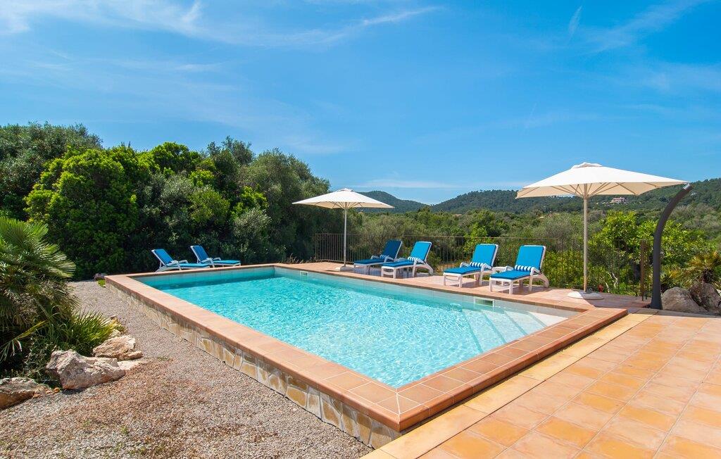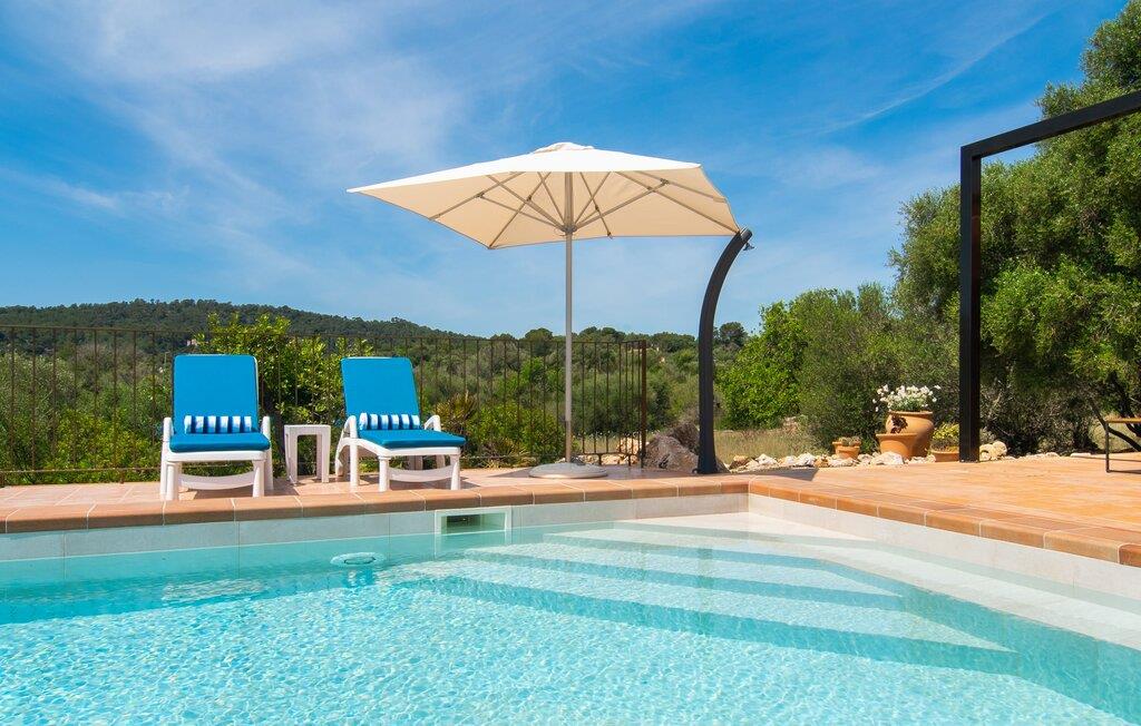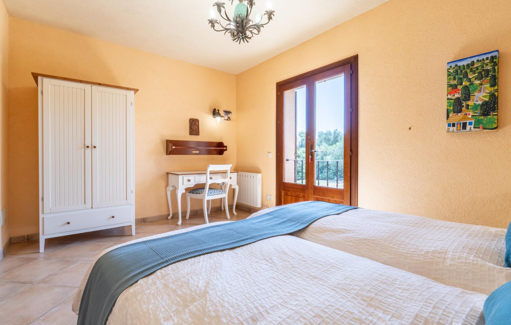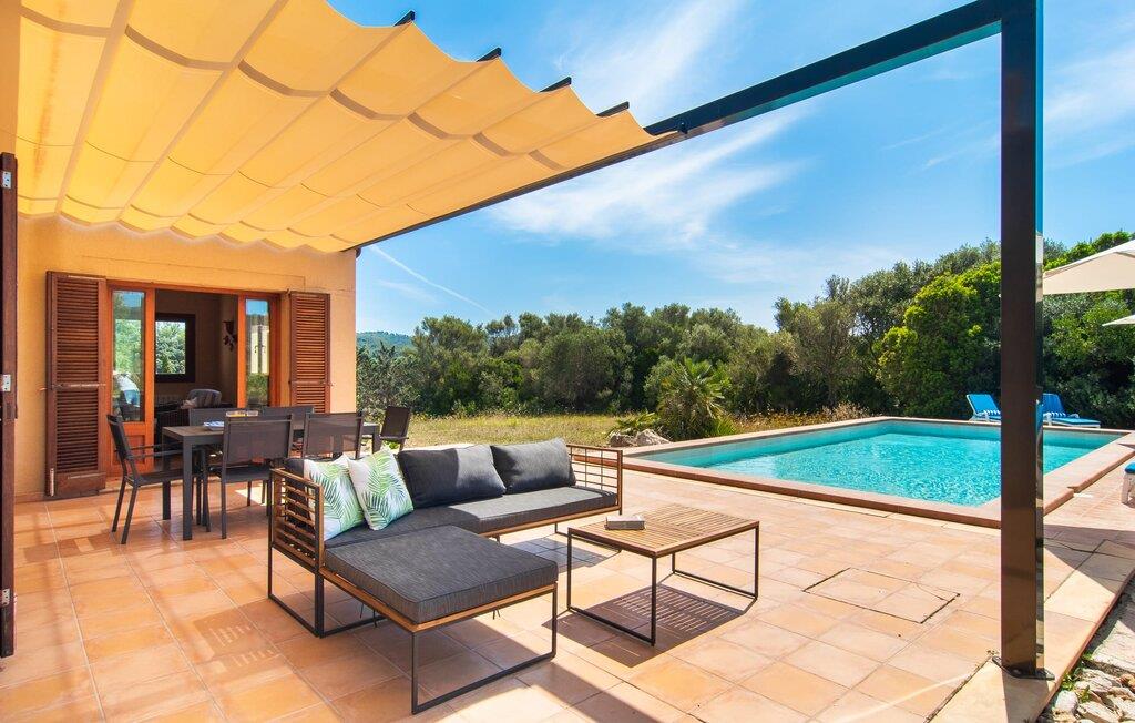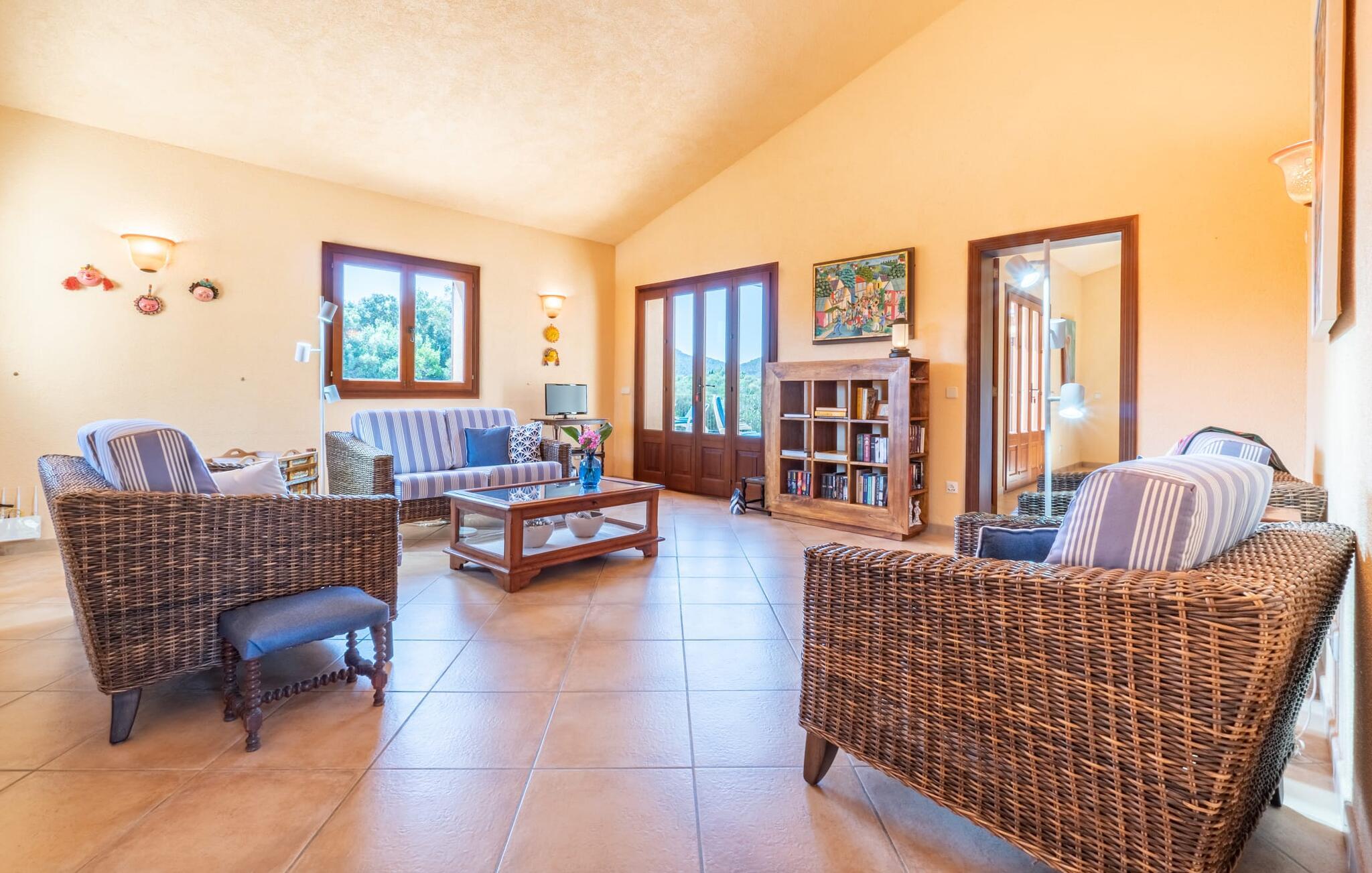 Terrasserne på denne bondegård "Can Terrasa" strækker sig i forskellige retninger og er præget af natursten og middelhavstræer, der skaber en fredelig atmosfære. I finder komfortable siddepladser foran og bag huset og ved poolen er der liggestole nok til alle solsøgende og en praktisk udendørs bruser til en forfriskende afkøling. Sørg for at tage jer tid hver dag til at slappe af udenfor og nyde den smukke udsigt over det omkringliggende landskab. Fra terrassen ud mod poolen fører flere gulv-til-loft vinduer direkte ind i de rummelige spise- og opholdsrum. Den hyggelige atmosfære med pastelfarvede vægge, masser af træ, stilfulde møbler og farverige accenter gør dette et-etagers hjem virkelig indbydende. Lys fylder boligerne, inklusive det fuldt udstyrede køkken, og tilføjer til hjemmets charme. I vil finde tre komfortabelt møblerede soveværelser, suppleret med to badeværelser, hver med bruser. Den smukke, store gang byder velkommen, når I træder ind gennem hovedindgangen og lægger grunden til en skøn ferieoplevelse. Dette charmerende feriehus på Mallorca ligger i en landlig og rolig trekant med landsbyerne Capdepera (ca. 4 km) og Canyamel (ca. 6 km). Capdepera er et godt sted at shoppe, især om onsdagen, når det er markedsdag. Et besøg i Artà, der ligesom Capdepera har bevaret sin oprindelige karakter, bør ikke gå glip af – det er kun godt 10 minutter i bil. Indbydende strande kan også nås hurtigt med lejebil.