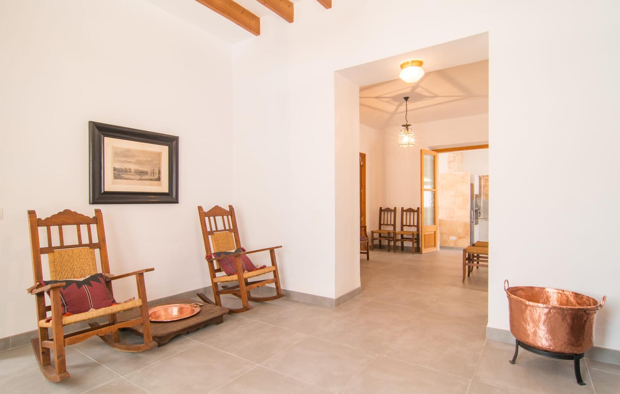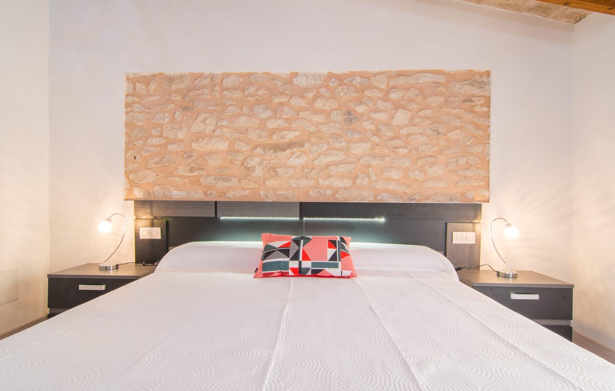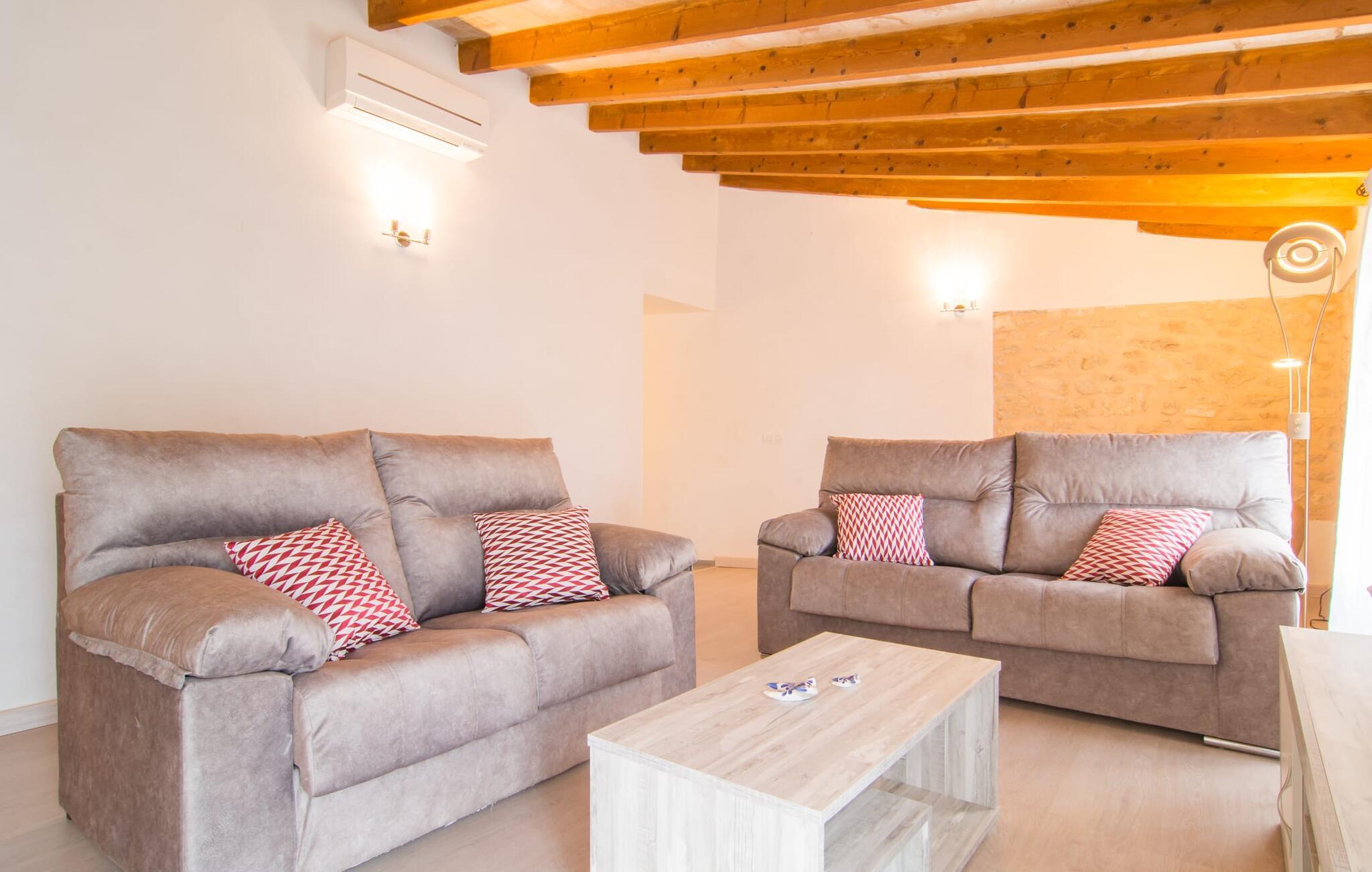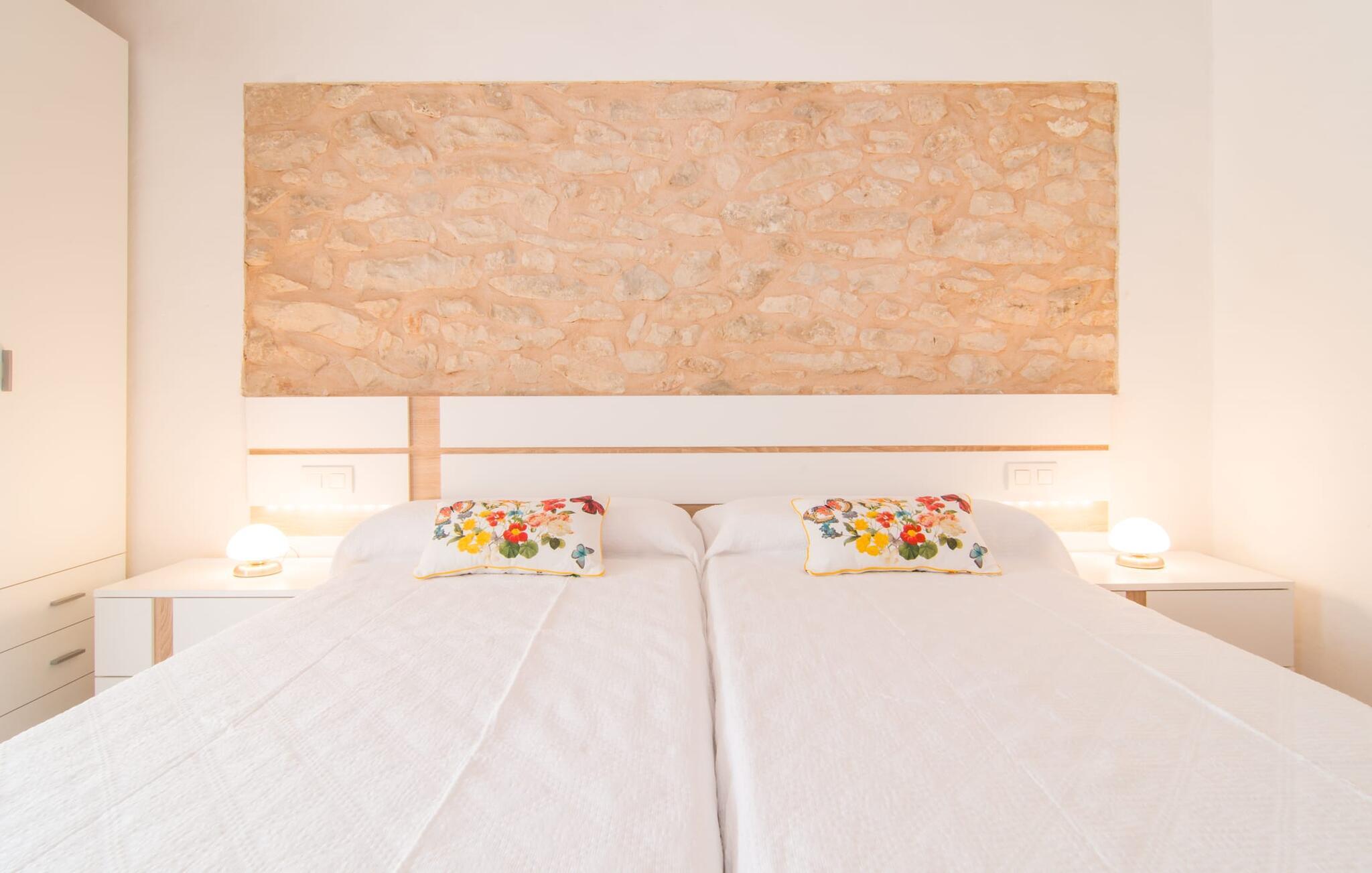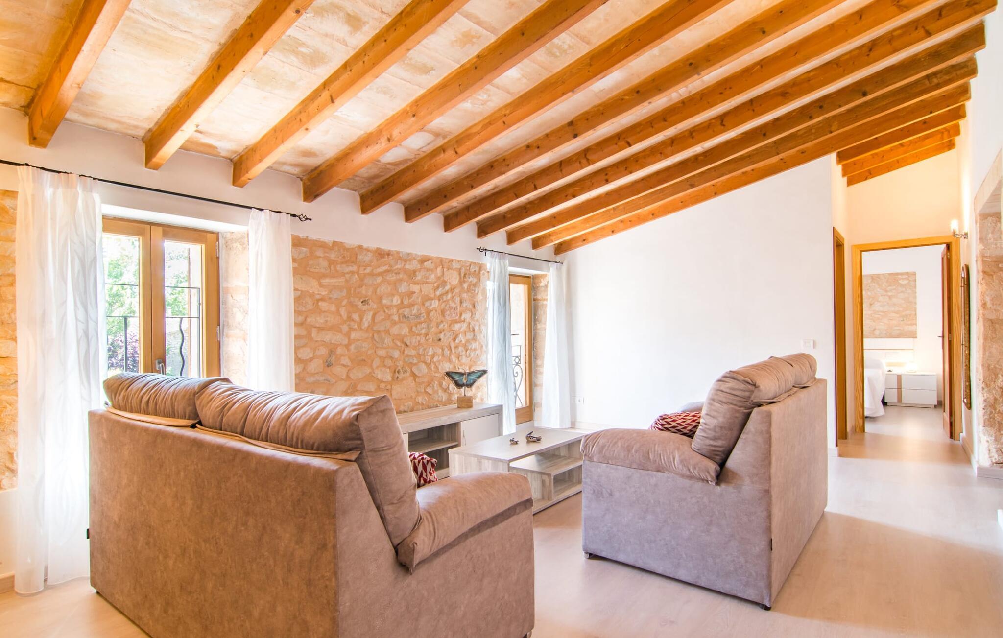 Hvis I vælger "Can Tianet" rækkehuset, vil I tilbringe jeres ferie i en smuk landsby ikke langt fra lufthavnen. Husets facader er præget af den typiske okkerfarvede naturbelægning, som giver udearealet et venligt udtryk. Ejendommen på 6 x 3 m er omgivet af en lille mur, hvilket sikrer maksimal privatliv. Når I tørrer jeres hud i solen på en af liggestolene efter jeres badehygge, kan store møllehjul ses bag jer. Disse minder om øens landbrugstid, før turismen eksploderede her. Der er også en grill udenfor, hvor I kan grille frisk fisk fra et af øens markeder, ikke kun om aftenen. Den overdækkede terrasse byder på et skyggefuldt sted at tilbringe tid sammen ved spisebordet eller på rattanmøblerne. En anden mulighed er den rummelige stue, som er tilgængelig fra terrassen. Det er tydeligt, hvor meget sans for detaljer arkitekterne har lagt i at skabe den mest autentiske levende atmosfære med en næsten religiøs renhed: Hvide vægpartier smelter sammen i områder, hvor den originale mursten er synlig. En række lyse farvekombinationer og luksusen ved en avanceret pejs skaber en indbydende effekt, der straks får jer til at føle jer hjemme. Dette område flyder problemfrit ind i det fremragende udstyrede køkken, som ikke lader noget tilbage at ønske, og som med sit massive træbord tilbyder en fantastisk ramme om solide måltider. Køleskabet er stort nok, hvis I er lidt nervøs på markedet. De tre soveværelser med dobbeltsenge i stueetagen - komplet med aircondition som dem på første sal - deler et badeværelse af høj kvalitet. Et af soveværelserne på første sal har eget badeværelse, mens gæster i det andet værelse, som har to enkeltsenge, kan bruge badeværelset, der er tilgængeligt via gangen. Bassinerne lavet af natursten er et ægte blikfang. Men det charmerende opholdsområde på første sal gør også dette rækkehus til den ideelle mulighed for alle, der elsker en klar æstetik. Er I også til sport, så vil det omfattende netværk af cykel- og vandreruter omkring Llucmajor friste jer til at tage på en eller to udflugter. I selve byen inviterer idylliske caféer eller et marked tre gange om ugen jer til at opdage friske produkter. Takket være den tydeligt hørbare vej, der løber direkte forbi rækkehuset, kan I på ingen tid være på de smukke strande på syd- og østkysten. Den lille, rolige og stenede strand Raco de S'Arena ligger 23 km derfra. Cala Pi har et romantisk præg, er omgivet af uberørt natur og er derfor perfekt til en lang vandretur. Rækkehuset "Can Tianet" ligger i landsbyen Randa, hvis kloster fra et højt bjerg byder på panoramaudsigt over Mallorca-sletten. Llucmajor, kun 7 km væk, byder på adskillige indkøbsmuligheder, herunder markedet, der finder sted tre gange om ugen. Ud over et fremragende netværk af cykelstier, er et rigtigt pluspunkt i regionen de mange smukke strande; Es Trenc ligger cirka 30 km væk. Bemærk venligst, at denne ejendom ikke accepterer ungdomsgrupper eller polterabender. En ungdomsgruppe på denne ejendom består af personer på 27 år eller derunder. Book ikke denne ejendom, hvis I er en ungdomsgruppe eller en polterabendgruppe, da jeres reservation vil blive afvist, når den er booket, hvilket også kan være tilfældet ved ankomst til ejendommen eller under jeres ophold, og I vil ikke modtage en refusion.