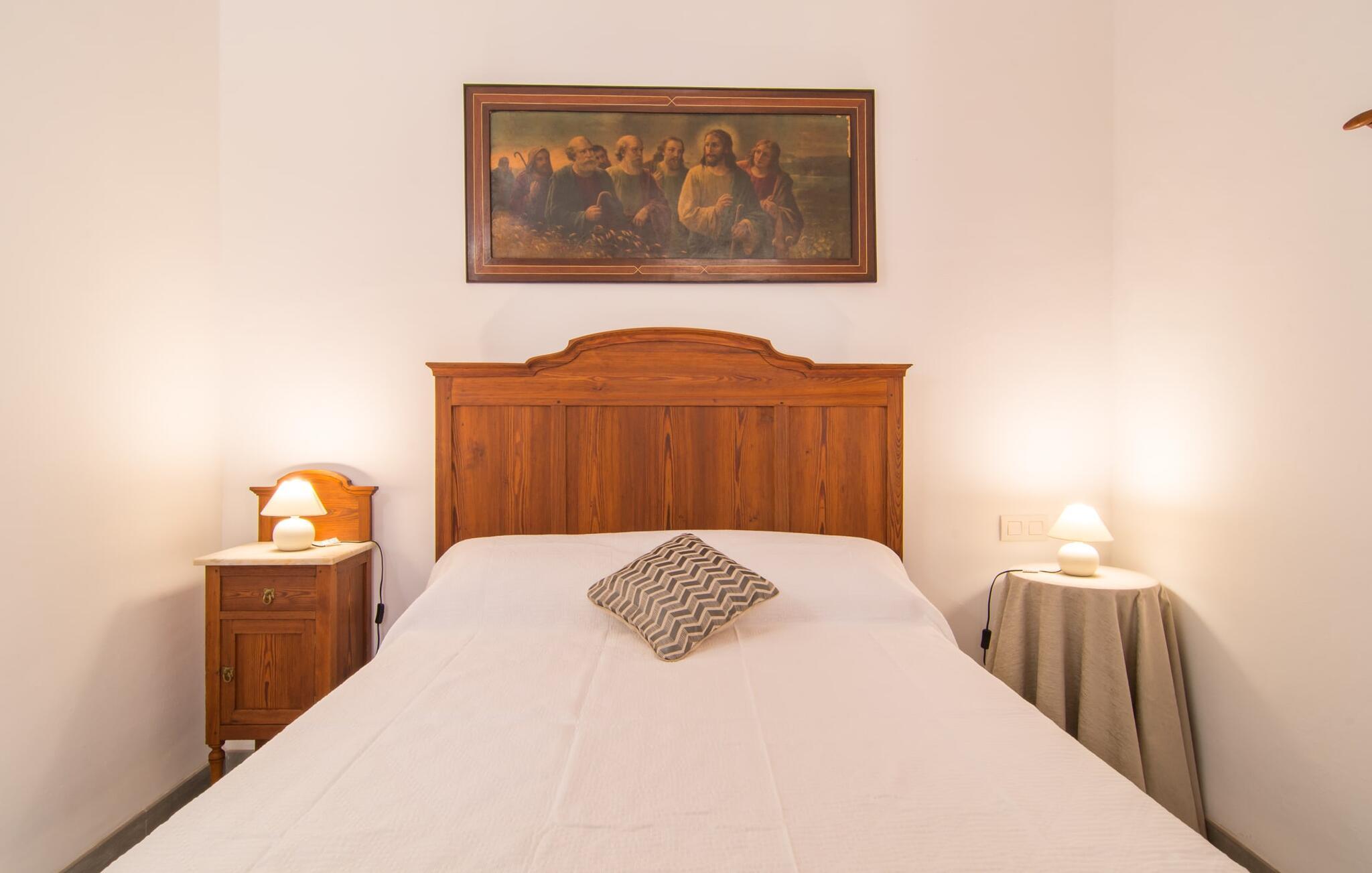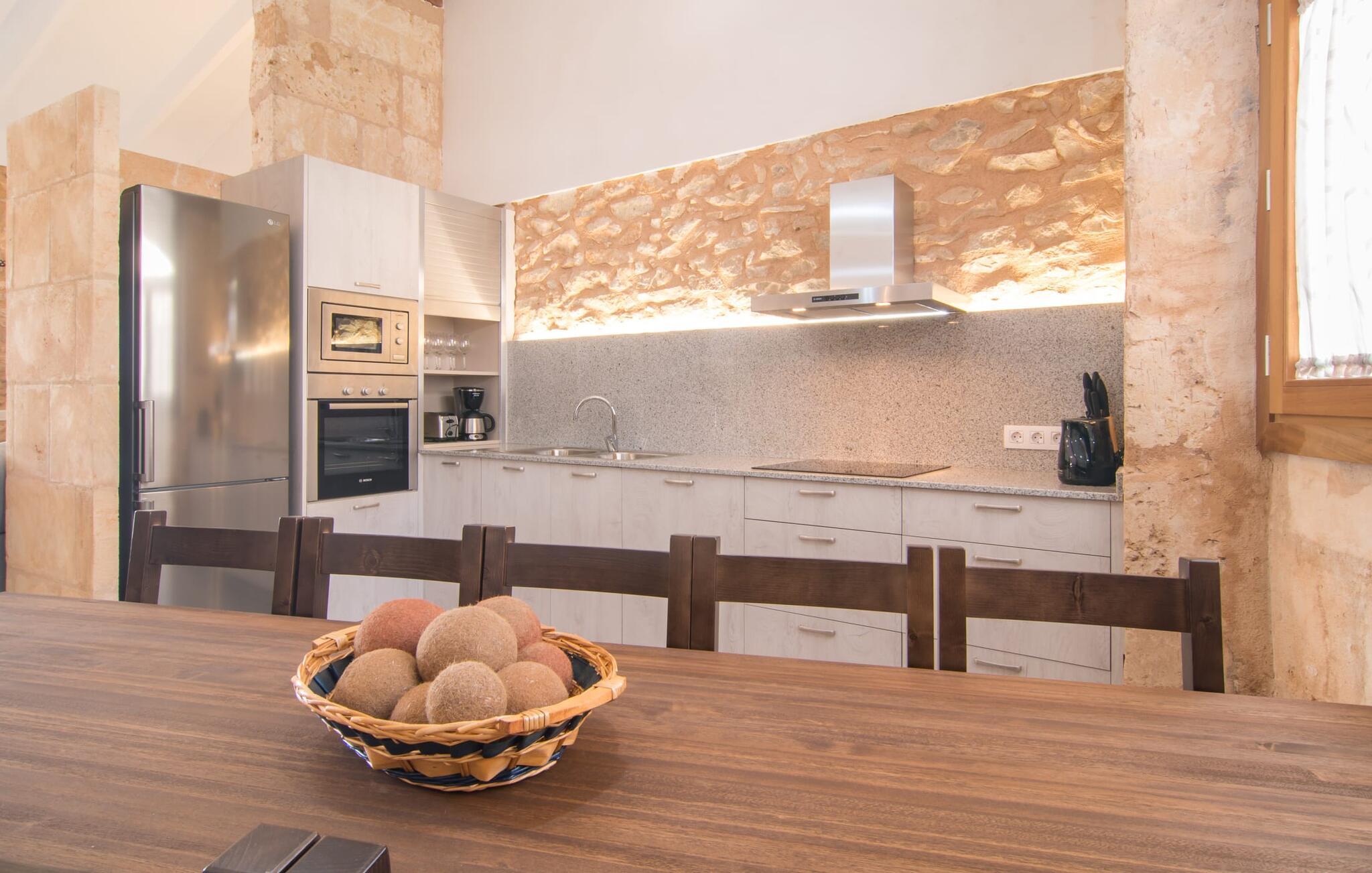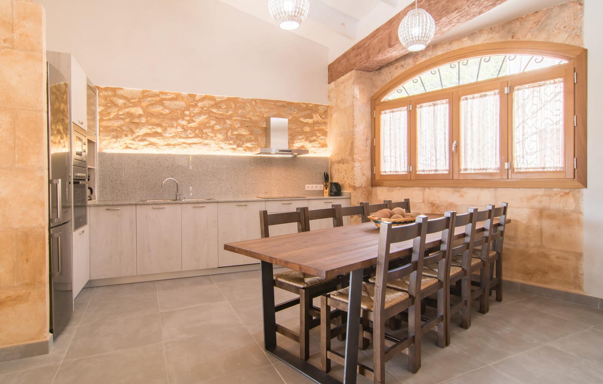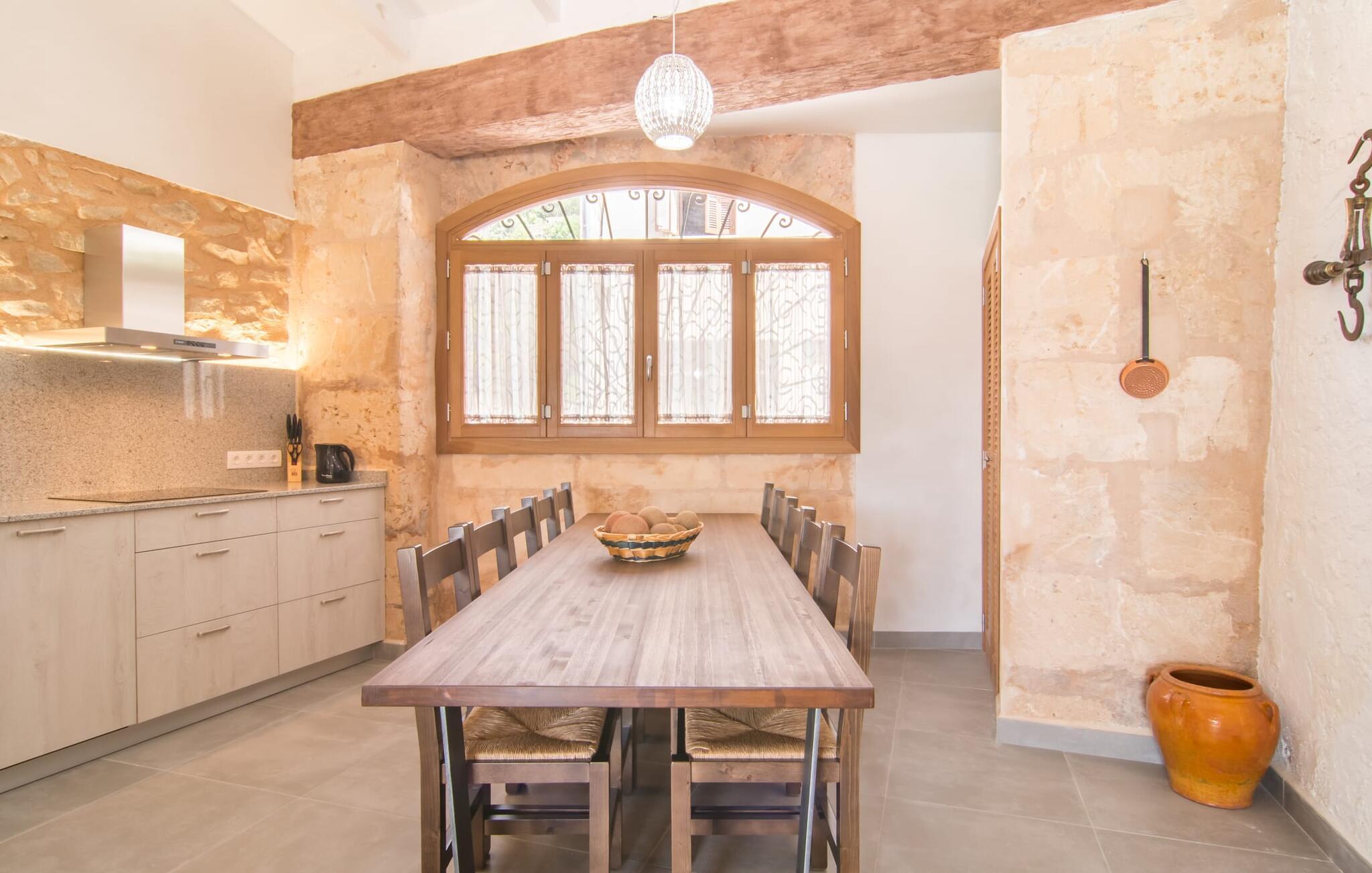 Hvis I vælger "Can Tianet" rækkehuset, vil I tilbringe jeres ferie i en smuk landsby ikke langt fra lufthavnen. Husets facader er præget af den typiske okkerfarvede naturbelægning, som giver udearealet et venligt udtryk. Ejendommen på 6 x 3 m er omgivet af en lille mur, hvilket sikrer maksimal privatliv. Når I tørrer jeres hud i solen på en af liggestolene efter jeres badehygge, kan store møllehjul ses bag jer. Disse minder om øens landbrugstid, før turismen eksploderede her. Der er også en grill udenfor, hvor I kan grille frisk fisk fra et af øens markeder, ikke kun om aftenen. Den overdækkede terrasse byder på et skyggefuldt sted at tilbringe tid sammen ved spisebordet eller på rattanmøblerne. En anden mulighed er den rummelige stue, som er tilgængelig fra terrassen. Det er tydeligt, hvor meget sans for detaljer arkitekterne har lagt i at skabe den mest autentiske levende atmosfære med en næsten religiøs renhed: Hvide vægpartier smelter sammen i områder, hvor den originale mursten er synlig. En række lyse farvekombinationer og luksusen ved en avanceret pejs skaber en indbydende effekt, der straks får jer til at føle jer hjemme. Dette område flyder problemfrit ind i det fremragende udstyrede køkken, som ikke lader noget tilbage at ønske, og som med sit massive træbord tilbyder en fantastisk ramme om solide måltider. Køleskabet er stort nok, hvis I er lidt nervøs på markedet. De tre soveværelser med dobbeltsenge i stueetagen - komplet med aircondition som dem på første sal - deler et badeværelse af høj kvalitet. Et af soveværelserne på første sal har eget badeværelse, mens gæster i det andet værelse, som har to enkeltsenge, kan bruge badeværelset, der er tilgængeligt via gangen. Bassinerne lavet af natursten er et ægte blikfang. Men det charmerende opholdsområde på første sal gør også dette rækkehus til den ideelle mulighed for alle, der elsker en klar æstetik. Er I også til sport, så vil det omfattende netværk af cykel- og vandreruter omkring Llucmajor friste jer til at tage på en eller to udflugter. I selve byen inviterer idylliske caféer eller et marked tre gange om ugen jer til at opdage friske produkter. Takket være den tydeligt hørbare vej, der løber direkte forbi rækkehuset, kan I på ingen tid være på de smukke strande på syd- og østkysten. Den lille, rolige og stenede strand Raco de S'Arena ligger 23 km derfra. Cala Pi har et romantisk præg, er omgivet af uberørt natur og er derfor perfekt til en lang vandretur. Rækkehuset "Can Tianet" ligger i landsbyen Randa, hvis kloster fra et højt bjerg byder på panoramaudsigt over Mallorca-sletten. Llucmajor, kun 7 km væk, byder på adskillige indkøbsmuligheder, herunder markedet, der finder sted tre gange om ugen. Ud over et fremragende netværk af cykelstier, er et rigtigt pluspunkt i regionen de mange smukke strande; Es Trenc ligger cirka 30 km væk. Bemærk venligst, at denne ejendom ikke accepterer ungdomsgrupper eller polterabender. En ungdomsgruppe på denne ejendom består af personer på 27 år eller derunder. Book ikke denne ejendom, hvis I er en ungdomsgruppe eller en polterabendgruppe, da jeres reservation vil blive afvist, når den er booket, hvilket også kan være tilfældet ved ankomst til ejendommen eller under jeres ophold, og I vil ikke modtage en refusion.