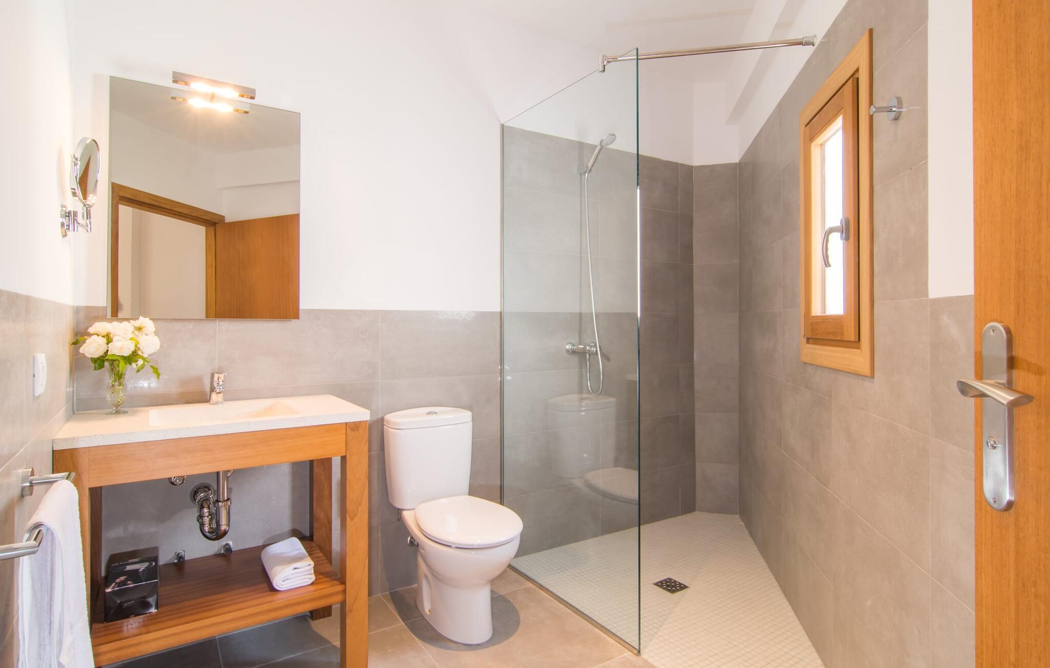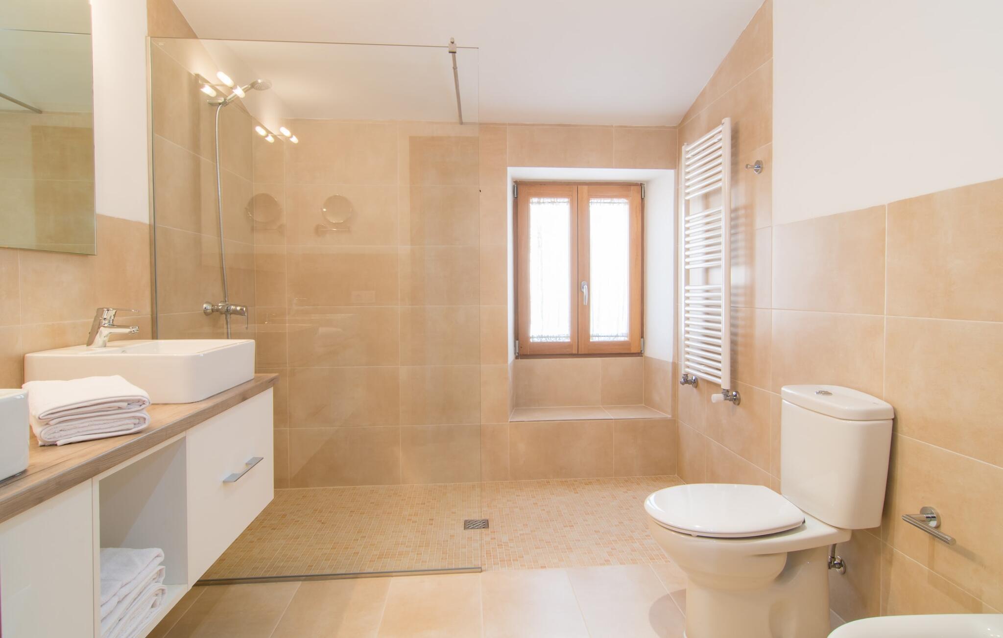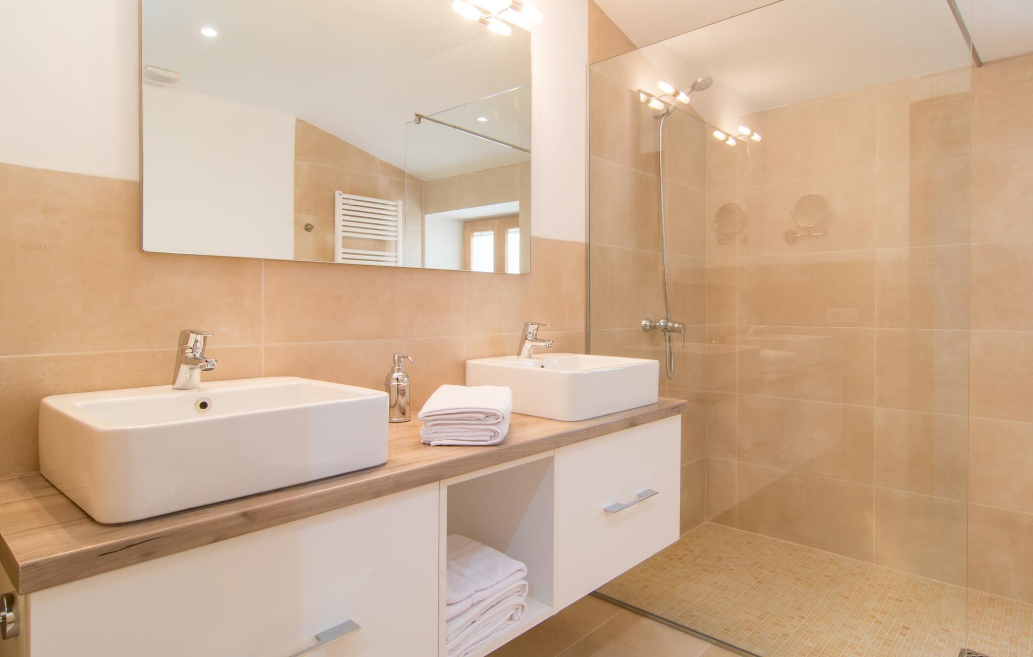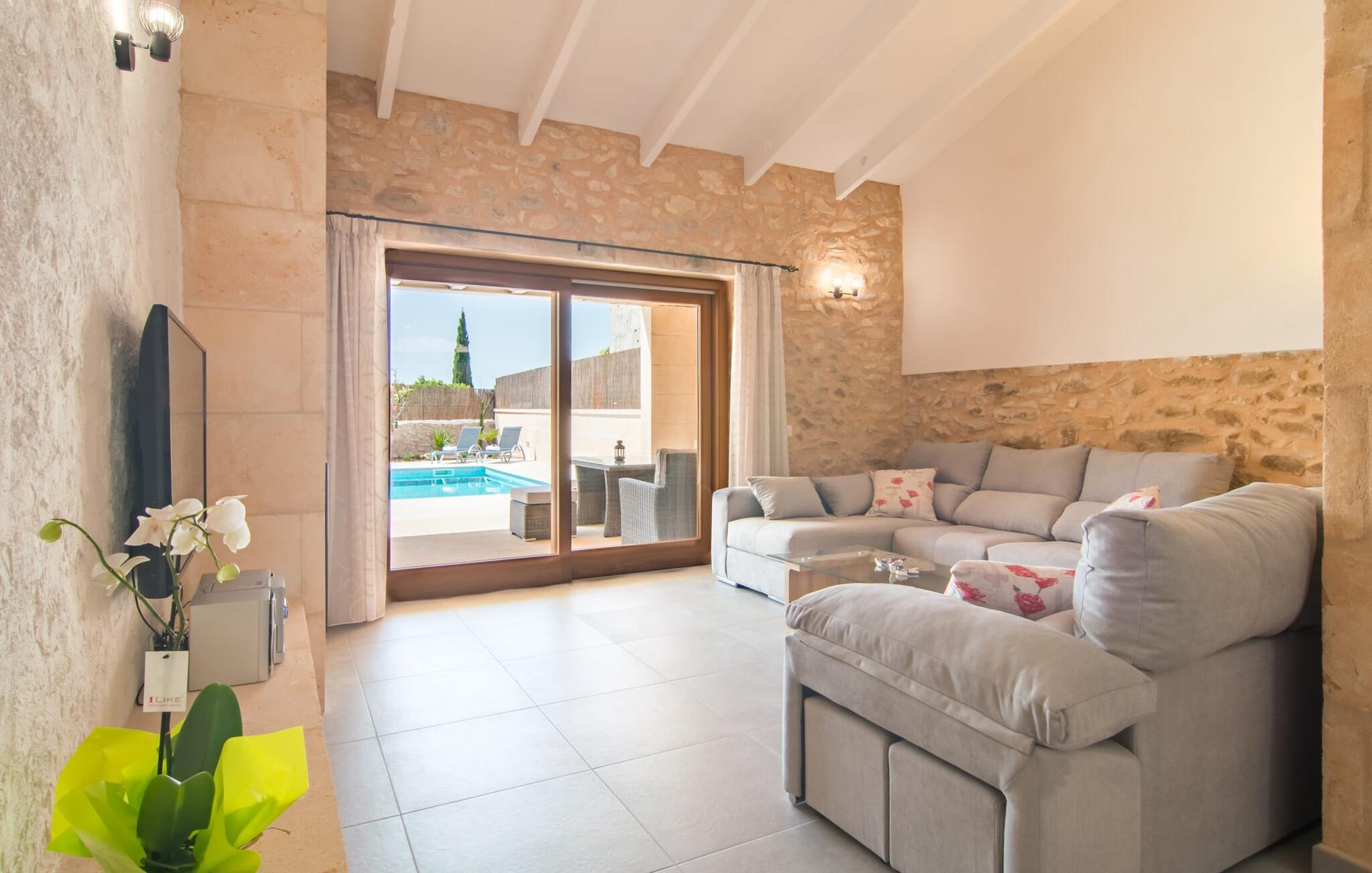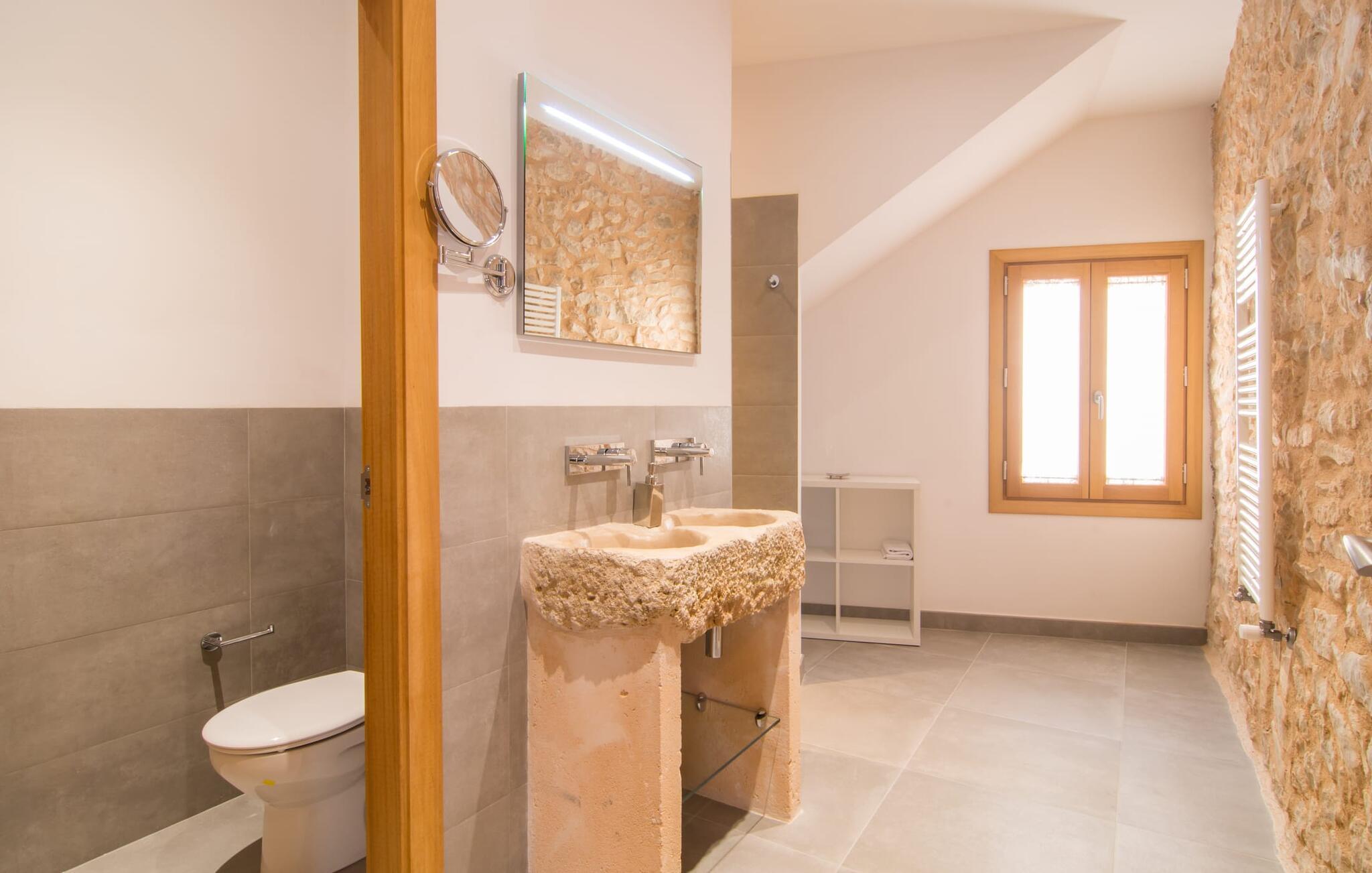 Hvis I vælger "Can Tianet" rækkehuset, vil I tilbringe jeres ferie i en smuk landsby ikke langt fra lufthavnen. Husets facader er præget af den typiske okkerfarvede naturbelægning, som giver udearealet et venligt udtryk. Ejendommen på 6 x 3 m er omgivet af en lille mur, hvilket sikrer maksimal privatliv. Når I tørrer jeres hud i solen på en af liggestolene efter jeres badehygge, kan store møllehjul ses bag jer. Disse minder om øens landbrugstid, før turismen eksploderede her. Der er også en grill udenfor, hvor I kan grille frisk fisk fra et af øens markeder, ikke kun om aftenen. Den overdækkede terrasse byder på et skyggefuldt sted at tilbringe tid sammen ved spisebordet eller på rattanmøblerne. En anden mulighed er den rummelige stue, som er tilgængelig fra terrassen. Det er tydeligt, hvor meget sans for detaljer arkitekterne har lagt i at skabe den mest autentiske levende atmosfære med en næsten religiøs renhed: Hvide vægpartier smelter sammen i områder, hvor den originale mursten er synlig. En række lyse farvekombinationer og luksusen ved en avanceret pejs skaber en indbydende effekt, der straks får jer til at føle jer hjemme. Dette område flyder problemfrit ind i det fremragende udstyrede køkken, som ikke lader noget tilbage at ønske, og som med sit massive træbord tilbyder en fantastisk ramme om solide måltider. Køleskabet er stort nok, hvis I er lidt nervøs på markedet. De tre soveværelser med dobbeltsenge i stueetagen - komplet med aircondition som dem på første sal - deler et badeværelse af høj kvalitet. Et af soveværelserne på første sal har eget badeværelse, mens gæster i det andet værelse, som har to enkeltsenge, kan bruge badeværelset, der er tilgængeligt via gangen. Bassinerne lavet af natursten er et ægte blikfang. Men det charmerende opholdsområde på første sal gør også dette rækkehus til den ideelle mulighed for alle, der elsker en klar æstetik. Er I også til sport, så vil det omfattende netværk af cykel- og vandreruter omkring Llucmajor friste jer til at tage på en eller to udflugter. I selve byen inviterer idylliske caféer eller et marked tre gange om ugen jer til at opdage friske produkter. Takket være den tydeligt hørbare vej, der løber direkte forbi rækkehuset, kan I på ingen tid være på de smukke strande på syd- og østkysten. Den lille, rolige og stenede strand Raco de S'Arena ligger 23 km derfra. Cala Pi har et romantisk præg, er omgivet af uberørt natur og er derfor perfekt til en lang vandretur. Rækkehuset "Can Tianet" ligger i landsbyen Randa, hvis kloster fra et højt bjerg byder på panoramaudsigt over Mallorca-sletten. Llucmajor, kun 7 km væk, byder på adskillige indkøbsmuligheder, herunder markedet, der finder sted tre gange om ugen. Ud over et fremragende netværk af cykelstier, er et rigtigt pluspunkt i regionen de mange smukke strande; Es Trenc ligger cirka 30 km væk. Bemærk venligst, at denne ejendom ikke accepterer ungdomsgrupper eller polterabender. En ungdomsgruppe på denne ejendom består af personer på 27 år eller derunder. Book ikke denne ejendom, hvis I er en ungdomsgruppe eller en polterabendgruppe, da jeres reservation vil blive afvist, når den er booket, hvilket også kan være tilfældet ved ankomst til ejendommen eller under jeres ophold, og I vil ikke modtage en refusion.