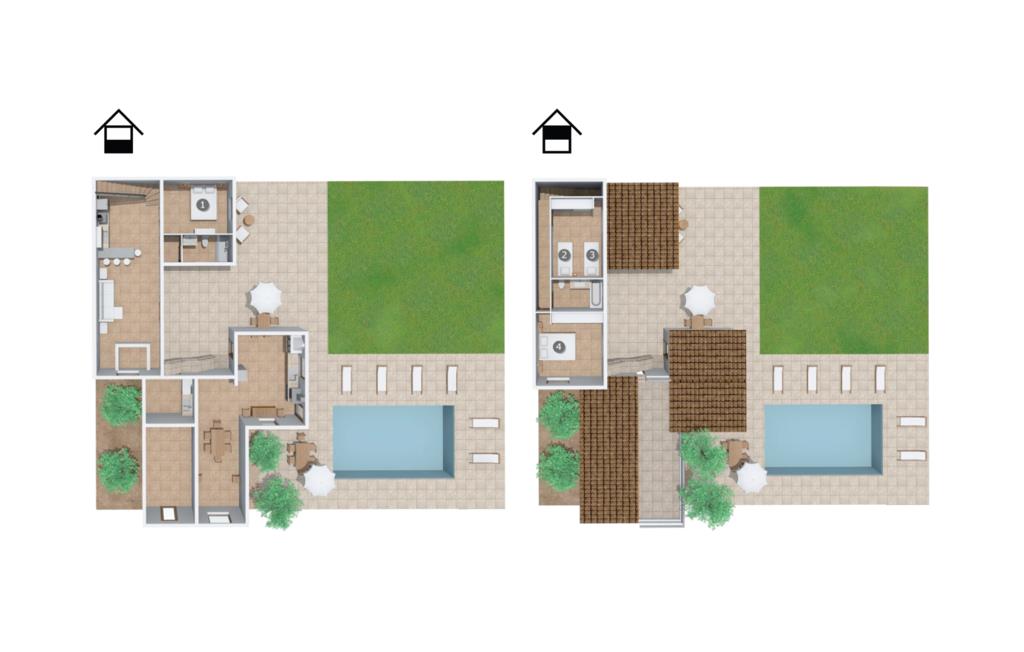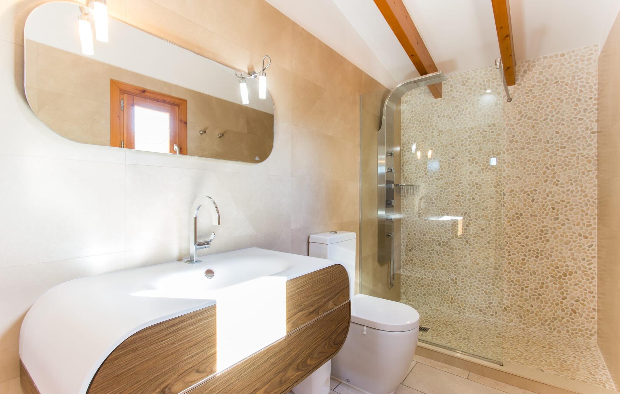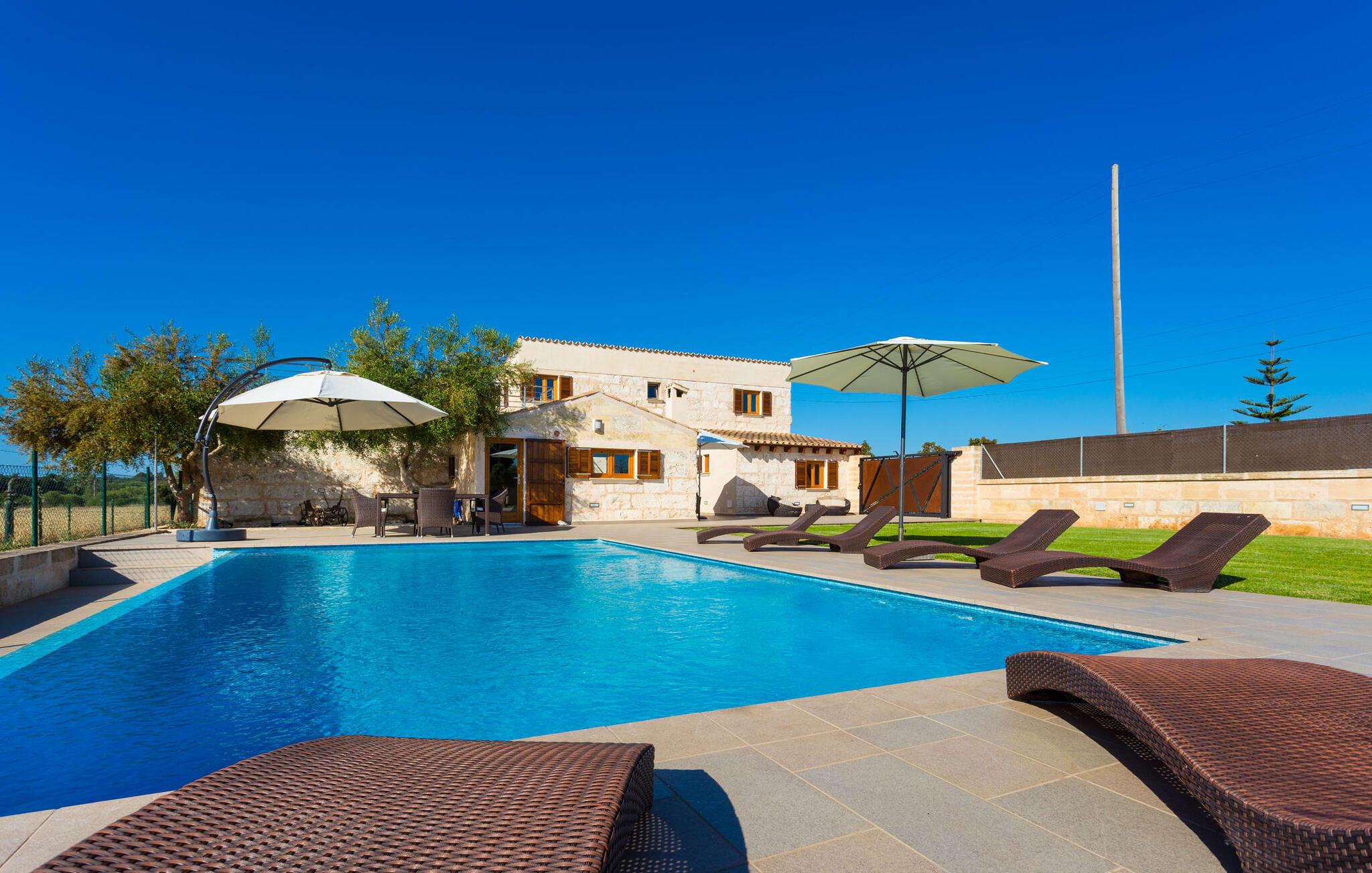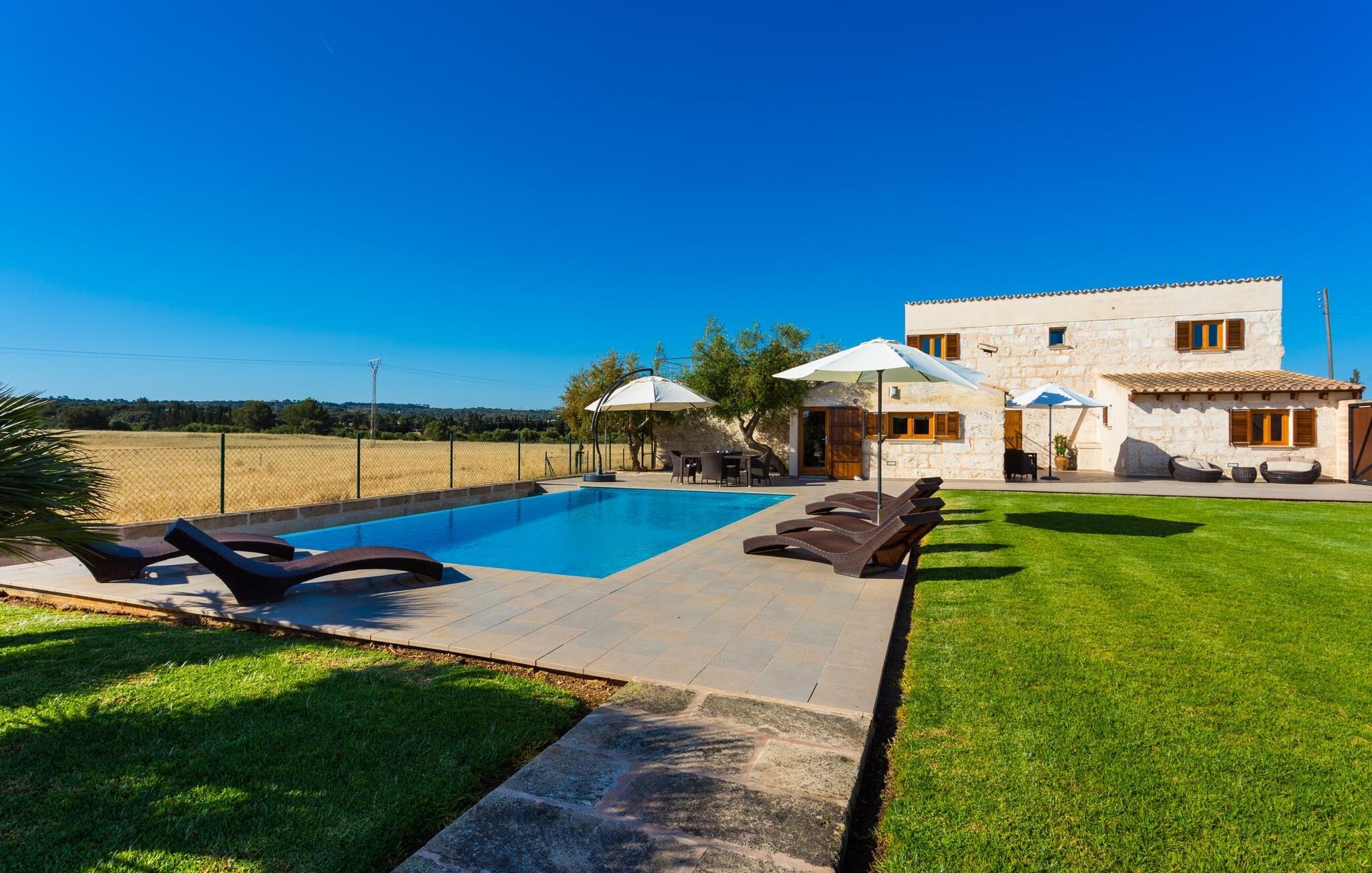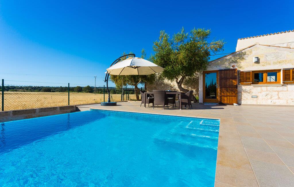 Den storslået restaurerede villa "Can Vinagrella Pera" er en særdeles attraktiv villa i vores program, som vil blæse os fuldstændig omkuld. Husets "skal" er bevaret og består af store, firkantede sandstensblokke. Villaen er omgivet af en lille have med dejlige terrassearealer, og da den ligger på en 60.000 m² stor grund, kan I slappe af i fuldstændig afsondrethed og nyde ejendommens pragt helt for jer selv. Huset ligger dog stadig kun 3 minutters kørsel fra den maleriske lille by Muro, hvor I kan købe alt, hvad I skal bruge til selvforplejning i de lokale supermarkeder eller på søndagsmarkedet. Hvis I ikke har lyst til at lave mad eller grille, er der talrige restauranter og barer i denne typiske mallorcanske by, som I helt sikkert vil besøge, selvom det bare er for en cortado-kaffe. For en dag på stranden skal I kun køre et par minutter med jeres udlejningsbil for at nå steder som Alcúdia-bugten eller Can Picafort-stranden, for blot at nævne nogle af de lange strande efter hinanden langs bugten med samme navn. Alcúdia-bugten er en rummelig strand med lavvandet sandadgang til havet, som er særligt familievenligt, og hvor I stadig kan nyde den uberørte natur. Grundet villaens velholdte ydre fremtoning vil I have store forventninger til indretningen. Vi kan forsikre jer om, at I ikke bliver skuffet. I kan endda blive overrasket over det strålende moderne, åbne design og den meget smarte og trendy indretningsstil, der samtidig skaber en stor kontrast til husets oprindelige funktion som bondehus. I stueetagen finder I den åbne stue og køkkenafdeling. Det lyse vægdesign, forsænkede belysning og hvide møbler suppleres med kunst i industriel stil, hvilket giver dette rum en utrolig trendy følelse af stil. Ved siden af stuen finder I køkkenet, som er fuldt udstyret og udstyret med alt hvad I behøver som: B. store keramiske kogeplader, et komfur, en mikroovn, en opvaskemaskine og meget mere. De hvide køkkenfronter er afsat med rustfrit stål, og det store køle/fryseskab har også et rustfrit stållook. Bordpladen og bordpladen passer godt til dette udseende, da deres højglans, midnatsblå overflader skaber en farvekontrast til de lyse farver. Der står hvide barstole ved disken og venter på at blive brugt af gæsterne. På samme etage finder vi det første af tre soveværelser samt et af de to trendy badeværelser. De to andre soveværelser er ovenpå. Alle er rummelige og komfortabelt møblerede (nogle med 2 enkeltsenge) til en fremragende standard. De to soveværelser ovenpå deler et fælles badeværelse. Badeværelserne er udstyret til en høj standard; Badeværelsesmøblet imponerer med sit iøjnefaldende moderne design, som nogle gange får en organisk form. En bruseniche fra gulv til loft i det beige badeværelse er lige så indbydende som det rummelige badeværelse med badekar og glasparti, der er udstyret med store hvide klinker og står i kontrast til sorte armaturer. På denne etage finder I desuden en rummelig solterrasse, som også kan nås fra haven via en udvendig trappe. Udendørsområdet omkring villaen består af en lille have, et ekstra lille sommerhus og en stor pool, som kan oplyses om natten og ledsages af en tilstødende solterrasse. På poolterrassen venter ergonomisk designede, yderst behagelige polyrattan liggestole på, at I kan læne jer tilbage og slappe af. På terrassen er der også et lille spisebord, hvor I kan nyde jeres morgenmad, spille et brætspil eller måske bare slappe af om aftenen med et godt glas vin. Der er talrige terrassearealer på selve huset, og på et af dem er der en lille hytte, der indeholder et fuldt udstyret køkken og en integreret grillplads - også udstyret med ovn, kogeplader, opvaskemaskine, stort køleskab osv. Den overdækkede udendørs køkken er virkelig et helt særligt højdepunkt i hele huset, hvilket kun øger vores entusiasme for denne villa. Bliver det for varmt eller for koldt at spise udenfor, har I mulighed for at bruge et ekstra kæmpe spisebord i træ inde i grillhytten. Og så i den højkvalitets og ultramoderne villa "Can Vinagrella Pera" kan I nyde en selvstændig ferie i fuldstændig fred og nyde hver dag til fulde. Vi hos Fincallorca kan kun varmt anbefale denne fantastisk smukke villa til jer. Den trendy villa "Can Vinagrella Pera" ligger på en 60.000 m² stor grund i den nordlige del af øen, nær den typiske mallorcanske landsby Muro, som kun ligger 3 minutter væk i bil. Der kan I shoppe og klare alle jeres daglige ærinder. De mange strande i Alcúdia-bugten samt de mange barer og restauranter er let tilgængelige med jeres lejebil og giver jer mulighed for at nyde timevis af nydelse ved vandet.