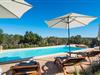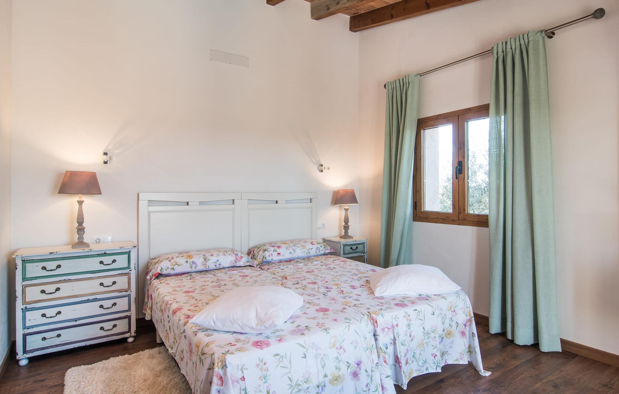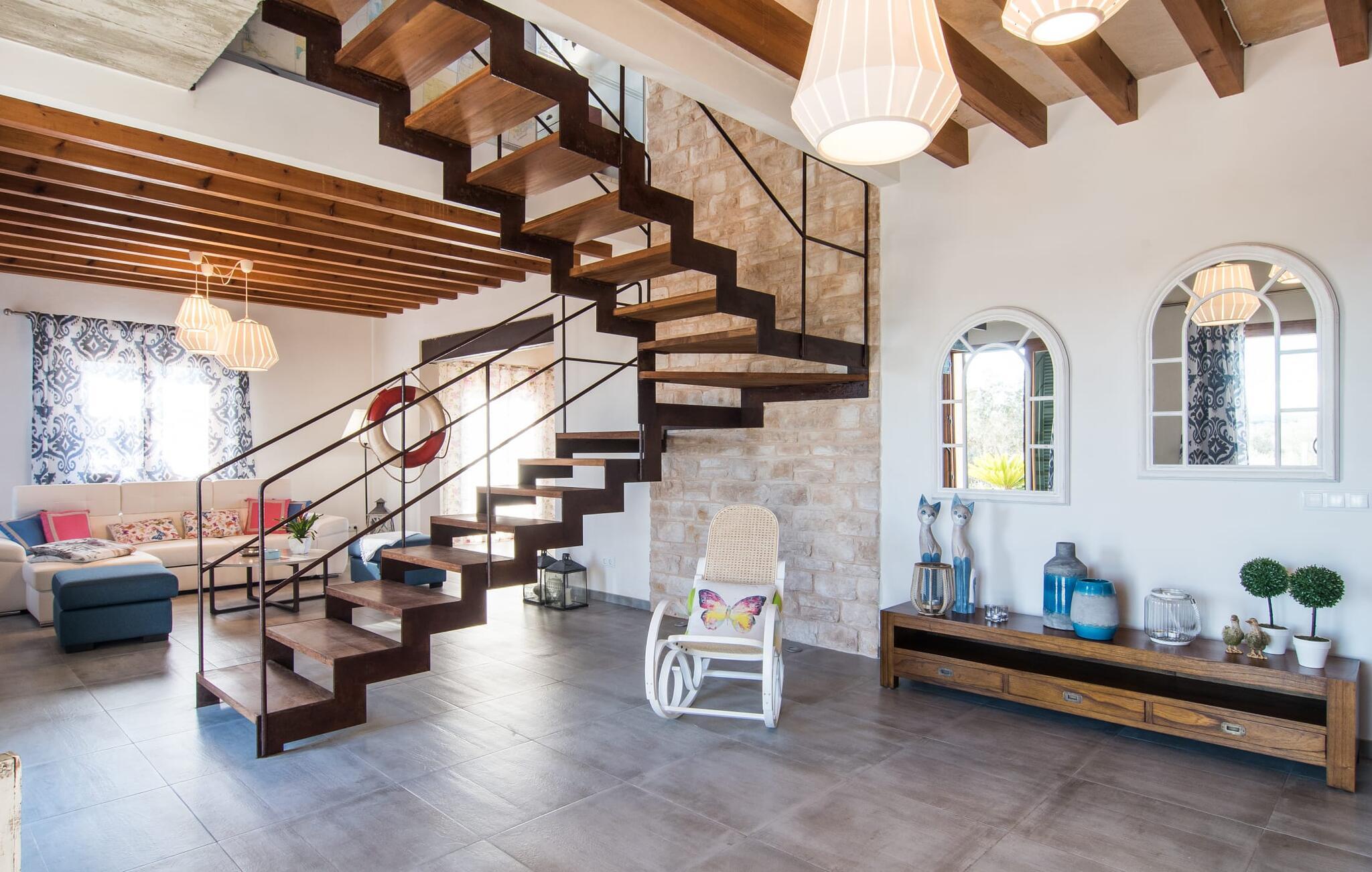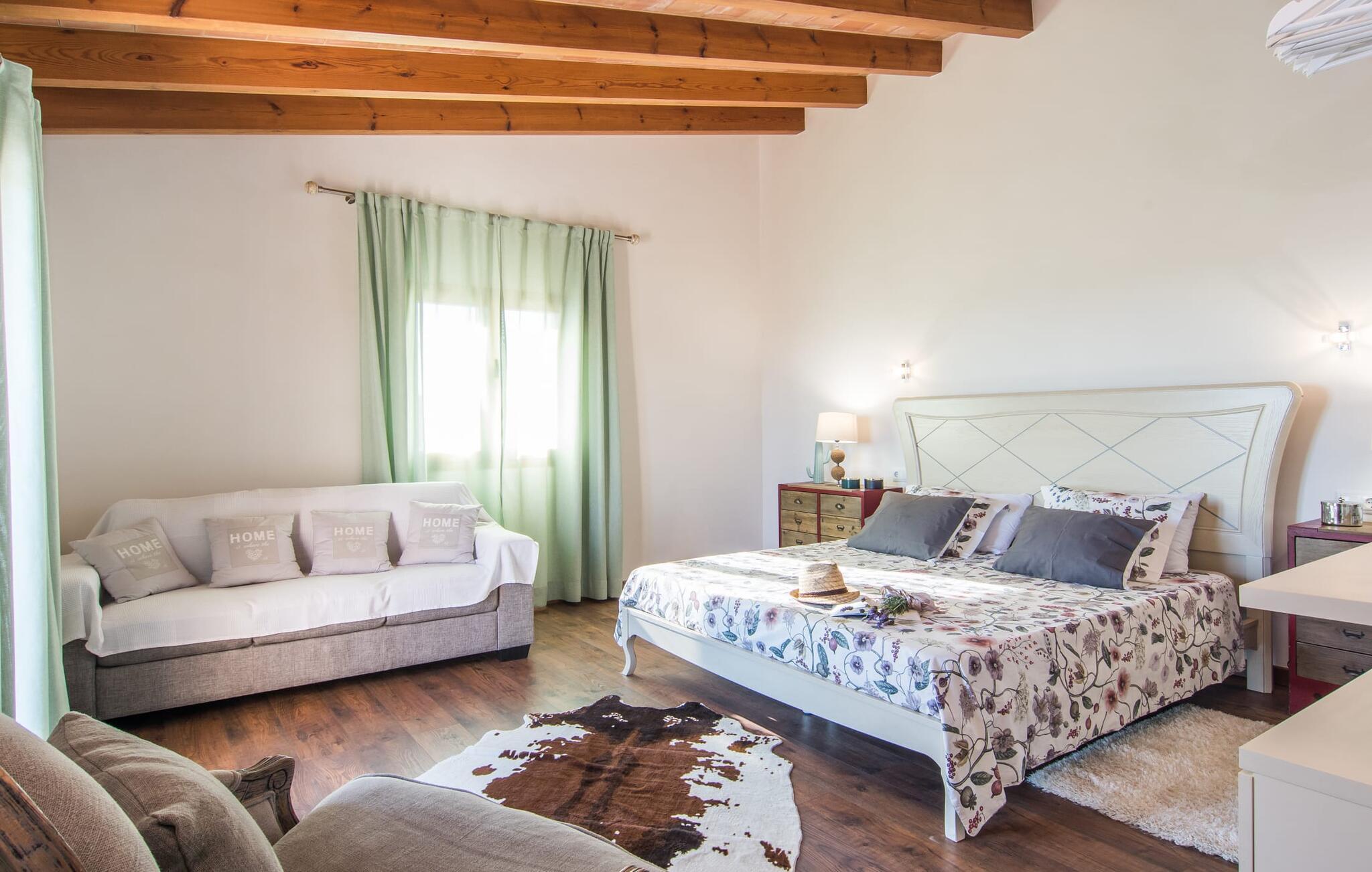 Enhver, der ønsker at opleve den flair, der opstår fra den perfekte blanding af tradition og modernitet, vil have et sandt held med villaen "Can Xesquet". For her er der opnået noget helt særligt, nemlig den meget smarte kombination af traditionel mallorcansk stemning med fordelene ved en moderne nybygning. Denne symbiose er genkendelig ved første øjekast: Natursten møder store, smarte terrasseplader, klassisk arkitektur møder moderne tagkonstruktioner over udendørsserveringen. Sidstnævnte er til gengæld udstyret med dekorative og komfortable siddepladser. Originalt tilbehør som malede vinkasser tilføjer stilfulde accenter og er også praktiske. Det stilfulde pallebord ved siden af ??poolen inviterer jer til at sidde og se ud over infinity-poolen og de omkringliggende oliventræer. Disse hyggelige timer udendørs er ledsaget af vidunderlig fred og ro. Når I vil, kan I nemt glide de få trin ned i det kølige vand og nyde det klare, forfriskende vand på jeres hud. Forhåbentlig venter der allerede en god bog på en af ??de komfortable liggestole, for det er et godt sted at fordybe sig i en spændende læsning og glemme alt omkring sig. Måske kommer en appetitlig lugt fra grillen mod jer og indvarsler den varme aften: en solid grillmad med delikatesser fra Middelhavet overflod af friske, regionale råvarer.