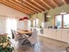Ikke kun elegant, men også sofistikeret: den rummelige lounge, hvor smagfuld afslapning i ordets sandeste betydning er i fokus. Visuelt adskilt af de symmetrisk opadgående, fritsvævende trin er der to sofaområder, hvor selv indendørs timer lover behagelige, luksuriøse timer. I kan flytte jeres blik udefra til inde, som I vil. Lige rundt om hjørnet, med et åbent design, ligger det lige så rummelige køkken. Det smagfuldt designede bord tilbyder ikke kun en smuk spiseplads til alle gæster, men passer også harmonisk ind i stilen i det moderne landhuskøkken med dets sorte og hvide siddepladser. Køkkenet byder på masser af opbevaringsplads og omfattende, moderne udstyr. Mens I hakker grøntsager sammen eller tilbereder en lækker salatdressing, kan I altid se på landskabet omkring huset og blive inspireret af idyllen. De røde lys over spisebordet og den grønne væg over køkkenbordet skaber sammen med rustikke pynteting i træ en særlig hyggelig atmosfære. Behagelig rummelighed, attraktive farver og møbler understreger de individuelt indrettede soveværelser, hvor I helt sikkert kan tilbringe dejlige rolige nætter. En af dem er i stueetagen, de to andre på øverste etage; På øverste etage er endnu et soveværelse i en åben bygning tilgængelig fra trappeopgangen. Uanset hvilken seng I ligger i: Så snart I vågner, kan I få et glimt af naturen uden for jeres hus og straks føle jer inspireret til at hilse på den nye dag udenfor. Men tag først et kig på et af de smarte badeværelser (et på hver etage) – og vær opmærksom på de originale håndvaske! - og så frisk op i badet. Nu står intet i vejen for endnu en salig dag.