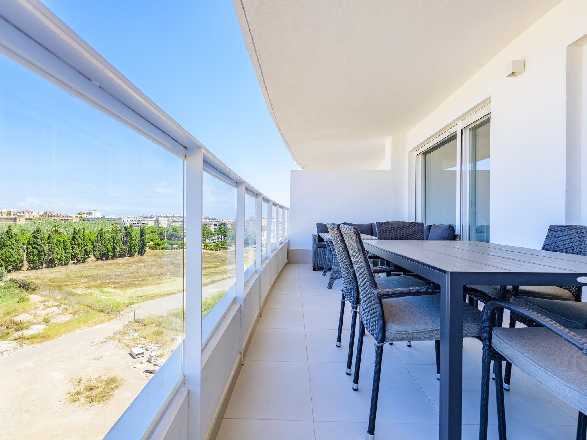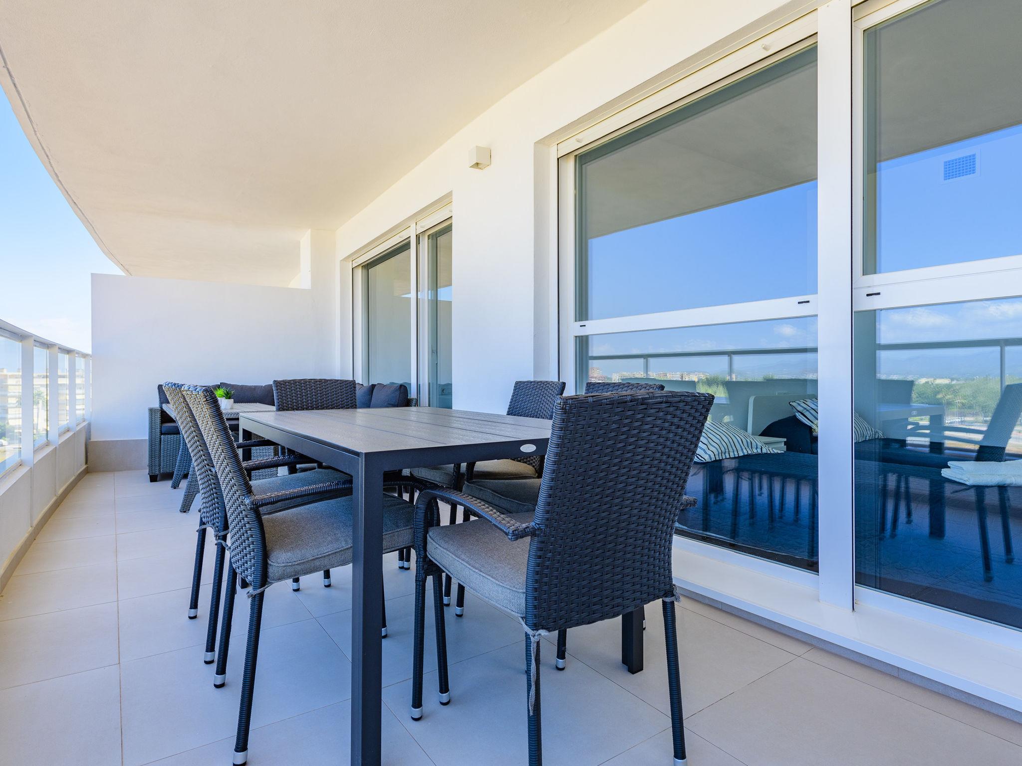 Modern residence "Gran Canet", built in 2022. In a quiet, sunny position, 900 m from the sea, 900 m from the beach. For shared use: garden with lawn and trees, 3 swimming pools (seasonal availability: 15.Jun. - 15.Sep.). Children's pool, outdoor shower, tennis. In the complex: reception, bar, sauna, fitness room, solarium, lift. Roofed, parking at the house. Supermarket, restaurant, bar, café 800 m, bus stop 700 m, railway station 7 km, sandy beach "Canet Playa" 900 m. Sports harbour, surf school, walking paths from the house, cycle lane 900 m. Nearby attractions: Valencia 30 km. The owner does not accept any youth groups. Neighbourhood highly sensitive to noise. Quietness and good behaviour expected.