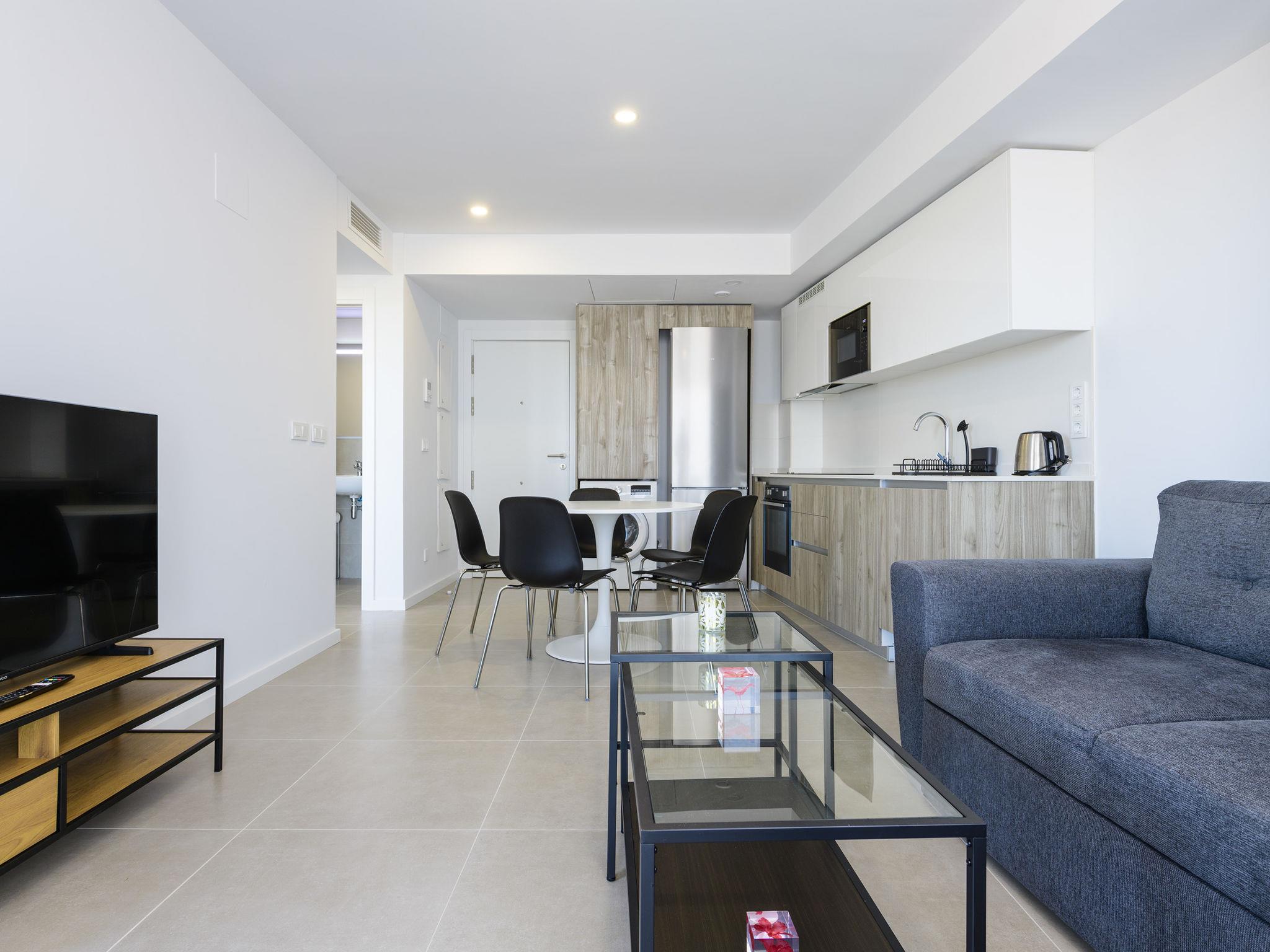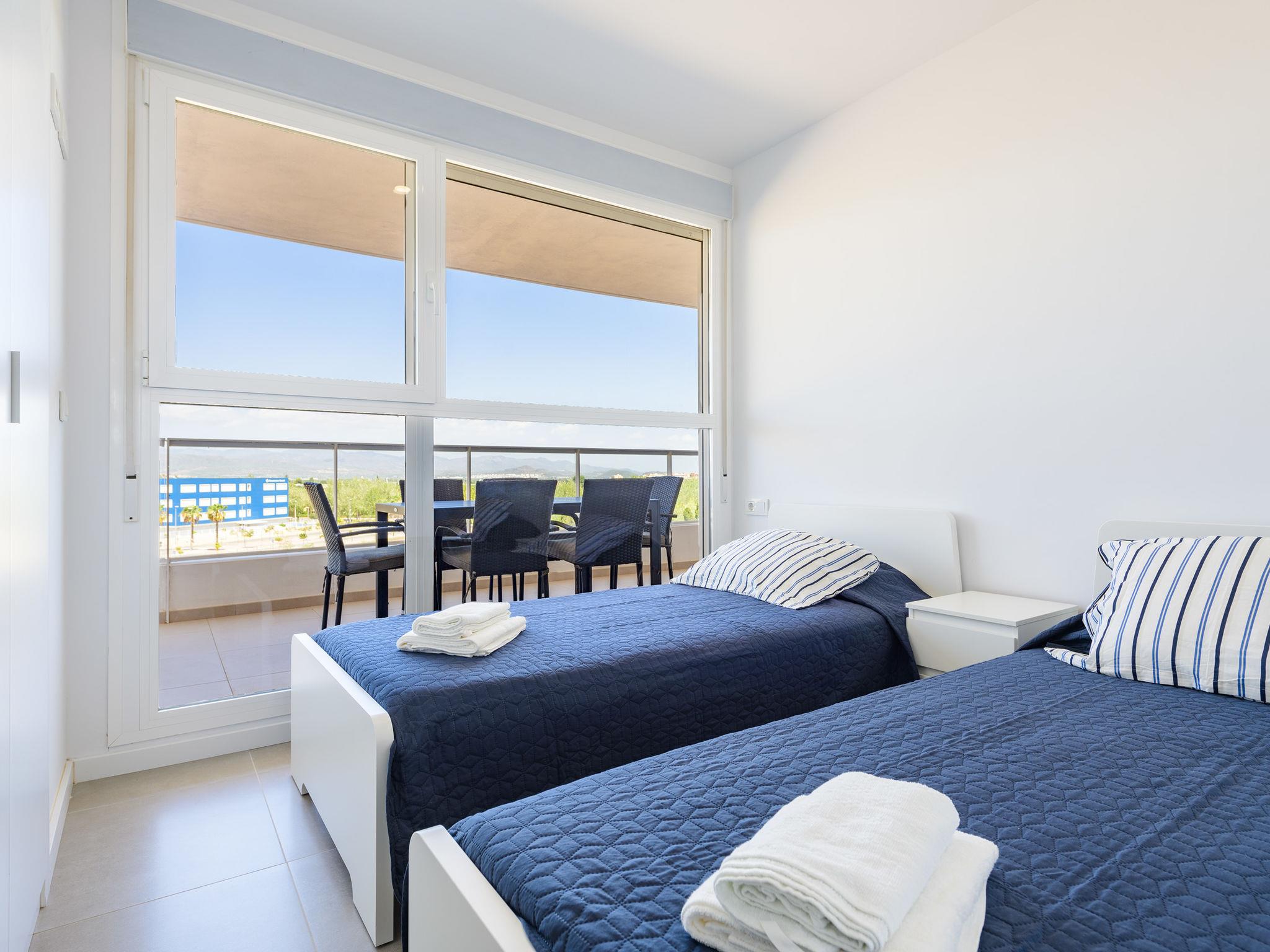 "Gran Canet", 3-room apartment 70 m2 on 4th floor. Comfortable and modern furnishings: large living/dining room with dining table, digital TV, flat screen, air conditioning and forced-air heating. Exit to the terrace. 1 large room with 1 french bed (160 cm, length 200 cm), shower/WC, air conditioning and forced-air heating. Exit to the terrace. 1 room with 2 beds (90 cm, length 200 cm), air conditioning and forced-air heating. Exit to the terrace. Open kitchen (oven, dishwasher, 4 induction hot plates, kettle, microwave, freezer). Shower/WC. Large terrace 20 m2, roofed. Terrace furniture. View of the mountains. Facilities: washing machine, iron, hair dryer. Internet (WiFi, free). Parking (roofed) at the house. Please note: non-smokers only. Smoke alarm. VT-53323-V // Reg. Nr.: ESFCTU000046070000318186000000000000000000VT-53323-V4