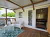 Stue(Fjernsyn, spisebord, sofahjørne), Køkken(elkedel, brødrister, kaffemaskine, mikrobølgeovn, køleskab, fryser, ), soveværelse(enkeltseng, enkeltseng), soveværelse(dobbeltseng), badeværelse(bruser), badeværelse(toilet), Internetadgang, klimaanlæg, terrasse, parkering, swimmingpool(deles med andre gæster), luft til luft-varmepumpe