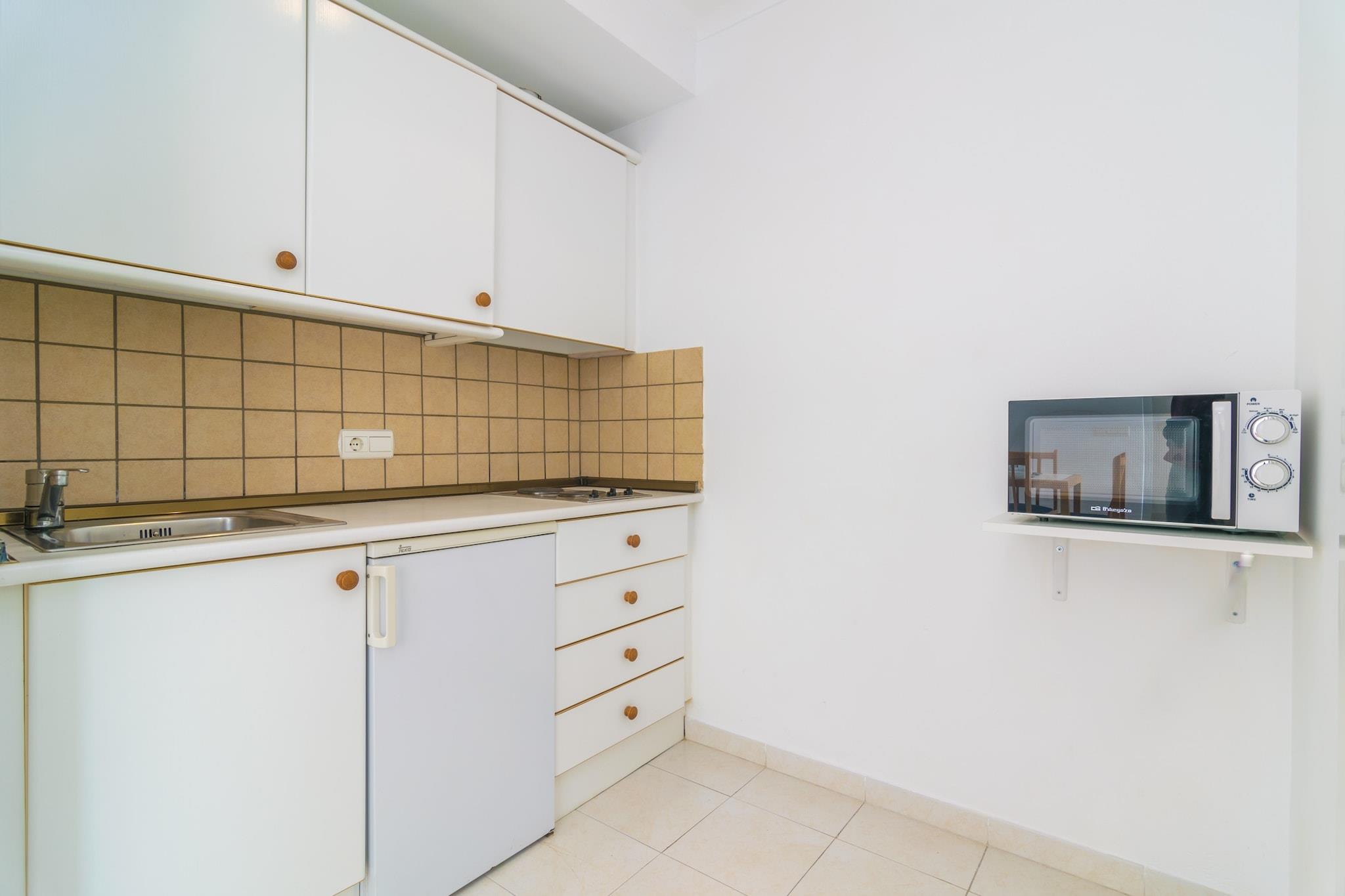 Start din dag på lejlighedens hyggelige terrasse, hvor du kan nyde morgenmaden, mens du ser den rolige rytme i Canyamels gader. Terrassen er et roligt hjørne til kaffe eller læsning, som sætter tonen for en afslappende ferie. Stranden ligger kun 250 meter væk, så du kan nemt slentre til det bløde sand og turkise vand til en morgensvømning eller en solblød dag. Denne lejlighed på første sal, uden elevatoradgang, tilbyder et praktisk opholdsområde i åbent plan, der kombinerer køkken, spisestue og opholdsstue. Slap af på sofaen, mens du ser satellit-tv, afkølet med aircondition (kun kold), eller tilbered måltider på den elektriske kogeplade i det beskedne, men funktionelle køkken. To soveværelser har hver enkeltsenge, aircondition og opbevaring, mens sofaen kan rumme en ekstra gæst. En barneseng og høj stol er til rådighed for de mindste, og et soveværelse åbner til en lille terrasse. Badeværelset er udstyret med bruser for nemheds skyld. Canyamel er et fredeligt boligområde i Capdepera, der tilbyder restauranter, barer og supermarkeder inden for rækkevidde. Golfentusiaster vil sætte pris på den nærliggende bane kun 7,2 km væk. Lokale attraktioner såsom Caves of Artà og det historiske Tower of Canyamel sørger for mindeværdige udflugter. Uanset om du leder efter stranddage, udendørs eventyr eller rolige aftener, giver denne lejlighed en behagelig og velbeliggende base. Kæledyr er ikke tilladt, og arrangementer er forbudt.