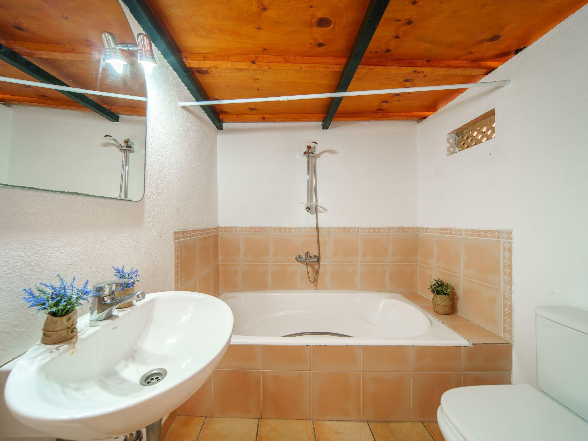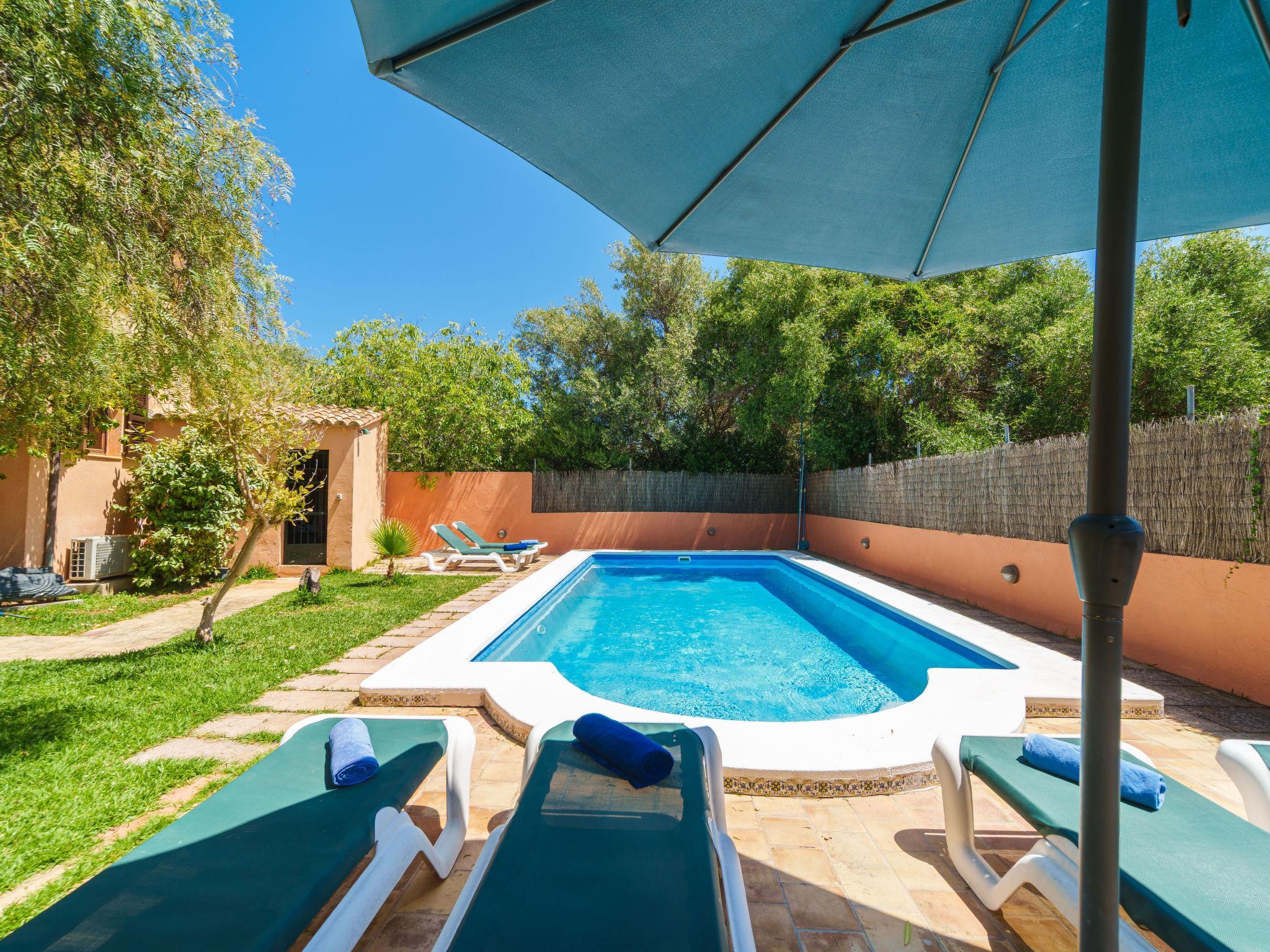 Capdepera 7 km from Artà: Beautiful, simple single-family house "Sa Taulera", 2 storeys, surrounded by trees. In the resort 300 m from the centre of Capdepera, in a quiet, sunny position, 2 km from the edge of the forest, 1.5 km from the sea, 2 km from the beach. Private: property with lawn, natural garden, swimming pool angular (8 x 4 m, 2 m2, depth 220 cm, seasonal availability: 01.Mar. - 31.Oct.). In the house: WiFi. Shop 250 m, grocery, supermarket 200 m, shopping centre 7 km, restaurant 240 m, bar 150 m, bakery 120 m, café 200 m, bicycle rental 2 km, pub garden 200 m, bus stop "Capdepera" 800 m, railway station "Manacor" 28 km, sandy beach "Cala Agulla" 2 km pebble beach "n'Aladern" 3.5 km, shingle beach "Cala Rotja" 7 km, park "Instituto" 250 m, diving center 2 km. Sports harbour 250 m, marina 3 km, golf course (18 hole) 4 km, surf school 2.5 km, sailing school 2.5 km, tennis 2.5 km, sports centre 250 m. Nearby attractions: Parc natural de s'albufera 35 km, Artà 7 km, Faro Capdepera 3.5 km, Parc natural de llevant 7 km, Capdepera Golf 4 km, Font de sa Cala 3.5 km. Hiking paths: Cala Agulla 2.5 km, Cala Torta 11 km, Capdepera 300 m. Please note: car recommended. Object suitable for 6 adults groups of teenagers on request only. Suitable for events. Loading and unloading of baggage is possible at the holiday house. Nightclub/disco close by 2 km from the property. Airfield 73 km from the property.