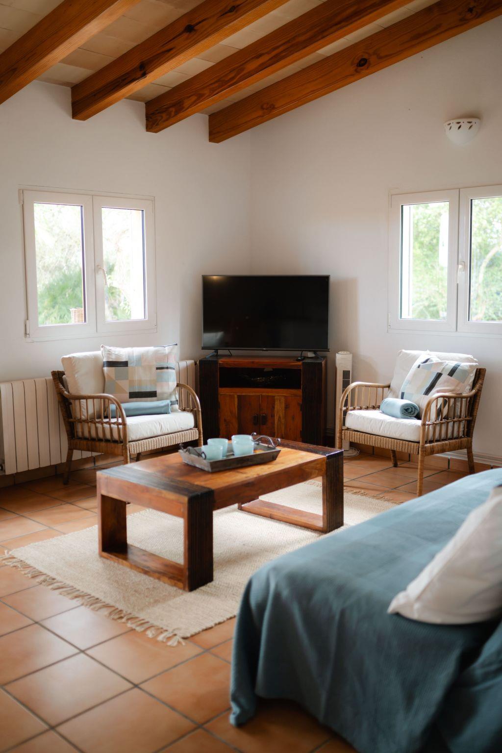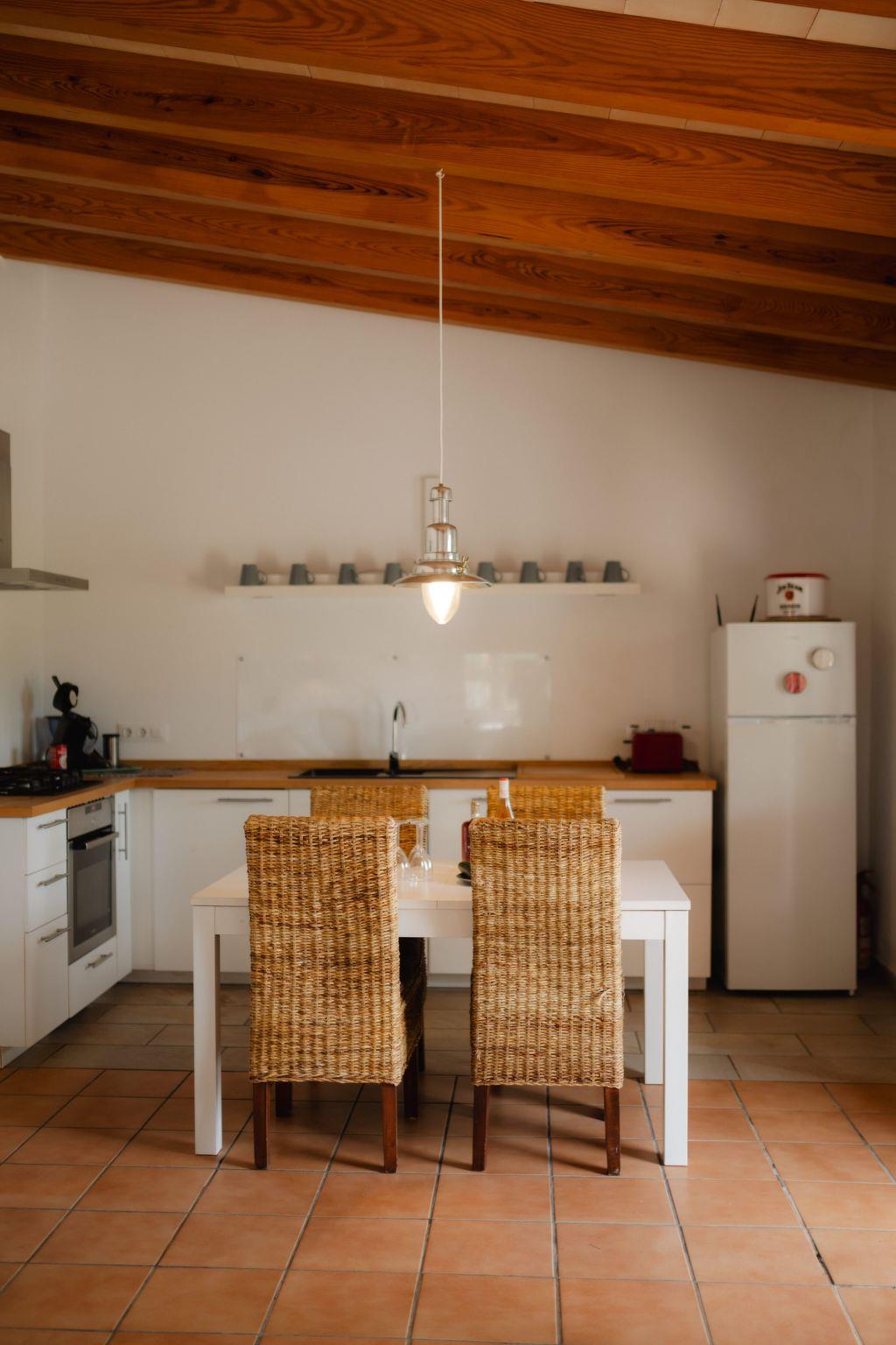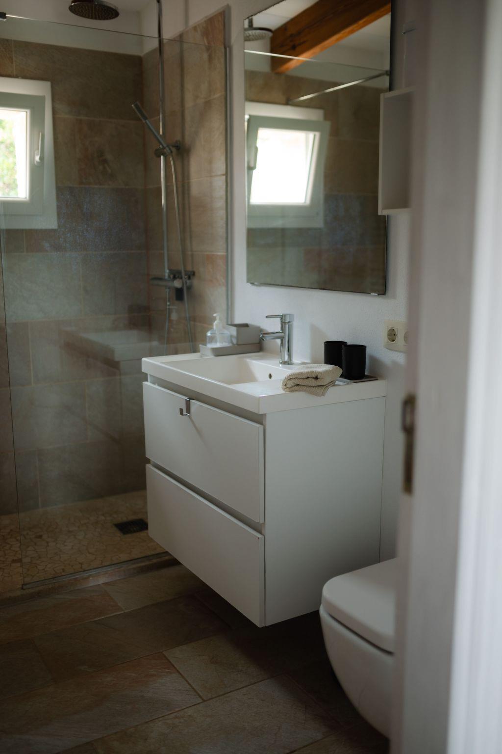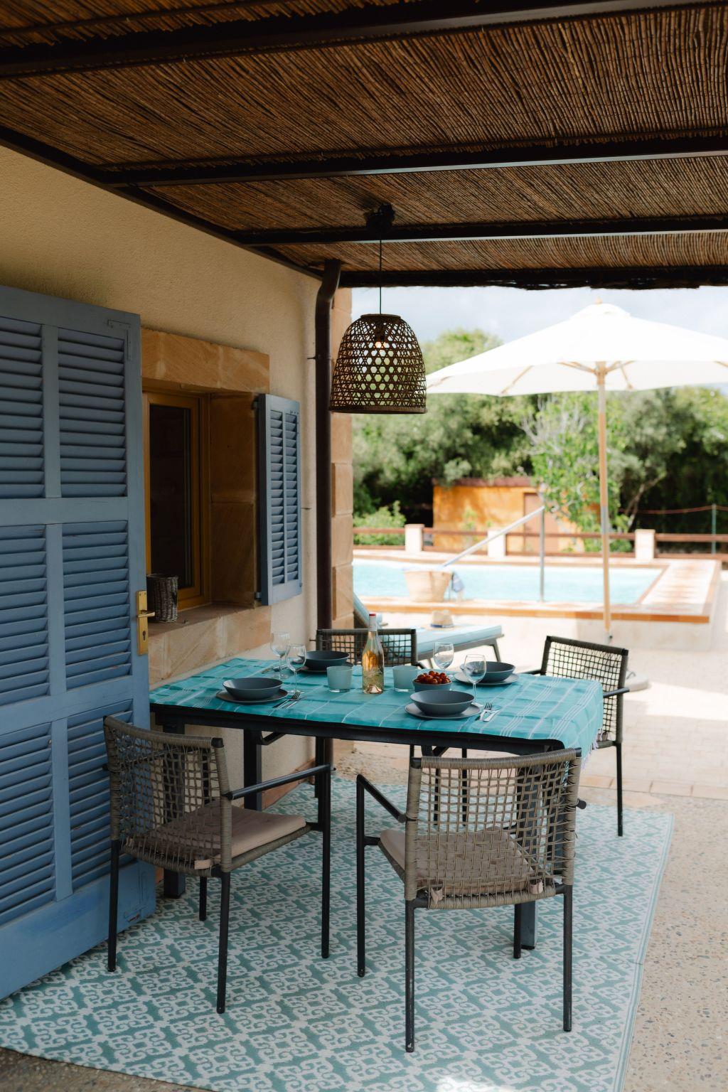 Inside, around 60 square metres of pure cosiness await you. The two lovingly furnished bedrooms, one with a double bed and the other with two single beds and fitted wardrobes, offer enough space for a restful night's sleep. An attractive bathroom, an inviting living/dining room with fireplace and an open-plan kitchen complete the whole. The high ceilings with their wooden beams and the Mallorcan tiled floor give the finca a particularly cosy atmosphere.