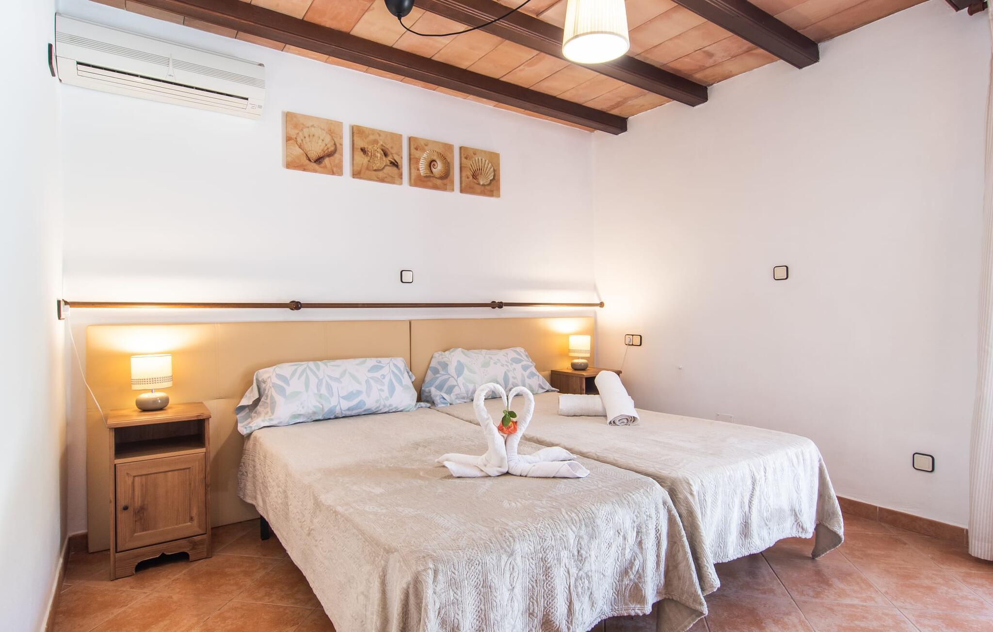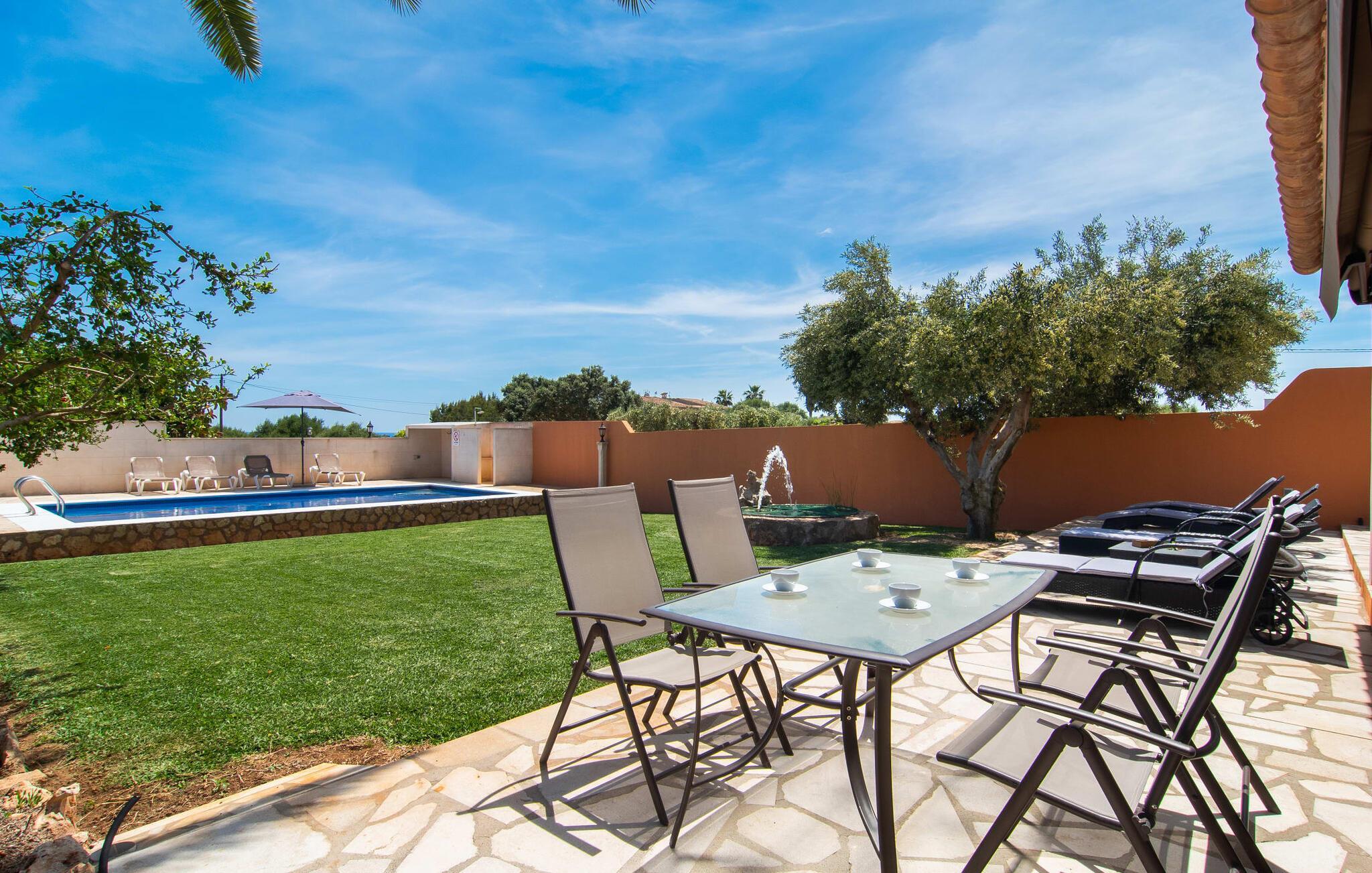 Villa “Capricho” i den sydøstlige del af Mallorca lover en afslappende fincaferie midt i en meget velholdt have, tæt på flere smukke sandstrande. Dette er et Fincallorca feriehus. Udendørsområdet er udstyret med komfortable liggestole ved huset og ved siden af den store pool. Der er en lille overdækket terrasse med spiseplads, som tilgås via stuen. Ved siden af villaen er der sommerkøkken med grill, spiseplads og bordtennisbord. Der er en mursten udendørs bruser lige ved siden af poolen. Et lille trin fører til den overdækkede terrasse, hvor der er forskellige siddemuligheder. En lille udvendig trappe fører til en smuk tagterrasse med havudsigt. Villaens stue ligger i stueetagen. En bred glasskydedør fører fra haven direkte ind i en hyggelig opholds- og spisestue med pejs. Det moderne, veludstyrede landhuskøkken er åbent til opholdsstuen. Sandstensvægge, terracottagulve og åbne bjælkelofter skaber en hyggelig, rustik atmosfære. Der er også tre indbydende, smagfuldt indrettede dobbeltværelser, som automatisk har aircondition fra 21.30 til 10.30. Et af soveværelserne har eget badeværelse, et andet har direkte adgang til haven og der er endnu et stort badeværelse med bruser. Villaen "Capricho" er beliggende i en rolig finca-bebyggelse, 4 minutter i bil fra havnebyen Portocolom. Der er et supermarked og små restauranter her. Sandbugten Cala Marçal ligger 6 minutter derfra i bil. Der er andre smukke strande inden for en radius af 10-15 km. Et livligt natteliv kan findes i feriestedet Cala D'Or, 15 minutters kørsel sydpå.