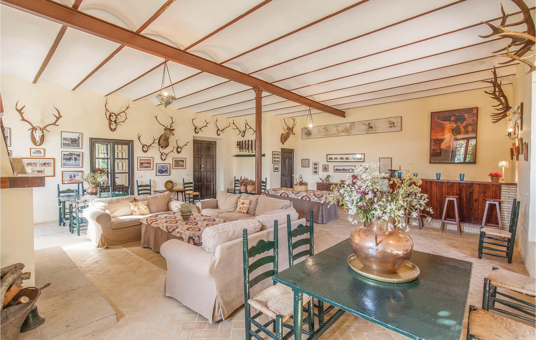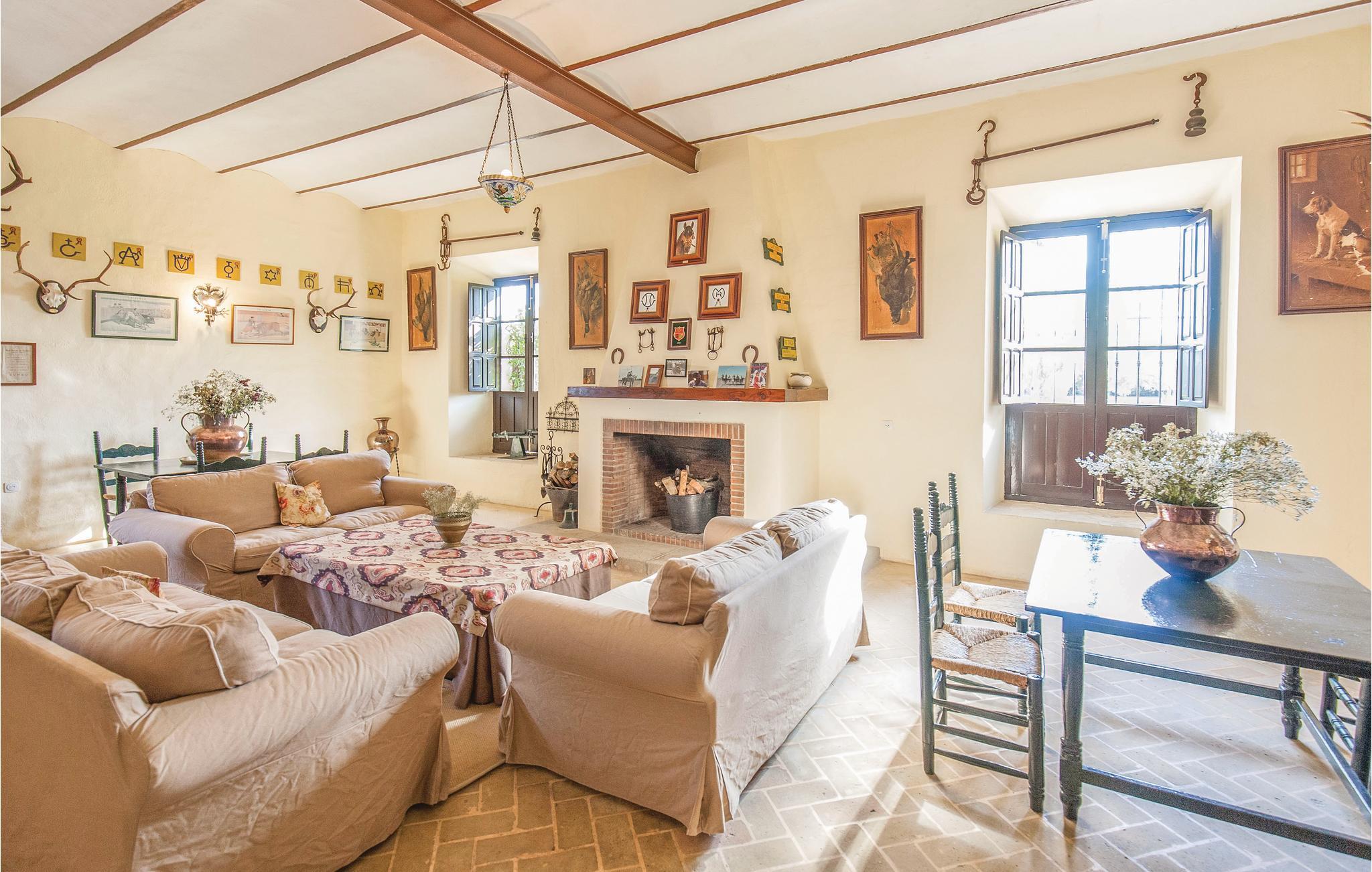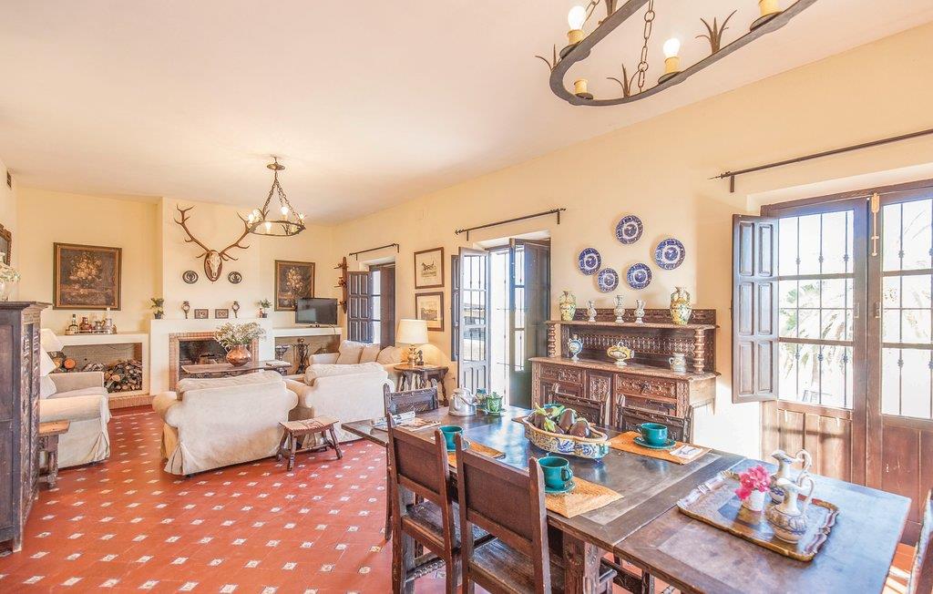 Denne smukke andalusiske ejendom er omgivet af landbrugsjord og har en hestestald. Den overraskende store grund, som huset ligger på, overvælder med det rummelige feriehus med en smuk terrasse og anlagte haver. I stueetagen finder I den stilfulde stue med rustik dekoration, en lille bar til læskedrikke og et badeværelse. Her har I også direkte adgang til haven, der er dækket med naturligt græs og tilbyder en smuk privat pool til afkøling på varme sommerdage. Ovenpå er den anden stue og spisestue, der fokuserer på at være sammen og efterlade masser af plads til at slappe af eller læse. På denne etage finder I også køkkenet, 3 badeværelser og de 5 soveværelser, der garanterer blide drømme. I et anneks bor en ansat, der tager sig af fincaen.
