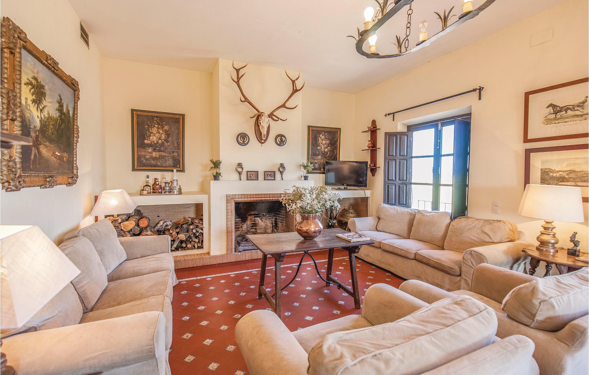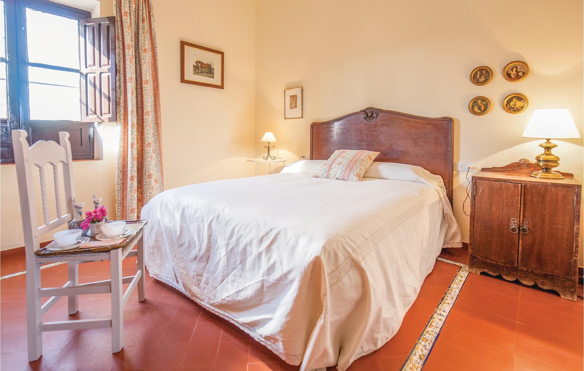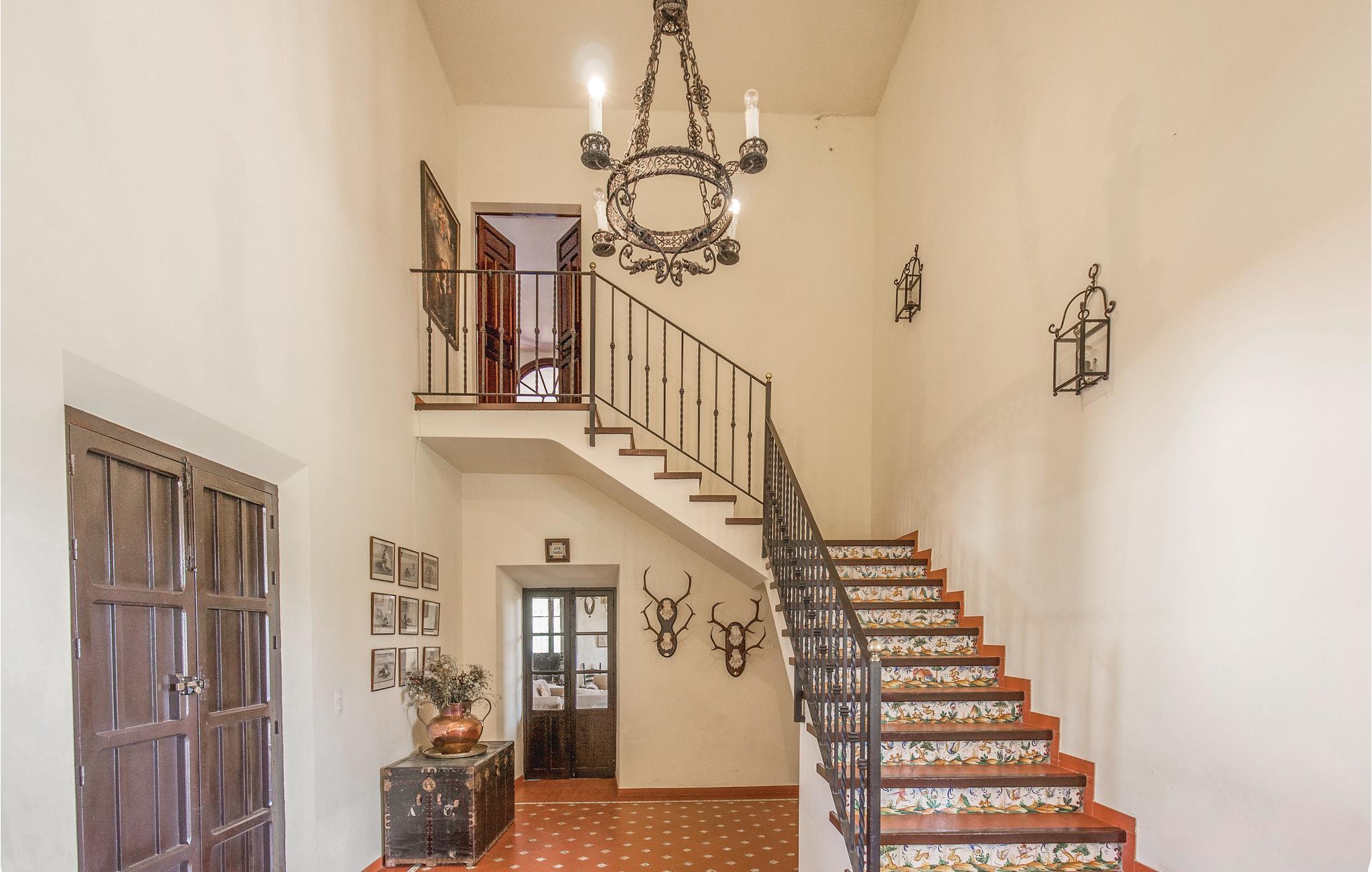 Denne smukke andalusiske ejendom er omgivet af landbrugsjord og har en hestestald. Den overraskende store grund, som huset ligger på, overvælder med det rummelige feriehus med en smuk terrasse og anlagte haver. I stueetagen finder I den stilfulde stue med rustik dekoration, en lille bar til læskedrikke og et badeværelse. Her har I også direkte adgang til haven, der er dækket med naturligt græs og tilbyder en smuk privat pool til afkøling på varme sommerdage. Ovenpå er den anden stue og spisestue, der fokuserer på at være sammen og efterlade masser af plads til at slappe af eller læse. På denne etage finder I også køkkenet, 3 badeværelser og de 5 soveværelser, der garanterer blide drømme. I et anneks bor en ansat, der tager sig af fincaen.