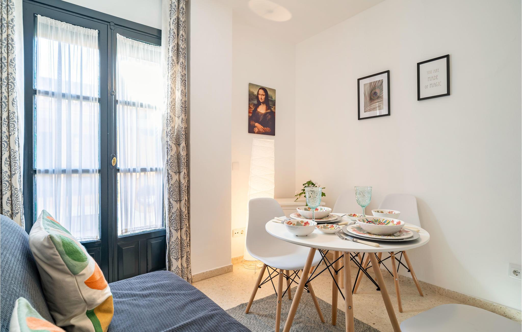 Denne indbydende lejlighed har en førsteklasses beliggenhed, når I vil udforske Andalusien, og byder jer velkommen med lyse værelser og hjemlige møbler. Her kan I tilbringe en velgørende ferie med et væld af aktiviteter og dejlige aftener, når I vender tilbage fra jeres eventyr. Det lille spisebord og sofaen indbyder til et hyggeligt måltid og til at reflektere over dagens oplevelser. Gå ud på balkonen om morgenen og nyd en kop kaffe og de første solstråler, før I tager på udflugt.