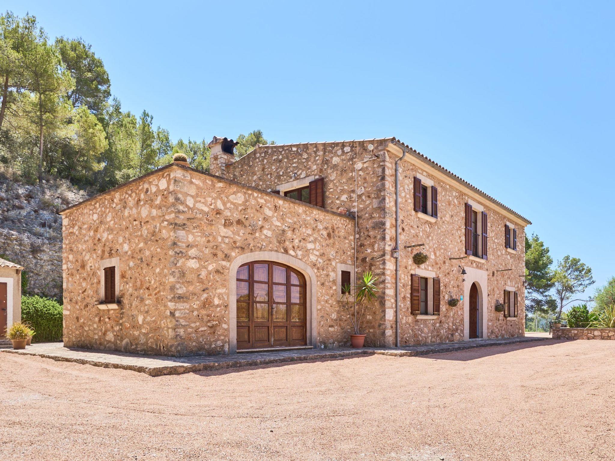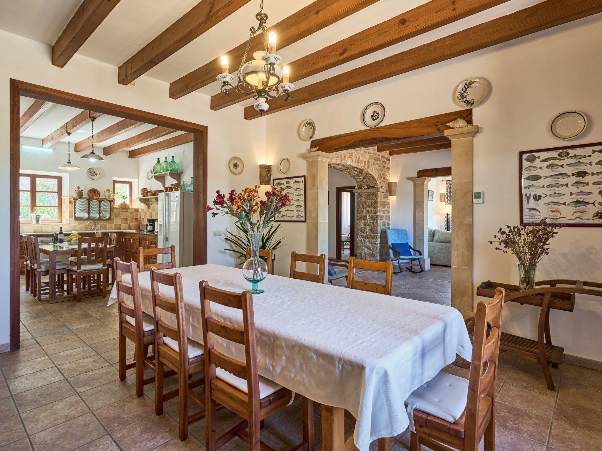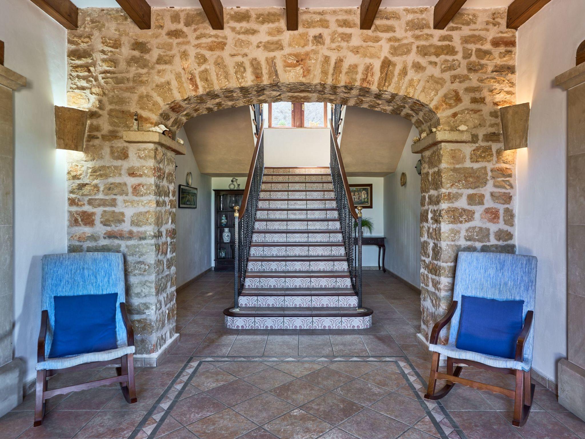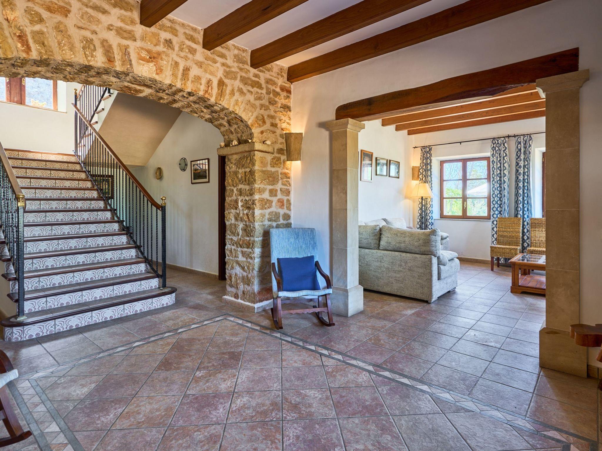 Carritxo is a spacious Mallorcan country-style house spread over two floors. The exterior is clad in natural stone. The interior has high ceilings with wooden beams.