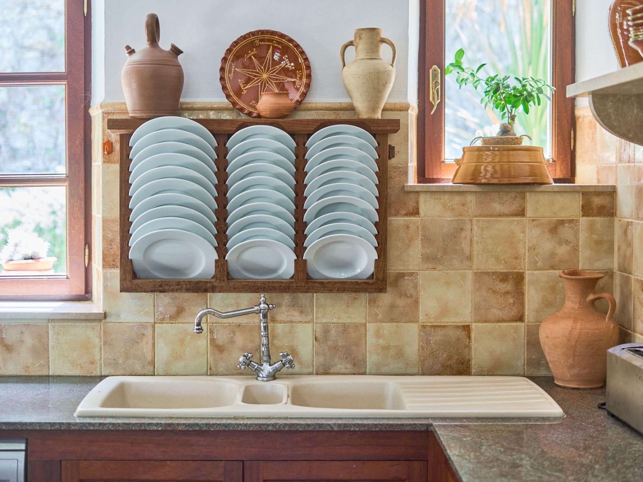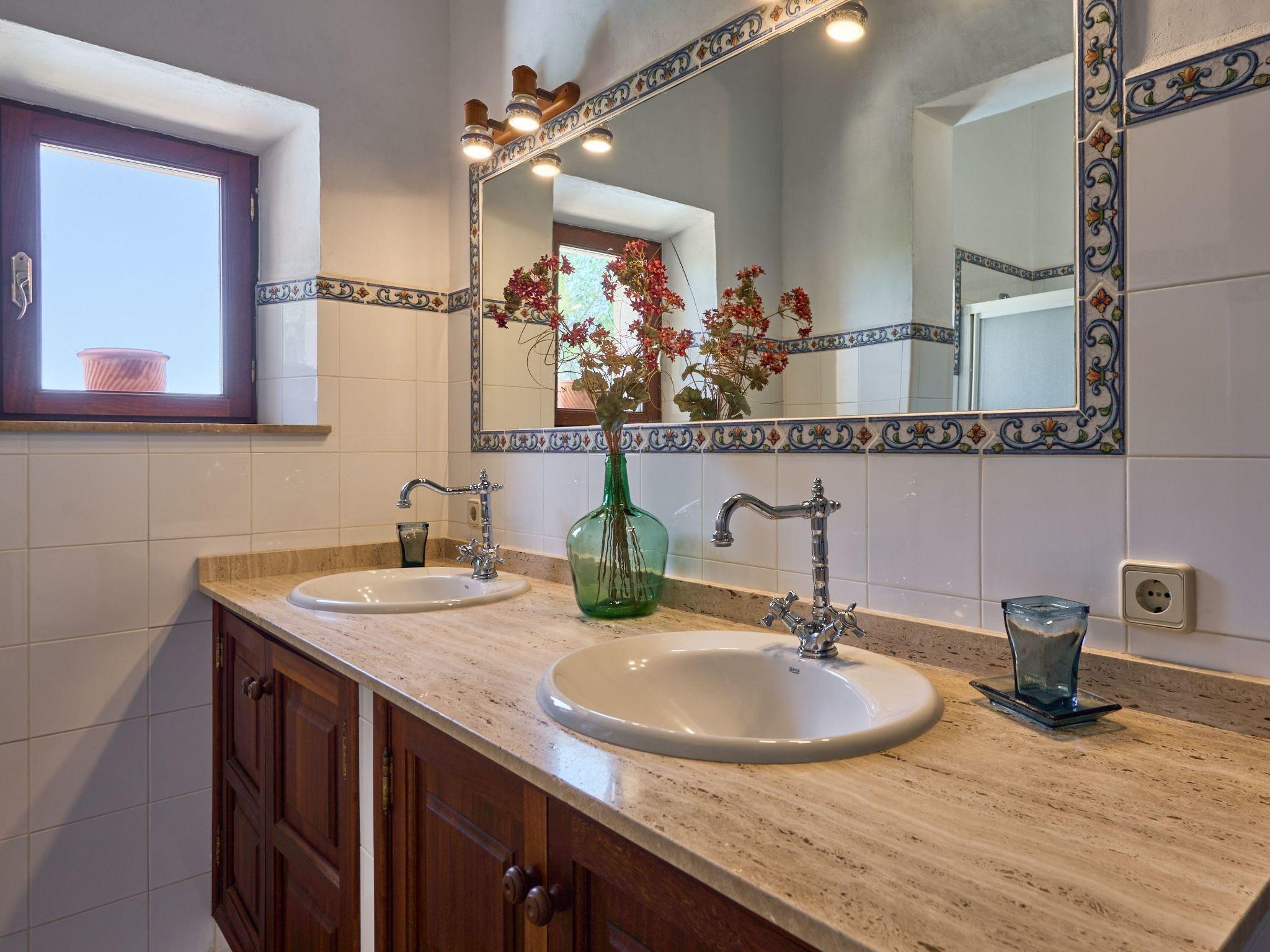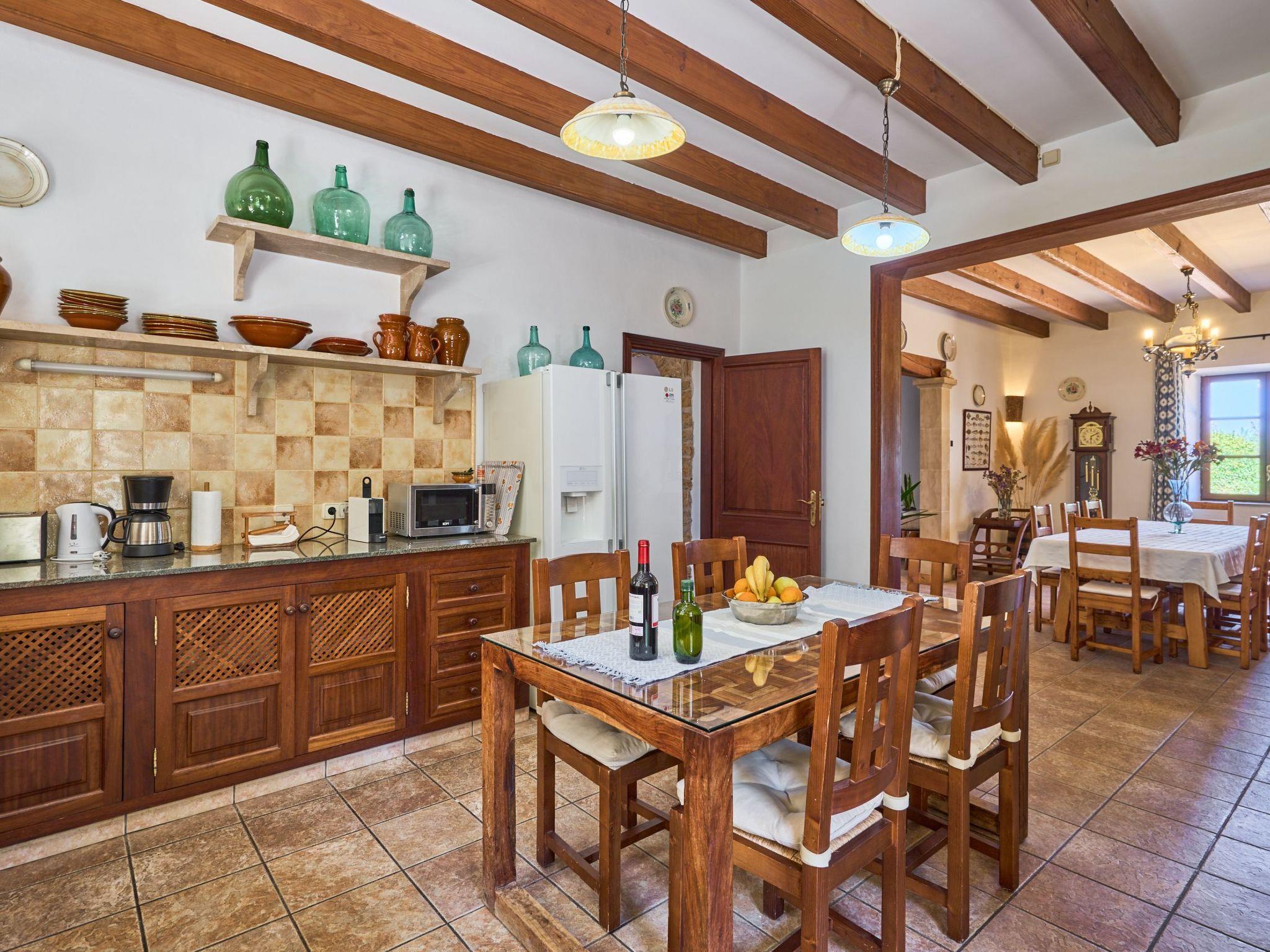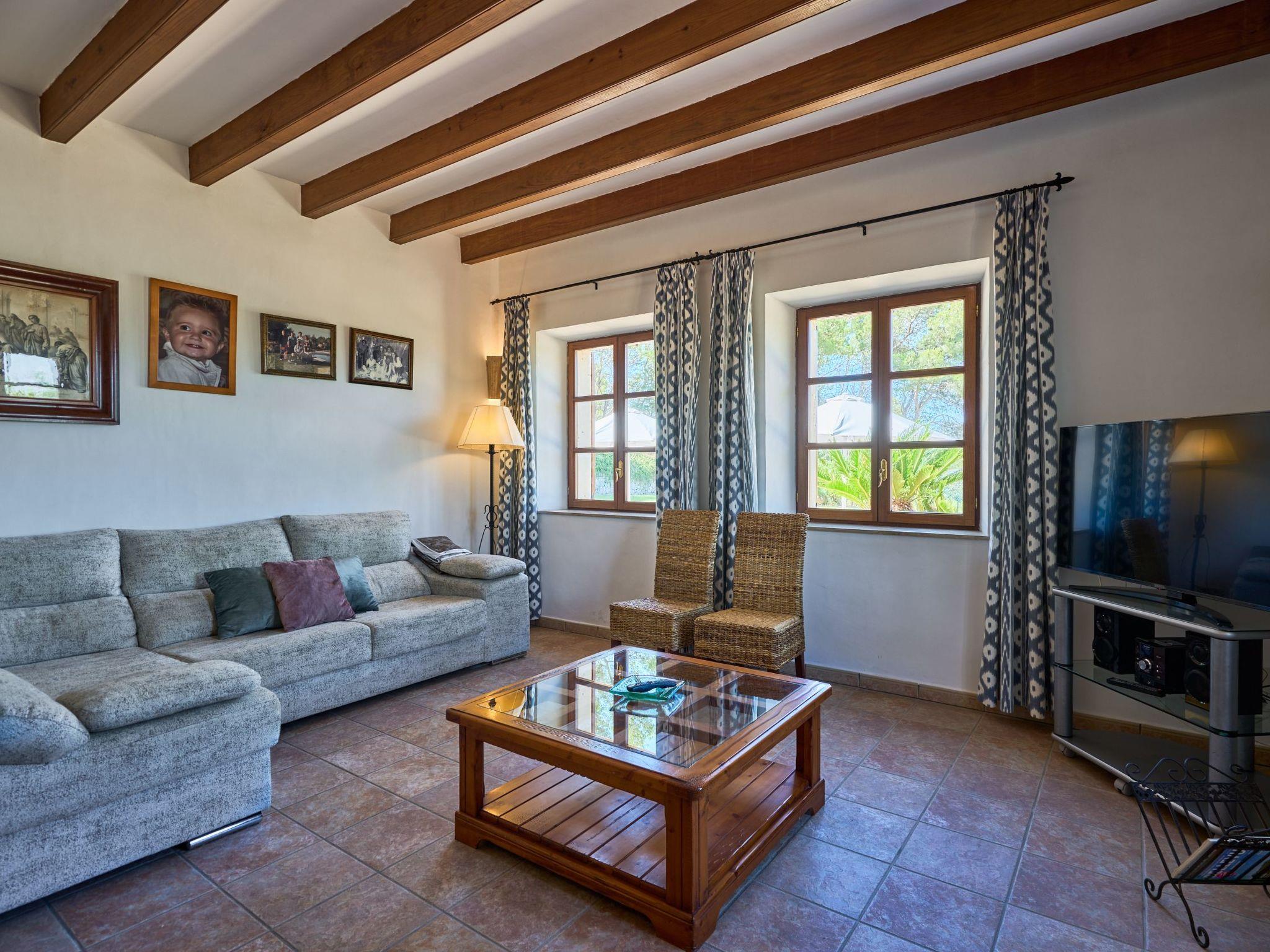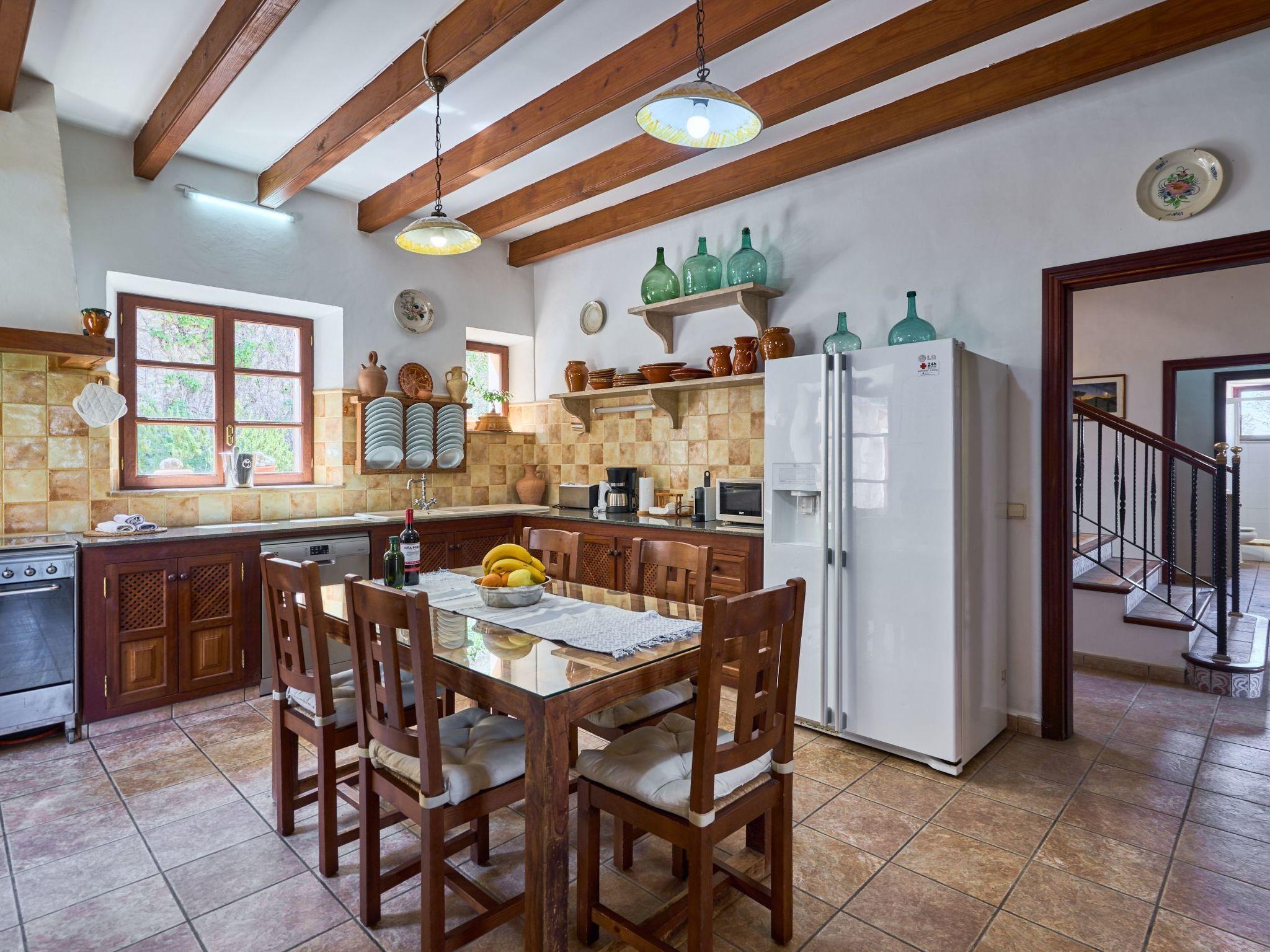 Carritxo is a spacious Mallorcan country-style house spread over two floors. The exterior is clad in natural stone. The interior has high ceilings with wooden beams.