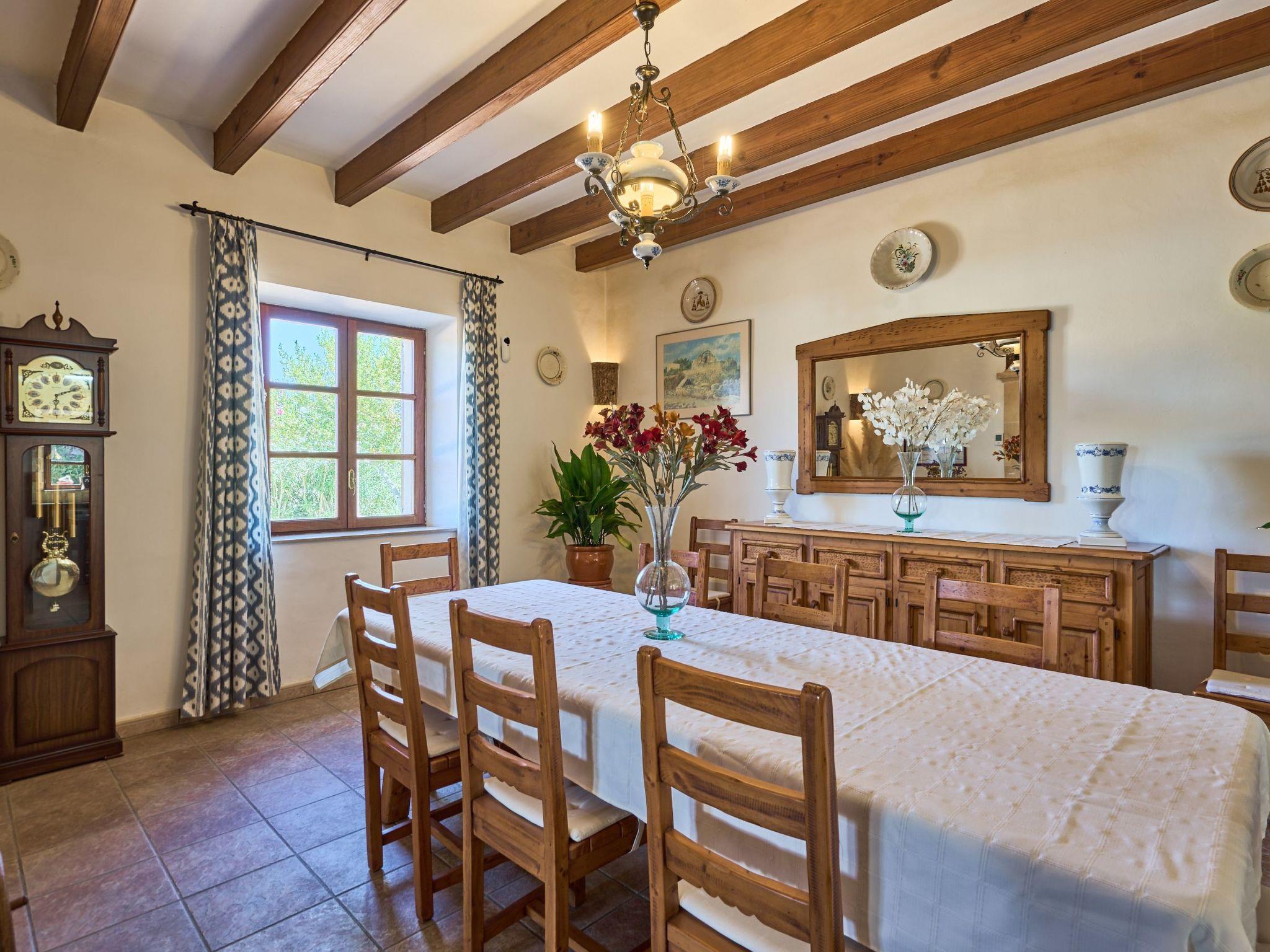 Spacious Mallorcan rustic-style house for rent for 8 people, in a beautiful, quiet location with spectacular panoramic views. Enjoy a well-kept outdoor area with views. A privileged location at the foot of a hill, just 5 km from Felanitx and 13.8 km from the beaches of Porto Colom and Cala Dor.