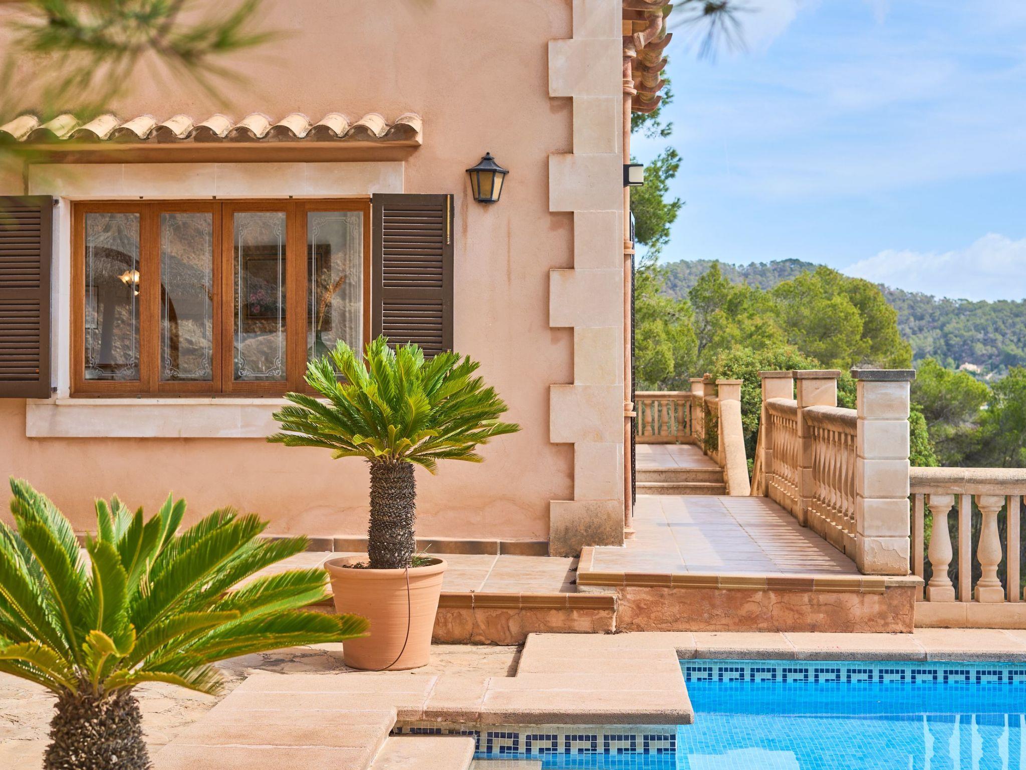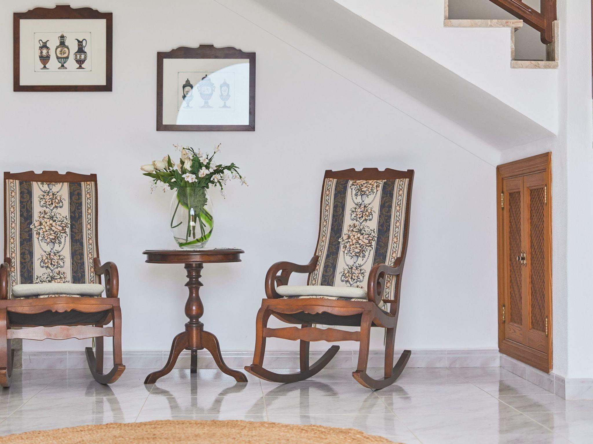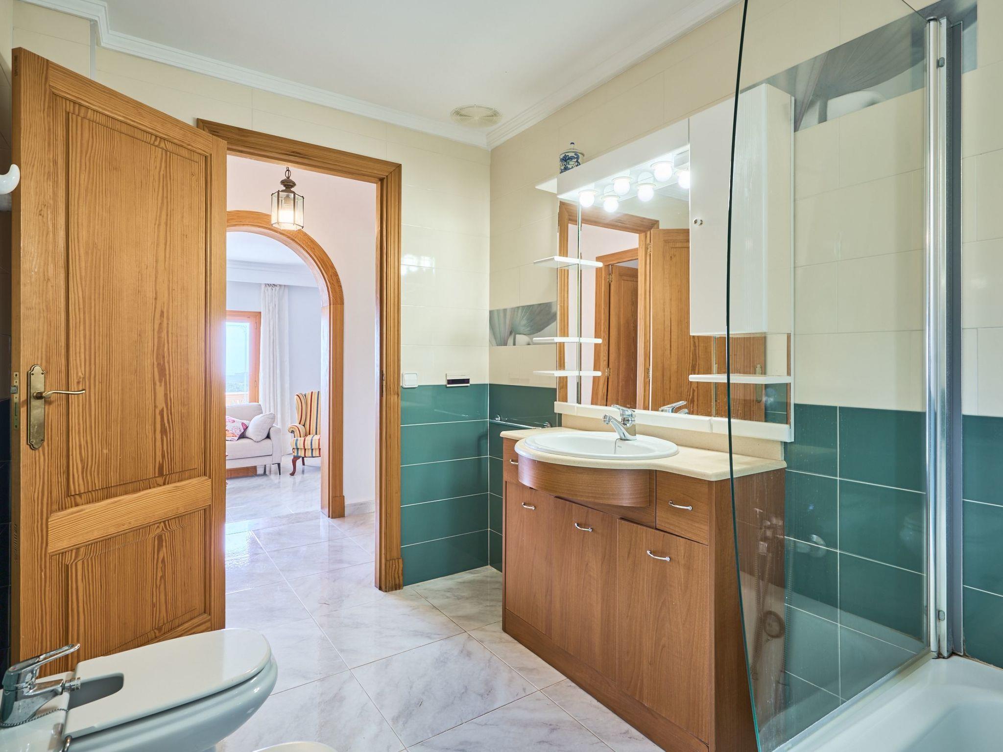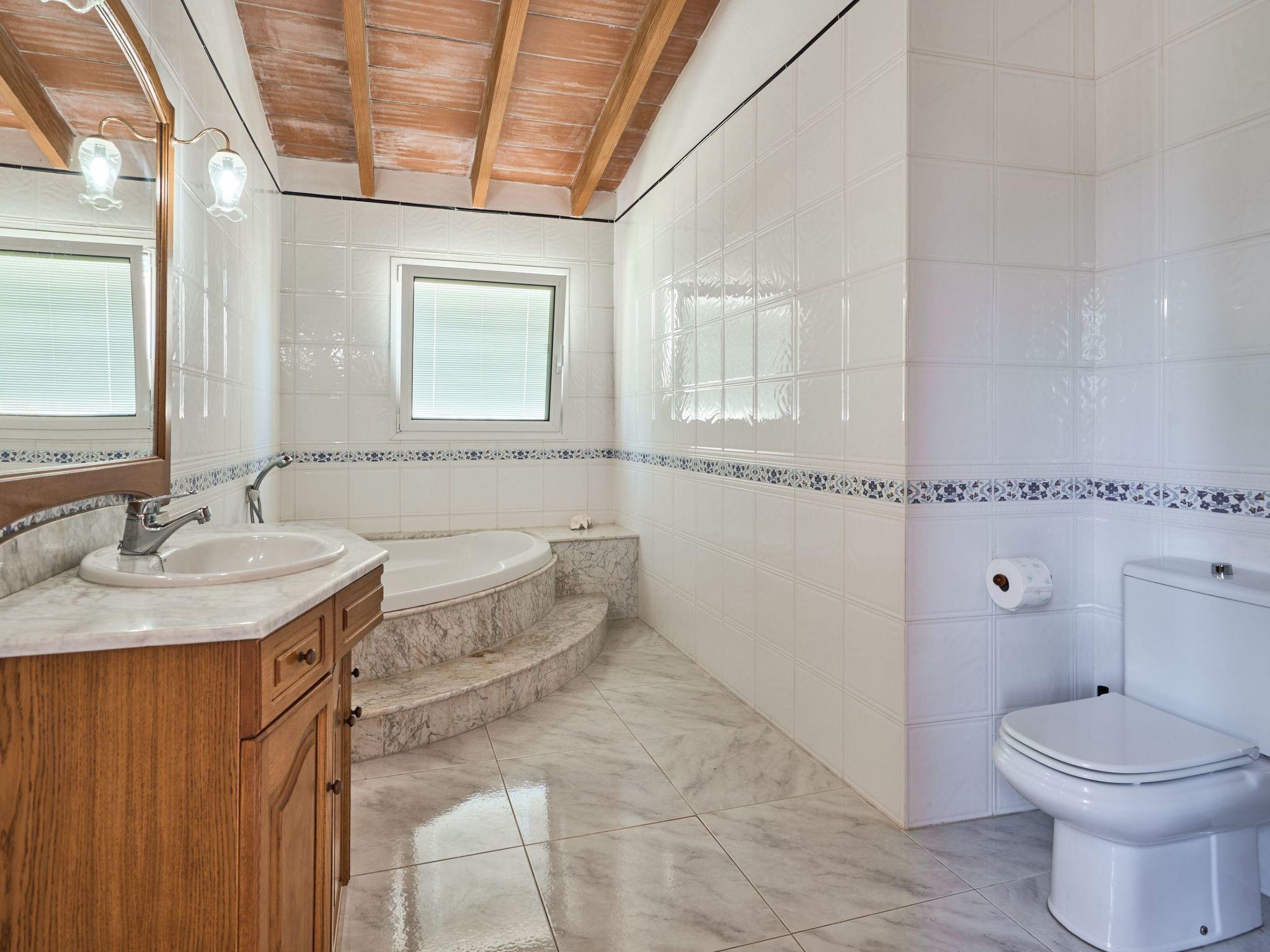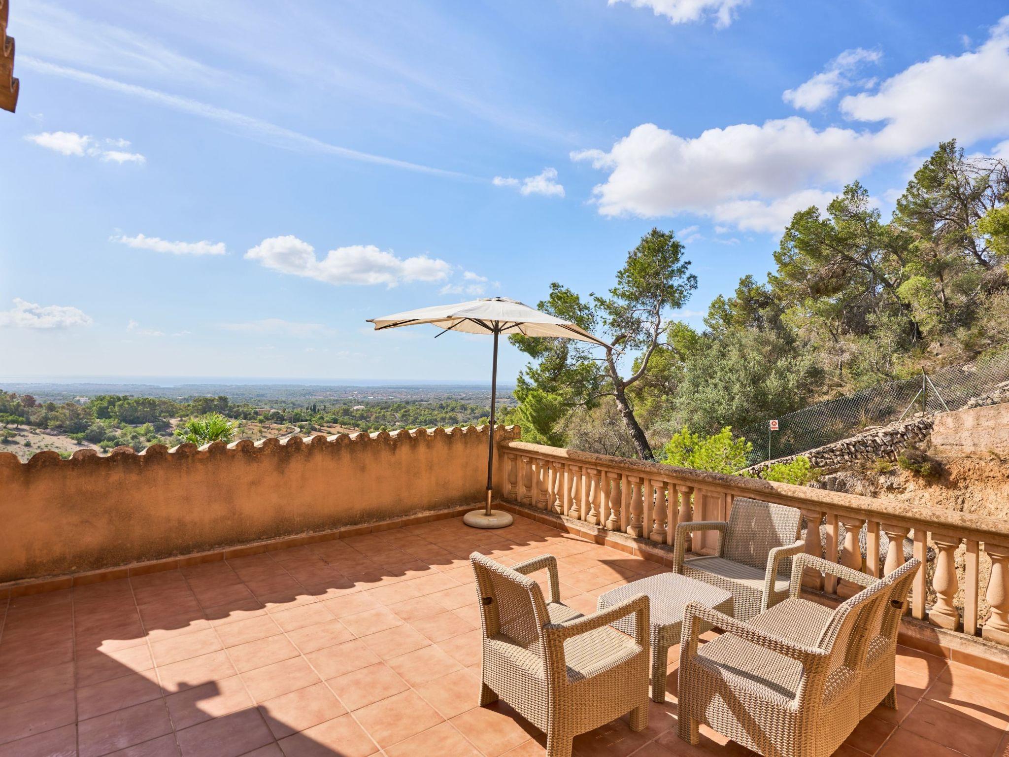 On the upper floor there are two double bedrooms with double beds and a separate bathroom. From the hallway you have access to a lovely terrace with a seating area, where you can enjoy the fantastic panoramic views as far as the sea 6 kilometres away.